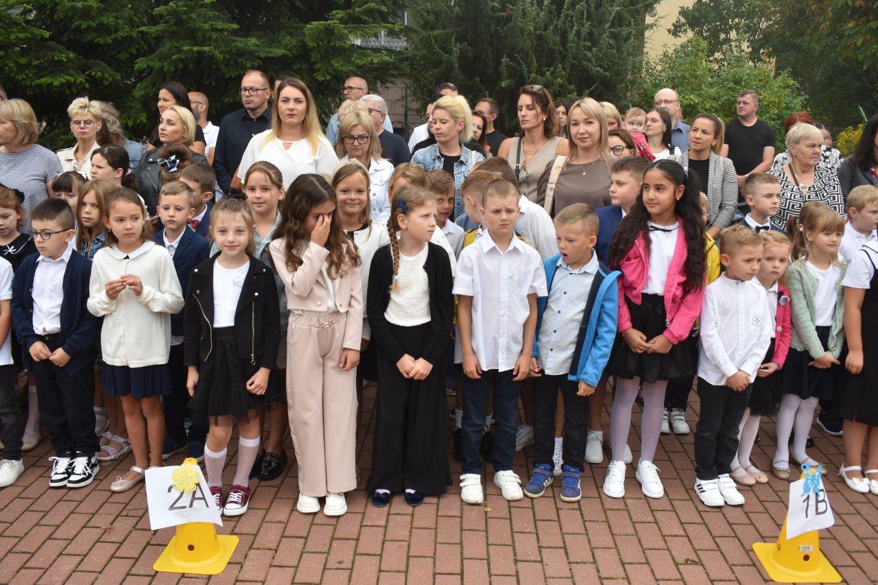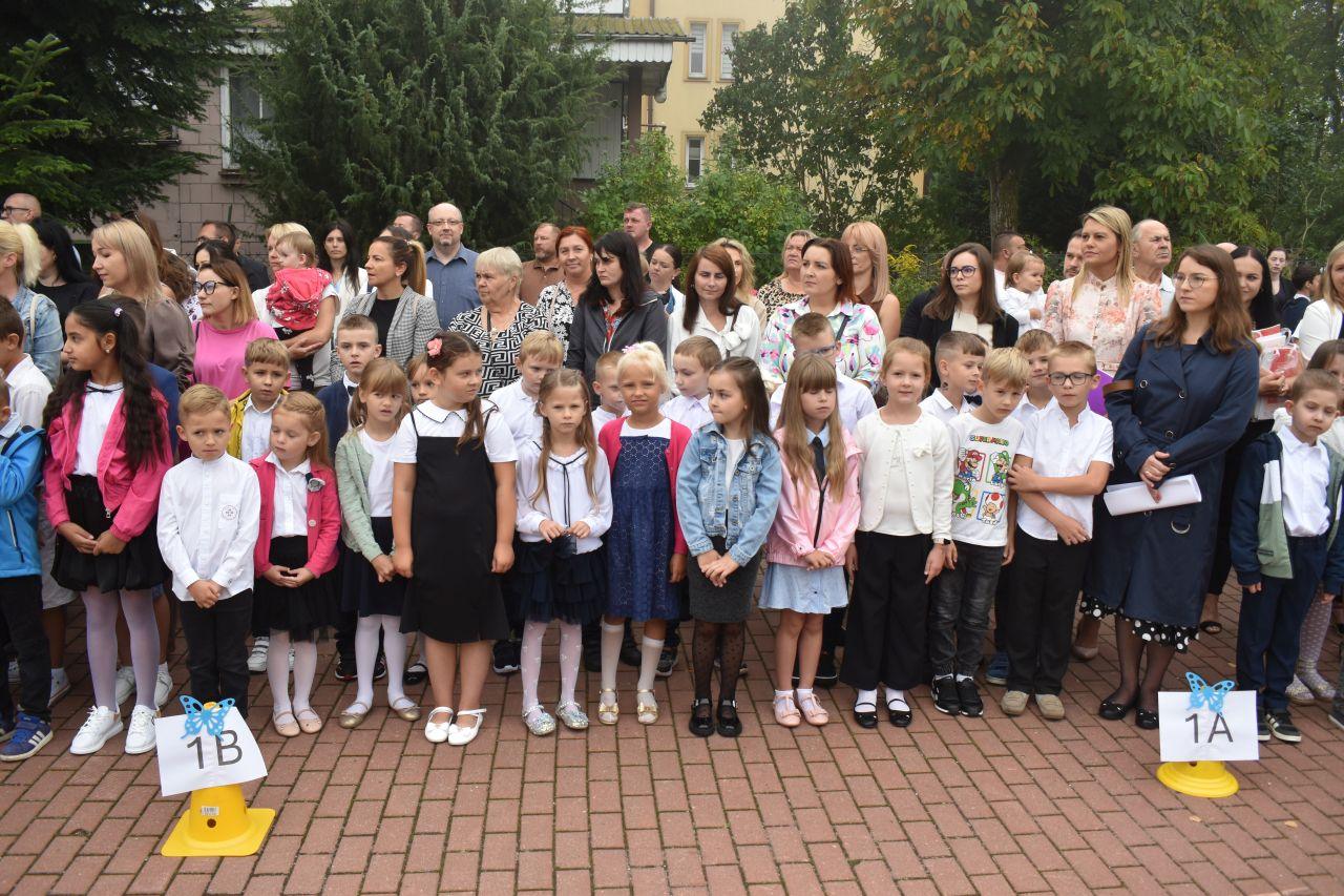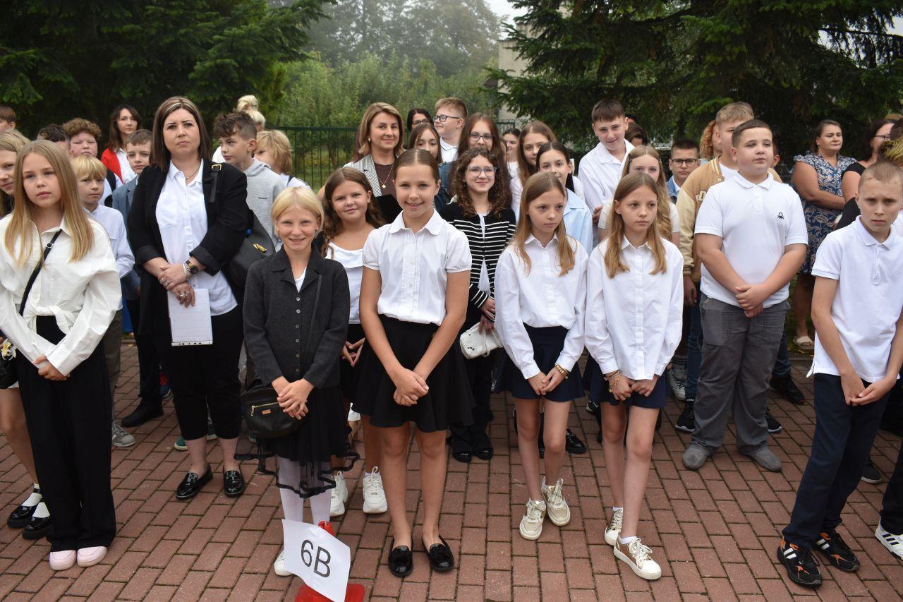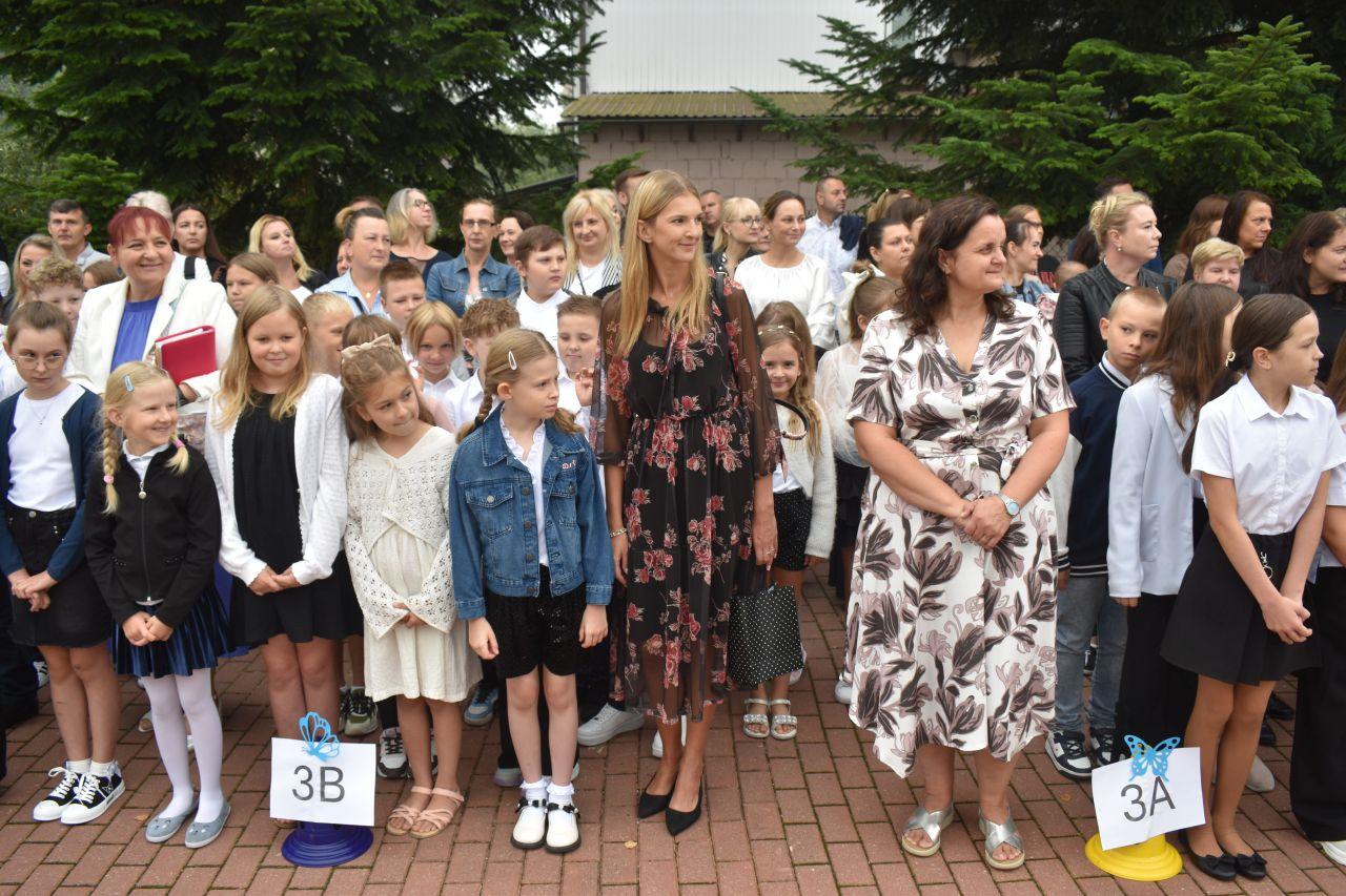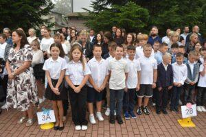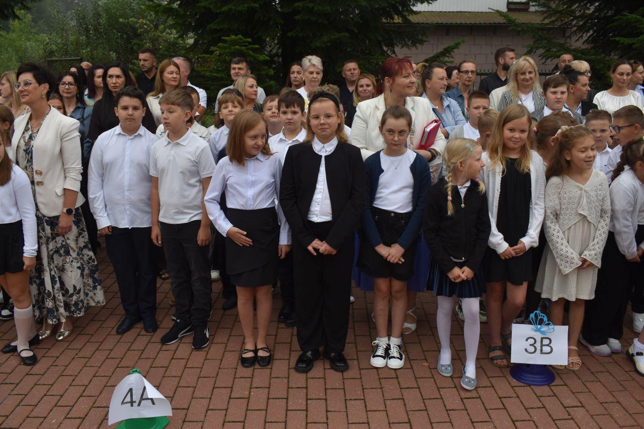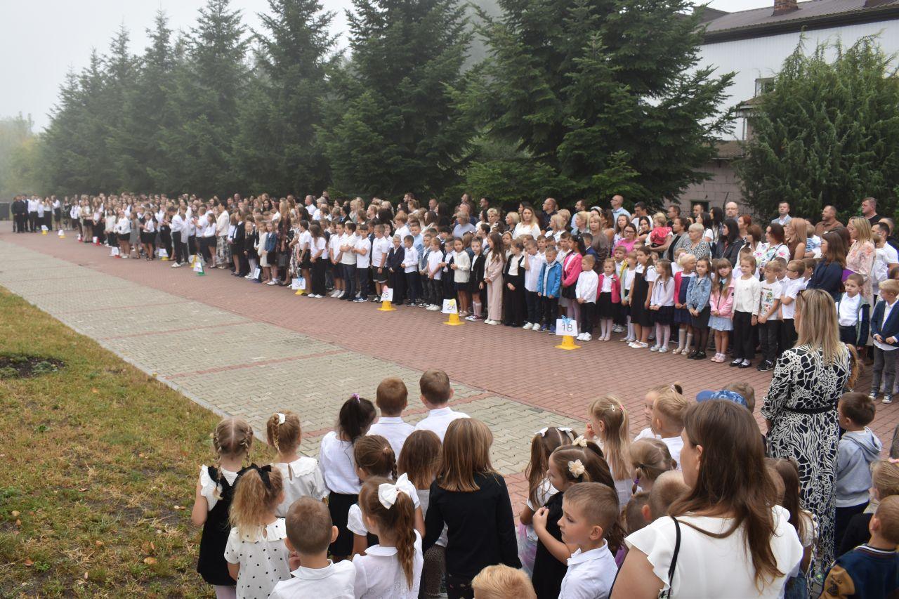 Po nabożeństwie wszyscy uczniowie, nauczyciele, rodzice oraz zaproszeni goście zgromadzili się na placu przed szkołą. Pani Dyrektor Małgorzata Trelka serdecznie powitała wszystkich obecnych, przedstawiła wychowawców klas oraz nowych nauczycieli, którzy dołączyli do naszego grona pedagogicznego. W swoim przemówieniu życzyła wszystkim uczniom owocnego, pełnego radości i sukcesów roku szkolnego.