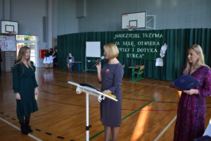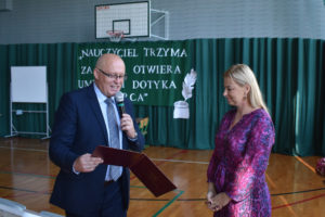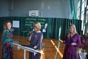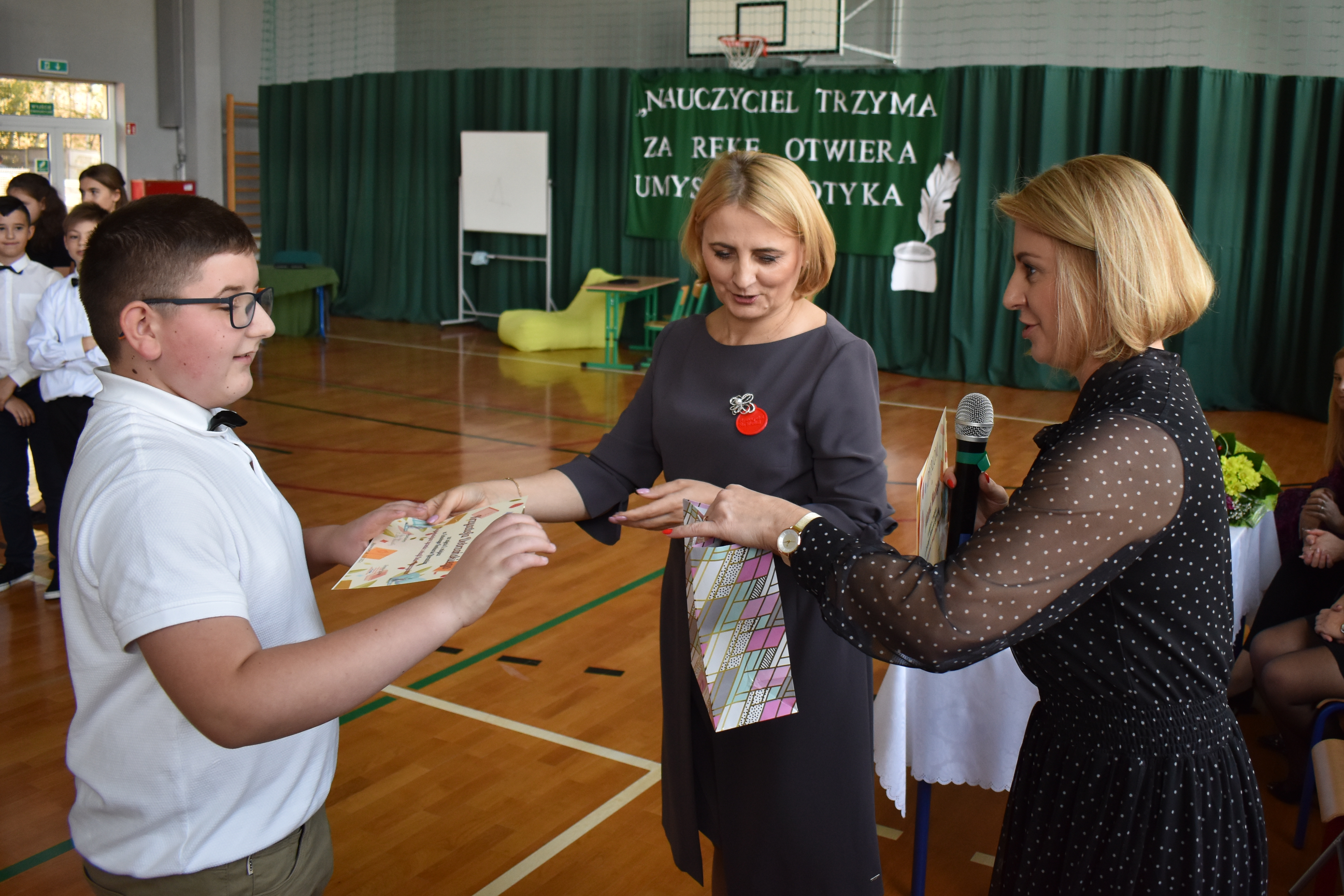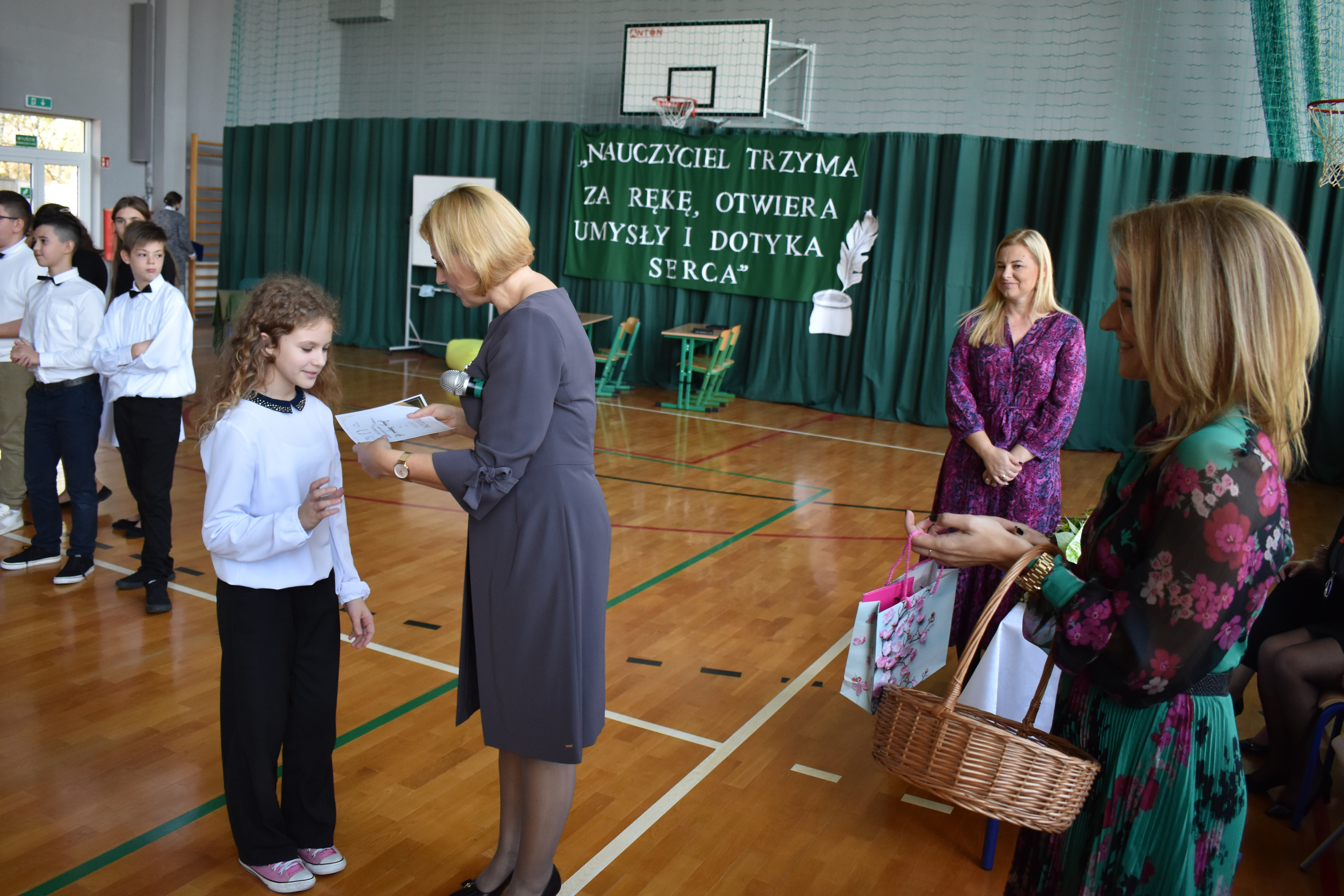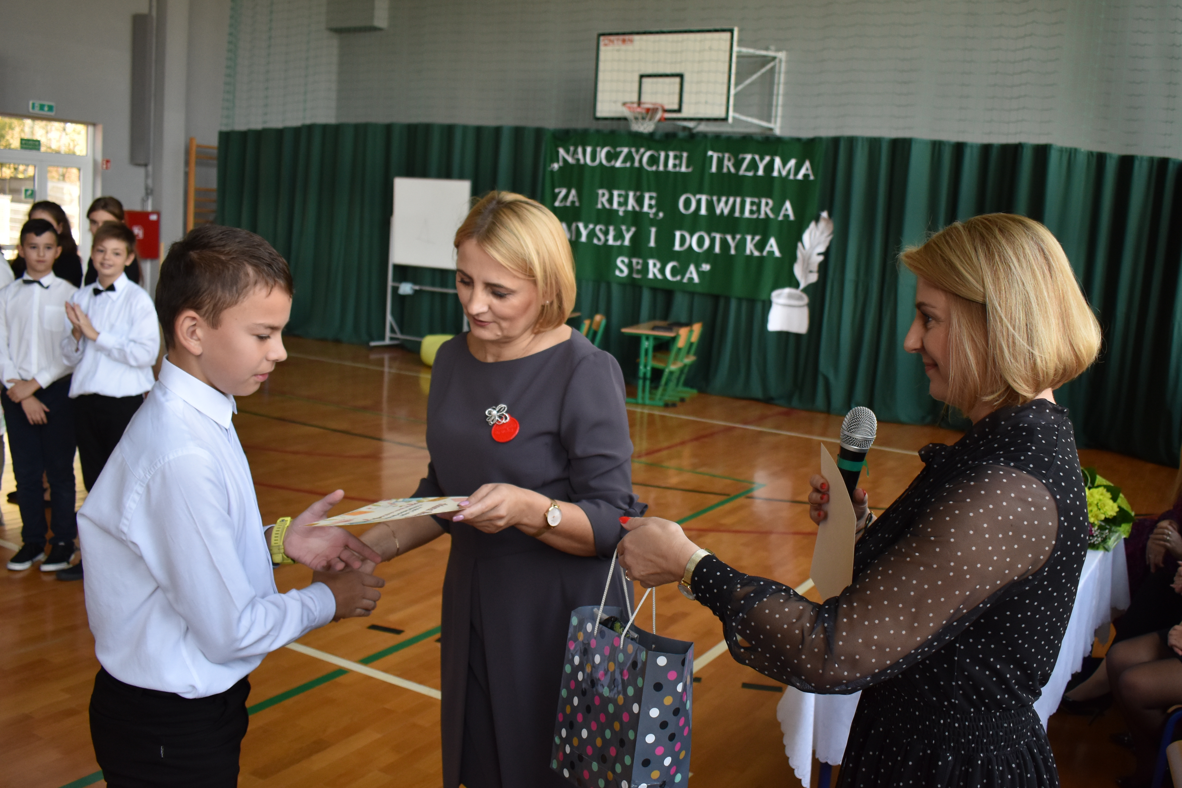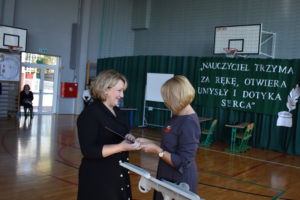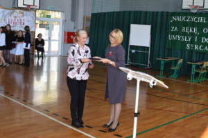 Podczas uroczystości zostały także wręczone przez dyrektora szkoły nagrody dla wyróżniających się nauczycieli i pracowników obsługi. Nagrodzeni też zostali przez swoich nauczycieli zwycięzcy dwóch konkursów z języka angielskiego oraz jednego polonistycznego – na najpiękniejsze życzenia dla nauczycieli.