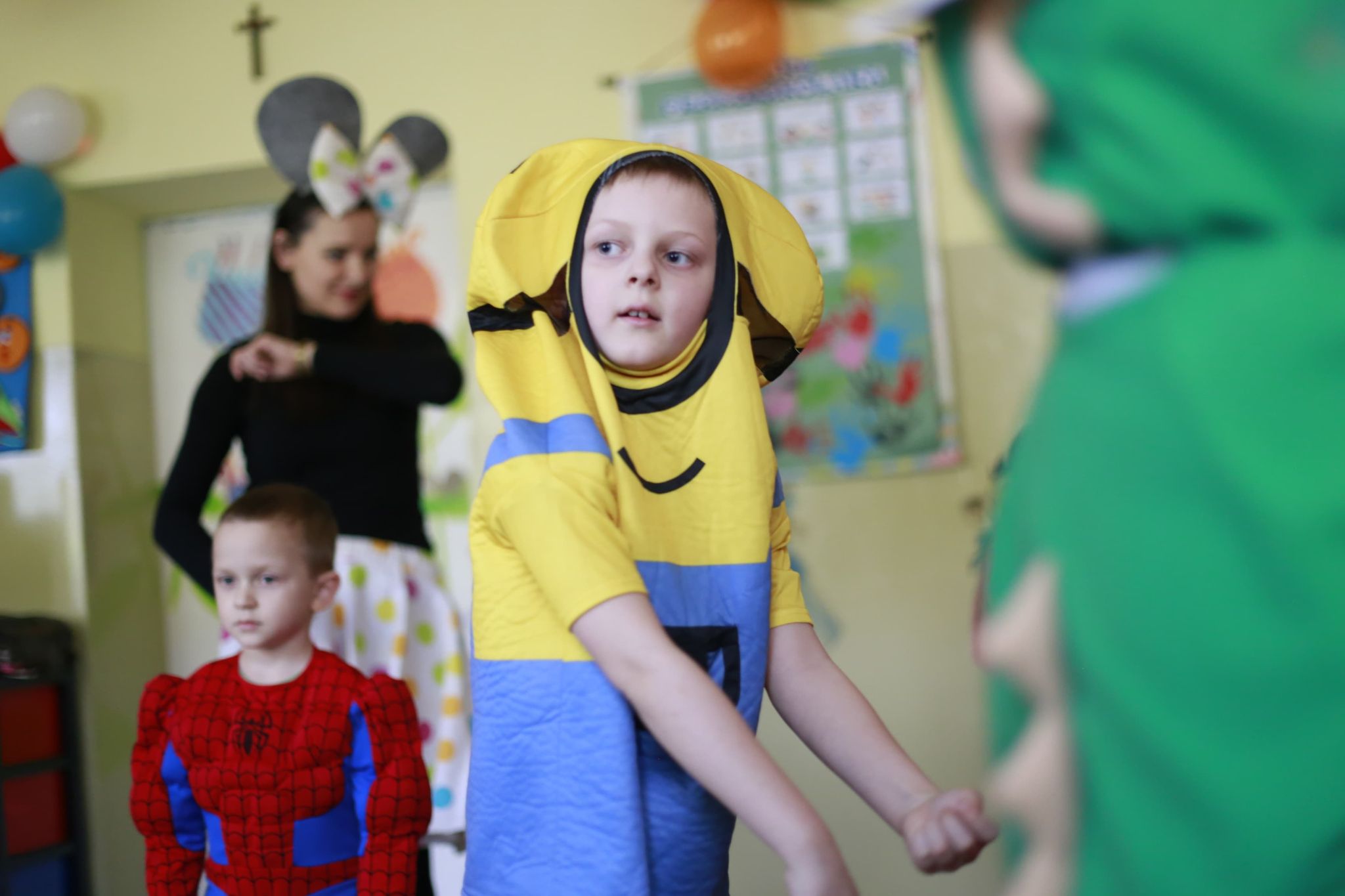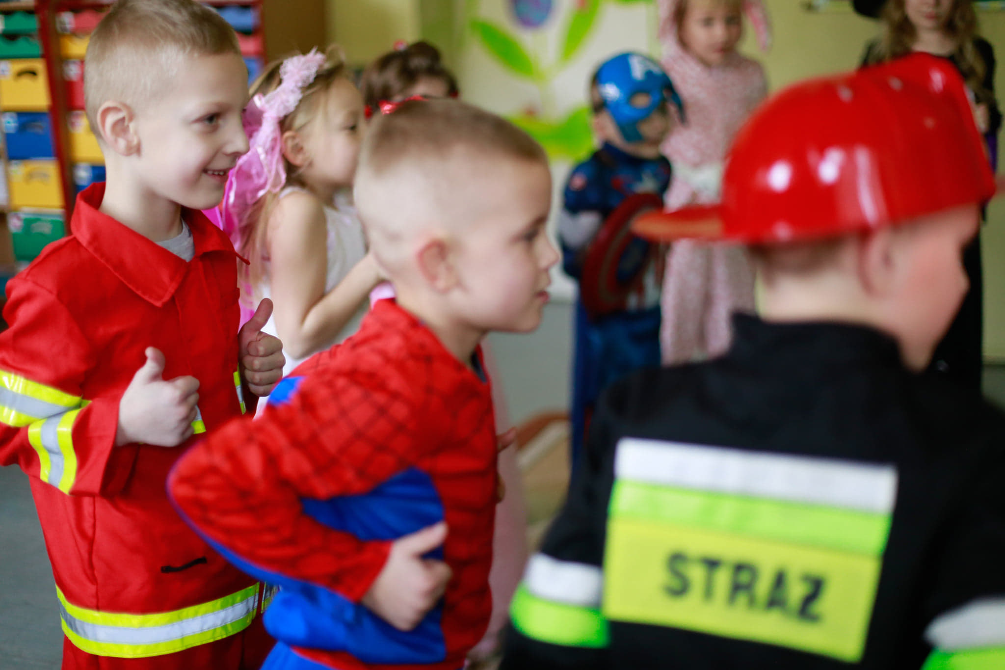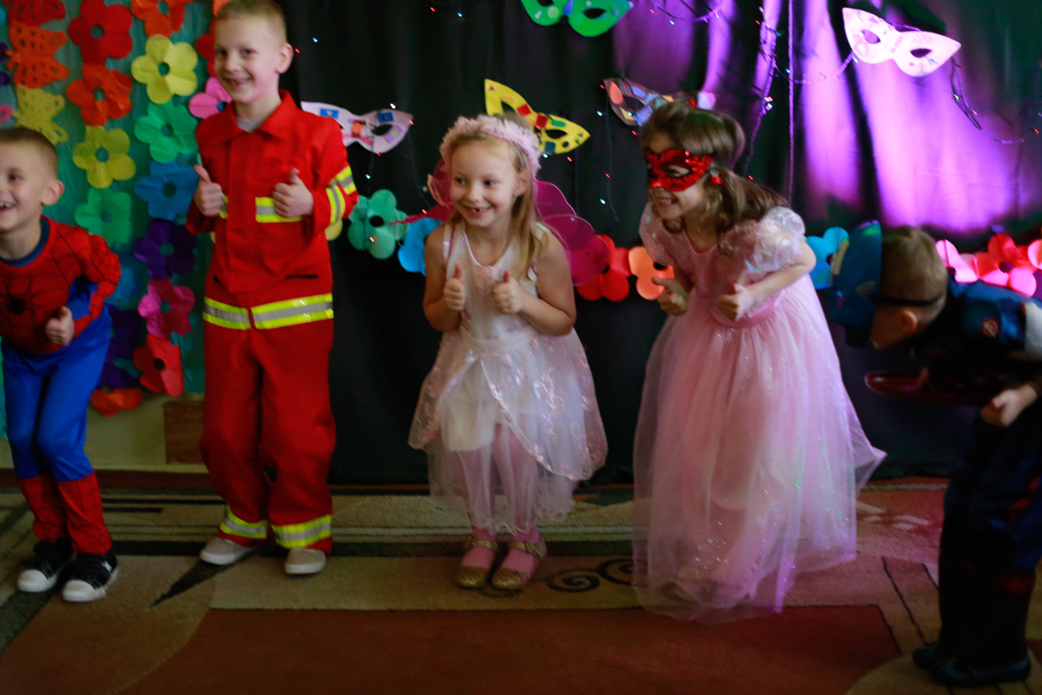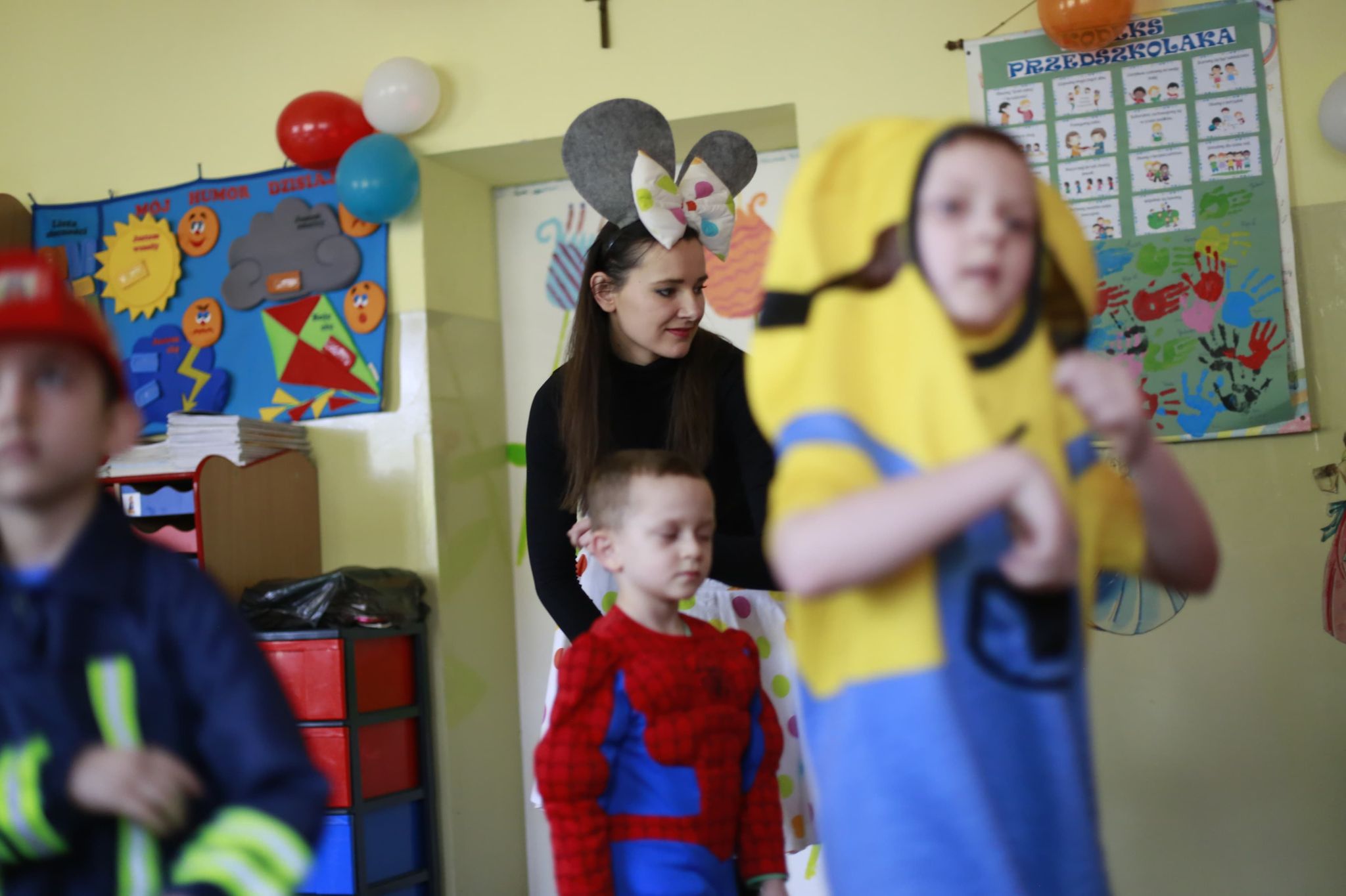 Bal karnawałowy dla przedszkolaków to dzień niezwykły, często wyczekiwany przez wiele tygodni. Jest atrakcją bardzo lubianą przez dzieci, dostarczającą im wielu przeżyć i radości. Tak też było u nas w dniu 4 lutego. Już od rana w przedszkolu pojawiały się kolorowe postacie. Dzieci przebrane były za bohaterów znanych bajek, w sali przedszkolnej można było spotkać wróżki, królewny, delikatne motylki, strażaków, Spider-Mana itd., nie sposób zliczyć i wymienić tych wszystkich postaci. Dzieci świetnie się bawiły w gronie swoich nauczycieli, którzy uatrakcyjnili bal różnymi zabawami i konkursami. Nauczycielki przedszkola dołożyły wszelkich starań, by wystrój sali balowej wprowadził dzieci w radosny, bajkowy nastrój oraz zachęcał do wesołej zabawy.