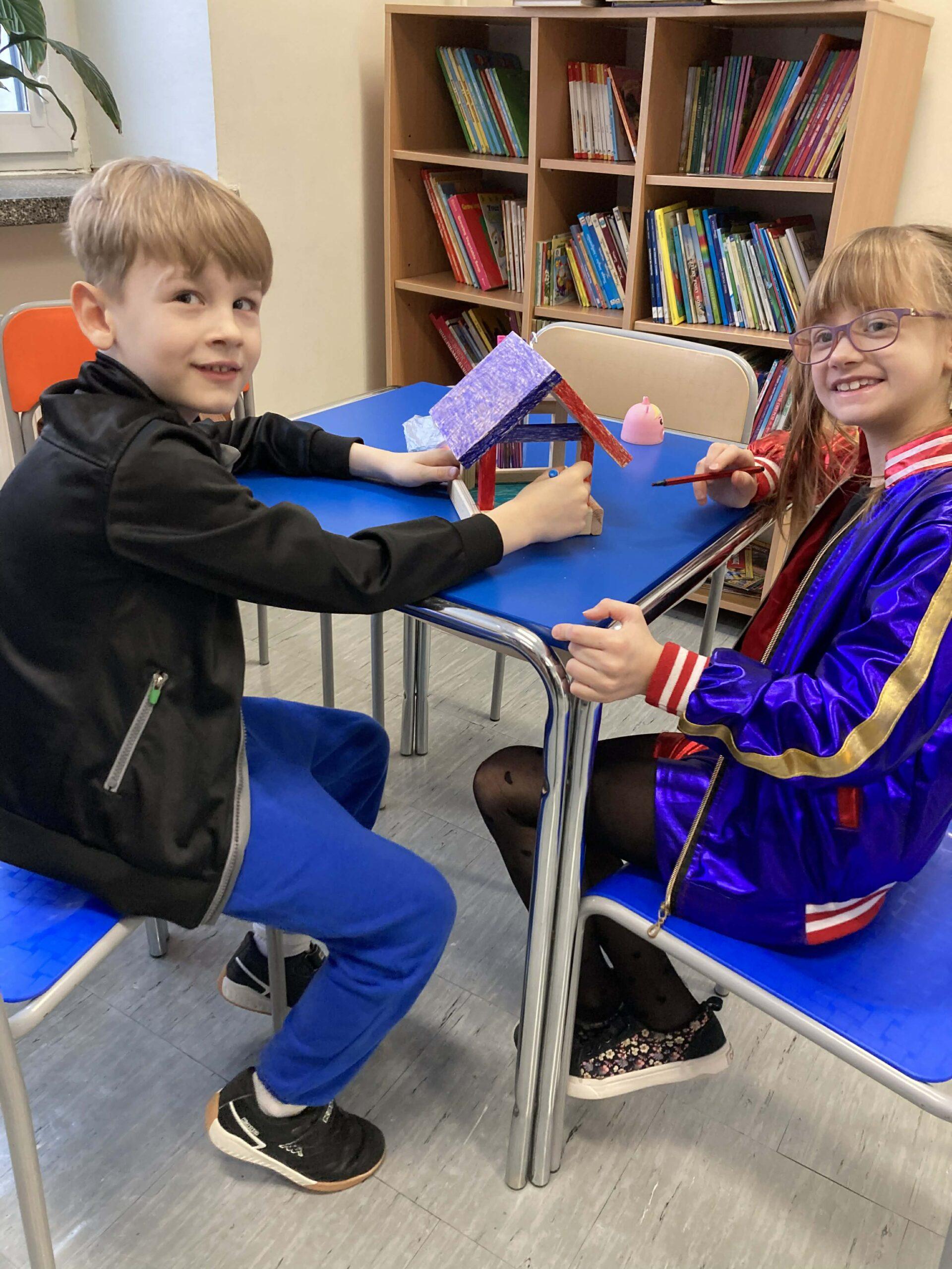 Dzięki zaangażowaniu Małego Samorządu zakupiono karmniki dla ptaków, które następnie trafiły w ręce naszych uczniów. Dzieci z ogromnym entuzjazmem przystąpiły do ich ozdabiania. Każdy karmnik został samodzielnie pomalowany i udekorowany przez uczniów – pojawiły się kolorowe wzory, zimowe pejzaże, motywy przyrodnicze oraz wiele kreatywnych pomysłów. Praca nad karmnikami była nie tylko świetną zabawą, ale także okazją do rozwijania zdolności plastycznych