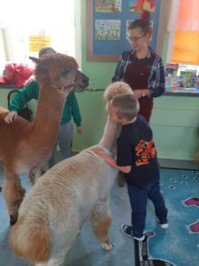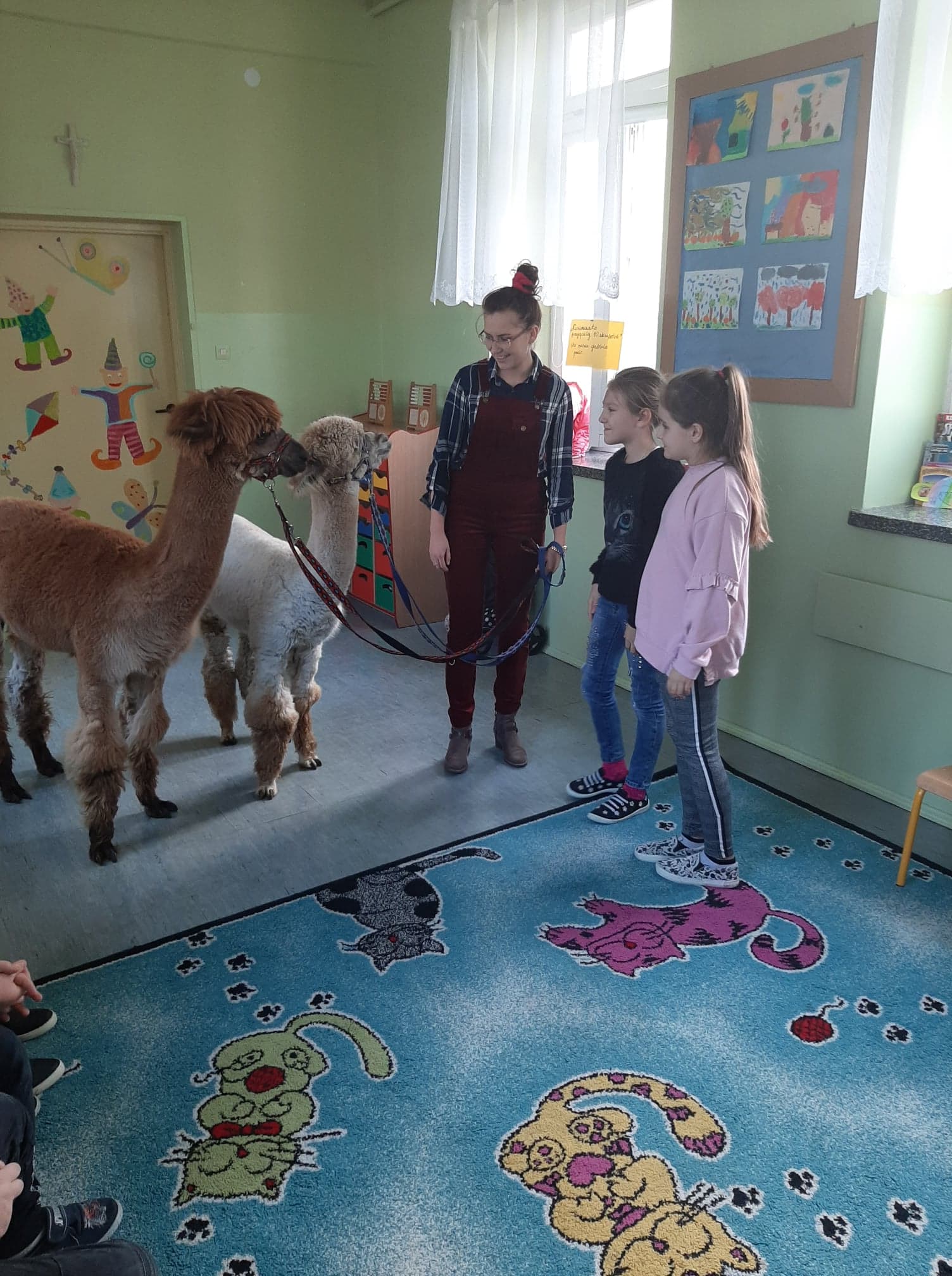 W dniu 29.11.2019r. naszą szkołę odwiedziła p. psycholog wraz z alpakami. W spotkaniu wzięła udział klasa 3b. Było to niezwykłe wydarzenie dla uczniów, ponieważ pierwszy raz miały okazję z bliska przyjrzeć się tym zwierzętom. Pani psycholog w ciekawy sposób opowiedziała nam o alpakach.