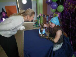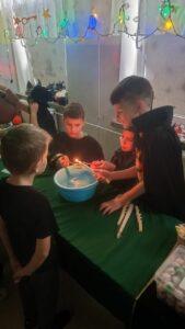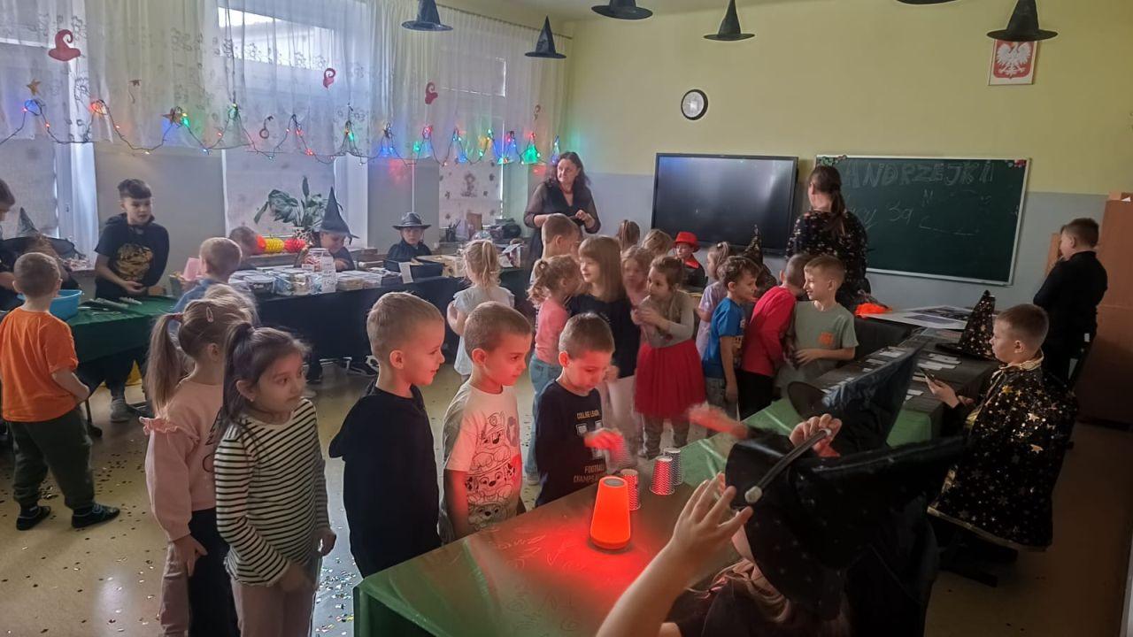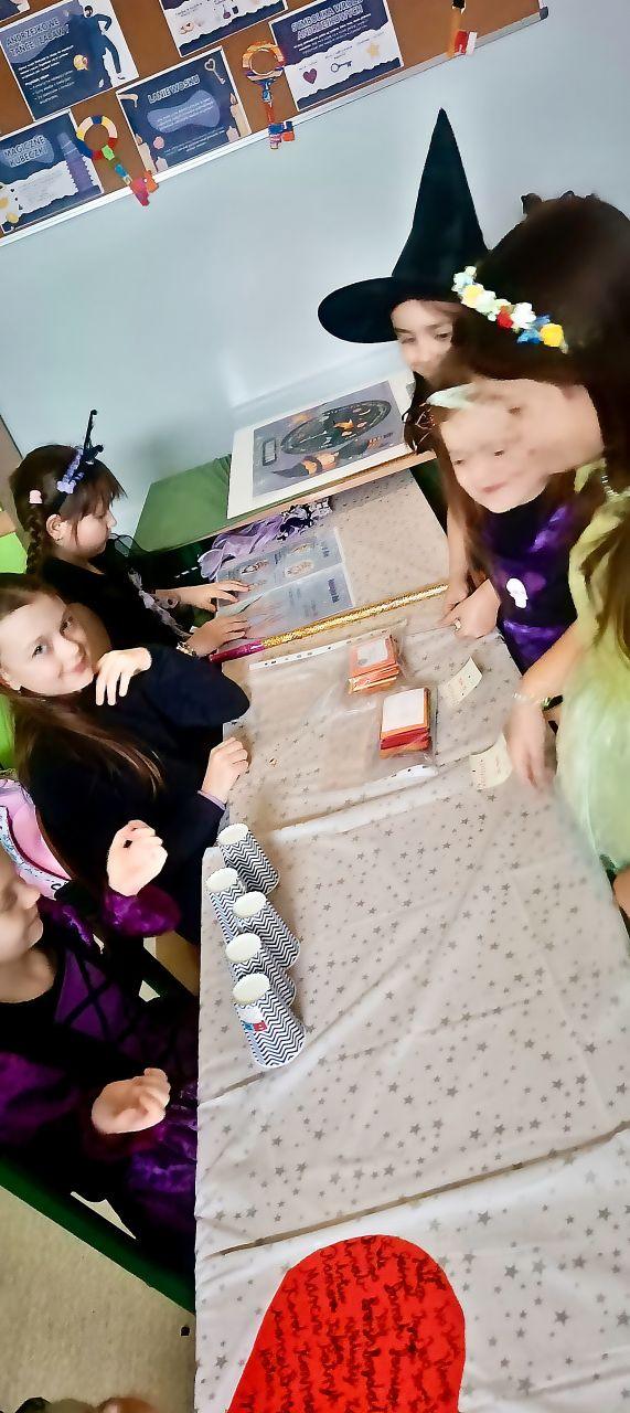 28 listopada nasza szkolna sala zmieniła się w prawdziwą komnatę magii, gdzie powietrze migotało jak gwiezdny pył, a każdy krok brzmiał jak szept zaklęć. Otworzyliśmy dla naszych młodszych kolegów bramę do świata wróżb. Na stołach pojawiły się zaczarowane karty, tajemnicze symbole, magiczne klucze i losy, które niczym błyszczące iskierki opowiadały o przyszłych przygodach, talentach i marzeniach. Mogliśmy zajrzeć w przyszłość tak, jakby zaglądały do kryształowej kuli pełnej gwiazd. W powietrzu unosił się również zapach czarująco pysznych słodkości — kiermasz łakoci kusił niczym magiczny ogród, w którym każdy smakołyk miał moc wywoływania uśmiechu większego niż promień słońca w zimowy dzień. Aparaty fotograficzne migały niczym zaklęcia światła, zatrzymując w kadrze nasze radosne twarze, iskrzące oczy i wszystkie te momenty, które pachniały przygodą i czarem. Zdjęcia będą jak maleńkie talizmany, które pozwolą nam wrócić do tej zaczarowanej chwili, kiedy magia naprawdę mieszkała między nami. To był dzień, w którym rzeczywistość lekko się uchyliła, pozwalając nam zajrzeć do świata fantazji. Dziękujemy wszystkim naszym gościom za tę magiczną przygodę.