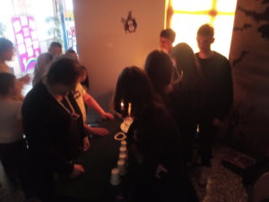 W środę (1 grudnia) w nastroju magii, latających nietoperzy i czarownic bawiliśmy się andrzejkowo w naszej szkole. Samorząd Uczniowski przygotował zabawy i wróżby dla wszystkich, m.in.: lanie wosku, przestawianie butów, czyli kto pierwszy wyjdzie za mąż, serca z imionami (czyli, jak będzie miał na imię twój wybranek), była również kula przepowiadająca przyszłość oraz własnoręcznie pieczone ciasteczka z wróżbami.