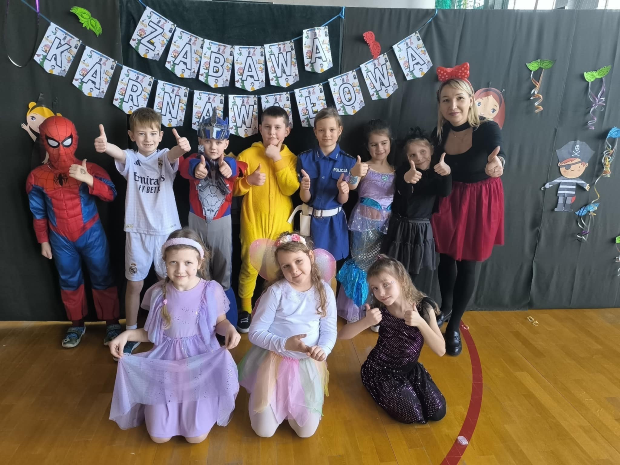 Karnawał to miła tradycja przepełniona muzyką i zabawą. 30 stycznia w naszej szkole odbył się bal karnawałowy, na którym bawiły się dzieci z grup przedszkolnych oraz uczniowie klas I-III. Dzieci wcieliły się w różne postacie bajkowe. Zamieniły się w królewny, księżniczki, wróżki, biedronki, spidermanów, piratów, strażaków czy policjantów. Przebierańcy świetnie bawili się, uczestnicząc we wspólnych zabawach, a skoczna i rytmiczna muzyka zachęcała do tańca. Wszystkim zabawom towarzyszył śmiech, radość i spontaniczna aktywność dzieci, a cały bal karnawałowy przebiegł w miłej, serdecznej atmosferze i dostarczył niezapomnianych wrażeń. W trakcie karnawałowych szaleństw był czas na słodką przekąskę, jak również na pamiątkowe zdjęcia.