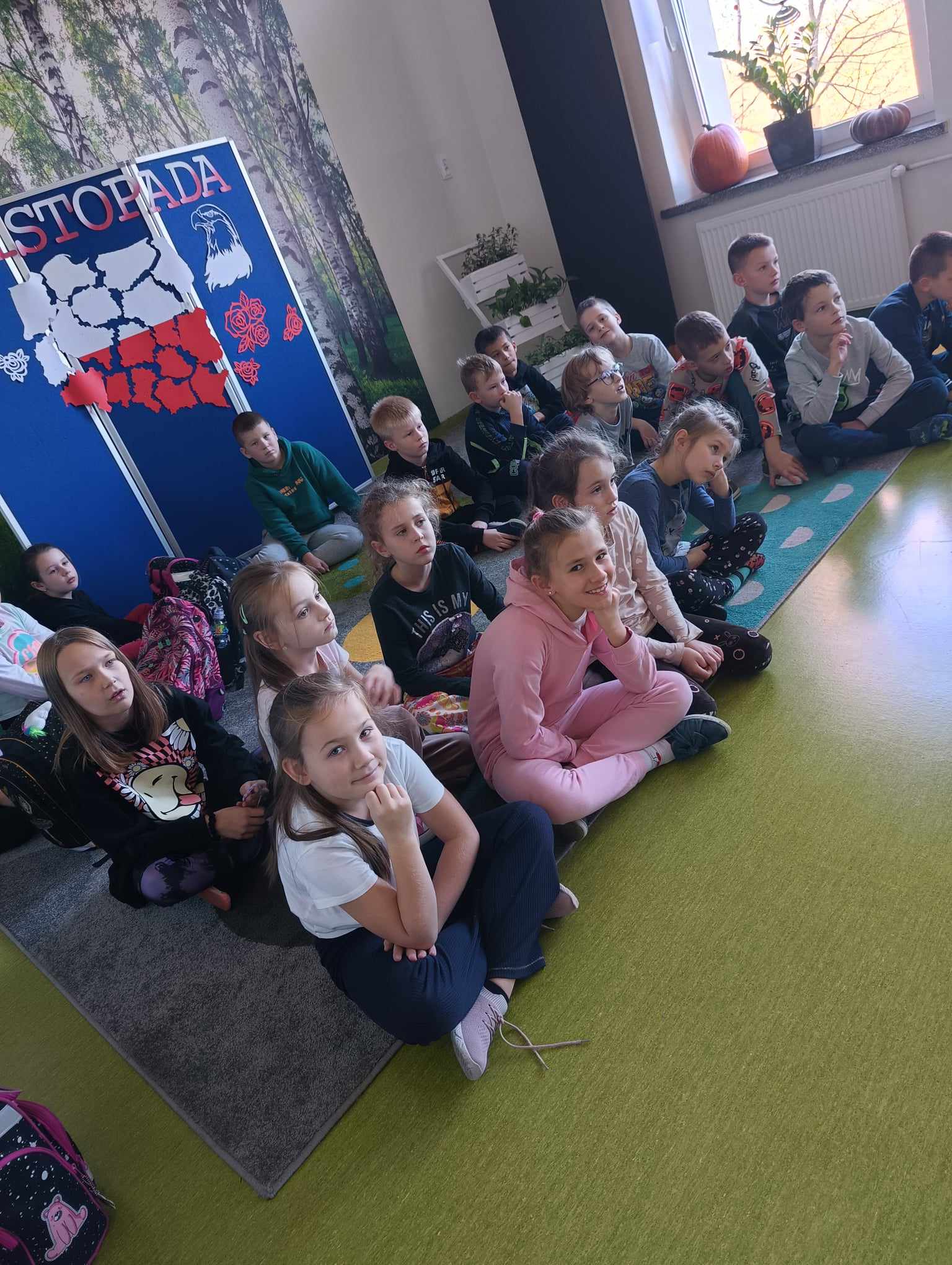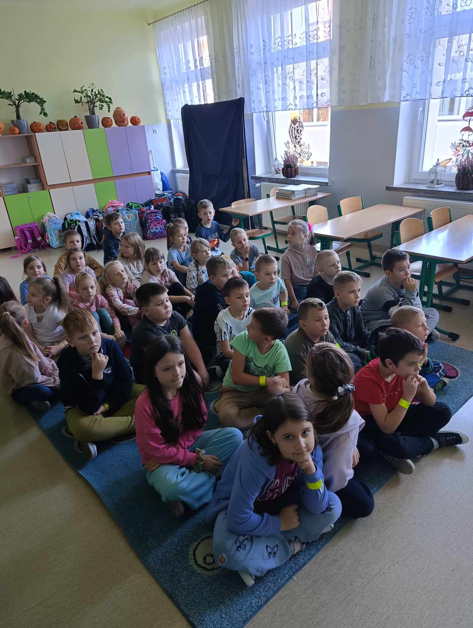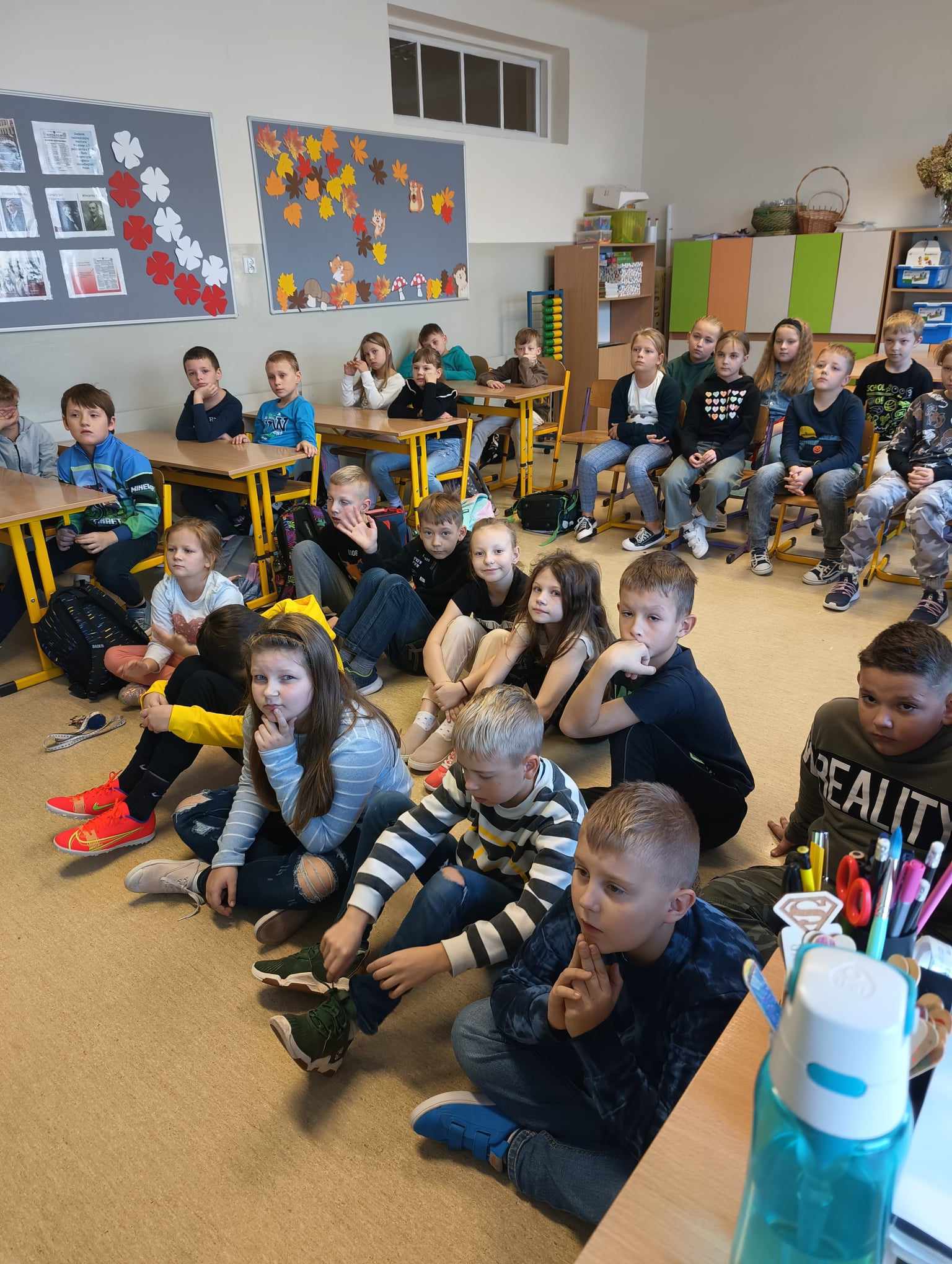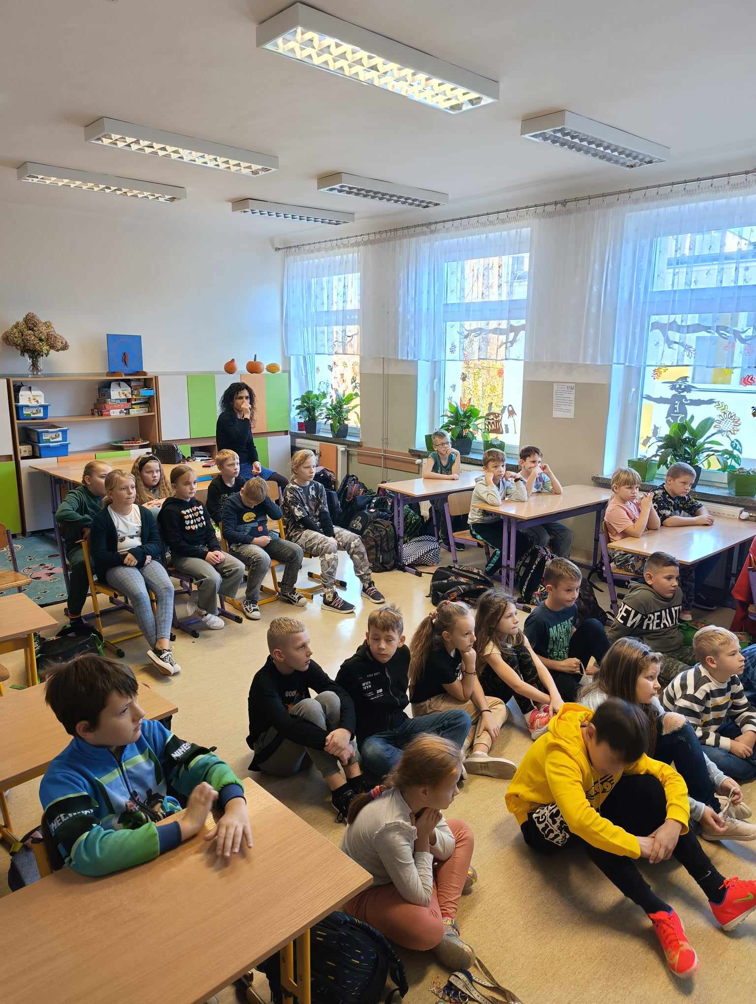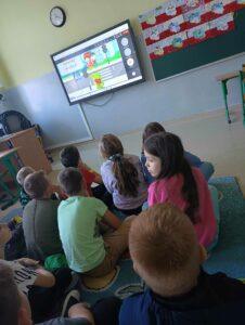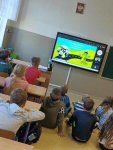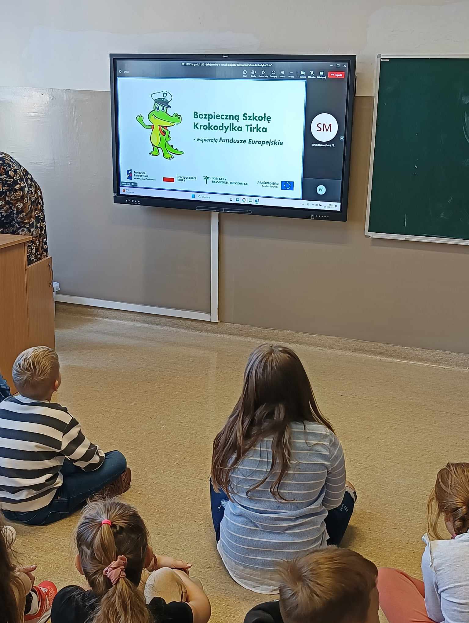 „Bezpieczna Szkoła Krokodylka Tirka” jest inicjatywą Głównego Inspektoratu Transportu Drogowego skierowaną do najmłodszych uczestników ruchu drogowego tj. do przedszkolaków i uczniów klas 1-3. Głównym celem tego projektu jest kształtowanie świadomości dzieci w zakresie bezpieczeństwa na drodze oraz promowanie i przestrzeganie zasad bezpieczeństwa ruchu drogowego, a w konsekwencji ochrona jego najmłodszych uczestników. W ramach tej akcji dn. 9 listopada 2023 r. odbyło się edukacyjne spotkanie dzieci klas 1 – 3 naszej szkoły z Inspektorem Transportu Drogowego. Lekcja z Tirkiem miała interaktywny charakter, a wykorzystywane narzędzia edukacyjne w postaci m. in. prezentacji multimedialnej, umożliwiły uczniom aktywne uczestnictwo w zajęciach. Spotkanie uatrakcyjnione było także animowanymi filmami, których głównym bohaterem był krokodylek Tirek. Atrakcyjna forma przekazywanej wiedzy oraz nauka poprzez zabawę pozwoliła dzieciom utrwalić podstawowe zasady bezpieczeństwa, przepisy obowiązujące na drogach i stać się świadomym uczestnikiem ruchu drogowego.