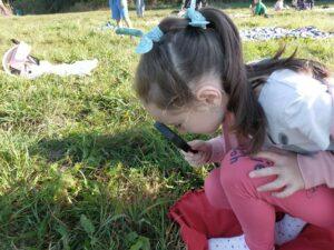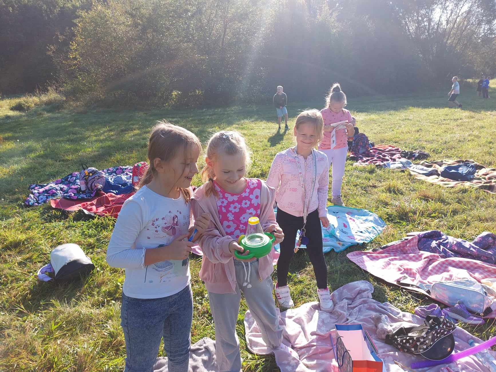 Kształtowanie właściwych postaw wobec środowiska naturalnego należy rozpocząć od najmłodszych lat. Jednym ze skutecznych czynników aktywizujących jest kontakt z przyrodą poprzez obserwacje bezpośrednie. Na zajęciach uczniowie klasy 2a postanowili sprawdzić, jak wygląda świat przyrody pod lupą. Zaopatrzeni w niezbędny sprzęt, wybraliśmy się na teren szkoły w poszukiwaniu mieszkańców traw. W atmosferze zabawy, uczniowie mogli dowiedzieć się jak wygląda Konik Polny (skaczący szarańczak) jeden z najsympatyczniejszych owadów, z jakimi mamy styczność, uwieczniony w bajkach i baśniach, sprawdzić ile pierścieni ma dżdżownica, gdzie pająki snują swe sieci. Poprzez swoje obserwacje dzieci zbliżyły się do świata przyrody, dowiedziały się, jak ważne jest dbanie o środowisko naturalne.