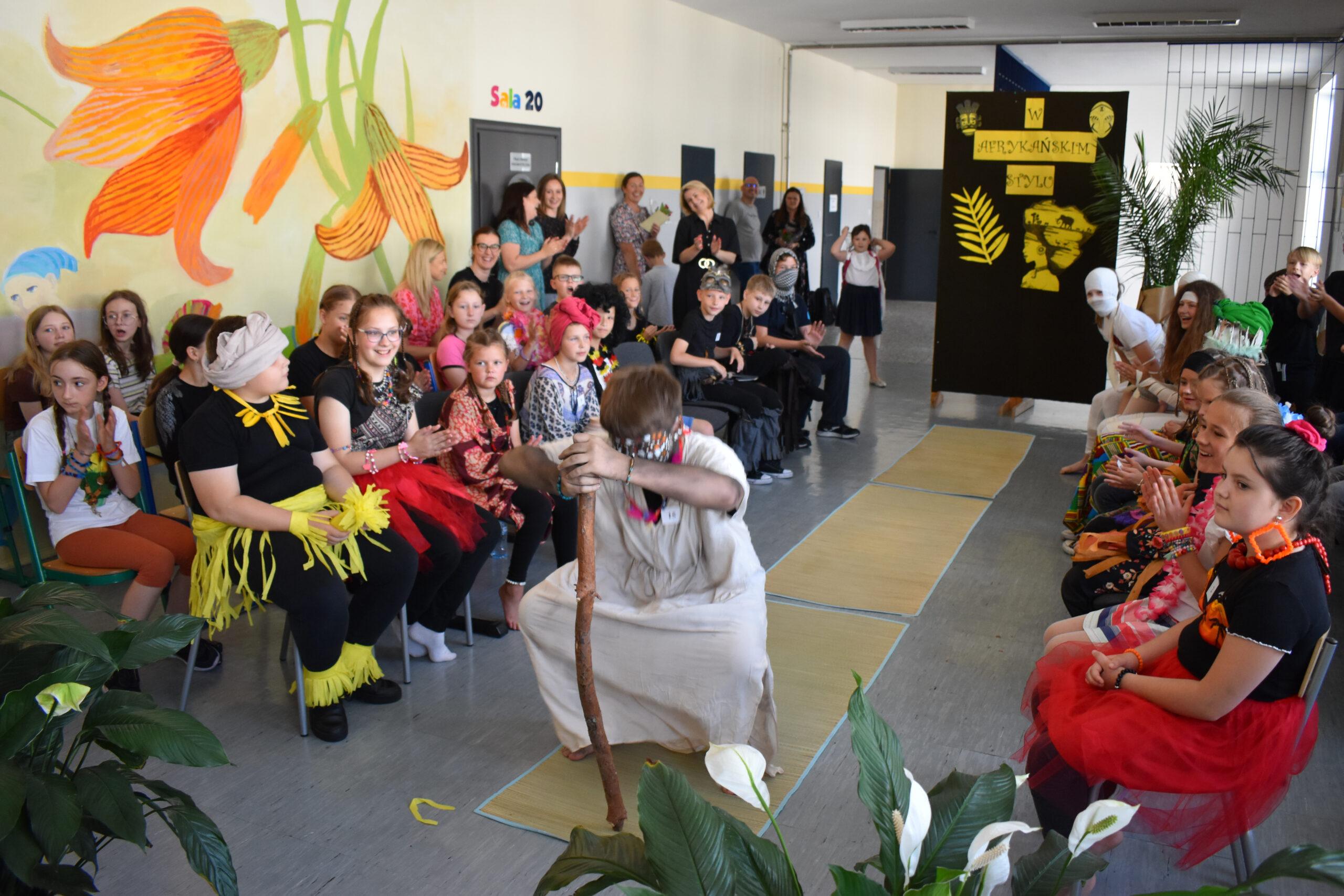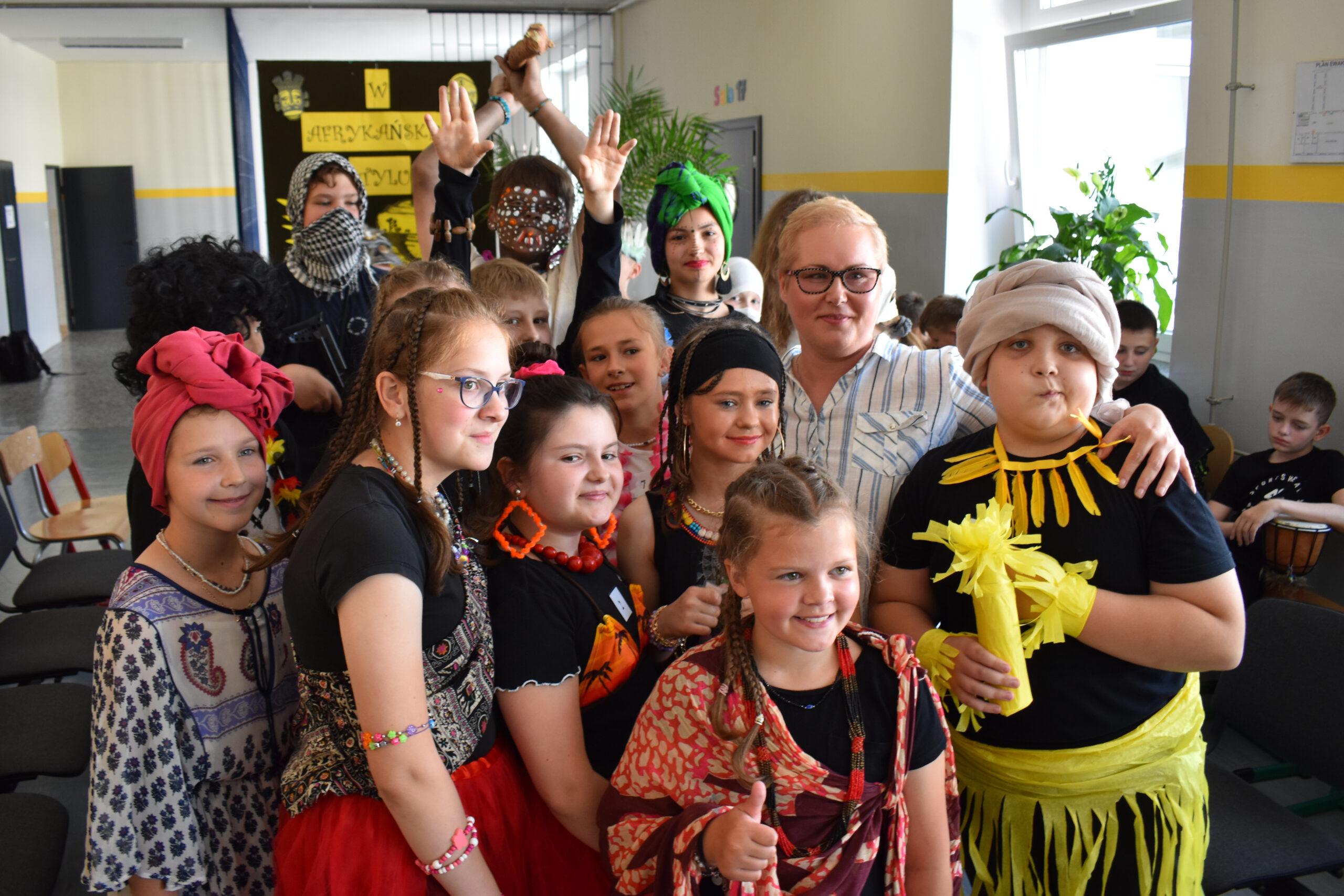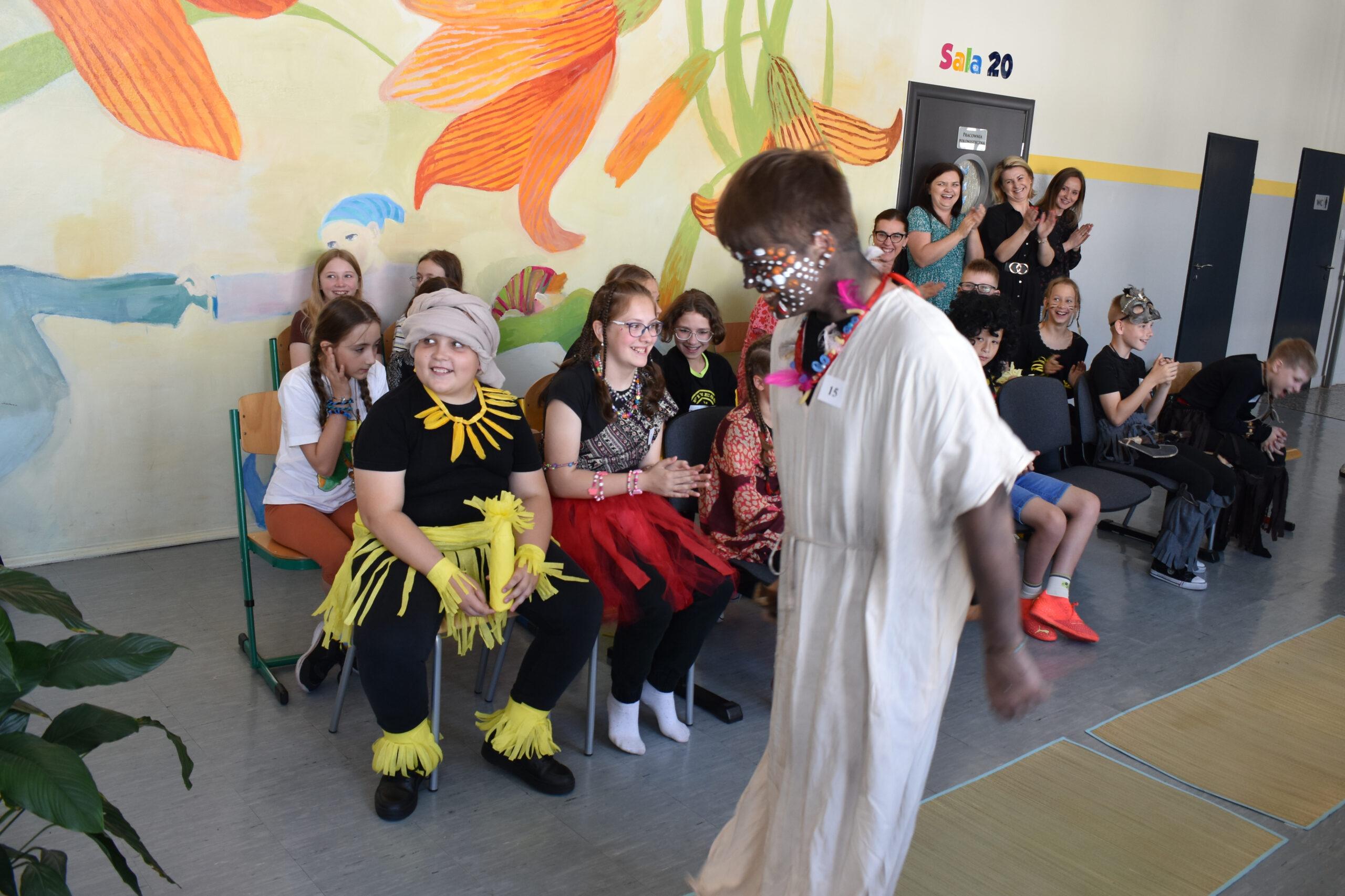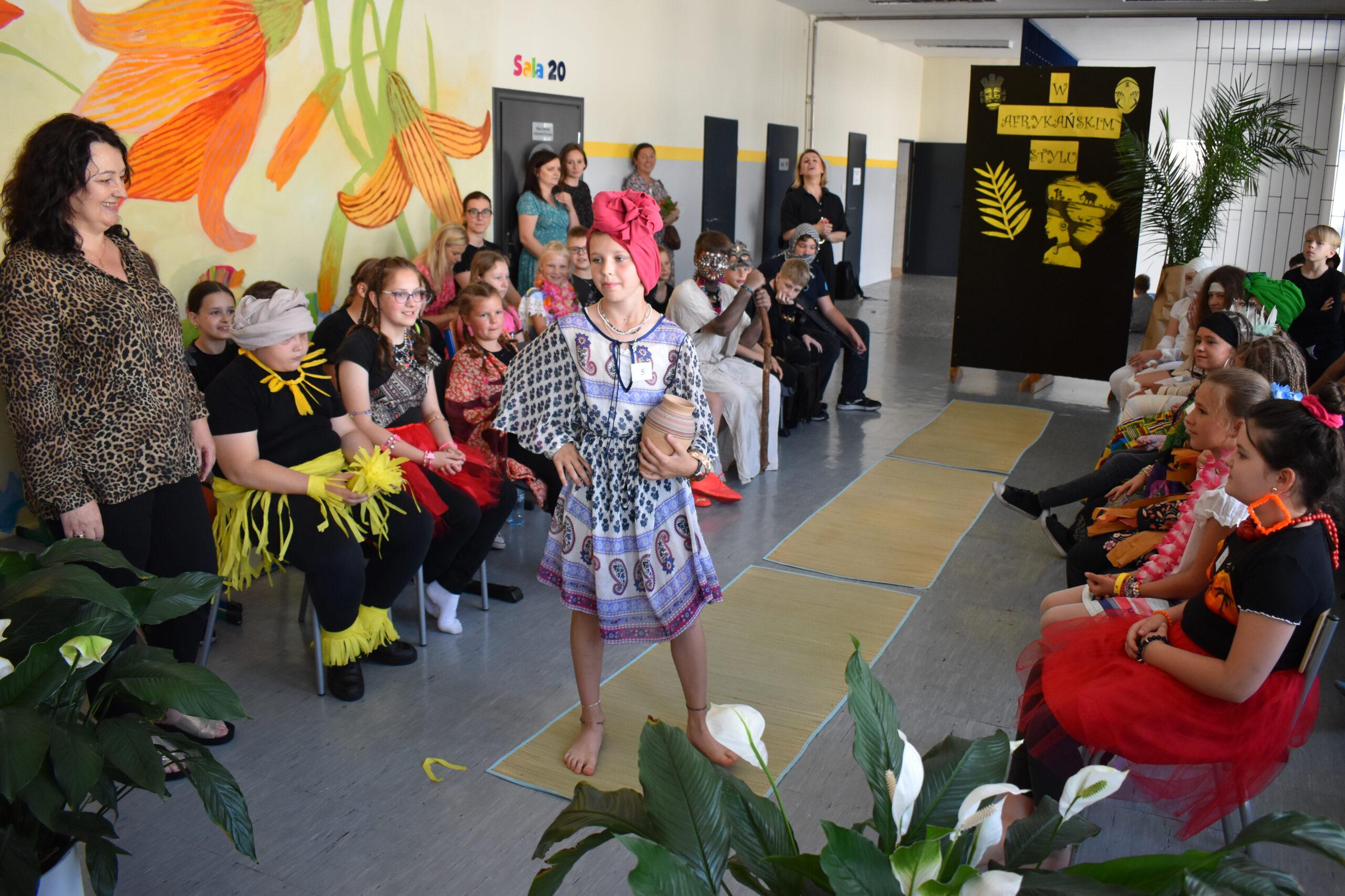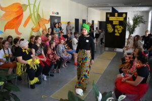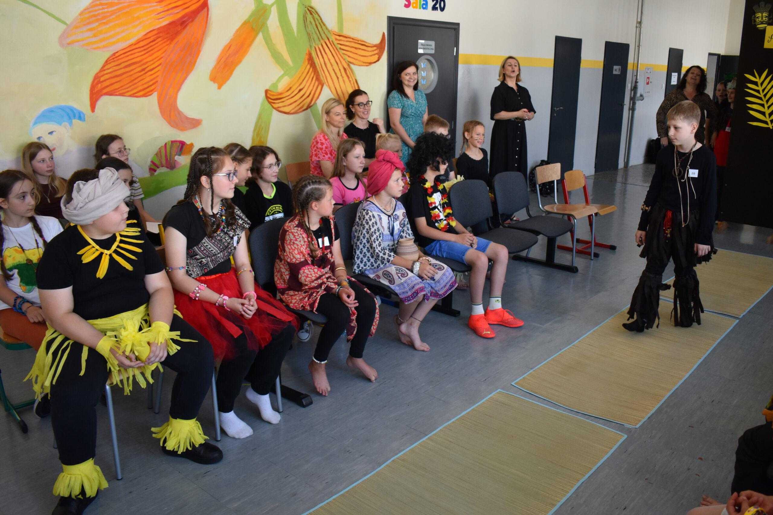 24 maja w naszej szkole odbyło się niecodzienne wydarzenie. Opiekunki Szkolnego Koła Turystycznego „Włóczykije” wraz z grupą młodych pasjonatów turystyki zorganizowały Dzień Afryki. Pomysł zrodził się z okazji obchodzonego corocznie 25 maja Święta Jedności Afrykańskiej. Zostało ono ustanowione na pamiątkę powołania 25 maja 1963 roku Organizacji Jedności Afrykańskiej.Obchody tego święta rozpoczęły się od powitania przez panią dyrektor M. Trelkę gościa honorowego, podróżniczkę i pasjonatkę Afryki – Katarzynę Tomasik. Podczas spotkania z uczniami pani Kasia podzieli się doświadczeniami, wrażeniami i ciekawostkami ze swoich afrykańskich przygód. Zaprezentowała zdjęcia i filmy, pokazujące piękno i różnorodność przyrody, kultury i ludzi Czarnego Lądu. Spotkanie przebiegało w bardzo wesołej atmosferze. Nie brakowało anegdot i dowcipów, które sprawiły, że uczestnicy spotkania zobaczyli Afrykę zupełnie z innej perspektywy. Poruszane były również tematy trudne, tj. brak dostępu do wody pitnej oraz bieda i ubóstwo. Ciekawym punktem w harmonogramie obchodów tego święta w naszej szkole był pokaz strojów rodem z Afryki. Spora grupka uczniów wcieliła się w rolę modeli i na przygotowanym wybiegu zaprezentowała stroje w afrykańskim stylu. Wszyscy występujący wiernie odtworzyli charakterystyczne elementy stroju. Najciekawsze przebrania zostały nagrodzone gorącymi brawami i symbolicznymi nagrody. Ten dzień był pełen pozytywnych emocji. Dostarczył uczniom wielu cennych informacji na temat zasad bezpiecznego podróżowania oraz przybliżył im klimat tak bardzo odległego kontynentu, jakim jest Afryka. Tematyka krajoznawcza wywołała zaskoczenie słuchaczy i wzbudziła ich zaciekawienie, co sprawiło, że spotkanie cieszyło się dużym zainteresowaniem.