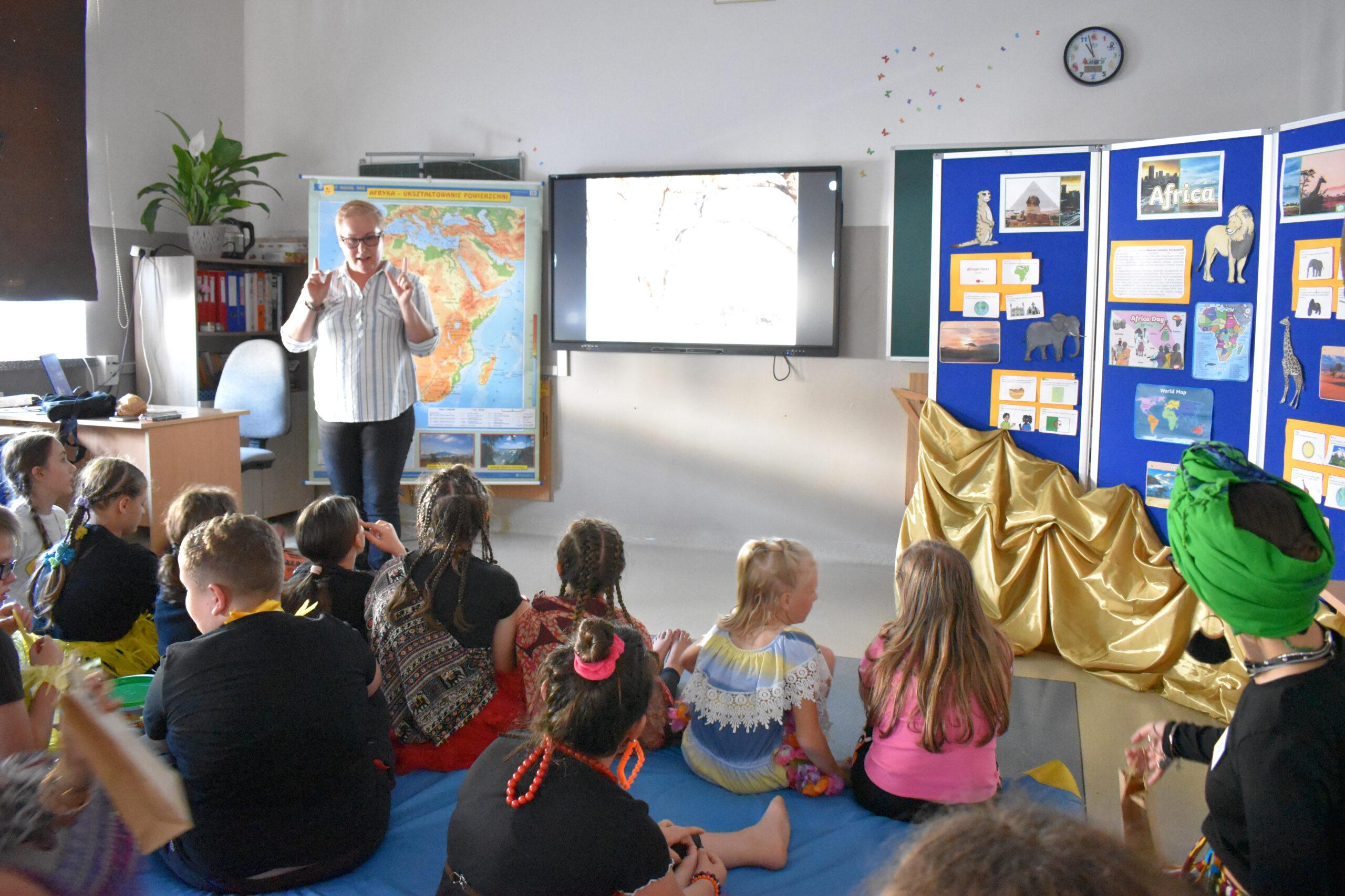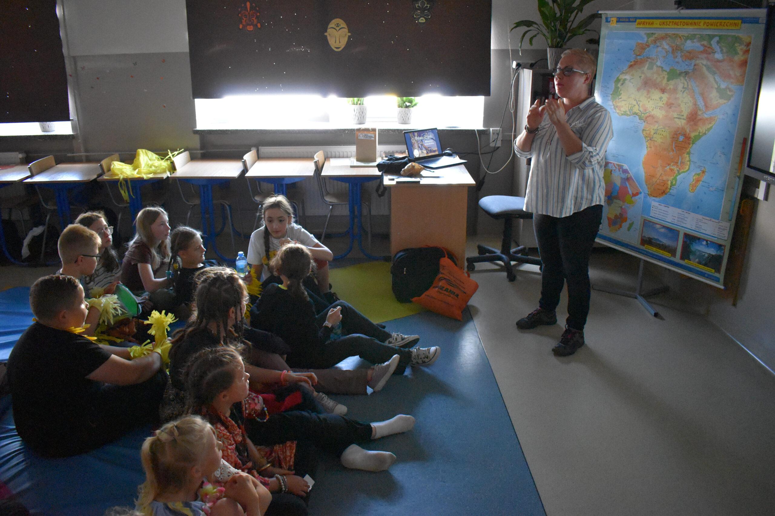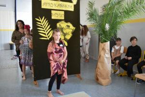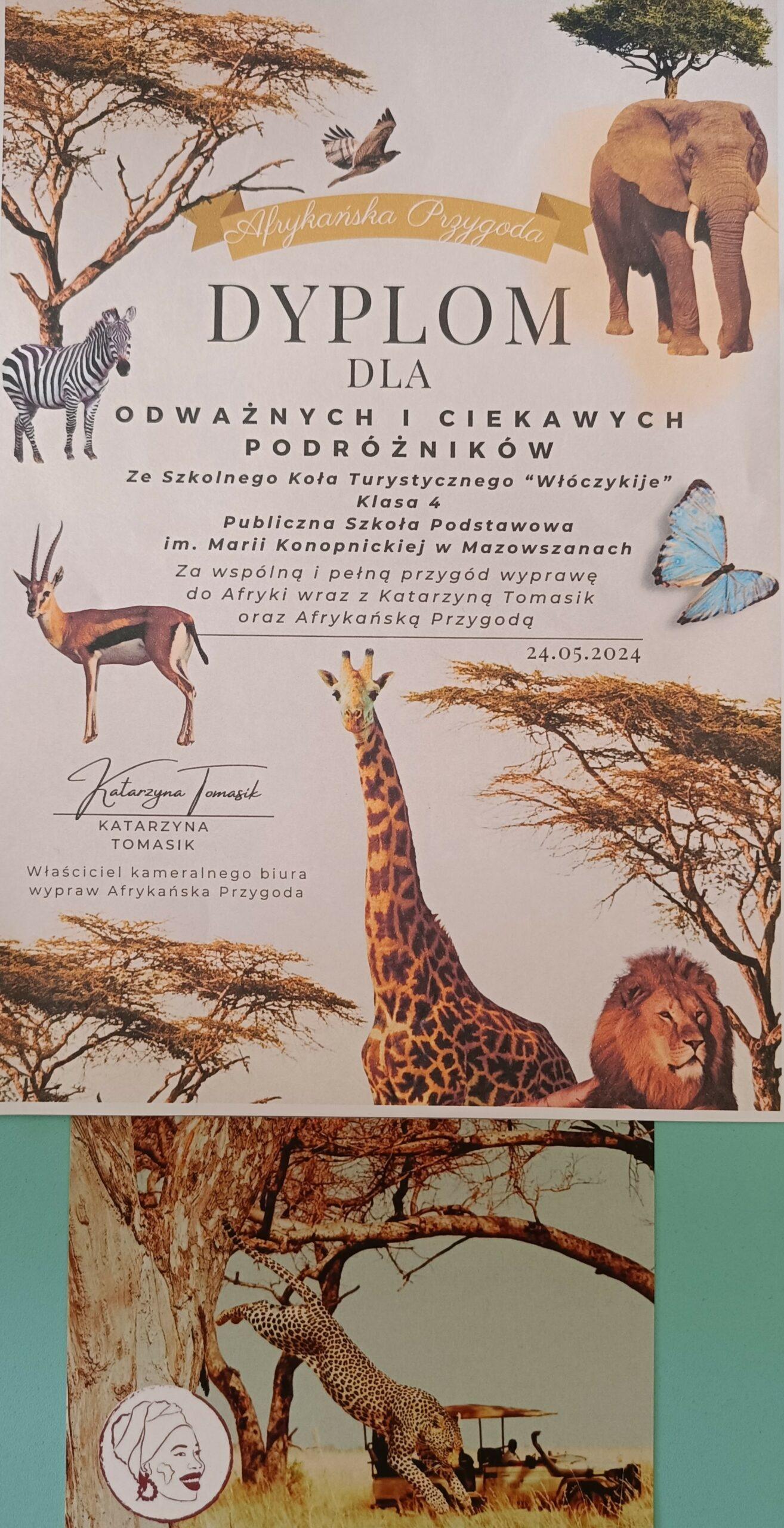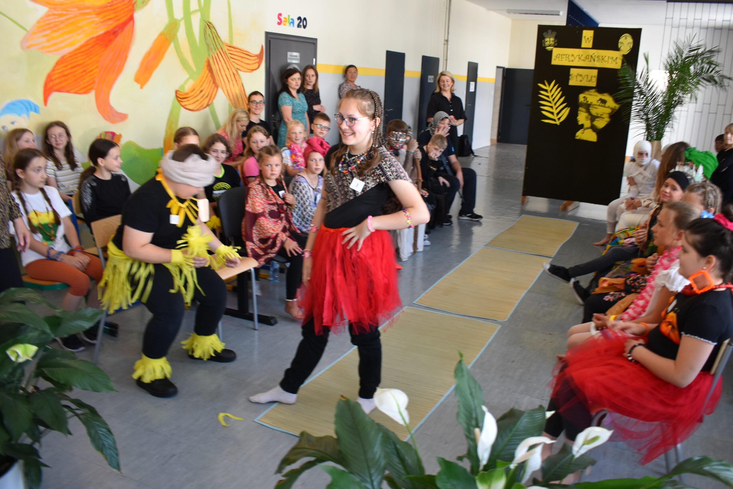 24 maja w naszej szkole odbyło się niecodzienne wydarzenie. Opiekunki Szkolnego Koła Turystycznego „Włóczykije” wraz z grupą młodych pasjonatów turystyki zorganizowały Dzień Afryki. Pomysł zrodził się z okazji obchodzonego corocznie 25 maja Święta Jedności Afrykańskiej. Zostało ono ustanowione na pamiątkę powołania 25 maja 1963 roku Organizacji Jedności Afrykańskiej.Obchody tego święta rozpoczęły się od powitania przez panią dyrektor M. Trelkę gościa honorowego, podróżniczkę i pasjonatkę Afryki – Katarzynę Tomasik. Podczas spotkania z uczniami pani Kasia podzieli się doświadczeniami, wrażeniami i ciekawostkami ze swoich afrykańskich przygód. Zaprezentowała zdjęcia i filmy, pokazujące piękno i różnorodność przyrody, kultury i ludzi Czarnego Lądu. Spotkanie przebiegało w bardzo wesołej atmosferze. Nie brakowało anegdot i dowcipów, które sprawiły, że uczestnicy spotkania zobaczyli Afrykę zupełnie z innej perspektywy. Poruszane były również tematy trudne, tj. brak dostępu do wody pitnej oraz bieda i ubóstwo. Ciekawym punktem w harmonogramie obchodów tego święta w naszej szkole był pokaz strojów rodem z Afryki. Spora grupka uczniów wcieliła się w rolę modeli i na przygotowanym wybiegu zaprezentowała stroje w afrykańskim stylu. Wszyscy występujący wiernie odtworzyli charakterystyczne elementy stroju. Najciekawsze przebrania zostały nagrodzone gorącymi brawami i symbolicznymi nagrody. Ten dzień był pełen pozytywnych emocji. Dostarczył uczniom wielu cennych informacji na temat zasad bezpiecznego podróżowania oraz przybliżył im klimat tak bardzo odległego kontynentu, jakim jest Afryka. Tematyka krajoznawcza wywołała zaskoczenie słuchaczy i wzbudziła ich zaciekawienie, co sprawiło, że spotkanie cieszyło się dużym zainteresowaniem.