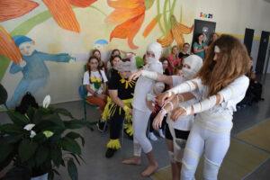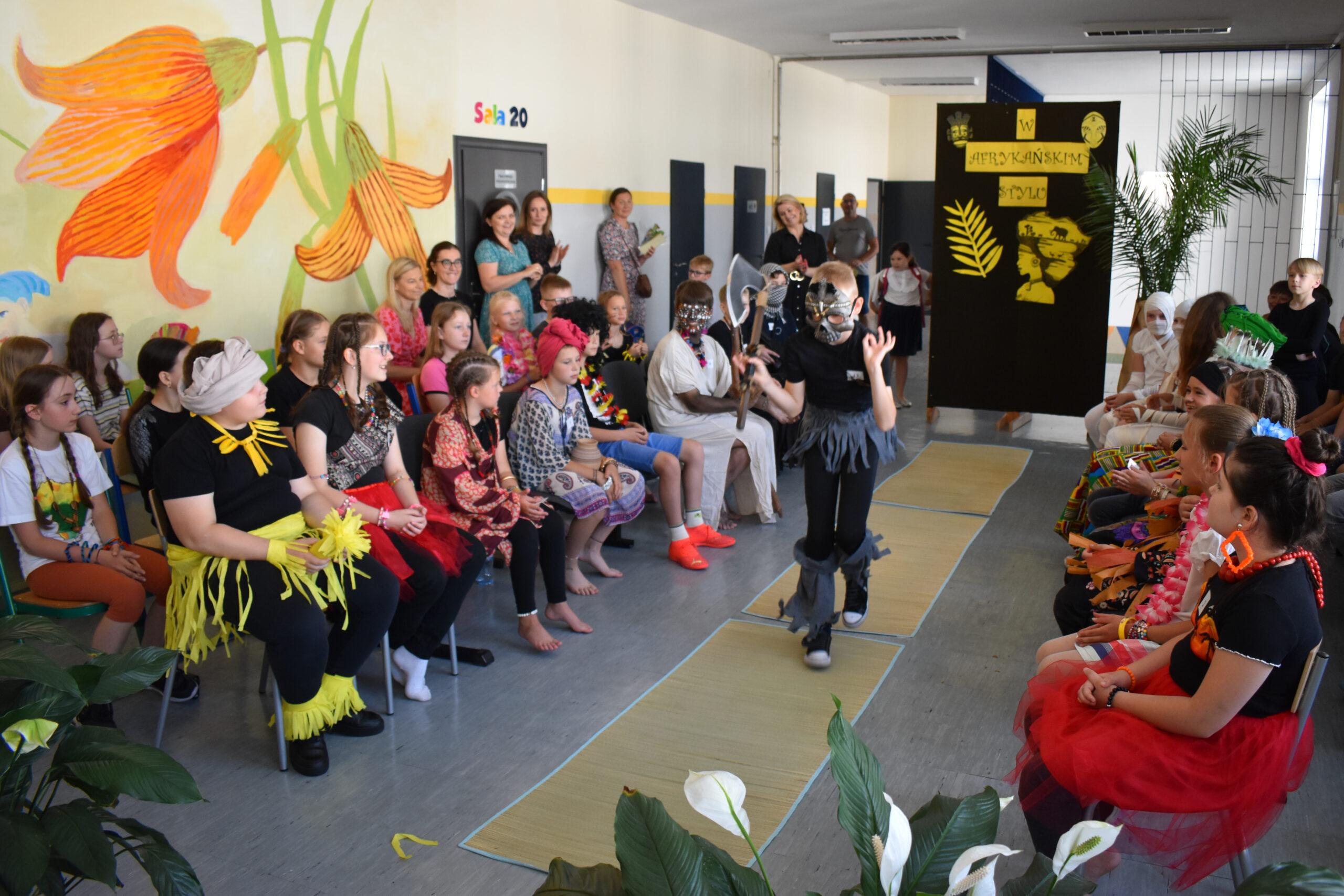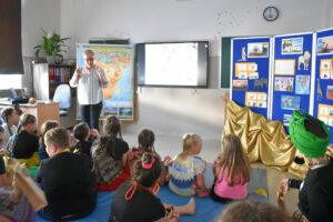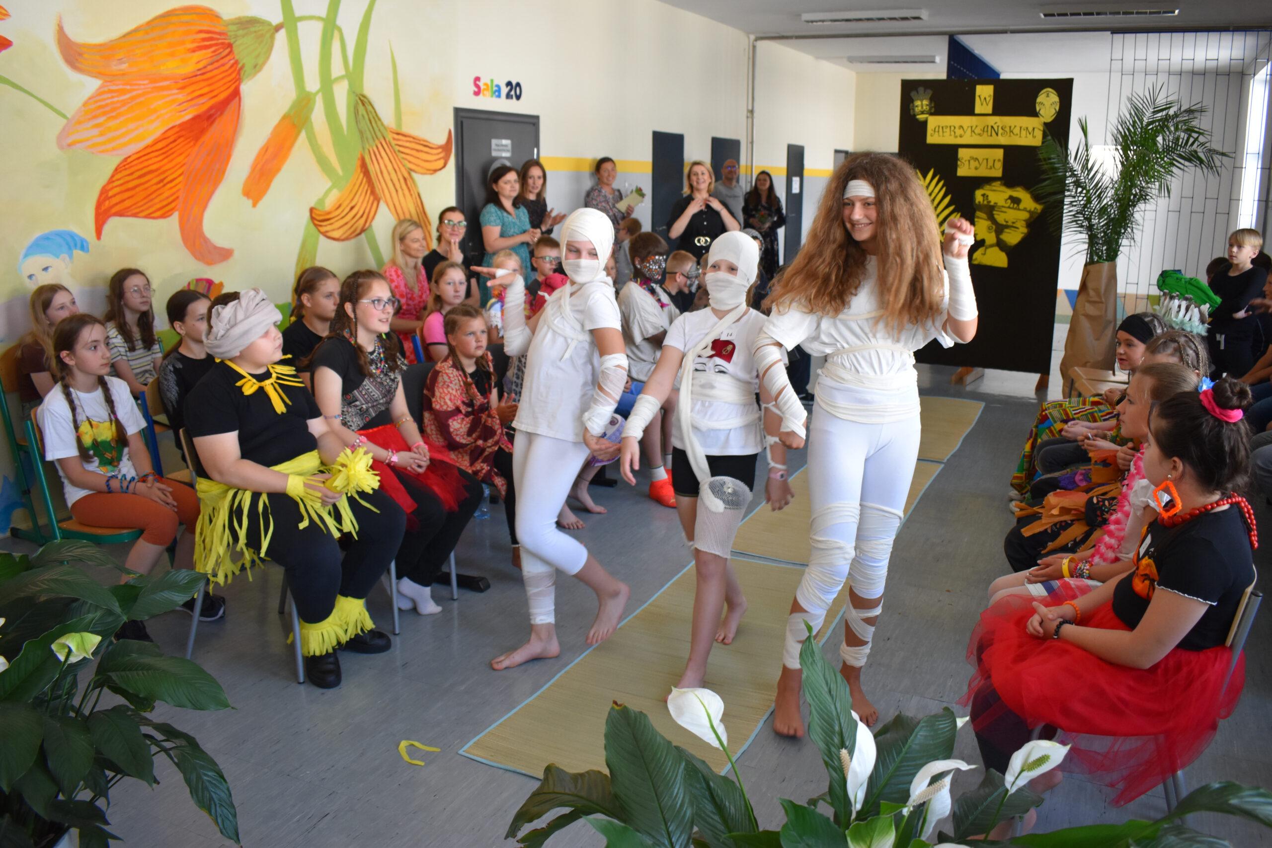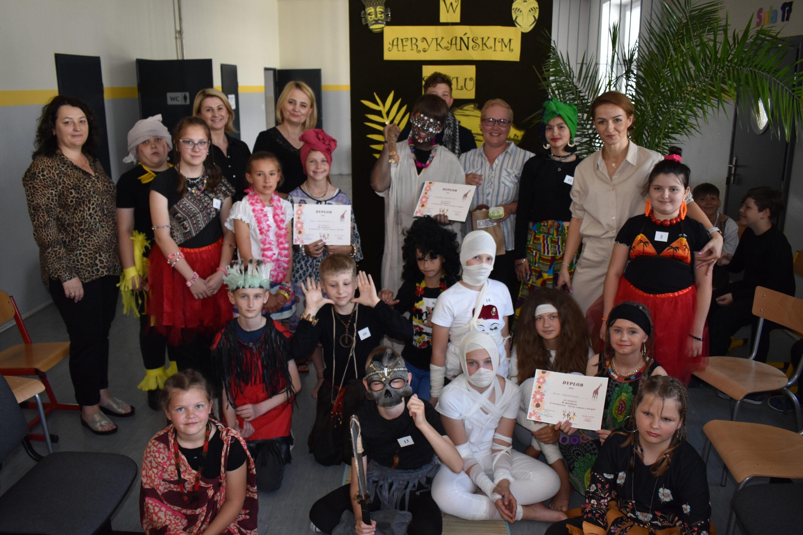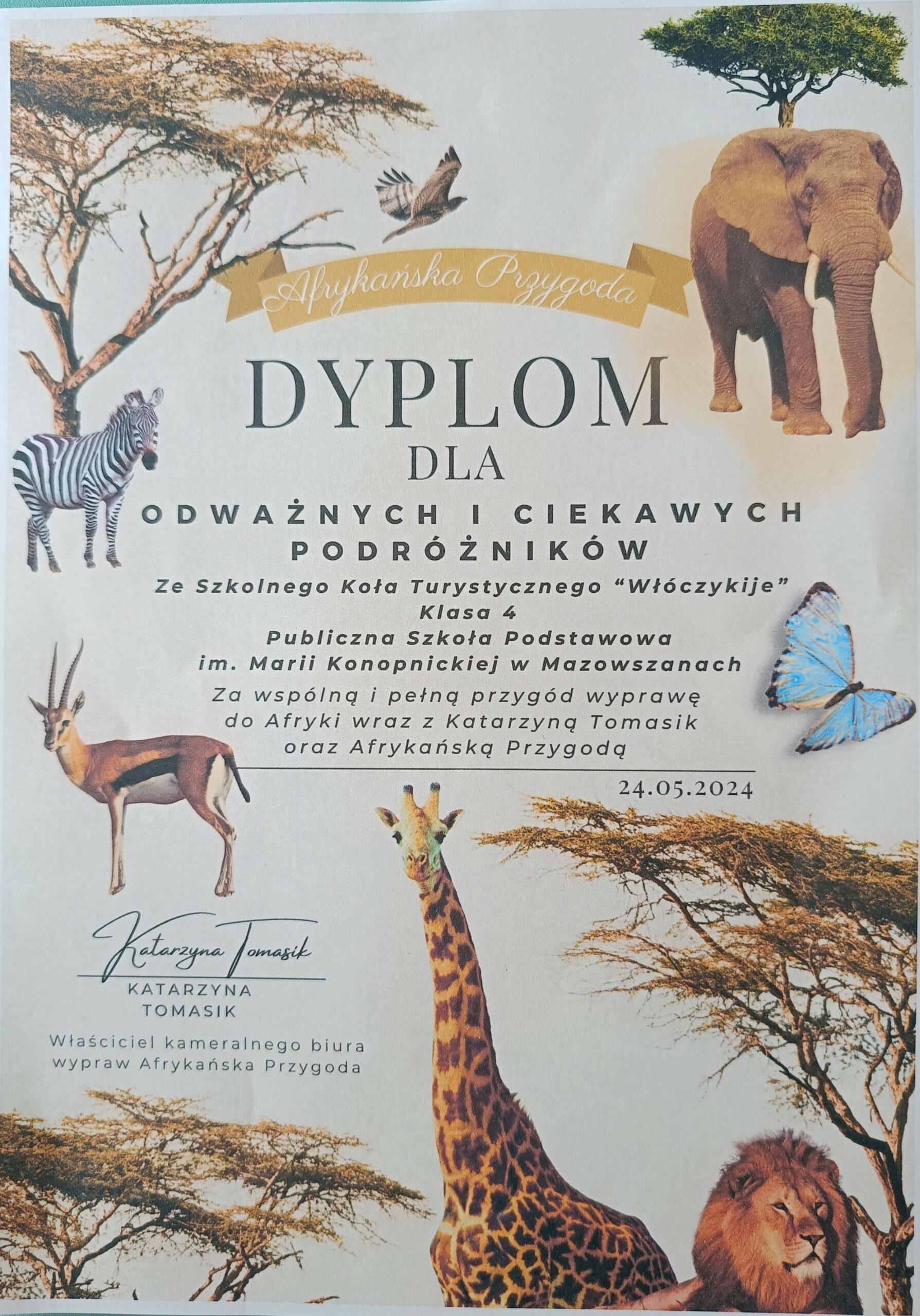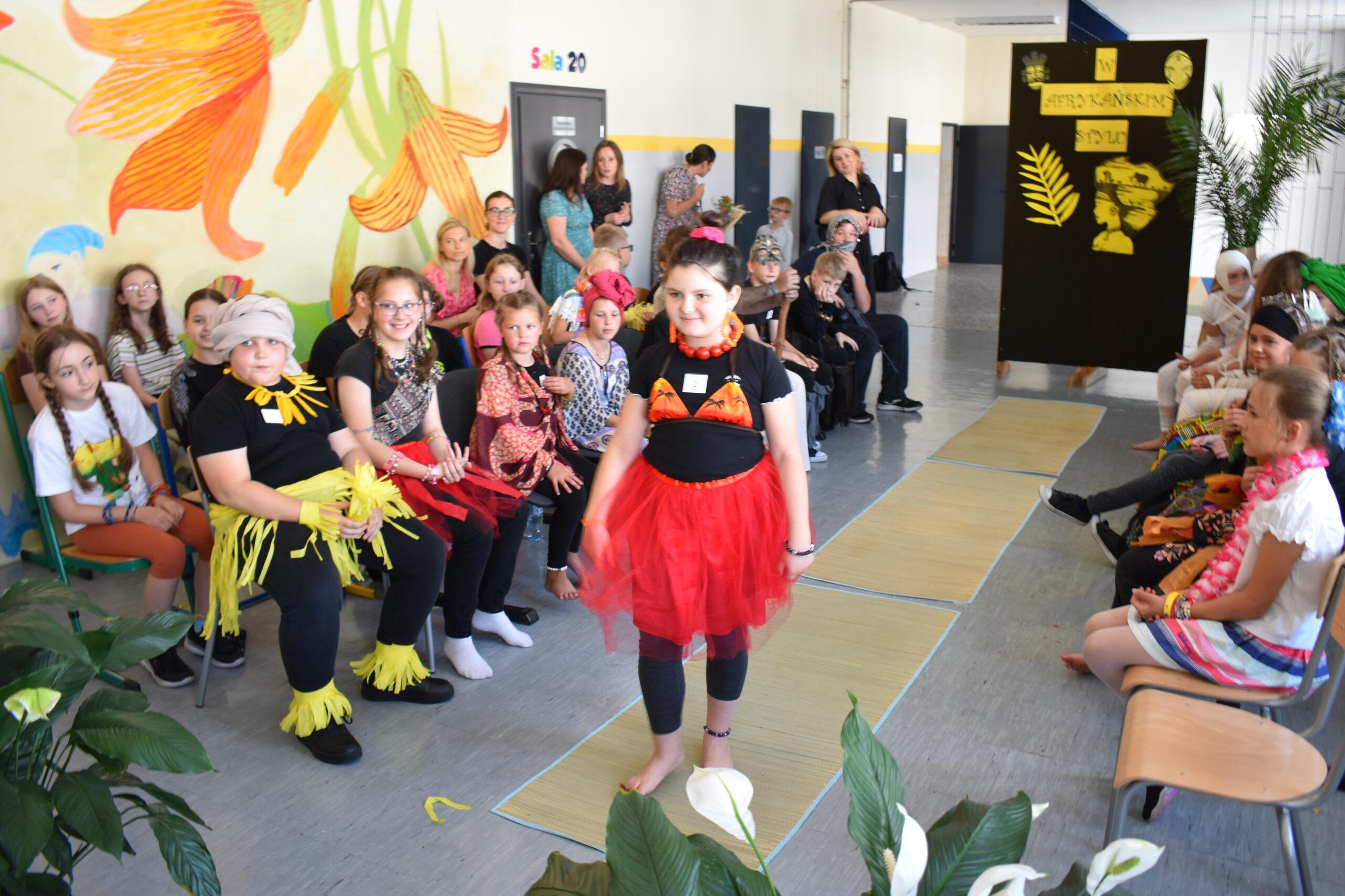 24 maja w naszej szkole odbyło się niecodzienne wydarzenie. Opiekunki Szkolnego Koła Turystycznego „Włóczykije” wraz z grupą młodych pasjonatów turystyki zorganizowały Dzień Afryki. Pomysł zrodził się z okazji obchodzonego corocznie 25 maja Święta Jedności Afrykańskiej. Zostało ono ustanowione na pamiątkę powołania 25 maja 1963 roku Organizacji Jedności Afrykańskiej.Obchody tego święta rozpoczęły się od powitania przez panią dyrektor M. Trelkę gościa honorowego, podróżniczkę i pasjonatkę Afryki – Katarzynę Tomasik. Podczas spotkania z uczniami pani Kasia podzieli się doświadczeniami, wrażeniami i ciekawostkami ze swoich afrykańskich przygód. Zaprezentowała zdjęcia i filmy, pokazujące piękno i różnorodność przyrody, kultury i ludzi Czarnego Lądu. Spotkanie przebiegało w bardzo wesołej atmosferze. Nie brakowało anegdot i dowcipów, które sprawiły, że uczestnicy spotkania zobaczyli Afrykę zupełnie z innej perspektywy. Poruszane były również tematy trudne, tj. brak dostępu do wody pitnej oraz bieda i ubóstwo. Ciekawym punktem w harmonogramie obchodów tego święta w naszej szkole był pokaz strojów rodem z Afryki. Spora grupka uczniów wcieliła się w rolę modeli i na przygotowanym wybiegu zaprezentowała stroje w afrykańskim stylu. Wszyscy występujący wiernie odtworzyli charakterystyczne elementy stroju. Najciekawsze przebrania zostały nagrodzone gorącymi brawami i symbolicznymi nagrody. Ten dzień był pełen pozytywnych emocji. Dostarczył uczniom wielu cennych informacji na temat zasad bezpiecznego podróżowania oraz przybliżył im klimat tak bardzo odległego kontynentu, jakim jest Afryka. Tematyka krajoznawcza wywołała zaskoczenie słuchaczy i wzbudziła ich zaciekawienie, co sprawiło, że spotkanie cieszyło się dużym zainteresowaniem.