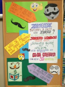 30 września 2020r. obchodziliśmy w naszej szkole DZIEŃ CHŁOPAKA. Z inicjatywy Samorządu Uczniowskiego tegoroczne święto upłynęło pod hasłem: „Szalony dzień z wąsem”. Samorząd zaprosił całą społeczność uczniowską do wspólnej zabawy. Zagwarantował również przywileje dla każdego, kto w tym dniu zdecydował się nosić wąsy. Każdy wąsacz nie był pytany i nie pisał niezapowiedzianych sprawdzianów. Większość uczniów wykazała się dużą sprawnością manualną i pomysłowością. Były wąsy malowane, doczepiane, przyklejane, na gumce, sumiaste, szlacheckie, zakręcone…