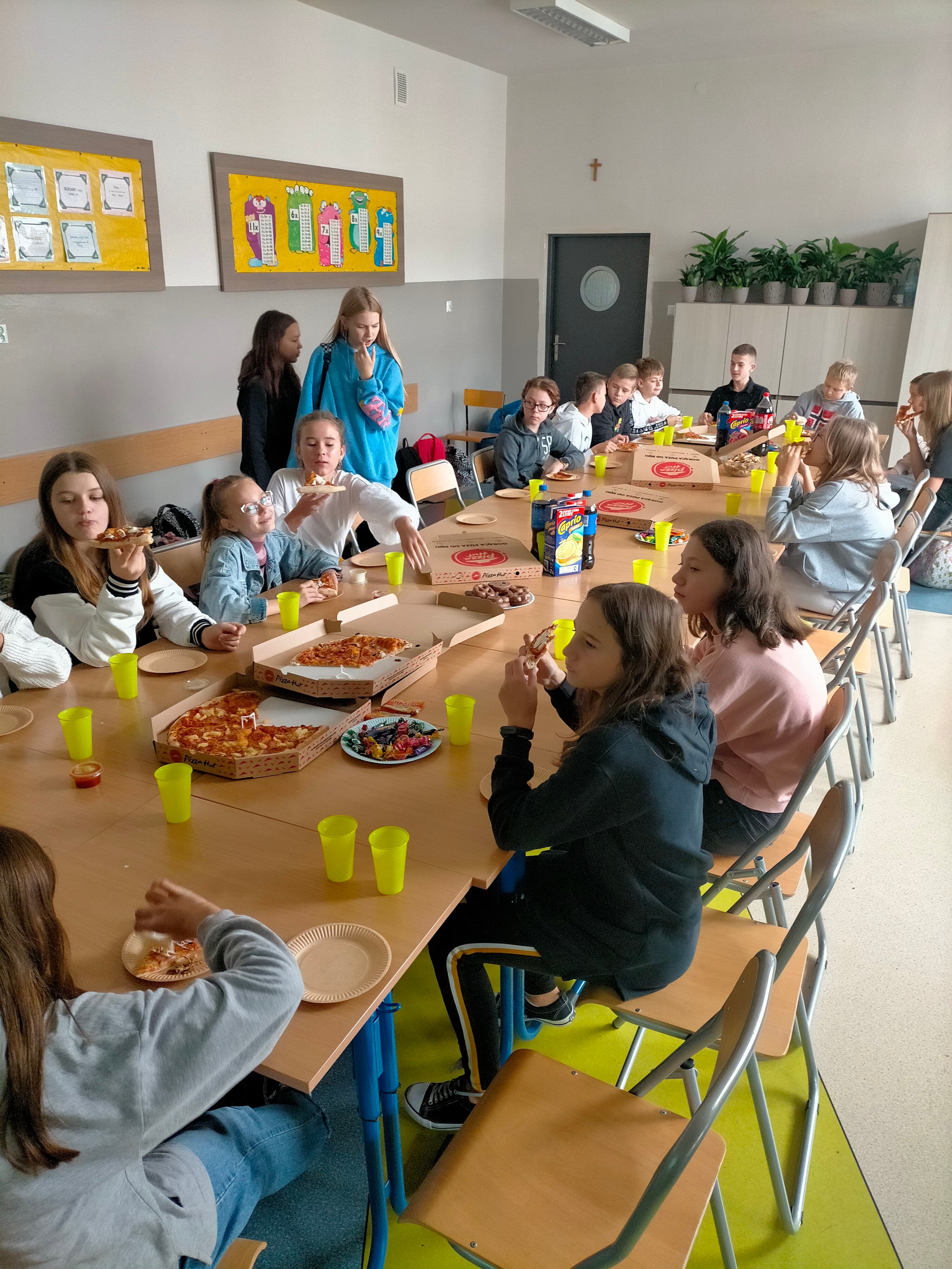 29 października klasa 6a świętowała Dzień Chłopaka. Oprócz słodyczy na nasze stoły zawitała tradycyjnie pizza. Dziewczynki przygotowały dla chłopców niespodzianki oraz quizy: rozpoznawania koleżanek ze zdjęć z dzieciństwa i rozpoznawania kobiecych gadżetów. Panowie jak przystało na gentelmanów poradzili sobie z zadaniami śpiewająco. Muzyka umiliła nam te wspólne chwile.