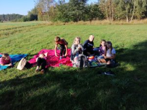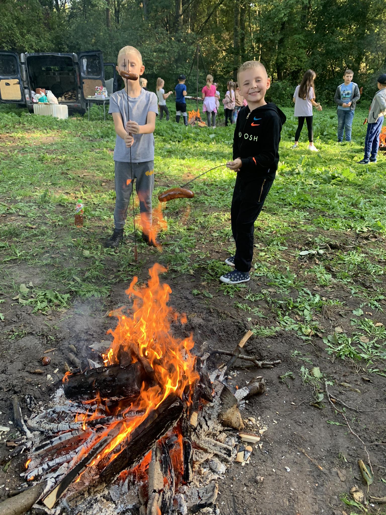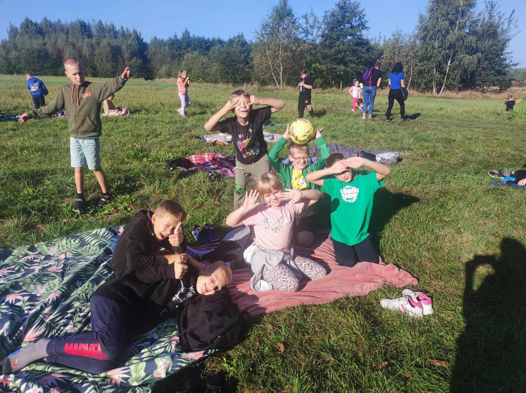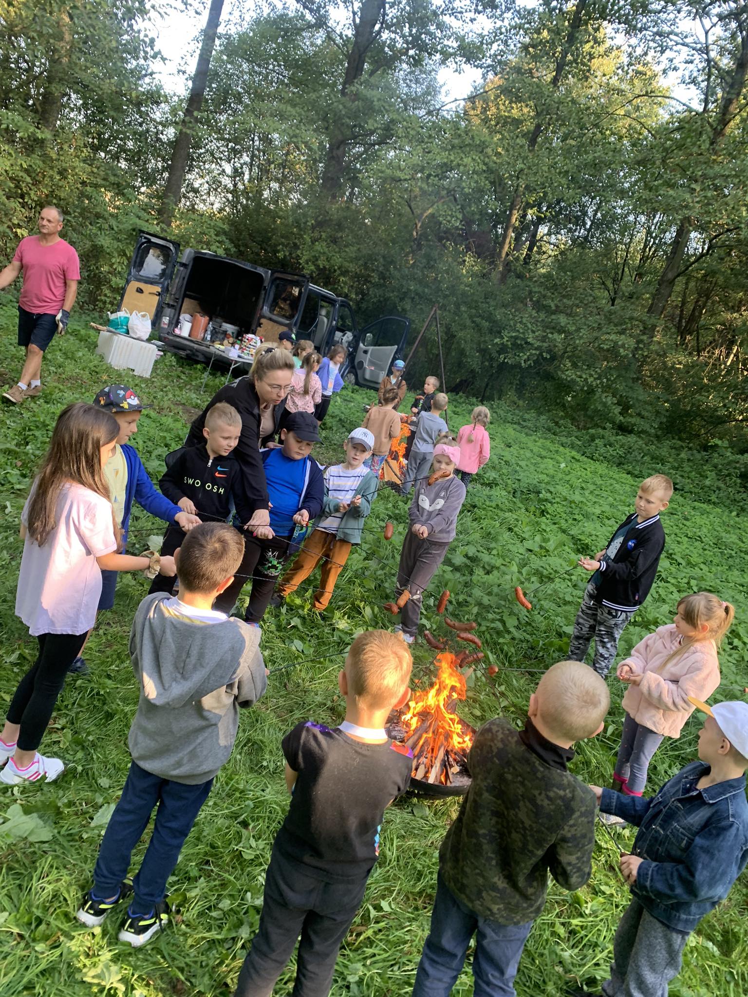 29 września 2023r. odbyło się ognisko integracyjne klas I-III, które było wspaniałą okazją do tego, by uczcić „Dzień Chłopaka”. Przy palącym się ognisku uczniowie piekli kiełbaski oraz kosztowali słodkie pyszności. Na świeżym powietrzu, w tak cudownych okolicznościach przyrody, wszystko smakowało przepysznie. Natomiast słoneczna aura zachęciła uczniów do gier i zabaw na świeżym powietrzu. Wspólnie spędzone chwile poza szkołą integrują jeszcze bardziej i przypominają, że szkoła to nie tylko nauka, ale również przyjaźnie zawierane na całe życie. Dla wszystkich uczniów było to ogromne przeżycie, które przyniosło im wiele radości.