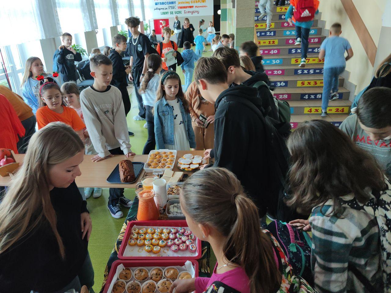 Uczniowie mieli okazję nie tylko zrobić coś dobrego dla innych, ale także poznawali wartości wynikające z właściwego żywienia i zdrowego stylu życia. Na kiermaszu królowały jesienne smakołyki z dynią w roli głównej, aromatyczna zupa z dyni oraz owoce i świeżo wyciskane soki.