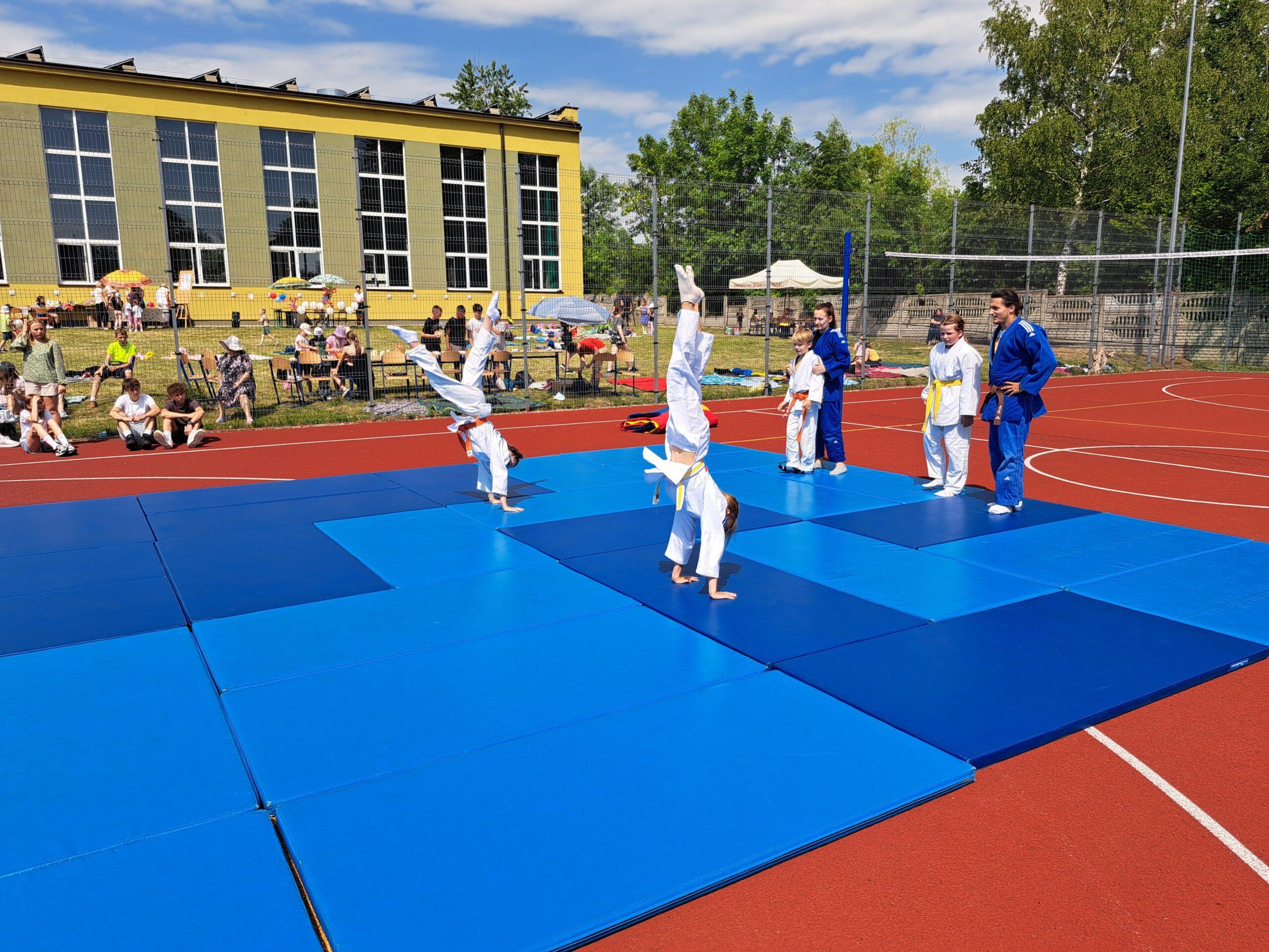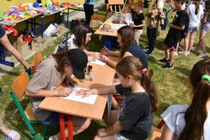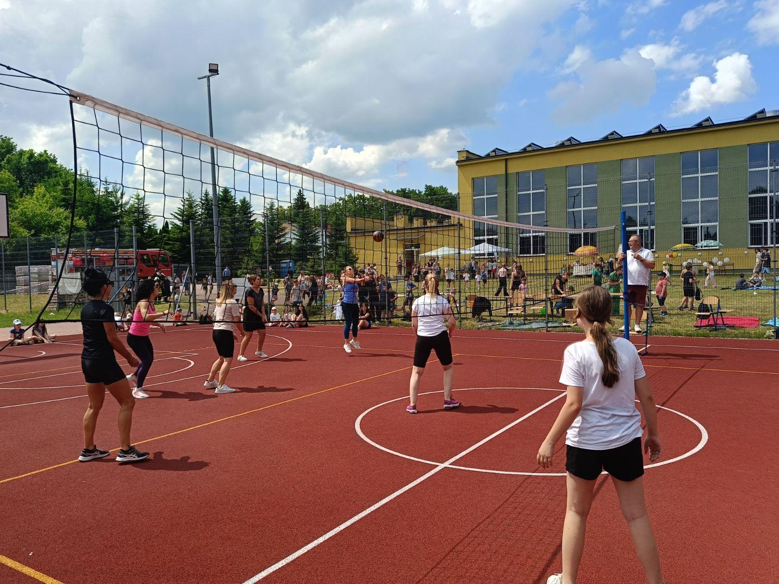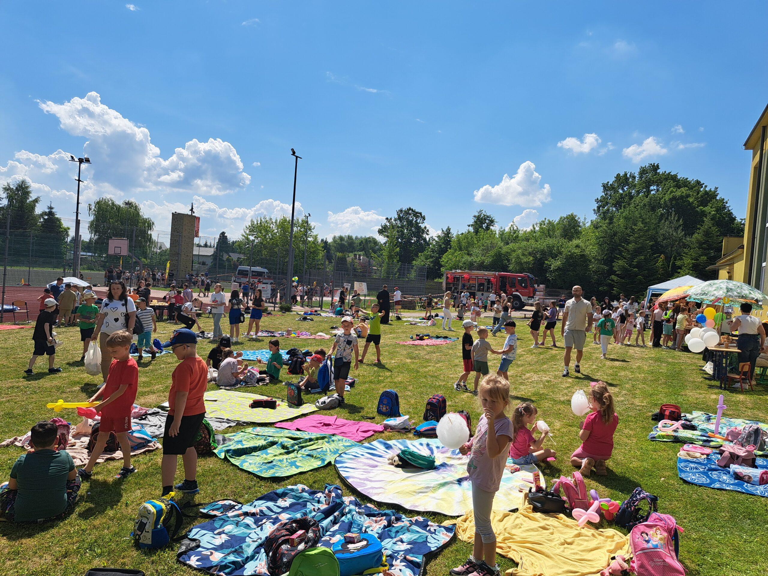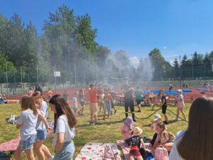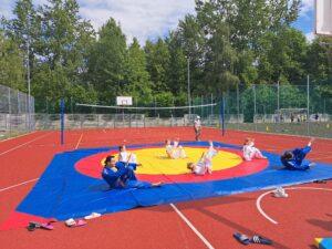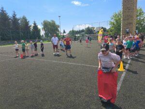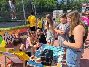 29 maja 2024r. w naszej szkole został zorganizowany festyn z okazji Dnia Dziecka. Zabawa rozpoczęła się od pokazu talentów i wspaniałych występów zdolnych i odważnych uczniów. Po części artystycznej na uczniów czekało wiele atrakcji i niespodzianek, takich jak: loteria fantowa, zabawy sensoryczne, balony, malowanie paznokci, brokatowe tatuaże, rozgrywki sportowe. Wśród najmłodszych dużą popularnością cieszyło się stoisko z popcornem, watą cukrową, lodami, pyszną lemoniadą i cieplutkimi goframi. Na naszym boisku gościliśmy park trampolin Kocham Skakać, który przygotował atrakcje ruchowe dla dzieci, OSP Skaryszew ze ścianką wspinaczkową oraz straż pożarną z Rudy Małej, dzięki której dzieci mogły poznać tajniki pracy strażaków oraz schłodzić się pod mgiełką chłodnej wody. Na uczestników festynu duże wrażenie wywarł pokaz judo przygotowany przez rodziców uczniów klasy IVa, z klubu sportowego „ULKS JUDO KOWALA”. Widzowie byli pełni podziwu dla koordynacji i precyzji ruchów. Tradycyjnie swoje umiejętności siatkarskie zaprezentowały nasze nauczycielki w meczu z uczennicami klas VII i VIII. Mecz był naprawdę zacięty, a szanse wyrównane. Ostatecznie, po trzech setach znakomitej gry wygrała drużyna nauczycieli. Po wyczerpującej zabawie na dzieci czekały gorące kiełbaski i odpoczynek na kocyku przy relaksującej muzyce. Zaangażowanie wielu osób w przygotowanie i organizację tego święta sprawiło, że uśmiech nie schodził z twarzy dzieci i o to właśnie chodziło – o super zabawę i radość!
