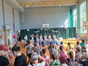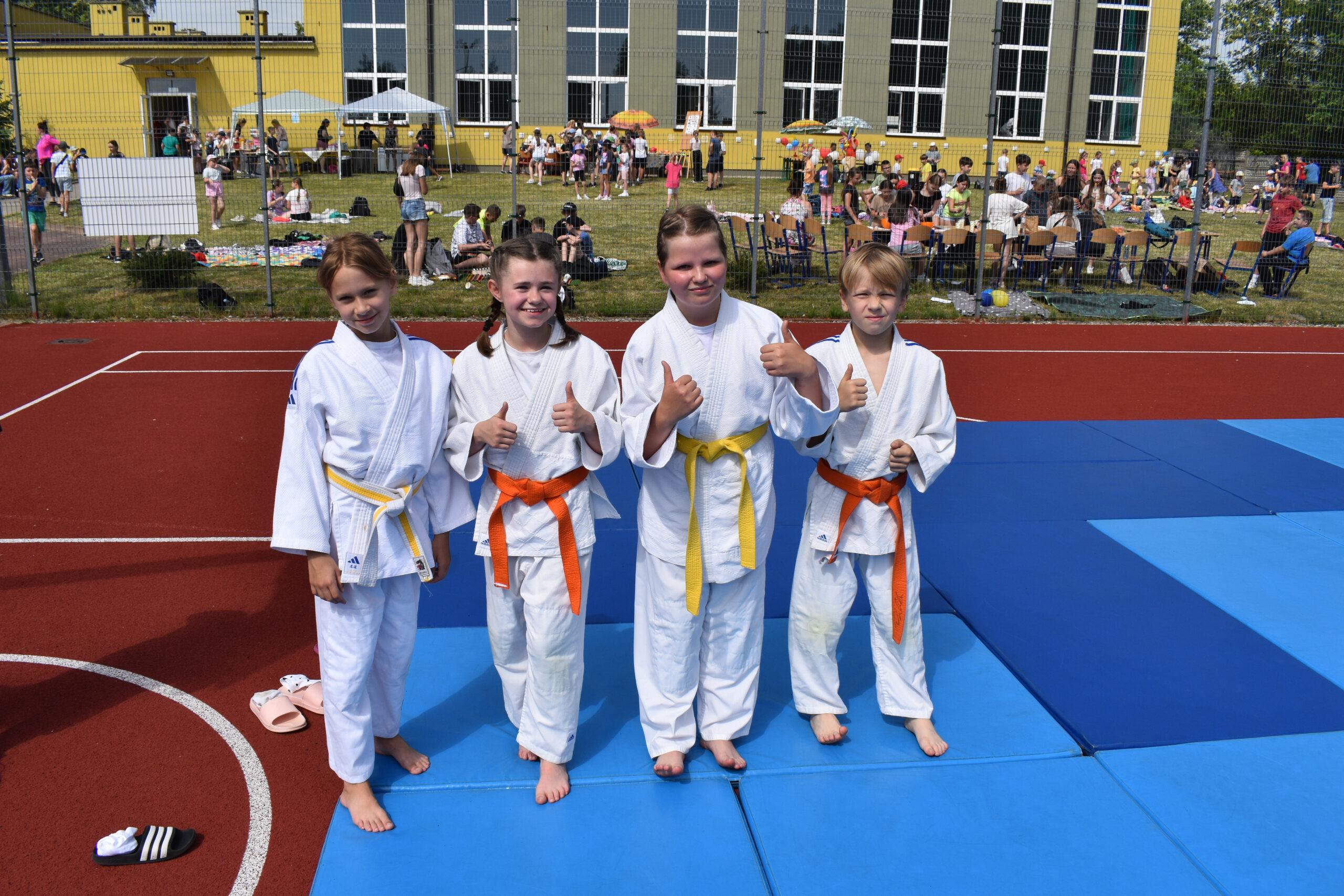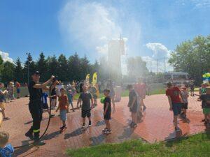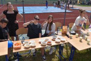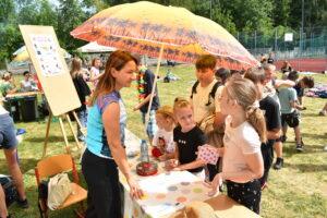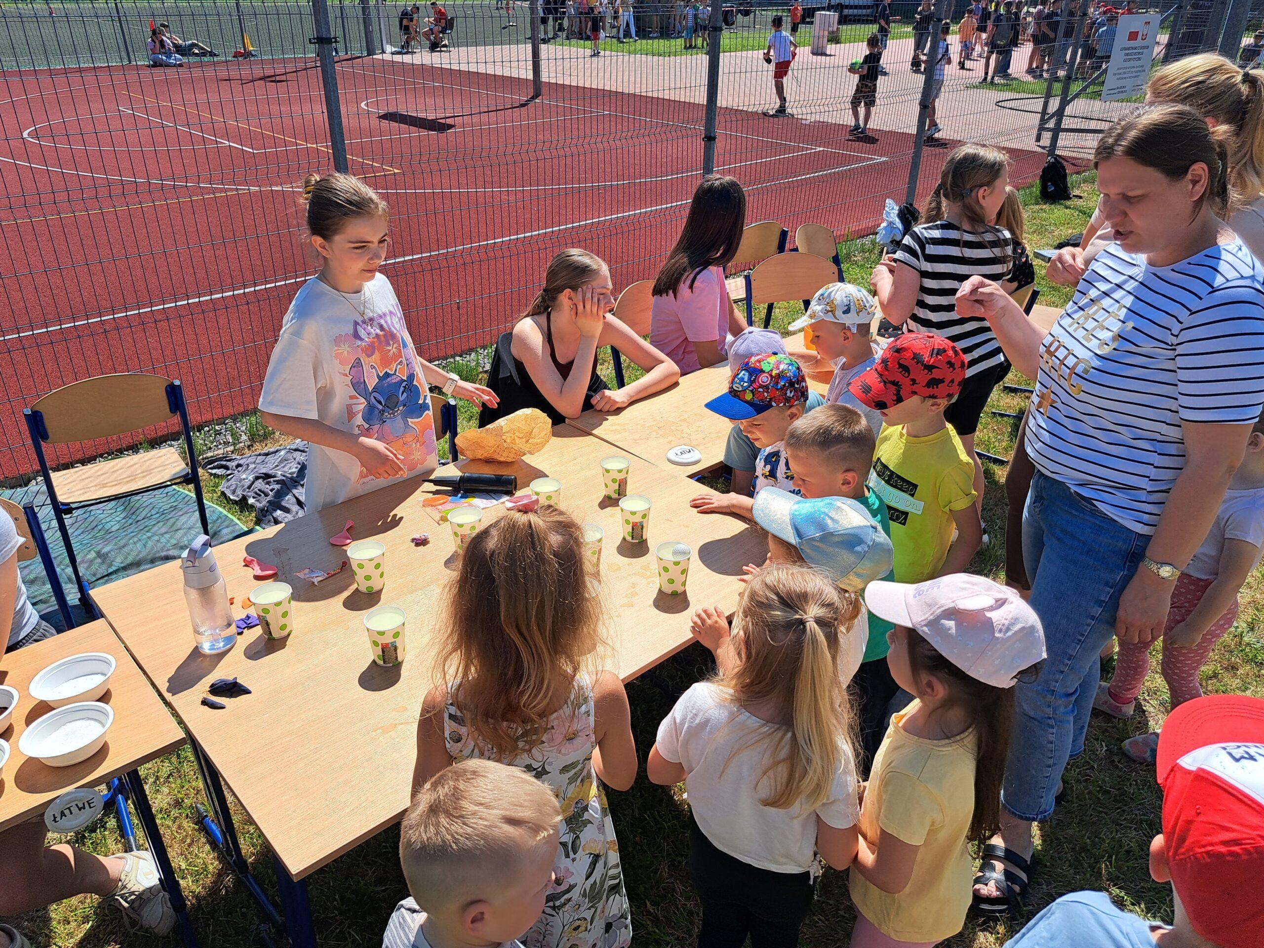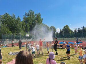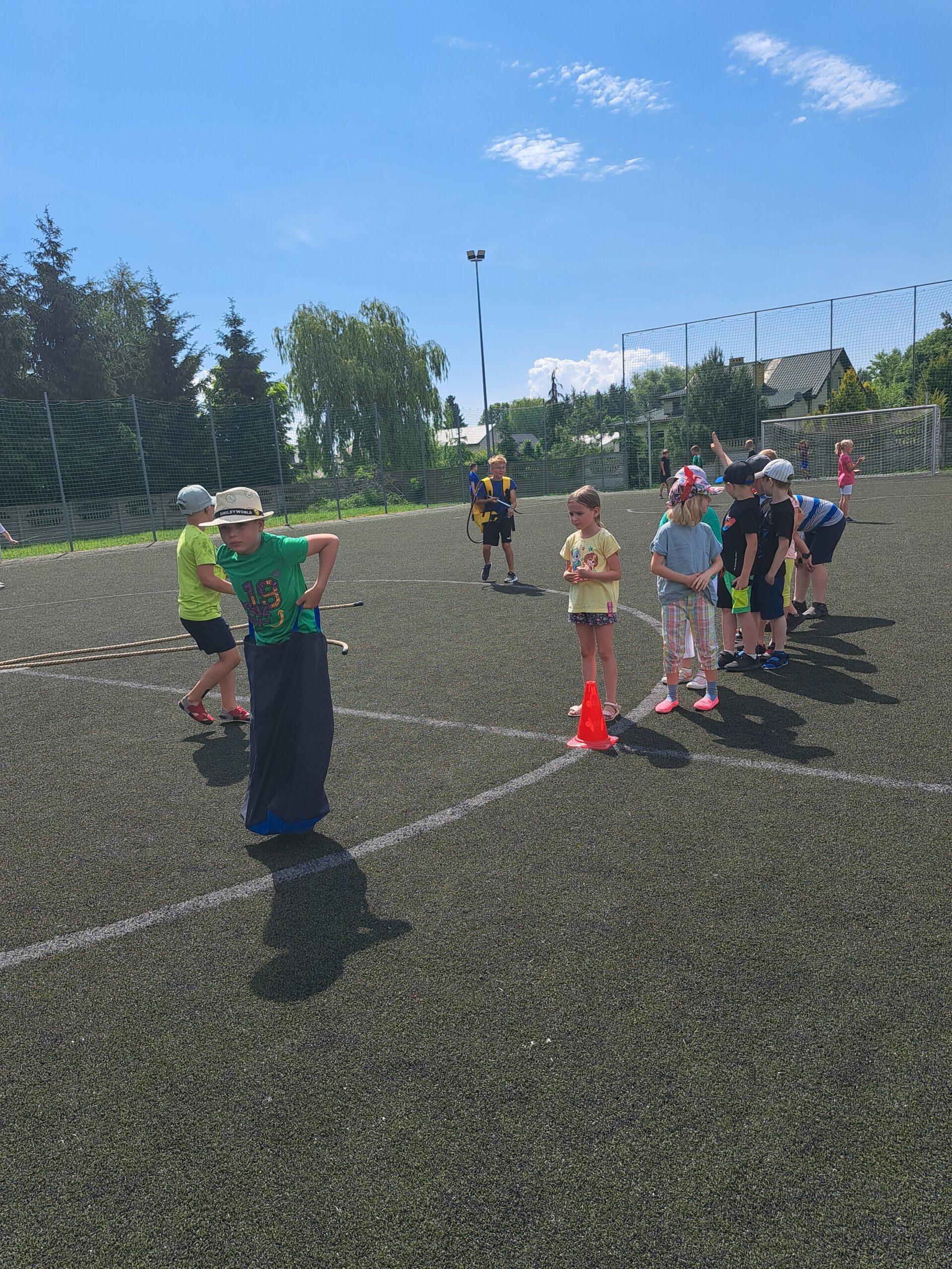 29 maja 2024r. w naszej szkole został zorganizowany festyn z okazji Dnia Dziecka. Zabawa rozpoczęła się od pokazu talentów i wspaniałych występów zdolnych i odważnych uczniów. Po części artystycznej na uczniów czekało wiele atrakcji i niespodzianek, takich jak: loteria fantowa, zabawy sensoryczne, balony, malowanie paznokci, brokatowe tatuaże, rozgrywki sportowe. Wśród najmłodszych dużą popularnością cieszyło się stoisko z popcornem, watą cukrową, lodami, pyszną lemoniadą i cieplutkimi goframi. Na naszym boisku gościliśmy park trampolin Kocham Skakać, który przygotował atrakcje ruchowe dla dzieci, OSP Skaryszew ze ścianką wspinaczkową oraz straż pożarną z Rudy Małej, dzięki której dzieci mogły poznać tajniki pracy strażaków oraz schłodzić się pod mgiełką chłodnej wody. Na uczestników festynu duże wrażenie wywarł pokaz judo przygotowany przez rodziców uczniów klasy IVa, z klubu sportowego „ULKS JUDO KOWALA”. Widzowie byli pełni podziwu dla koordynacji i precyzji ruchów. Tradycyjnie swoje umiejętności siatkarskie zaprezentowały nasze nauczycielki w meczu z uczennicami klas VII i VIII. Mecz był naprawdę zacięty, a szanse wyrównane. Ostatecznie, po trzech setach znakomitej gry wygrała drużyna nauczycieli. Po wyczerpującej zabawie na dzieci czekały gorące kiełbaski i odpoczynek na kocyku przy relaksującej muzyce. Zaangażowanie wielu osób w przygotowanie i organizację tego święta sprawiło, że uśmiech nie schodził z twarzy dzieci i o to właśnie chodziło – o super zabawę i radość!