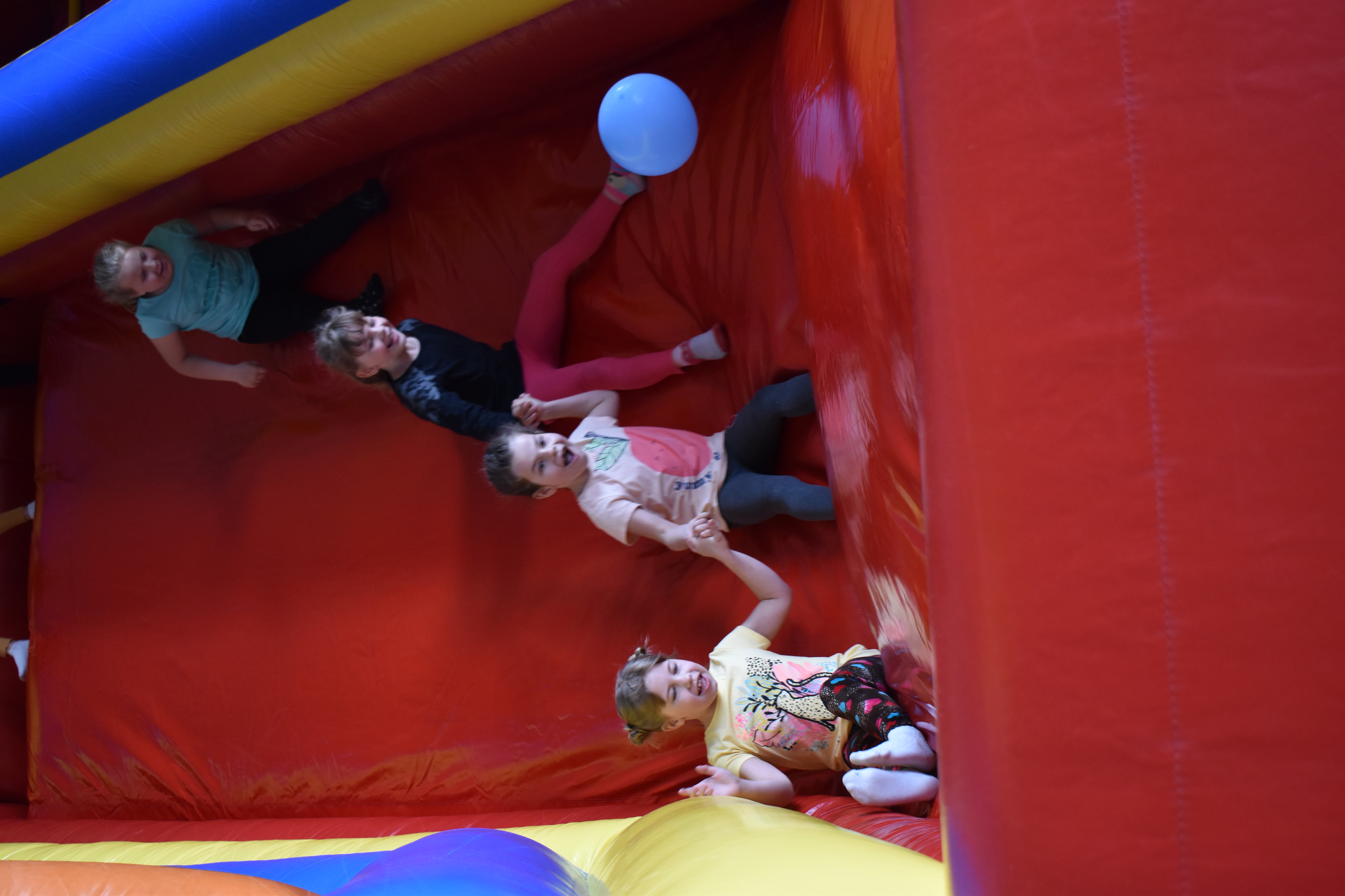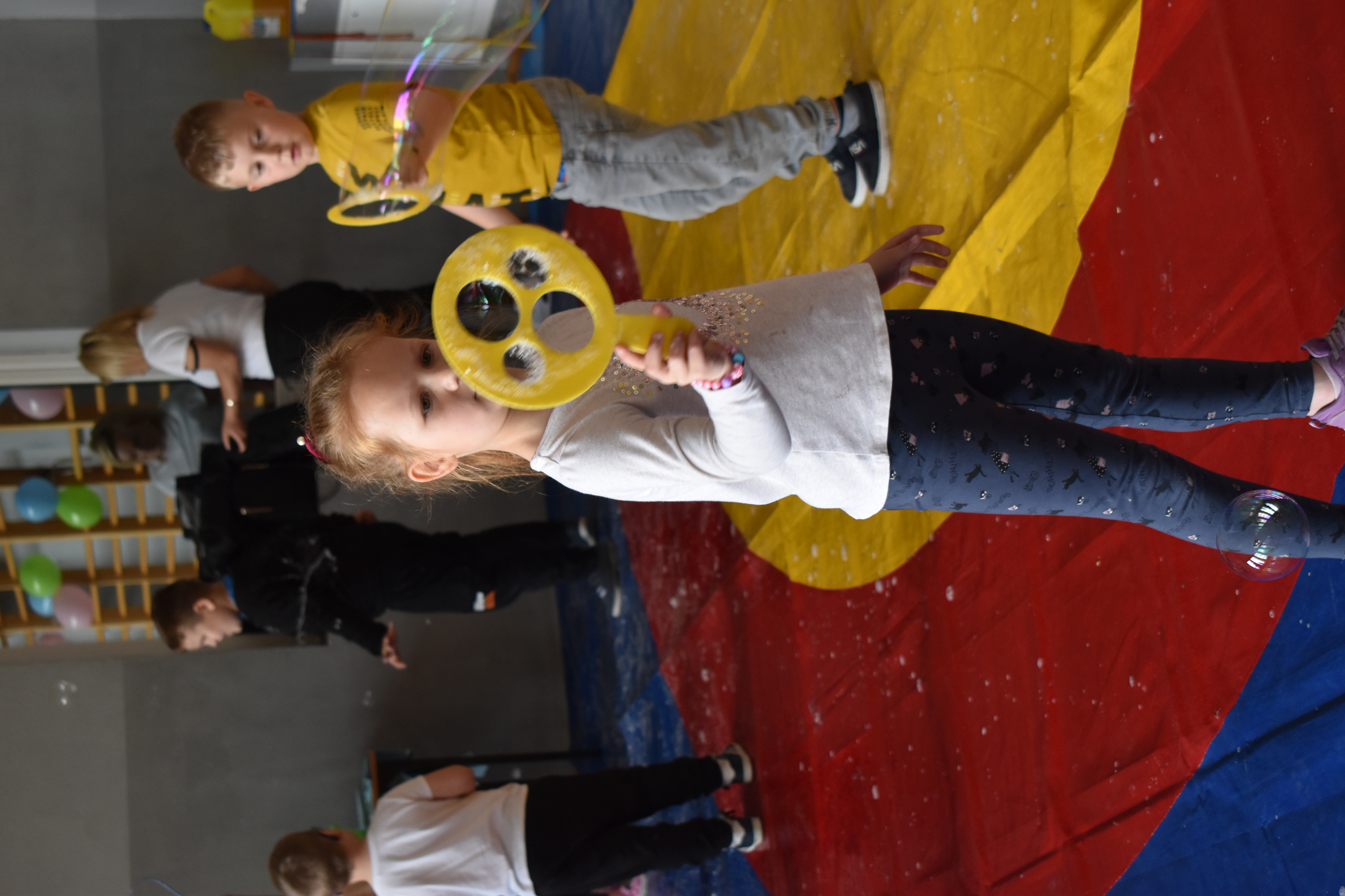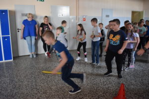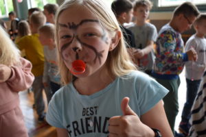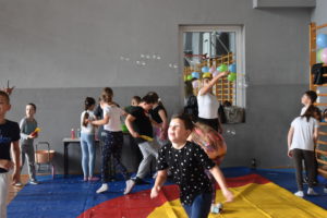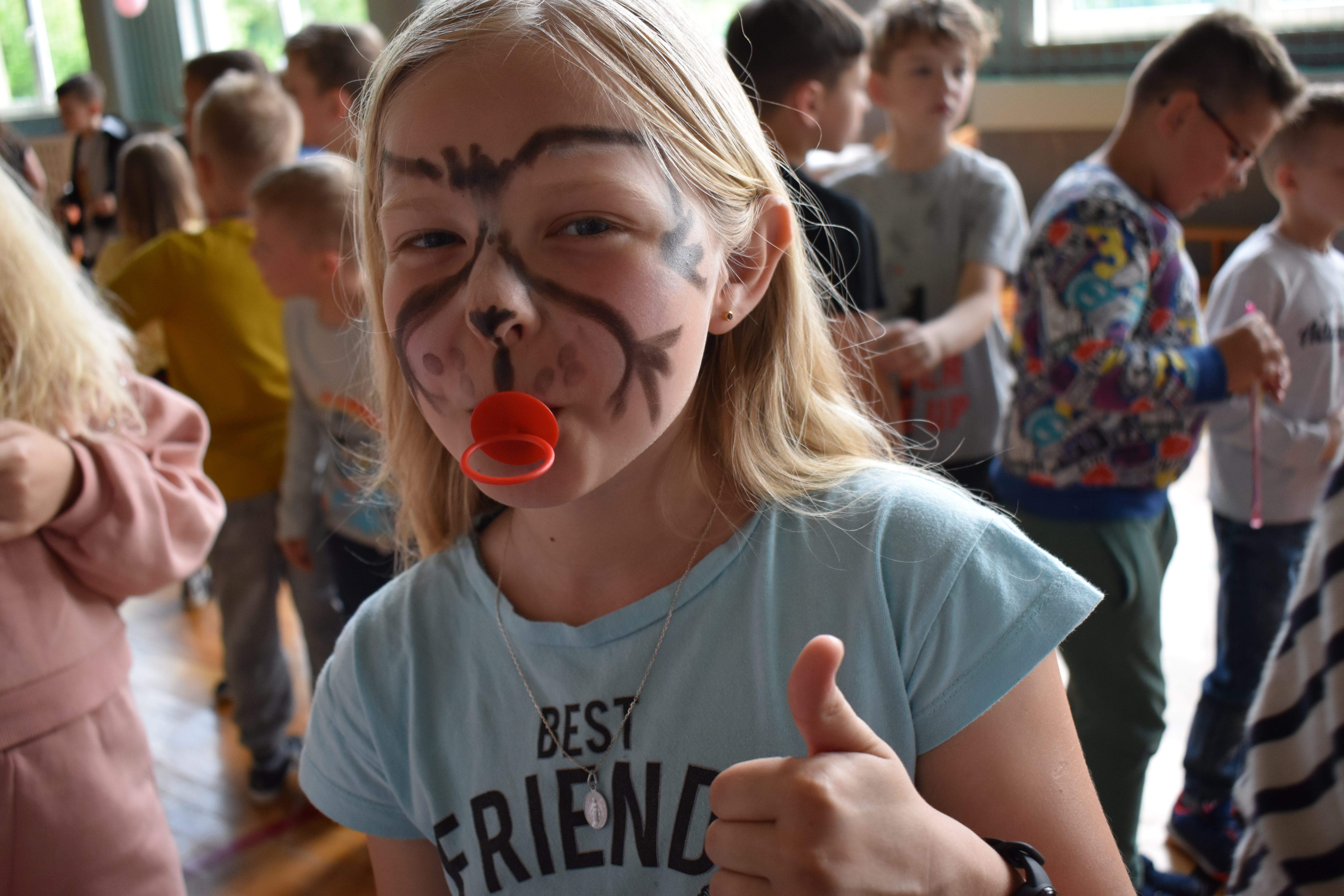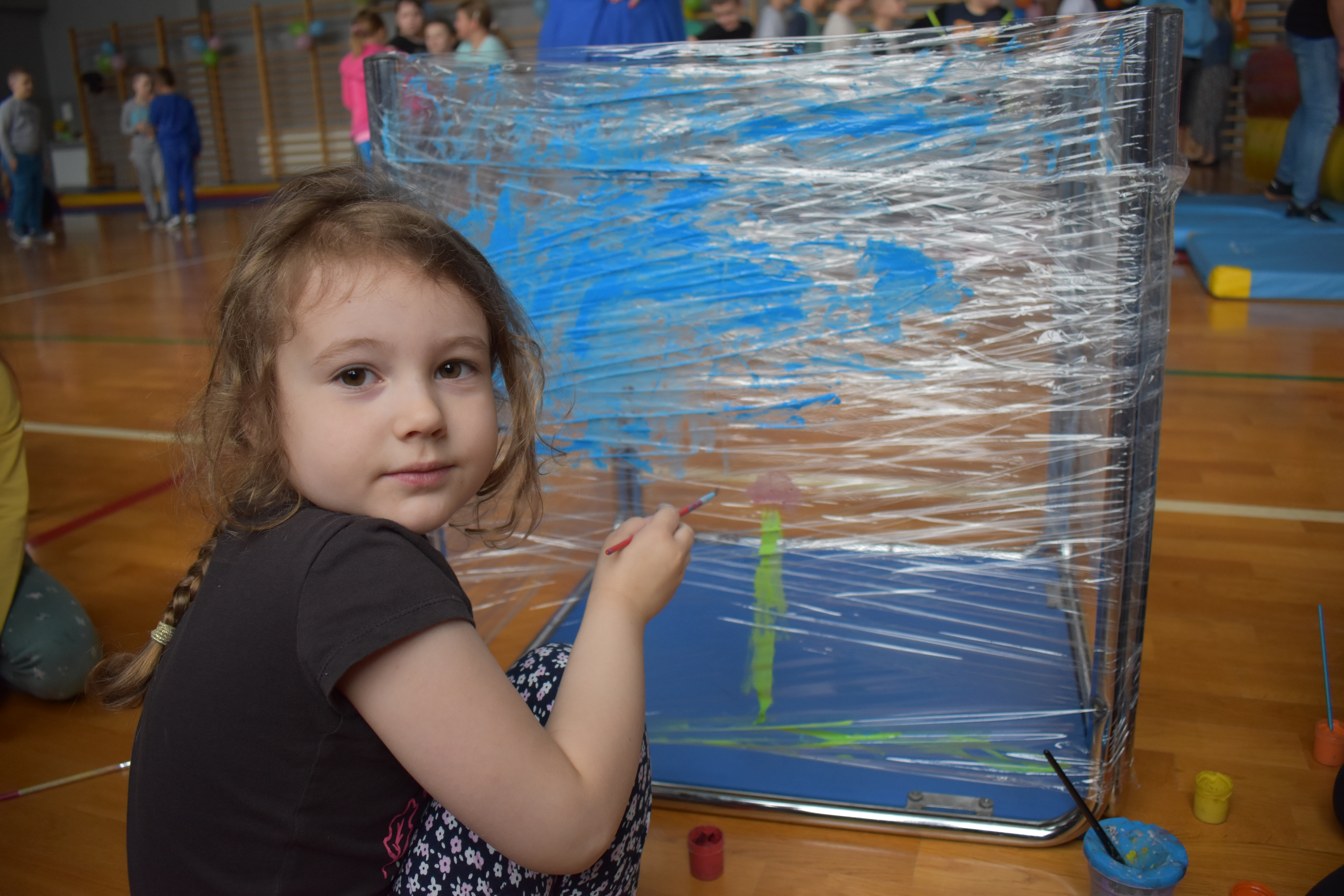 W czerwcu świętowaliśmy w naszej szkole Dzień Dziecka. Pogoda na dworze nie dopisała, ale uczniowska radość i pogoda ducha wypełniła salę gimnastyczną. Wydarzeniu towarzyszyło wiele niespodzianek, jednakże najwięcej emocji wśród naszych uczniów wywołał ogromny dmuchaniec.