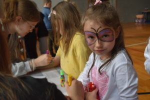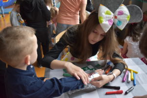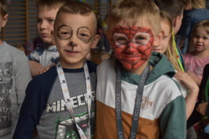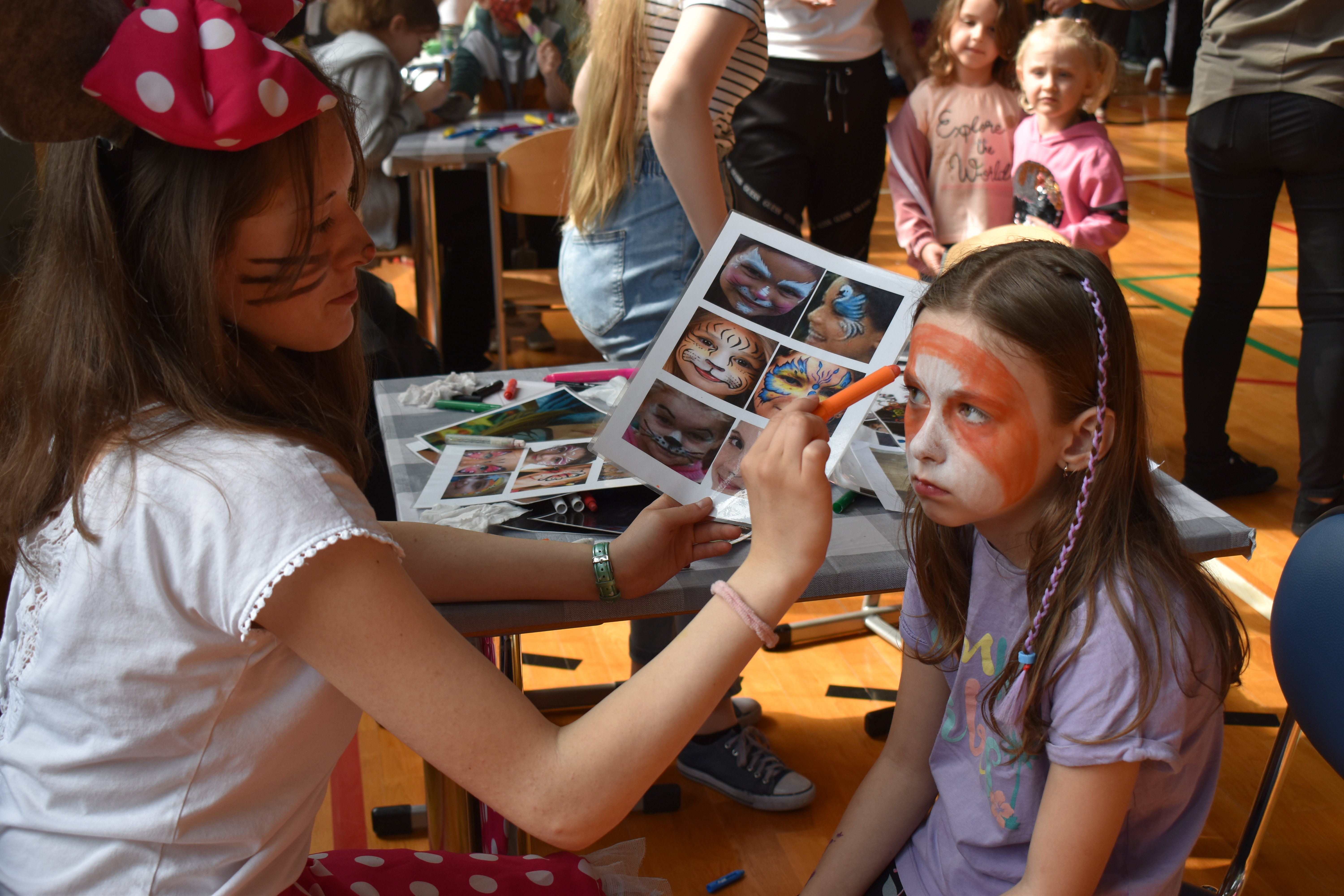 Dodatkowymi atrakcjami były: malowanie na folii, zabawy z chustą animacyjną, bańki mydlane, malowanie twarzy, kolorowe warkoczyki oraz tatuaże. Nie zabrakło również zdrowej sportowej rywalizacji oraz wspólnego posiłku – pysznych, pieczonych na grillu kiełbasek.