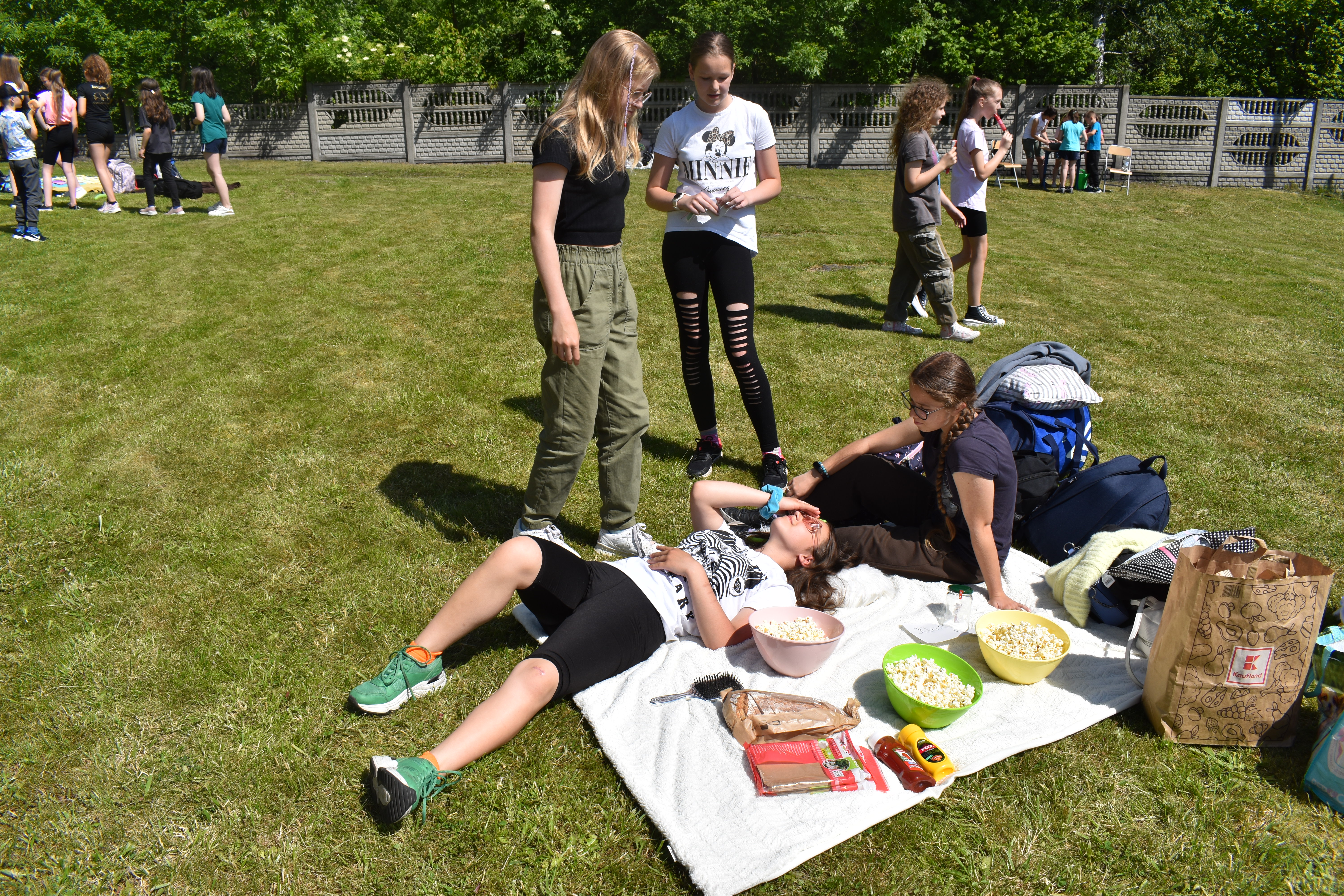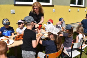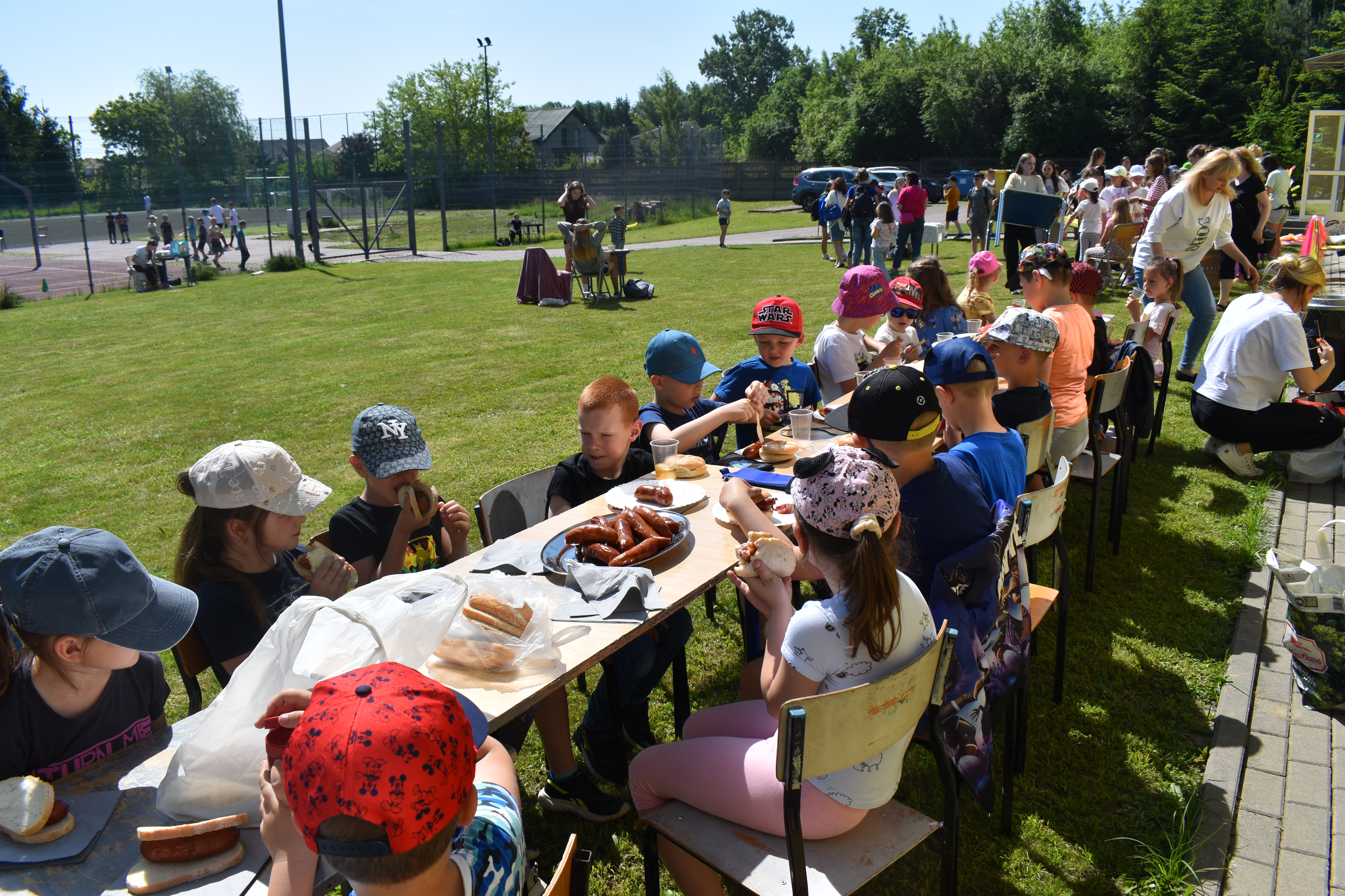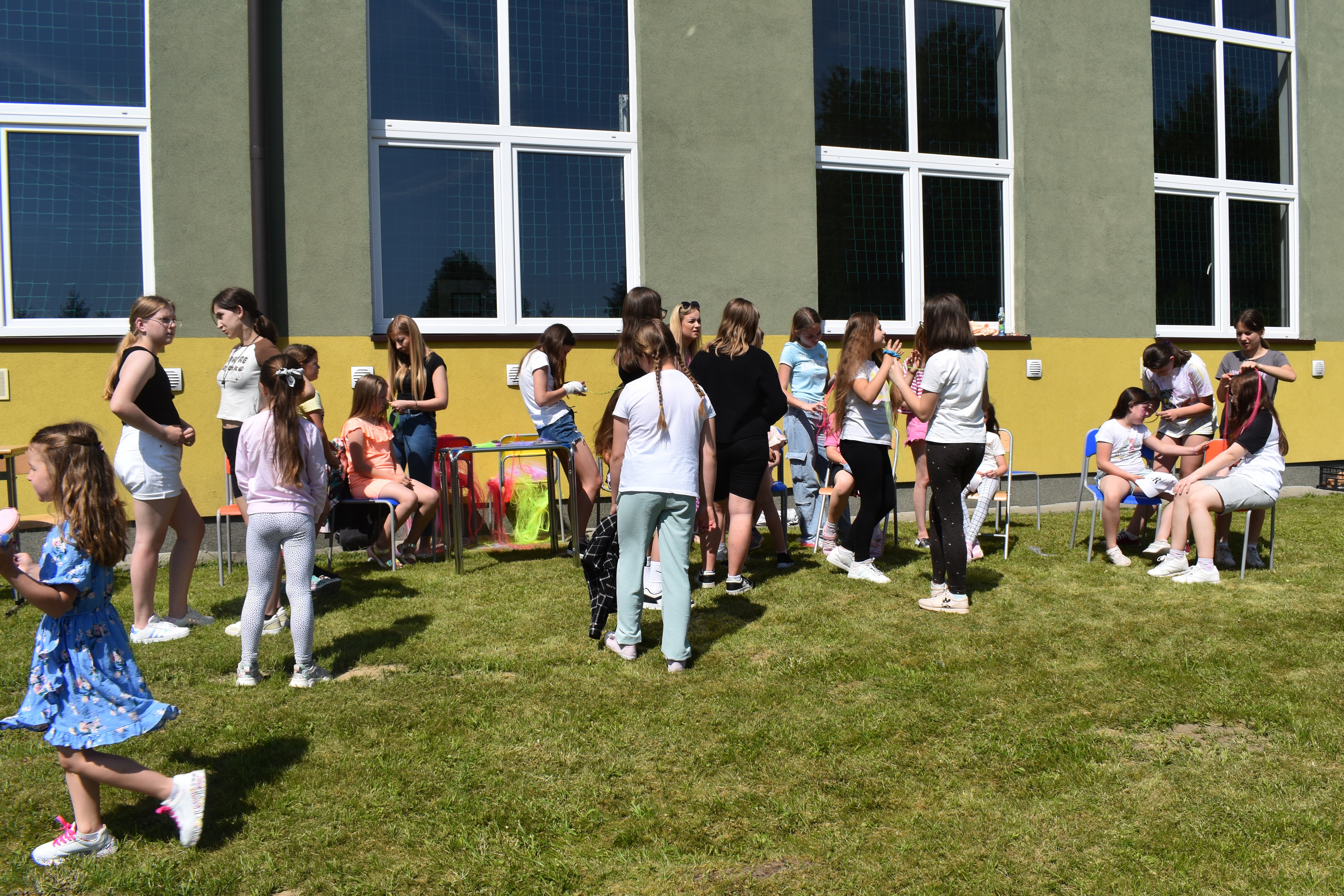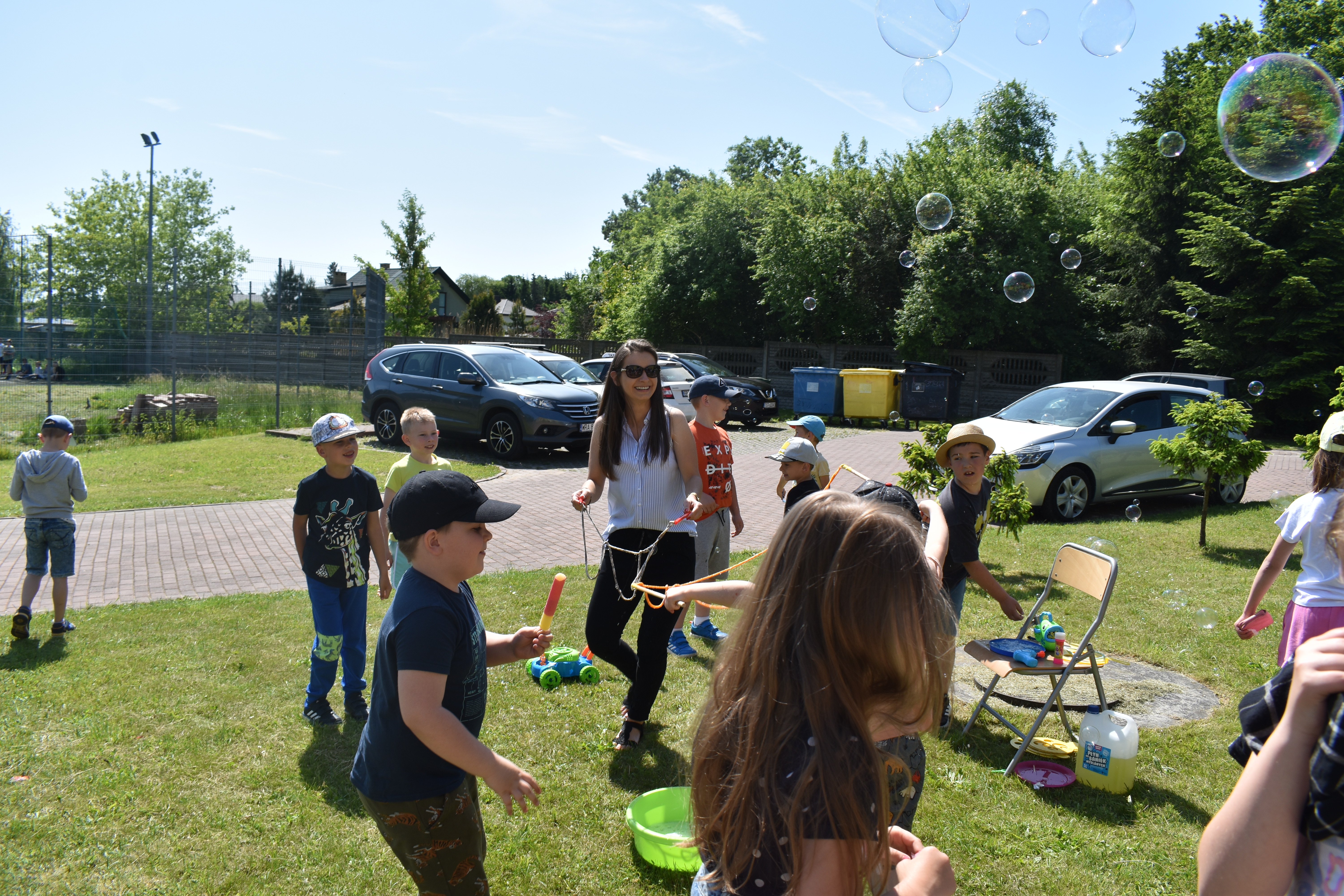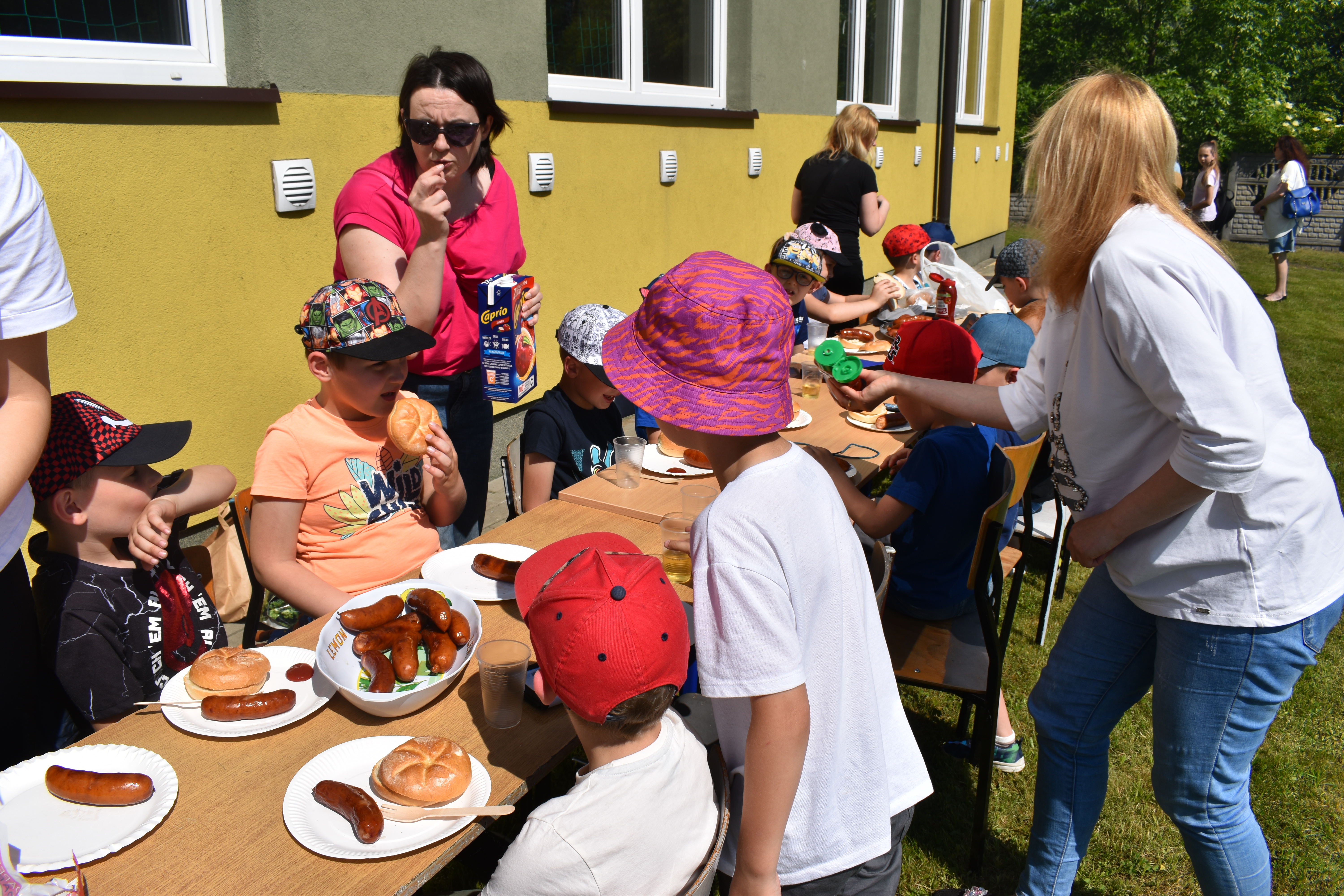 Następnego dnia świętowaliśmy Dzień Dziecka. Z tej okazji nauczyciele przygotowali dla dzieci wyjątkowe atrakcje oraz słodkości. Dzień zaczął się od zabaw ruchowych przy najnowszych przebojach z list muzycznych, a następnie uczniowie udali się w kierunku boiska szkolnego, by zmierzyć się w kilku konkurencjach sportowych. Dodatkowymi atrakcjami były: malowanie na folii, zabawy z chustą animacyjną, bańki mydlane, malowanie twarzy, kolorowe warkoczyki oraz modelowanie balonów. Nie zabrakło również wspólnego posiłku – pysznych, pieczonych na grillu kiełbasek.
