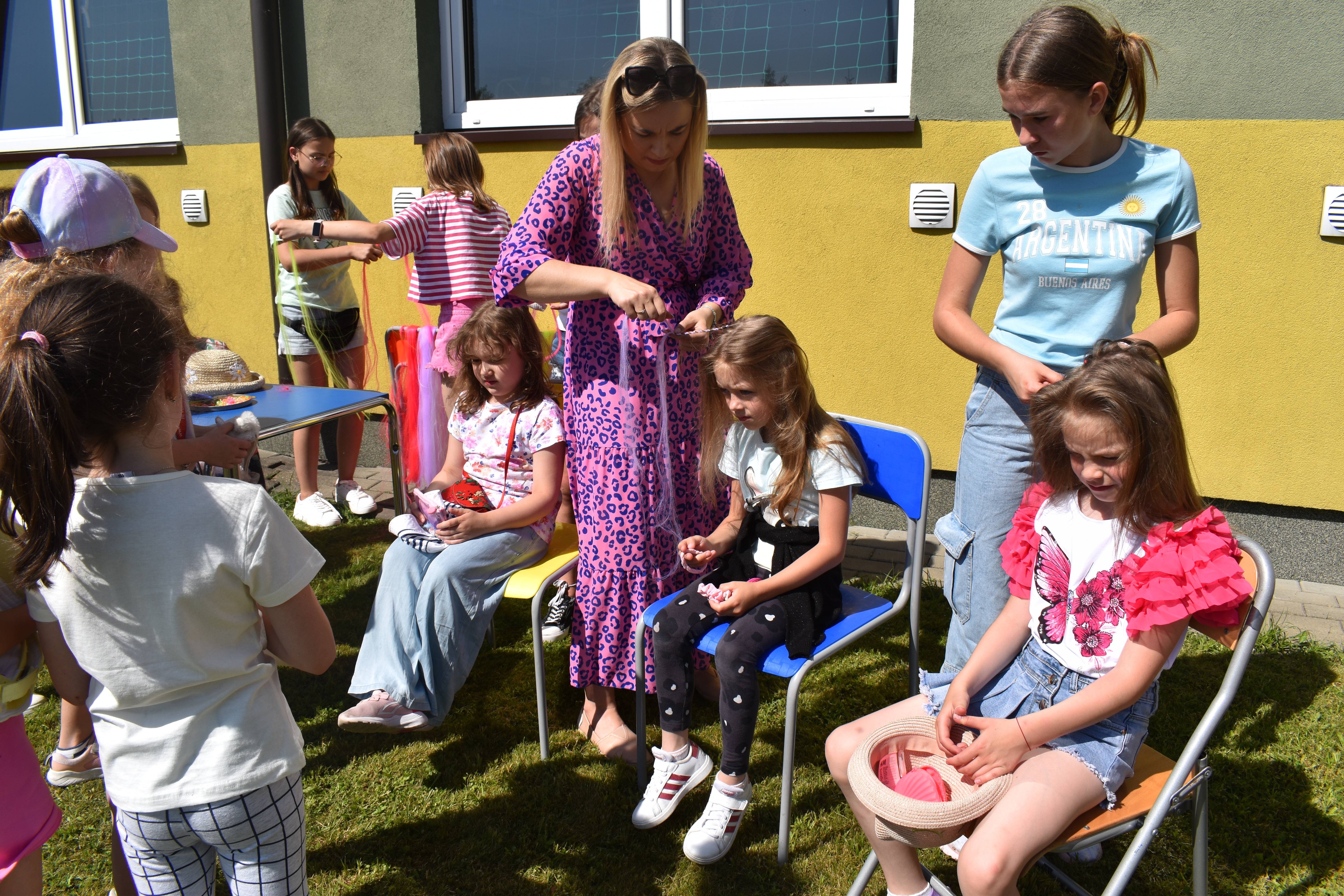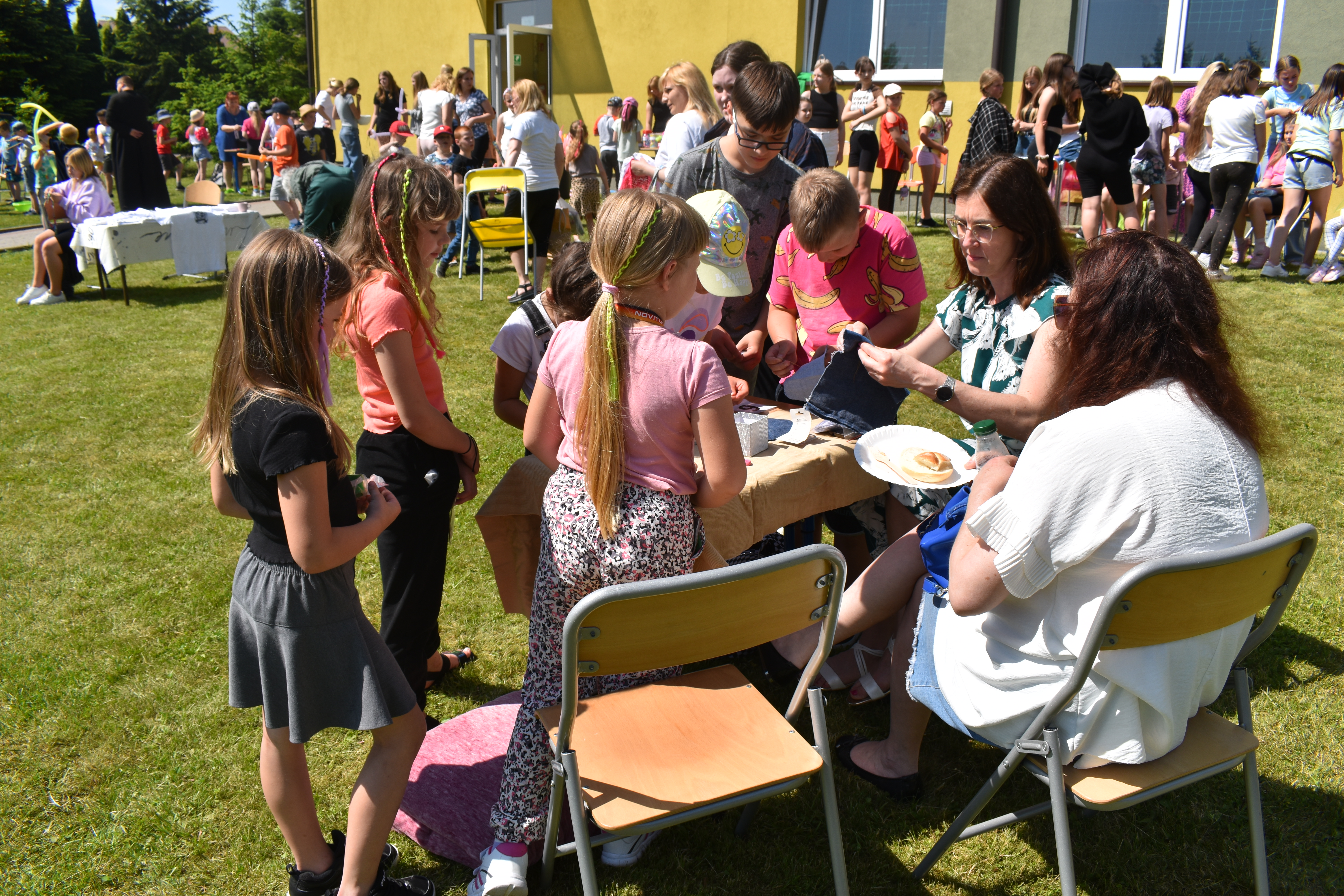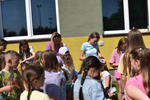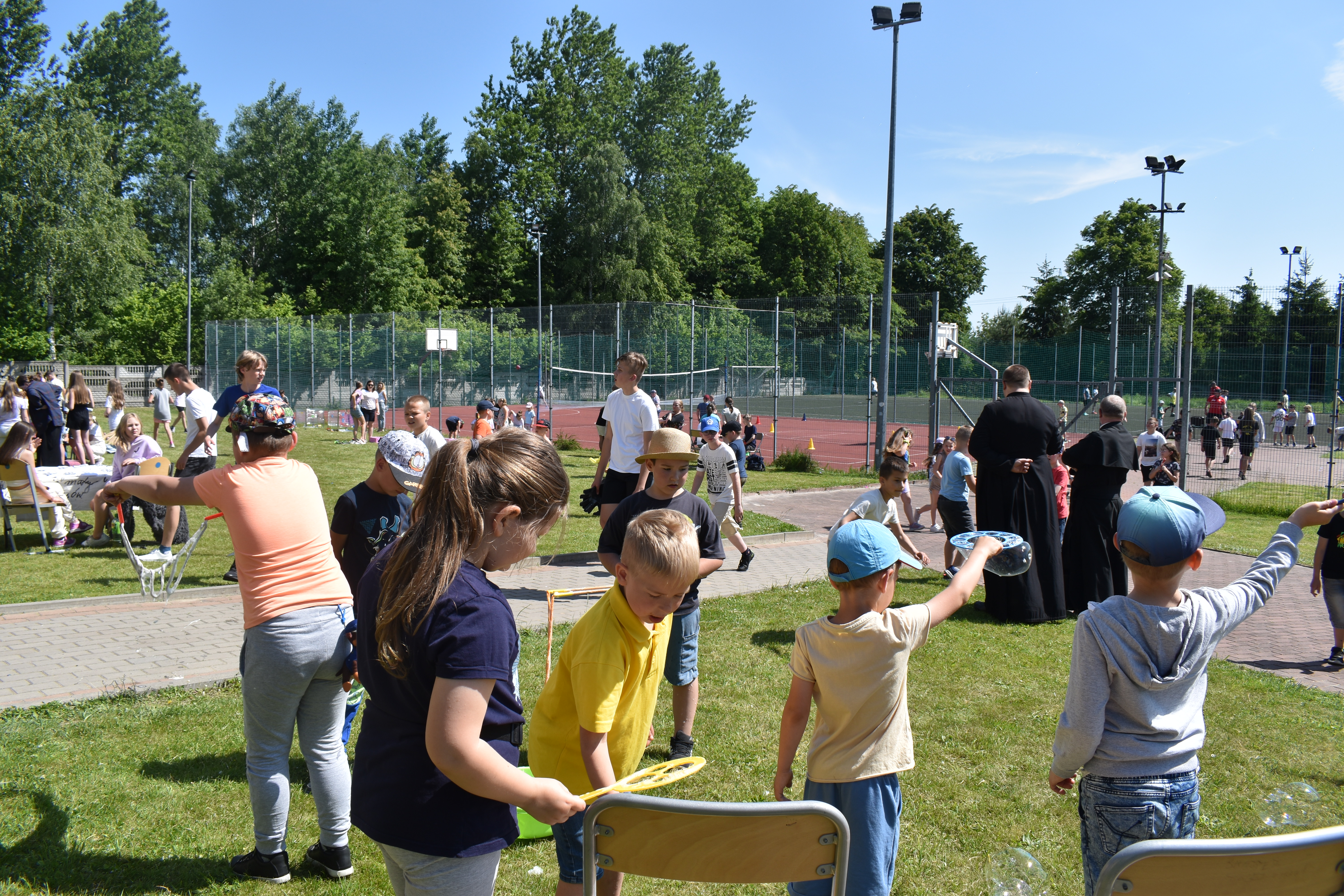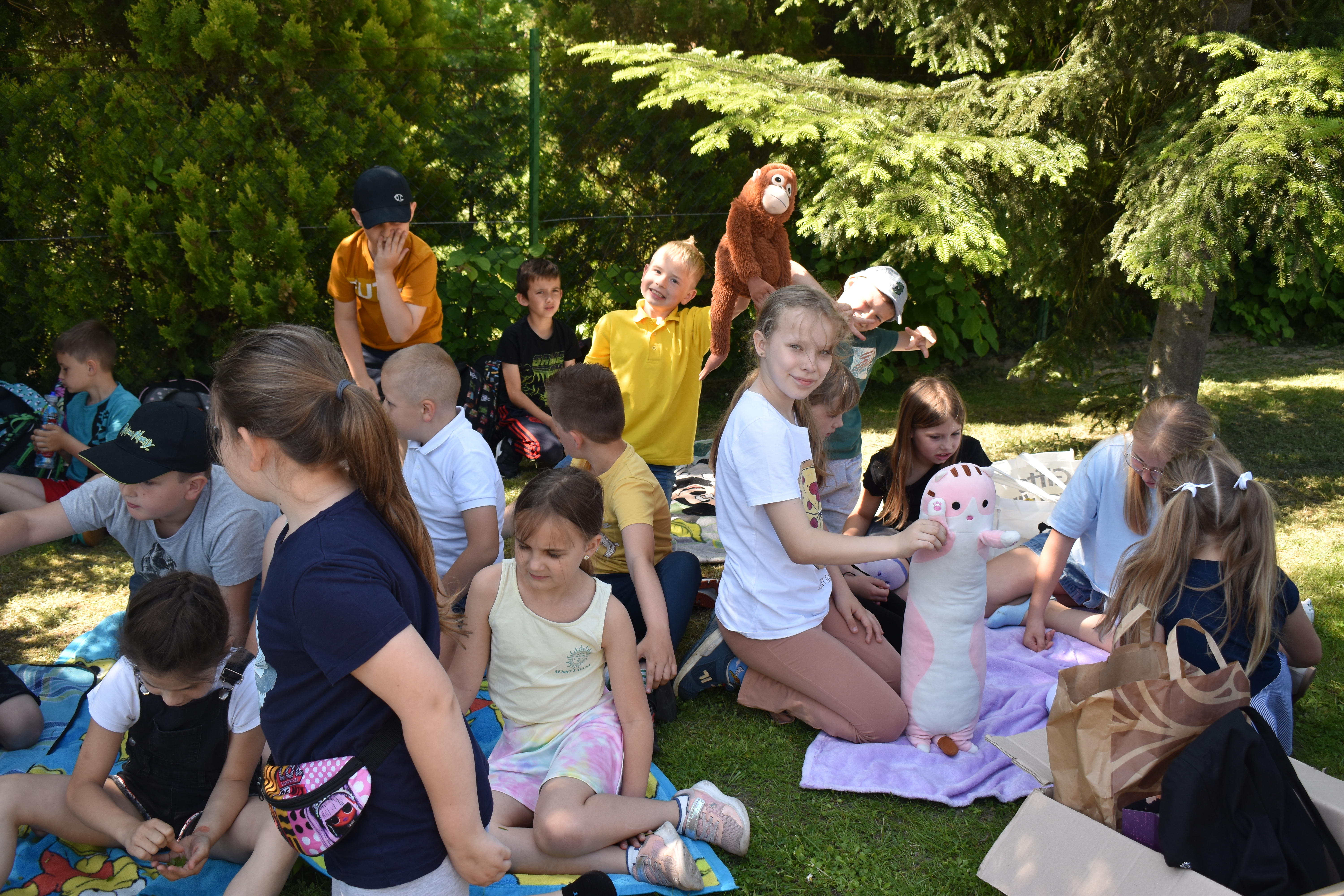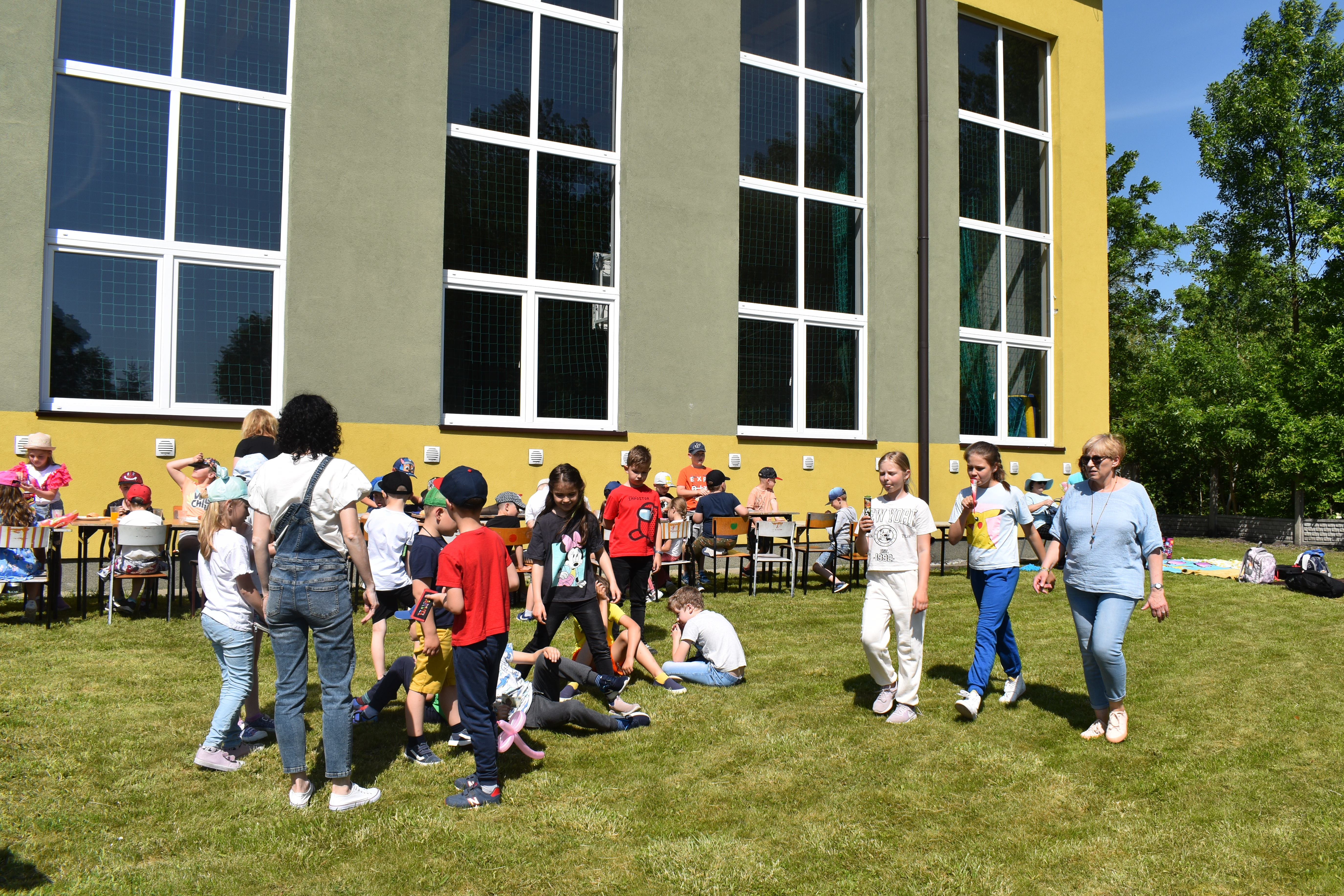 Następnego dnia świętowaliśmy Dzień Dziecka. Z tej okazji nauczyciele przygotowali dla dzieci wyjątkowe atrakcje oraz słodkości. Dzień zaczął się od zabaw ruchowych przy najnowszych przebojach z list muzycznych, a następnie uczniowie udali się w kierunku boiska szkolnego, by zmierzyć się w kilku konkurencjach sportowych. Dodatkowymi atrakcjami były: malowanie na folii, zabawy z chustą animacyjną, bańki mydlane, malowanie twarzy, kolorowe warkoczyki oraz modelowanie balonów. Nie zabrakło również wspólnego posiłku – pysznych, pieczonych na grillu kiełbasek.