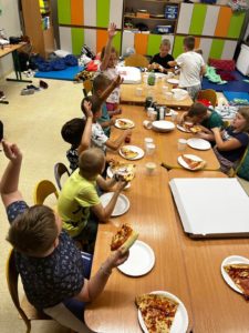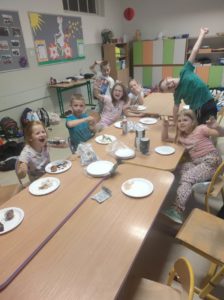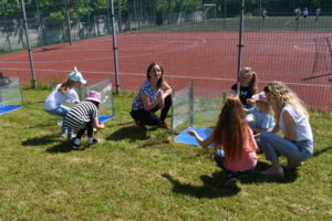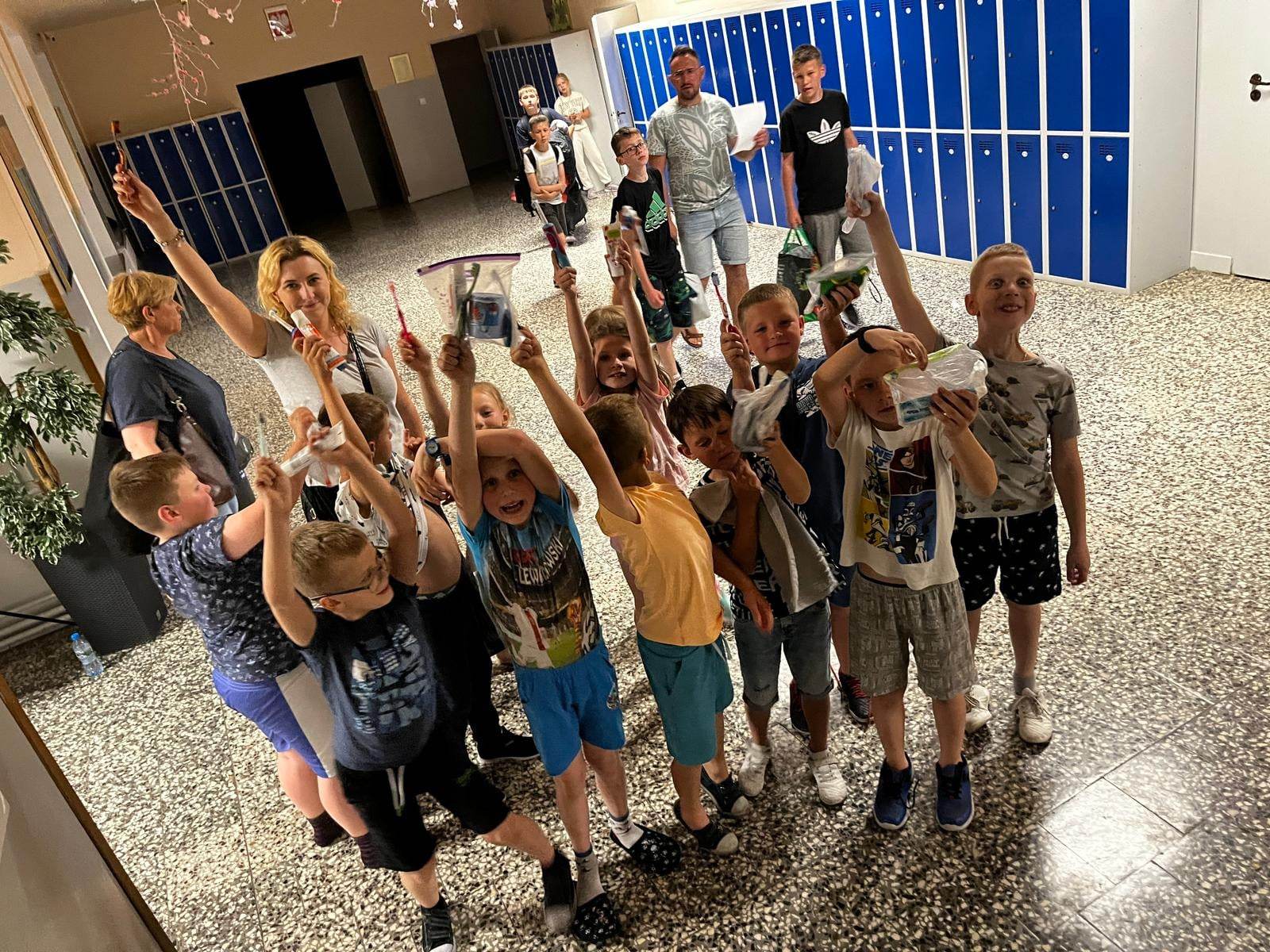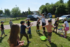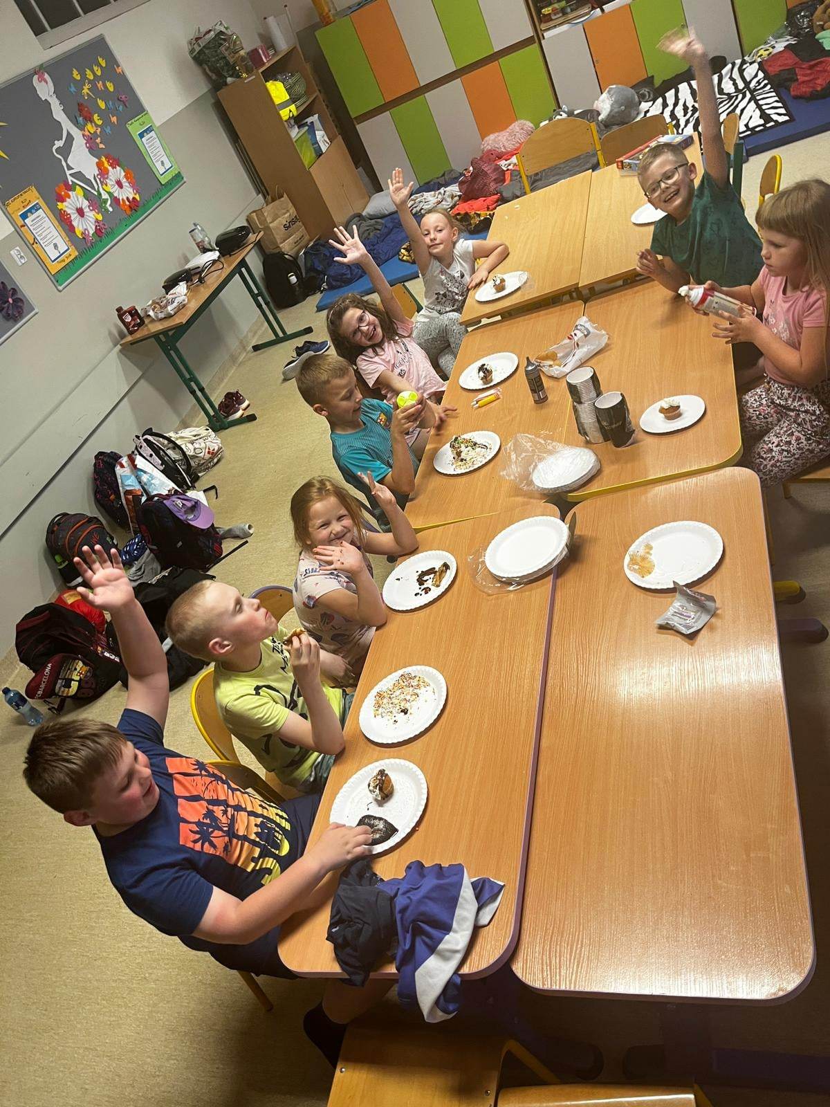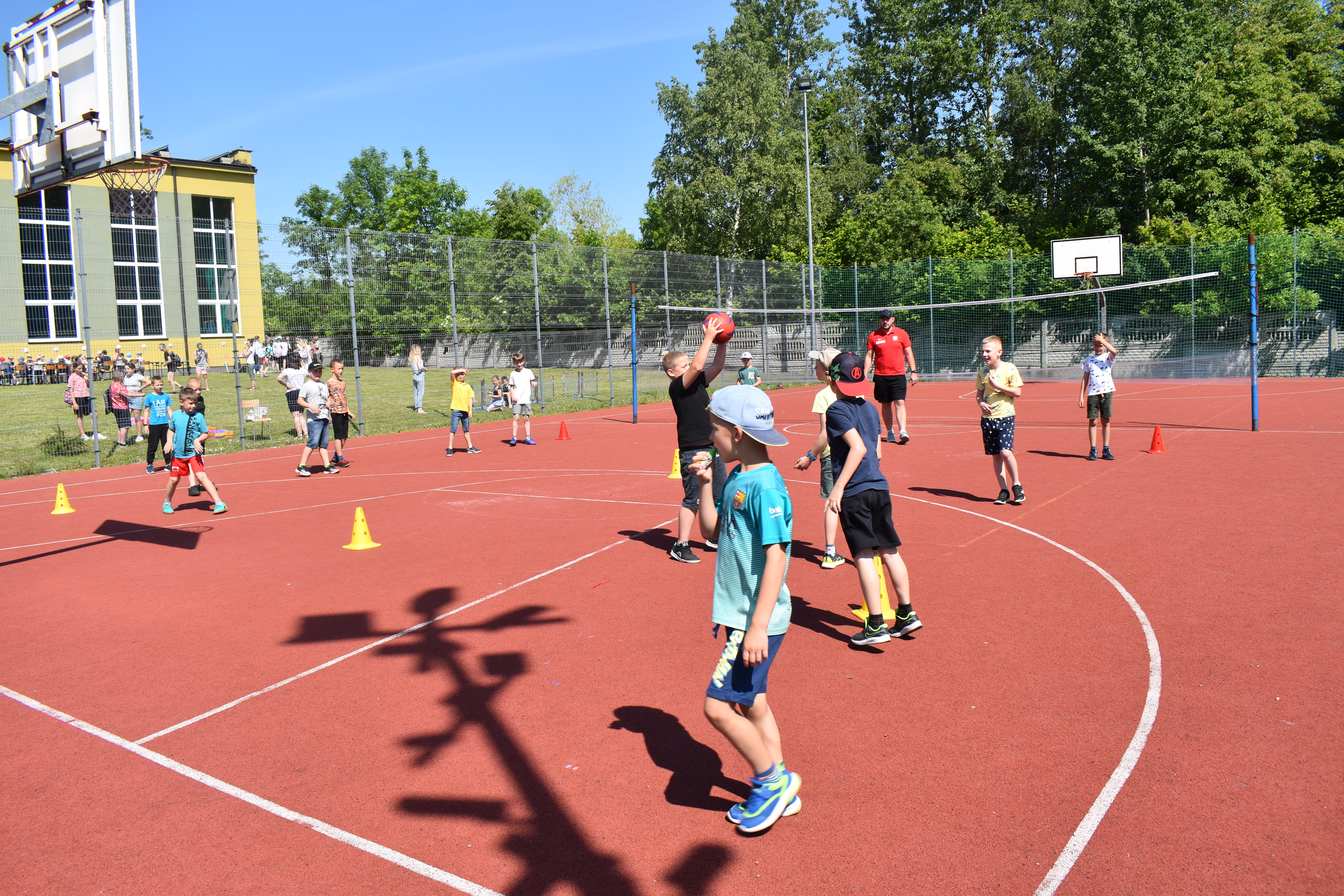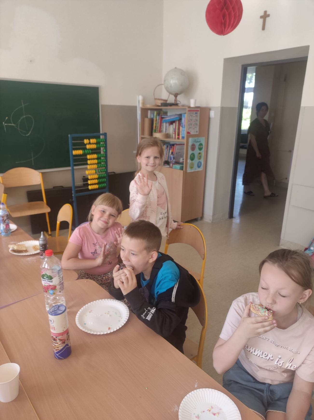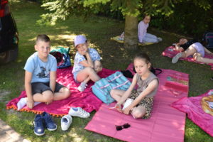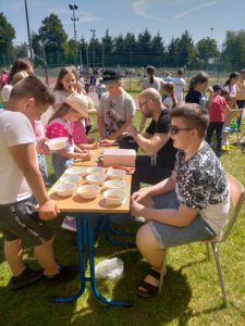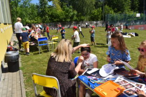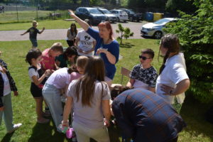 Następnego dnia świętowaliśmy Dzień Dziecka. Z tej okazji nauczyciele przygotowali dla dzieci wyjątkowe atrakcje oraz słodkości. Dzień zaczął się od zabaw ruchowych przy najnowszych przebojach z list muzycznych, a następnie uczniowie udali się w kierunku boiska szkolnego, by zmierzyć się w kilku konkurencjach sportowych. Dodatkowymi atrakcjami były: malowanie na folii, zabawy z chustą animacyjną, bańki mydlane, malowanie twarzy, kolorowe warkoczyki oraz modelowanie balonów. Nie zabrakło również wspólnego posiłku – pysznych, pieczonych na grillu kiełbasek.