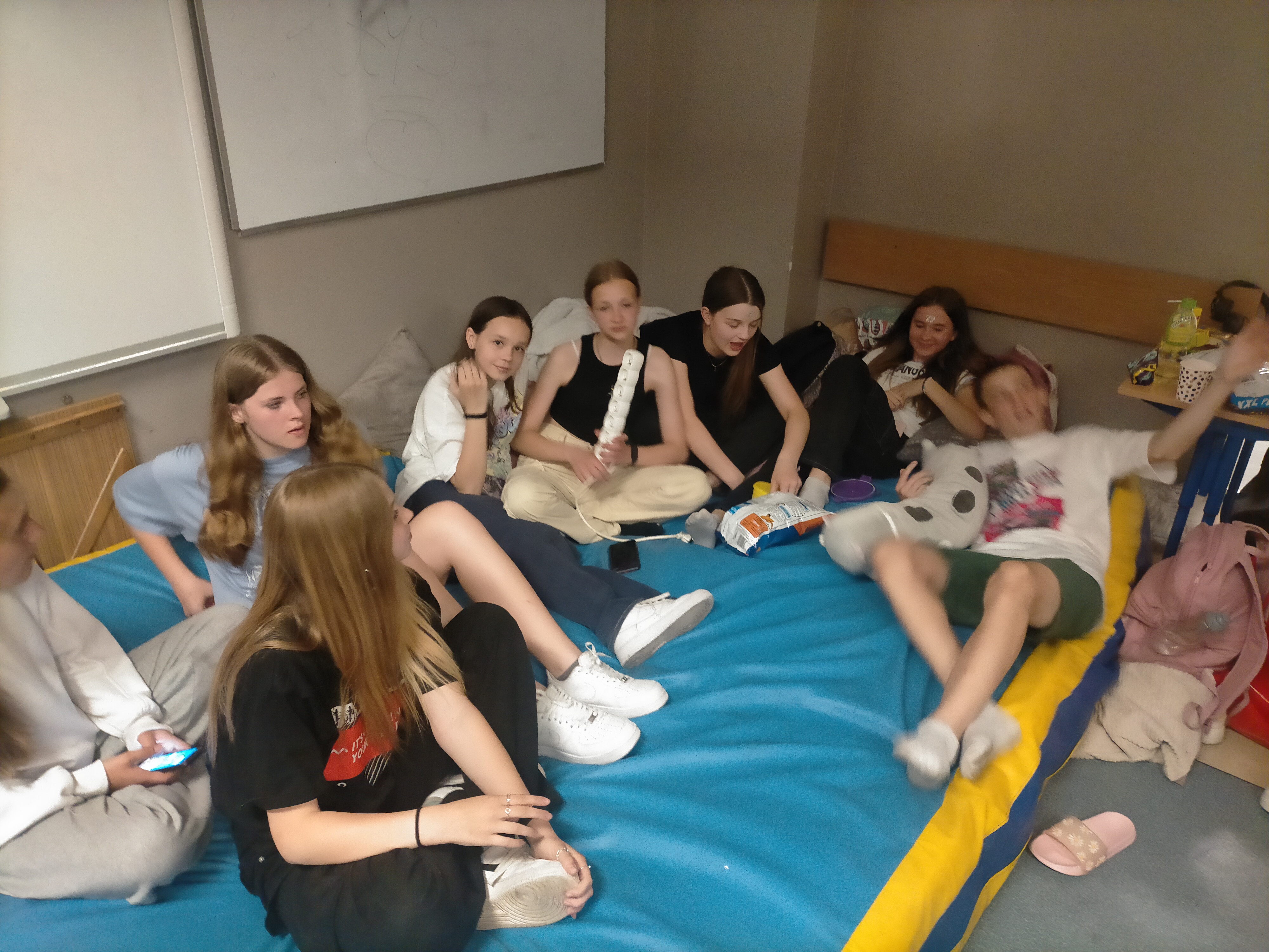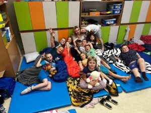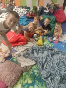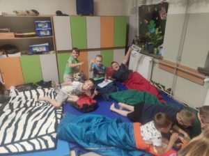 W noc poprzedzającą Dzień Dziecka szkoła rozbłysła mnóstwem świateł. Dzieci ciągnęły tłumnie na spotkanie wielkiej przygody! Nocowanie w szkole! Dla wielu było to bardzo duże przeżycie, szczególnie, że były z nami również dzieci z klas I -III. Materace z sali gimnastycznej zamieniły sale lekcyjne w sypialnie. W ramach atrakcji odbył turniej Fifa na dużym ekranie, pieczenie gofrów, pizza, salon urody, kino i dyskoteka. Samorząd Uczniowski – jako organizator dziękuje wszystkim, którzy wsparli nas w tym przedsięwzięciu.