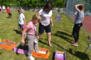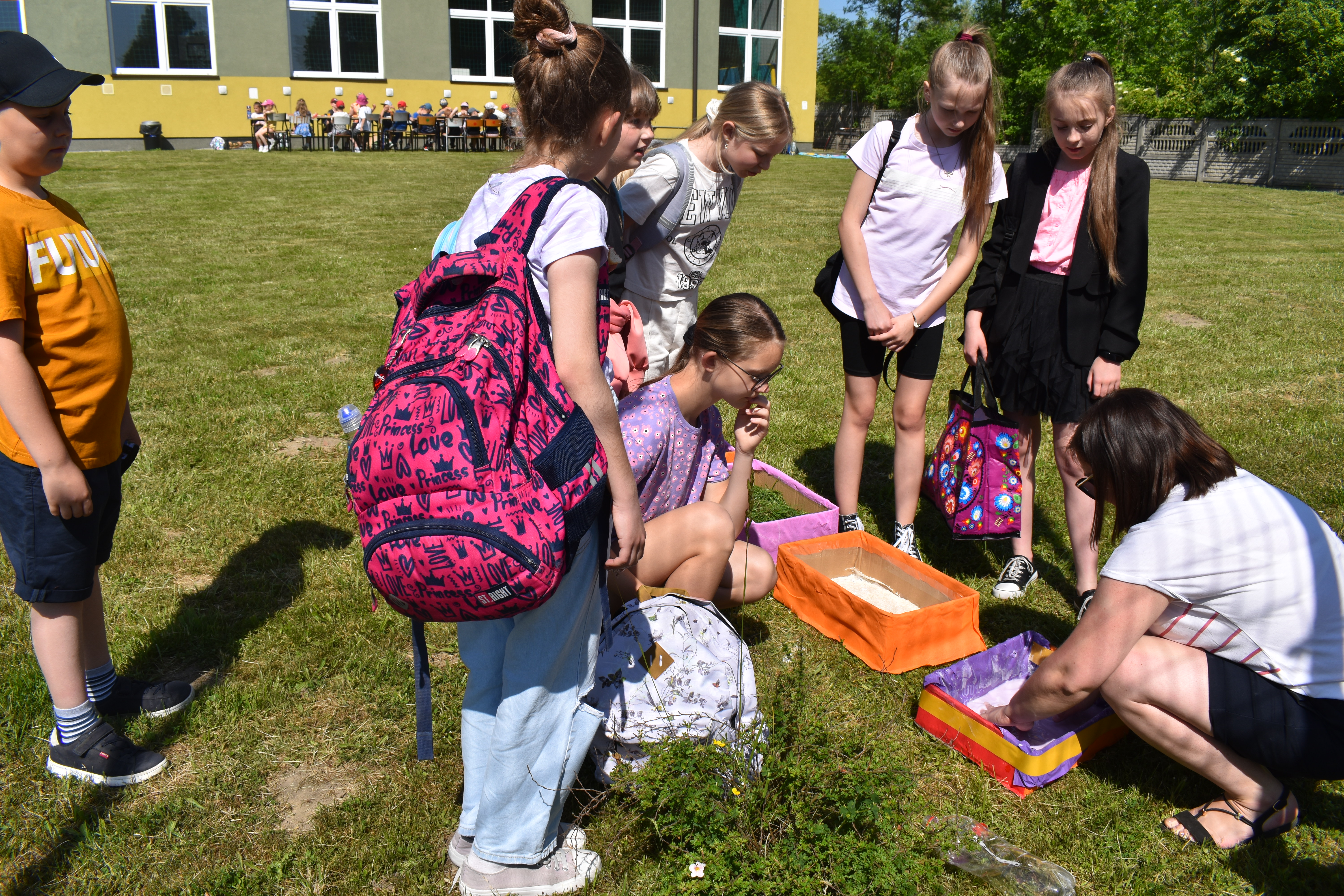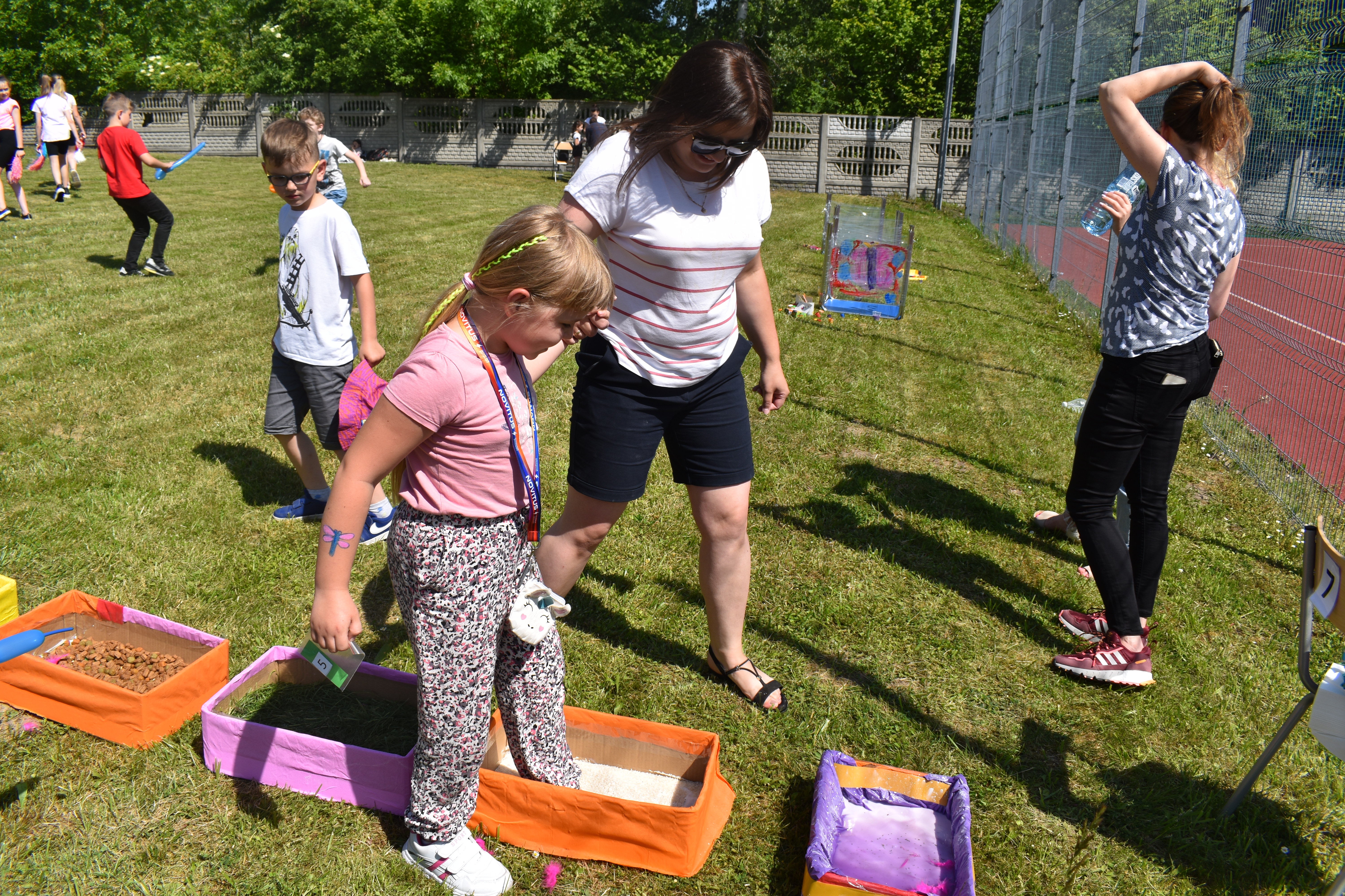 Podczas obchodów Dnia Dziecka SU wraz z SKO zorganizował grę terenową. Udział w niej wzięło aż 87 chętnych uczestników. Konkurencje nie były proste! Trzeba było rozpoznać dotykiem przedmioty zakopane w magicznym piasku, złowić pałeczkami do sushi korki i diamenty, popróbować sztuki kaligrafii, przyszyć guzik, rozpoznać 3 z 10 przypraw po smaku lub zapachu, zapleść warkocz i przejść labirynt sensoryczny, łaskoczący bose stopy, a zakończony śluzem trola! Zwycięzcy zostaną uhonorowani na zakończeniu roku szkolnego. To był wspaniały dzień, który upłynął w wyjątkowej atmosferze.
