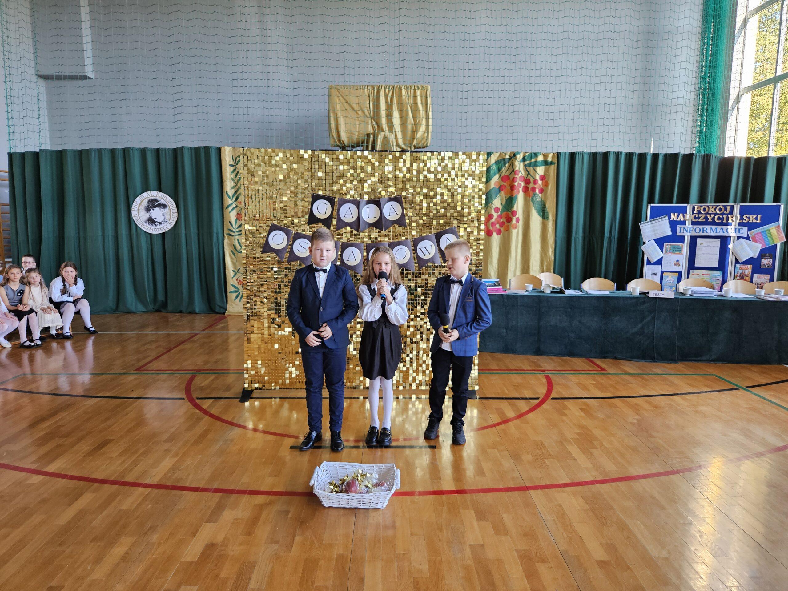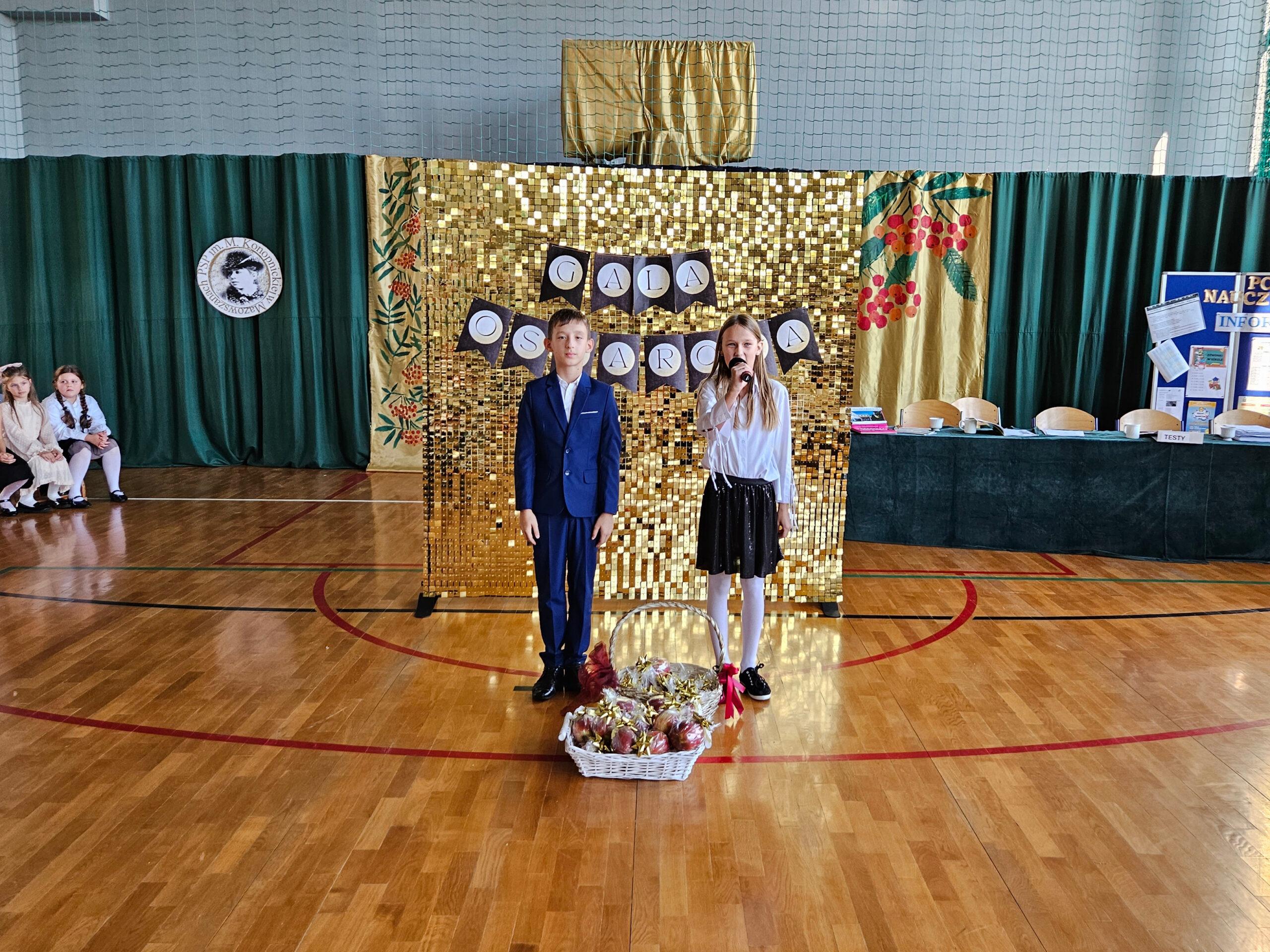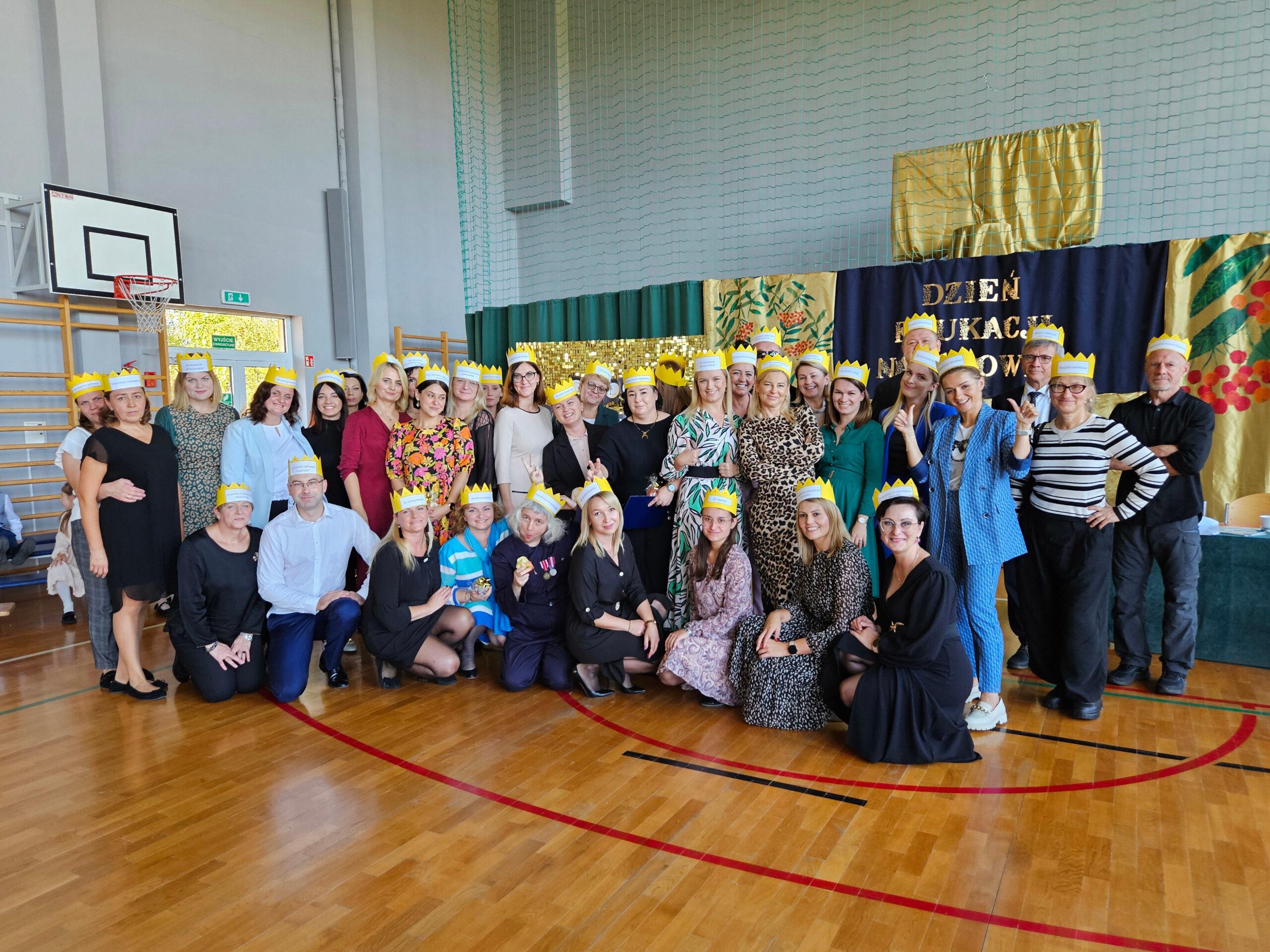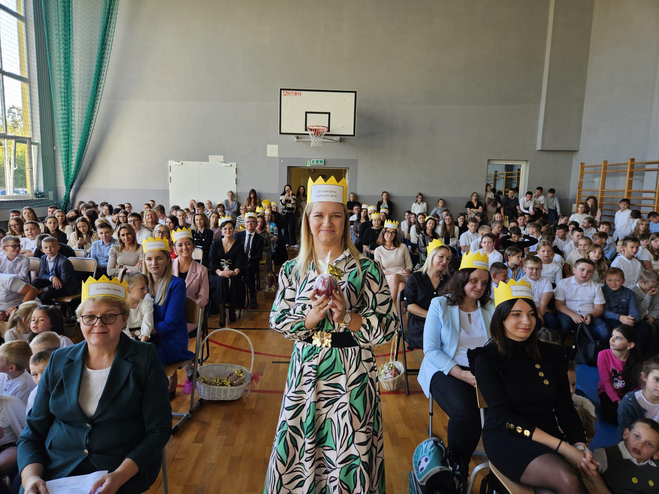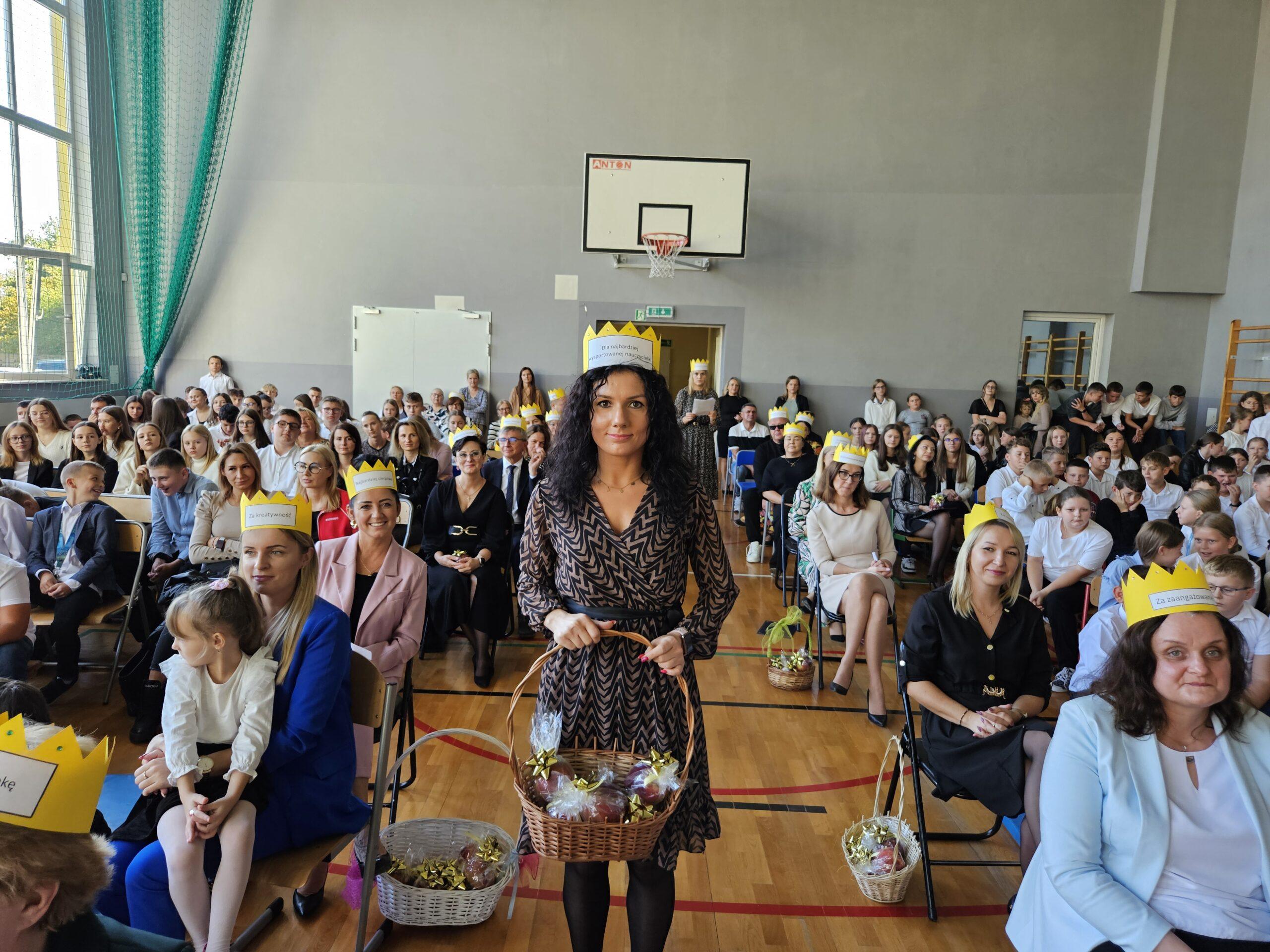 Dzień Edukacji Narodowej jest okazją do wyrażenia wdzięczności za wysiłek włożony w wychowanie i wielkie serce wkładane na rzecz pracy z dziećmi. Właśnie z tej okazji 10 października 2024 r. cała społeczność szkolna spotkała się na uroczystej akademii przygotowanej przez klasy trzecie pod kierunkiem pań: Doroty Kowalczyk, Eweliny Wakuły, Anny Pawlikowskiej, Katarzyny Orłowskiej, Aleksandry Marzec. O oprawę muzyczną zadbała pani Izabela Tracz. Uroczystość rozpoczęła się od przemówienia Pani Dyrektor Małgorzaty Trelki, która przywitała przybyłych gości, wszystkich nauczycieli oraz pracowników szkoły. Podziękowała za zaangażowanie i okazane serce oraz życzyła wielu sił i wytrwałości w wykonywaniu tego wyjątkowego zawodu. W tym dniu wręczone zostały także Nagrody Dyrektora Szkoły nauczycielom, a także pracownikom obsługi i administracji. W dalszej części uroczystości głos zabrali uczniowie. Młodzi artyści w zabawny sposób zaprezentowali obraz współczesnej szkoły i przedstawili postacie nauczycieli. „Gwoździem programu” była Gala Oskarowa, podczas której uczniowie przyznali nauczycielom oraz pracownikom szkoły Oscary. Były fanfary, złota ścianka oraz konferansjerzy. Nie zabrakło także prawdziwych gwiazd, czyli wszystkich pracowników szkoły. Laureaci otrzymali wyróżnienia w różnych kategoriach. To była niezwykle emocjonująca gala, a jej zwieńczeniem był taniec w wykonaniu uczennic z klasy 3a ze szkolnego zespołu „Na skrzydłach tańca”. Miłym akcentem były także życzenia i upominki od Samorządu Uczniowskiego.