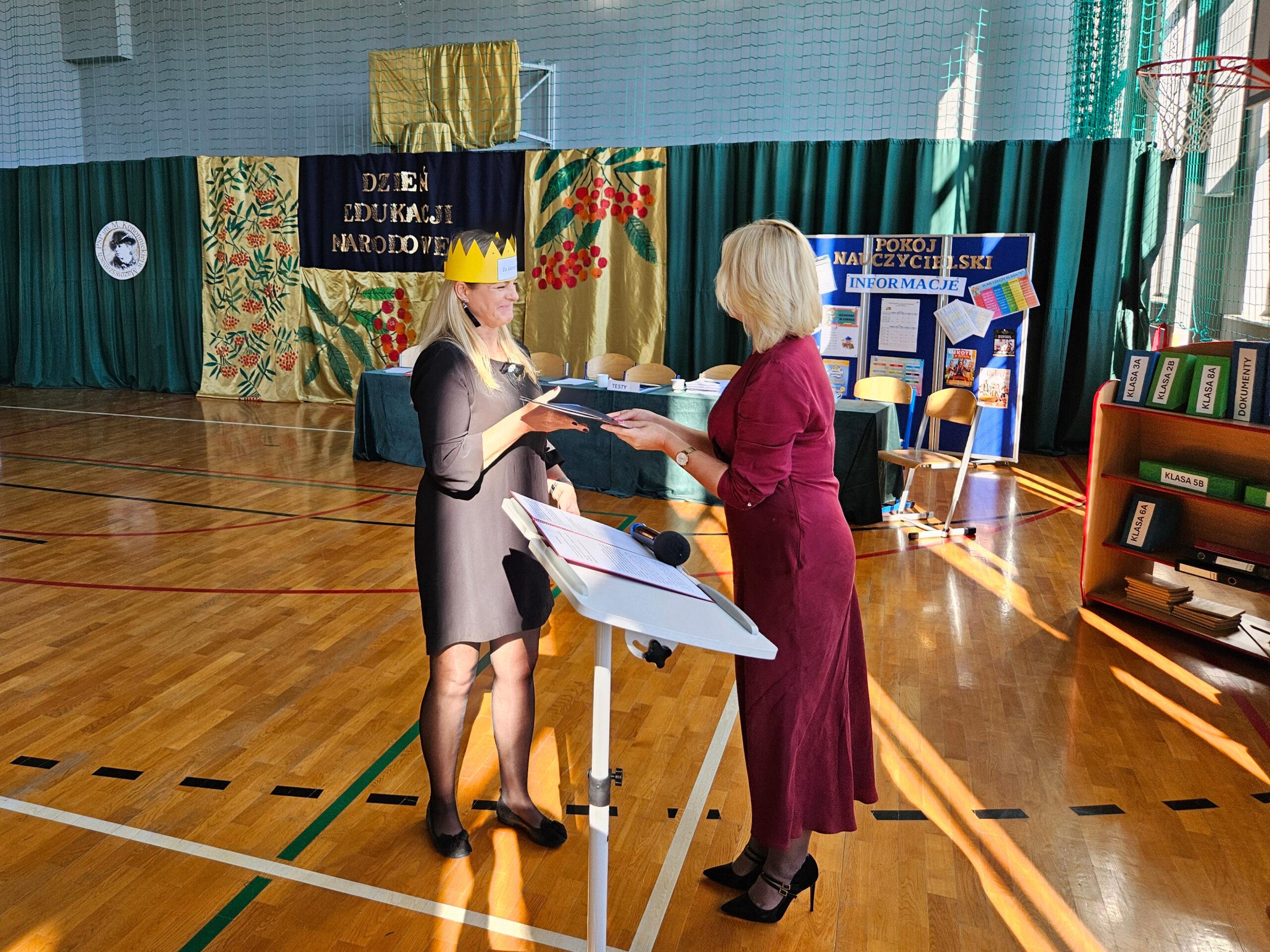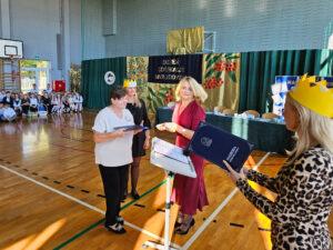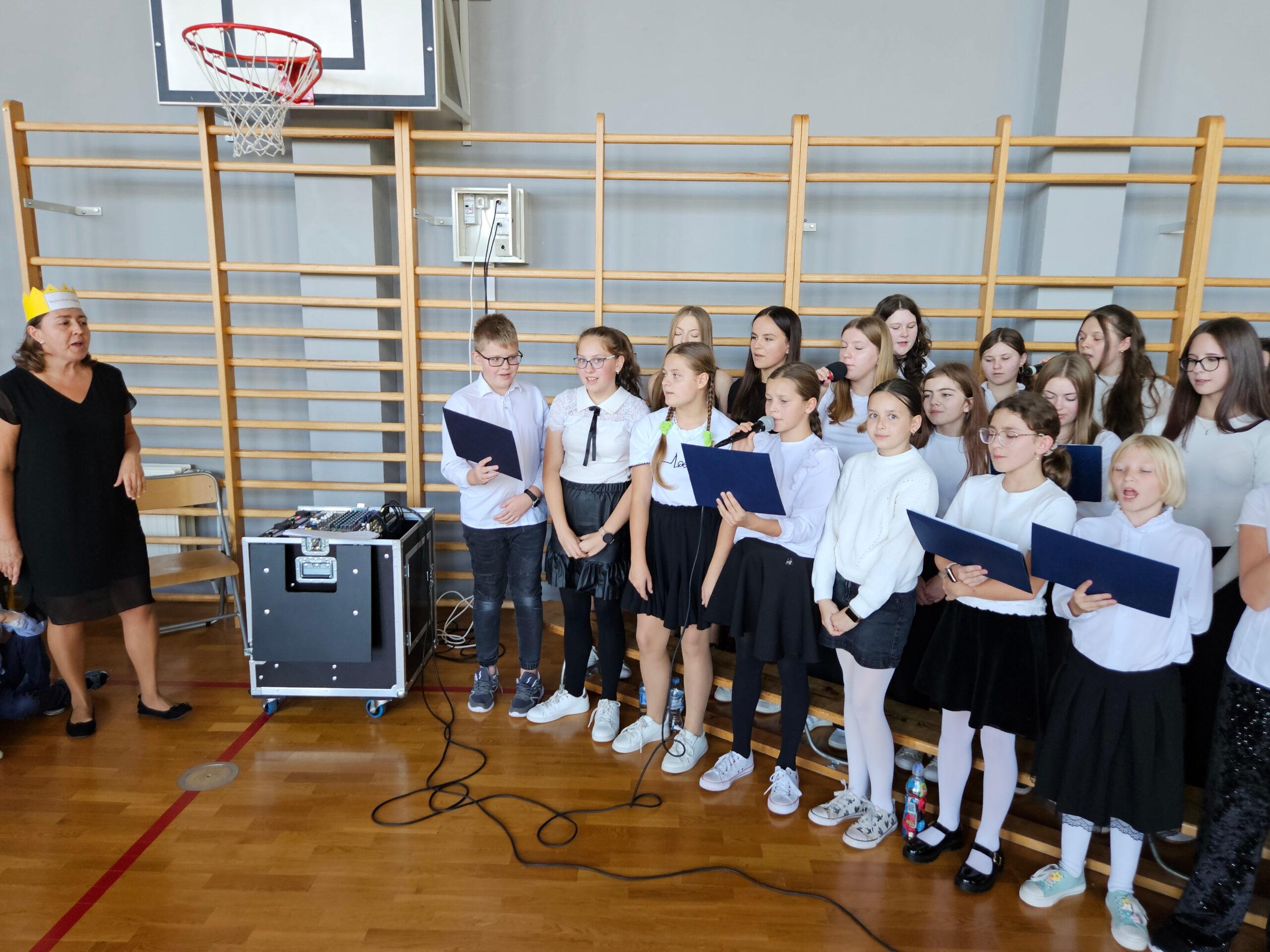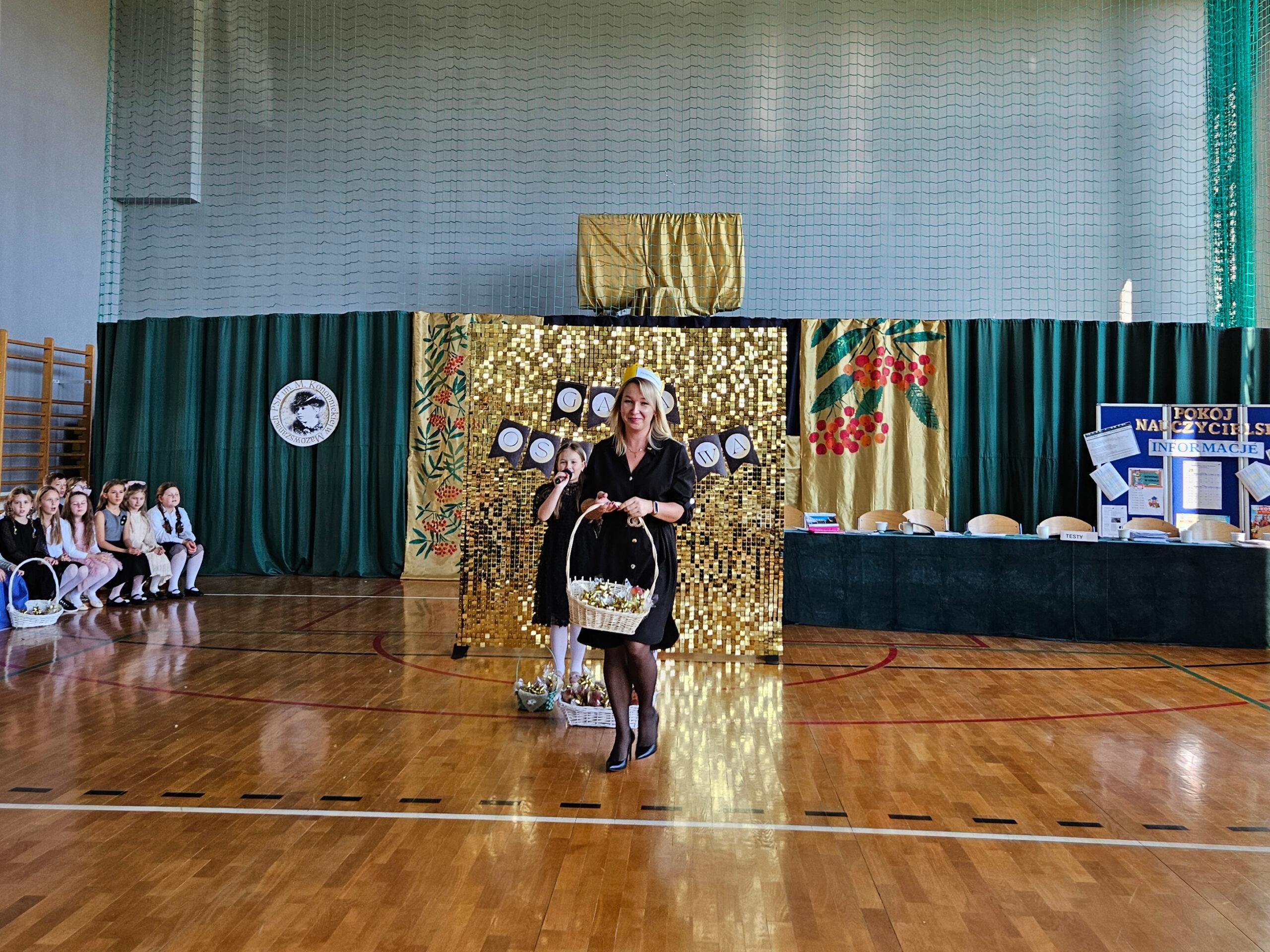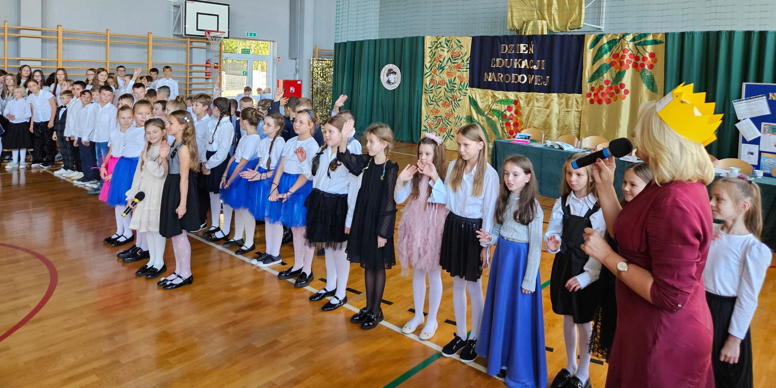 Dzień Edukacji Narodowej jest okazją do wyrażenia wdzięczności za wysiłek włożony w wychowanie i wielkie serce wkładane na rzecz pracy z dziećmi. Właśnie z tej okazji 10 października 2024 r. cała społeczność szkolna spotkała się na uroczystej akademii przygotowanej przez klasy trzecie pod kierunkiem pań: Doroty Kowalczyk, Eweliny Wakuły, Anny Pawlikowskiej, Katarzyny Orłowskiej, Aleksandry Marzec. O oprawę muzyczną zadbała pani Izabela Tracz. Uroczystość rozpoczęła się od przemówienia Pani Dyrektor Małgorzaty Trelki, która przywitała przybyłych gości, wszystkich nauczycieli oraz pracowników szkoły. Podziękowała za zaangażowanie i okazane serce oraz życzyła wielu sił i wytrwałości w wykonywaniu tego wyjątkowego zawodu. W tym dniu wręczone zostały także Nagrody Dyrektora Szkoły nauczycielom, a także pracownikom obsługi i administracji. W dalszej części uroczystości głos zabrali uczniowie. Młodzi artyści w zabawny sposób zaprezentowali obraz współczesnej szkoły i przedstawili postacie nauczycieli. „Gwoździem programu” była Gala Oskarowa, podczas której uczniowie przyznali nauczycielom oraz pracownikom szkoły Oscary. Były fanfary, złota ścianka oraz konferansjerzy. Nie zabrakło także prawdziwych gwiazd, czyli wszystkich pracowników szkoły. Laureaci otrzymali wyróżnienia w różnych kategoriach. To była niezwykle emocjonująca gala, a jej zwieńczeniem był taniec w wykonaniu uczennic z klasy 3a ze szkolnego zespołu „Na skrzydłach tańca”. Miłym akcentem były także życzenia i upominki od Samorządu Uczniowskiego.