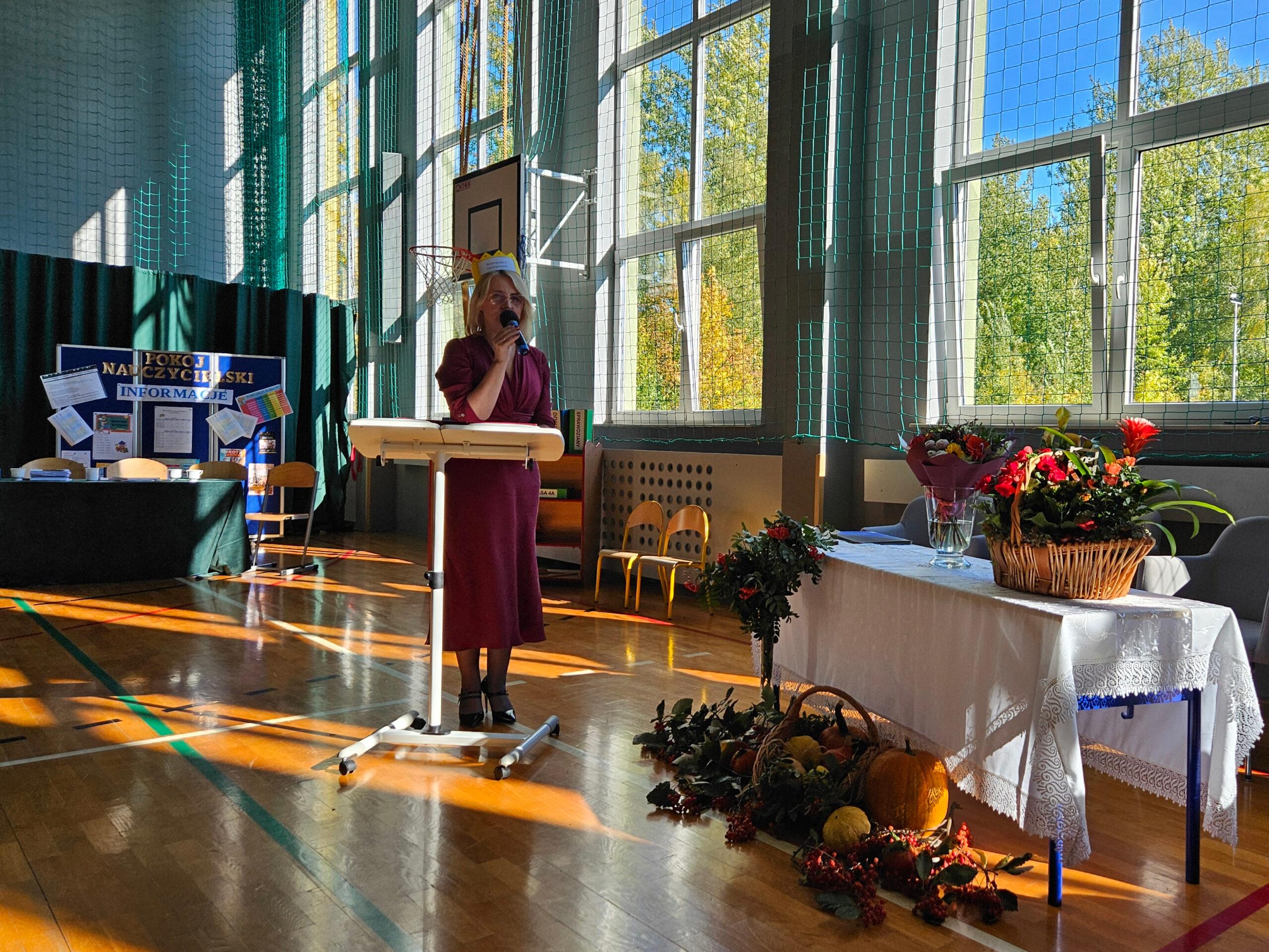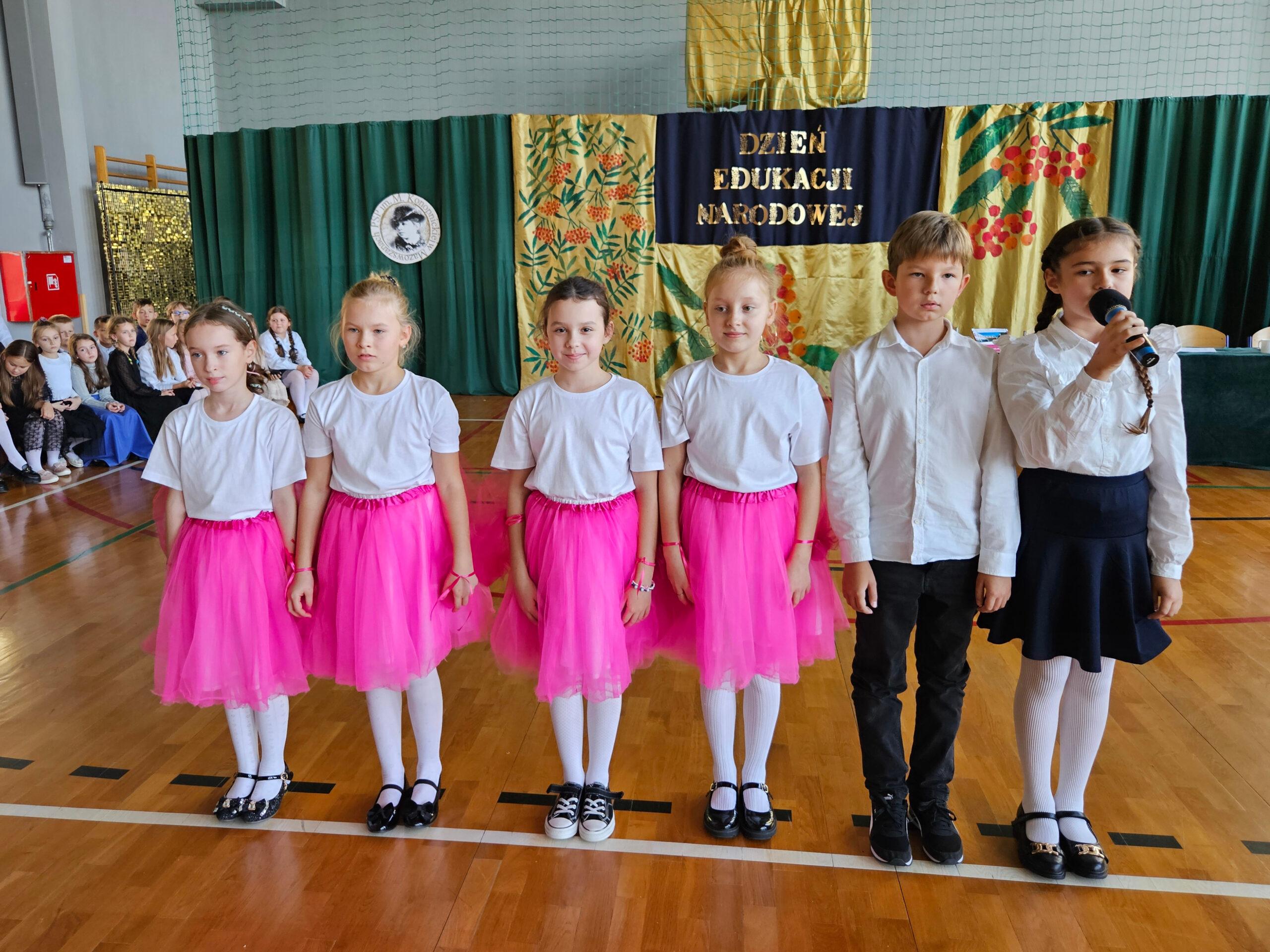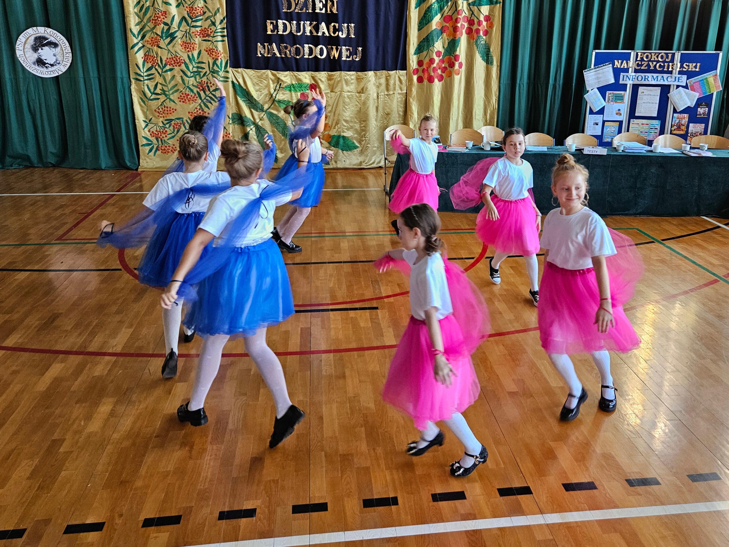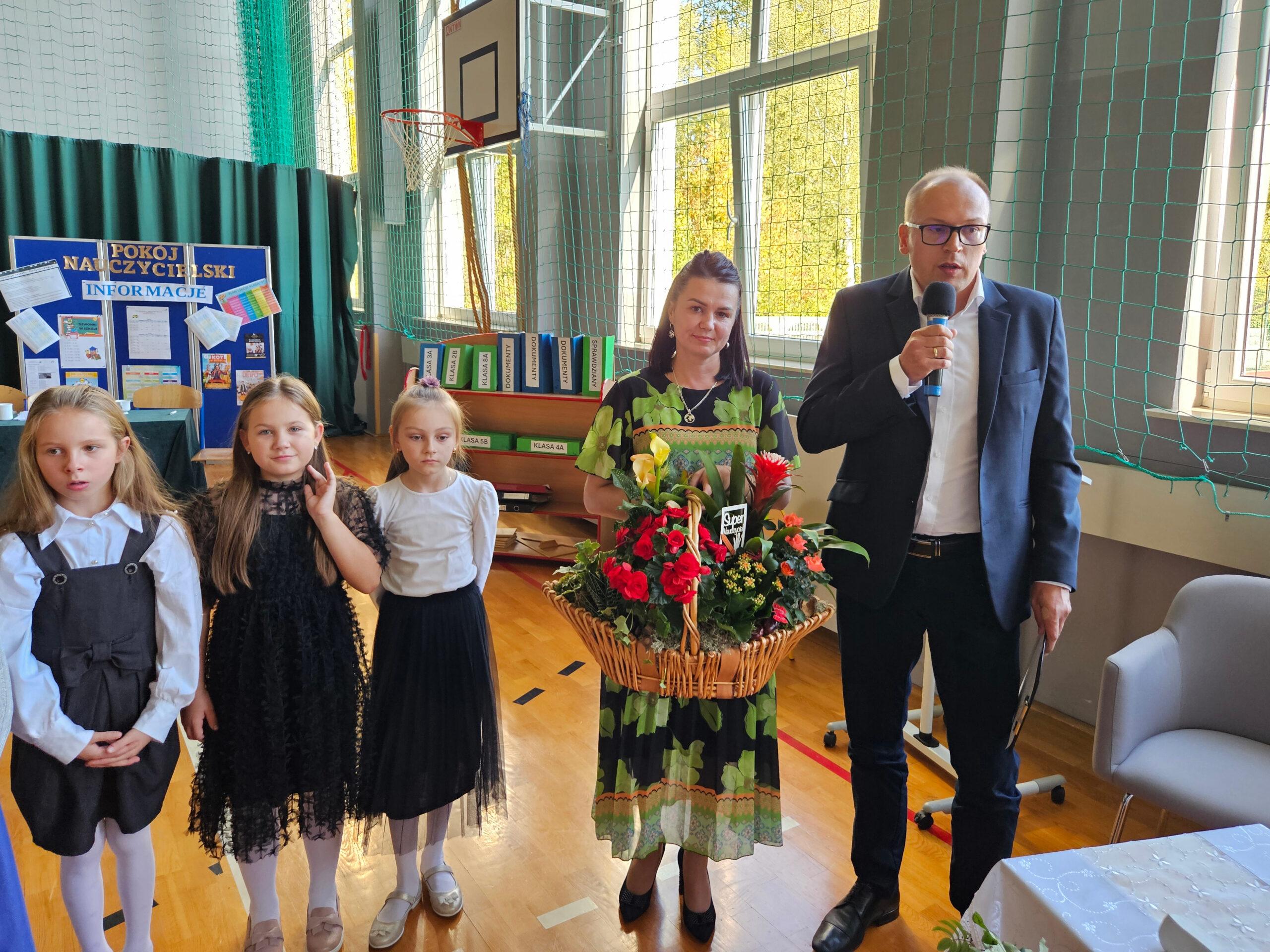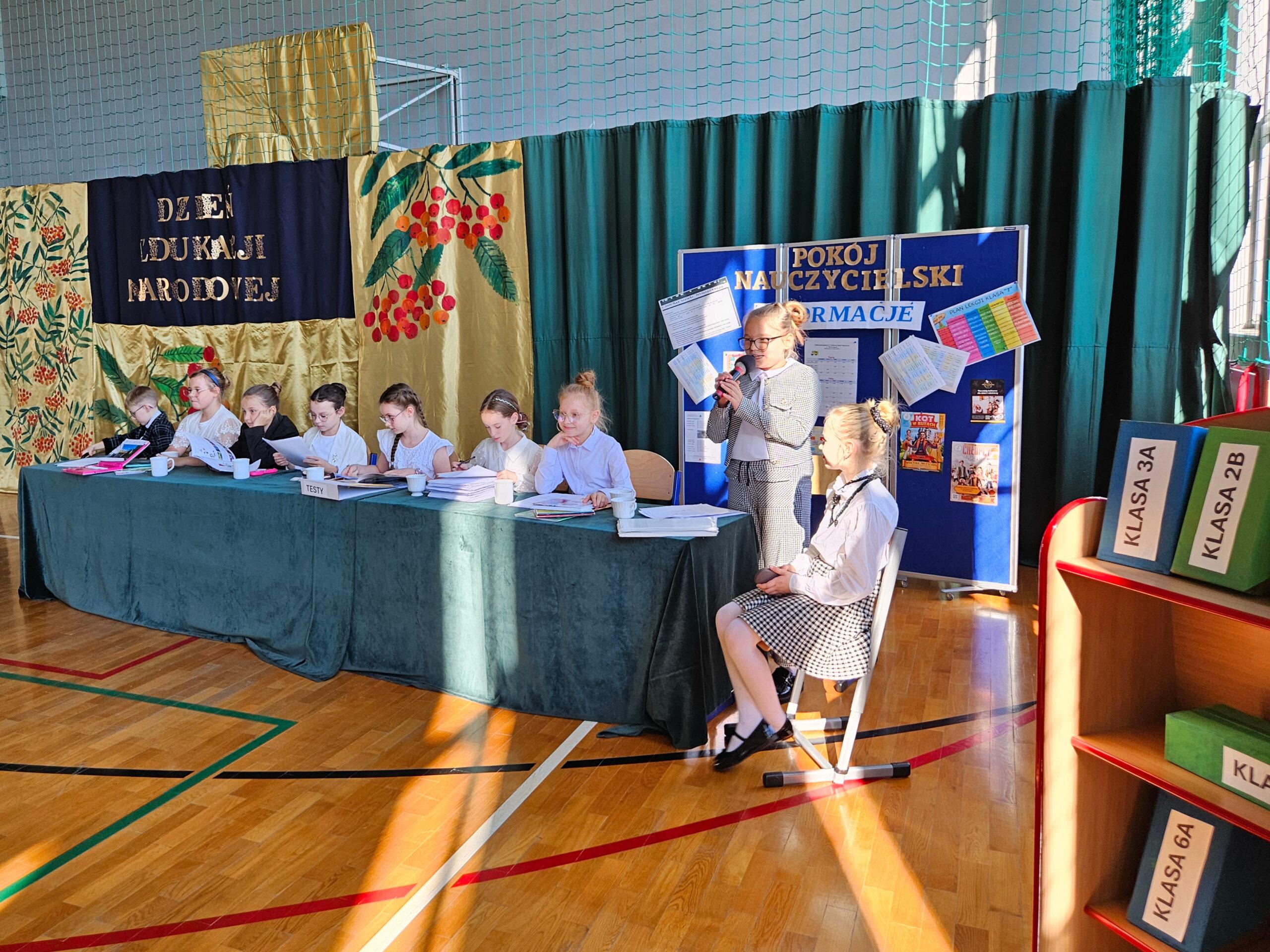 Dzień Edukacji Narodowej jest okazją do wyrażenia wdzięczności za wysiłek włożony w wychowanie i wielkie serce wkładane na rzecz pracy z dziećmi. Właśnie z tej okazji 10 października 2024 r. cała społeczność szkolna spotkała się na uroczystej akademii przygotowanej przez klasy trzecie pod kierunkiem pań: Doroty Kowalczyk, Eweliny Wakuły, Anny Pawlikowskiej, Katarzyny Orłowskiej, Aleksandry Marzec. O oprawę muzyczną zadbała pani Izabela Tracz. Uroczystość rozpoczęła się od przemówienia Pani Dyrektor Małgorzaty Trelki, która przywitała przybyłych gości, wszystkich nauczycieli oraz pracowników szkoły. Podziękowała za zaangażowanie i okazane serce oraz życzyła wielu sił i wytrwałości w wykonywaniu tego wyjątkowego zawodu. W tym dniu wręczone zostały także Nagrody Dyrektora Szkoły nauczycielom, a także pracownikom obsługi i administracji. W dalszej części uroczystości głos zabrali uczniowie. Młodzi artyści w zabawny sposób zaprezentowali obraz współczesnej szkoły i przedstawili postacie nauczycieli. „Gwoździem programu” była Gala Oskarowa, podczas której uczniowie przyznali nauczycielom oraz pracownikom szkoły Oscary. Były fanfary, złota ścianka oraz konferansjerzy. Nie zabrakło także prawdziwych gwiazd, czyli wszystkich pracowników szkoły. Laureaci otrzymali wyróżnienia w różnych kategoriach. To była niezwykle emocjonująca gala, a jej zwieńczeniem był taniec w wykonaniu uczennic z klasy 3a ze szkolnego zespołu „Na skrzydłach tańca”. Miłym akcentem były także życzenia i upominki od Samorządu Uczniowskiego.
