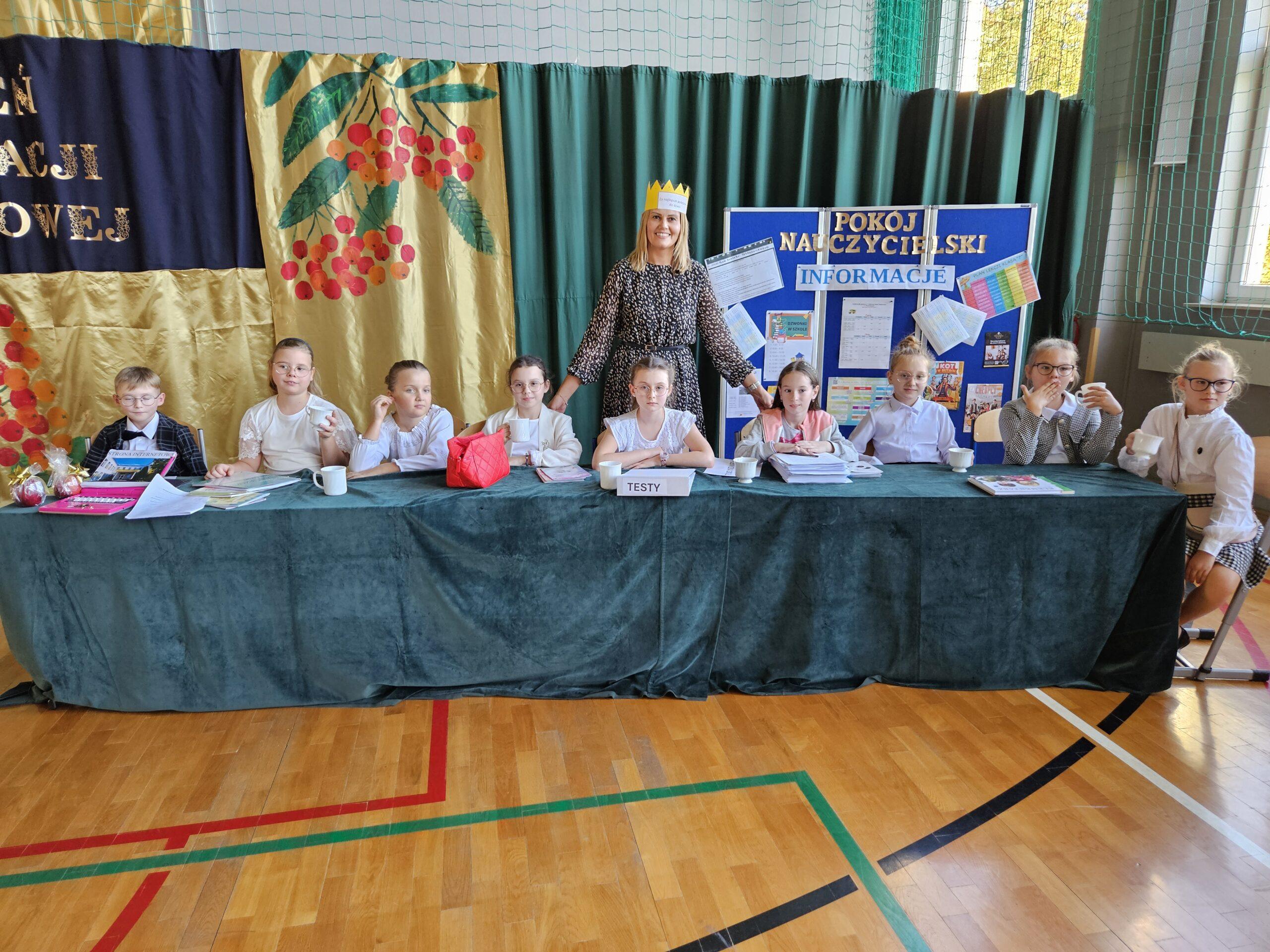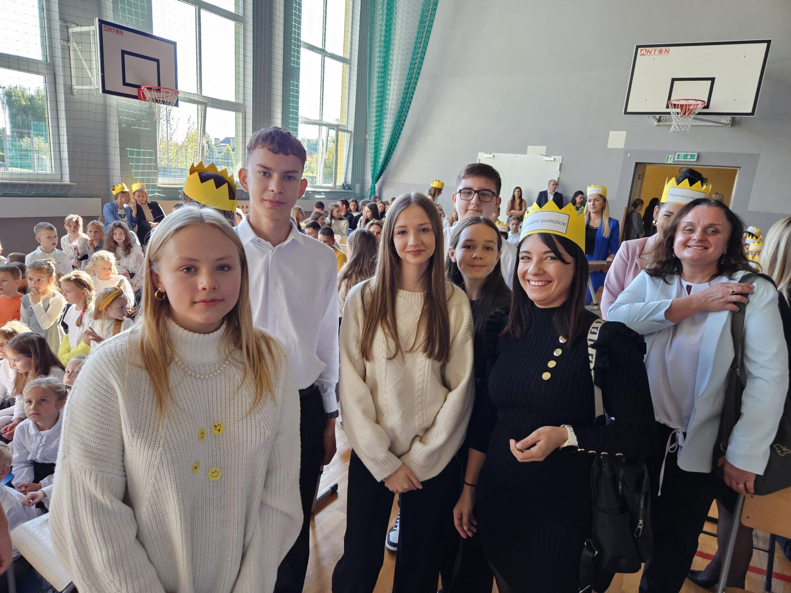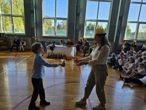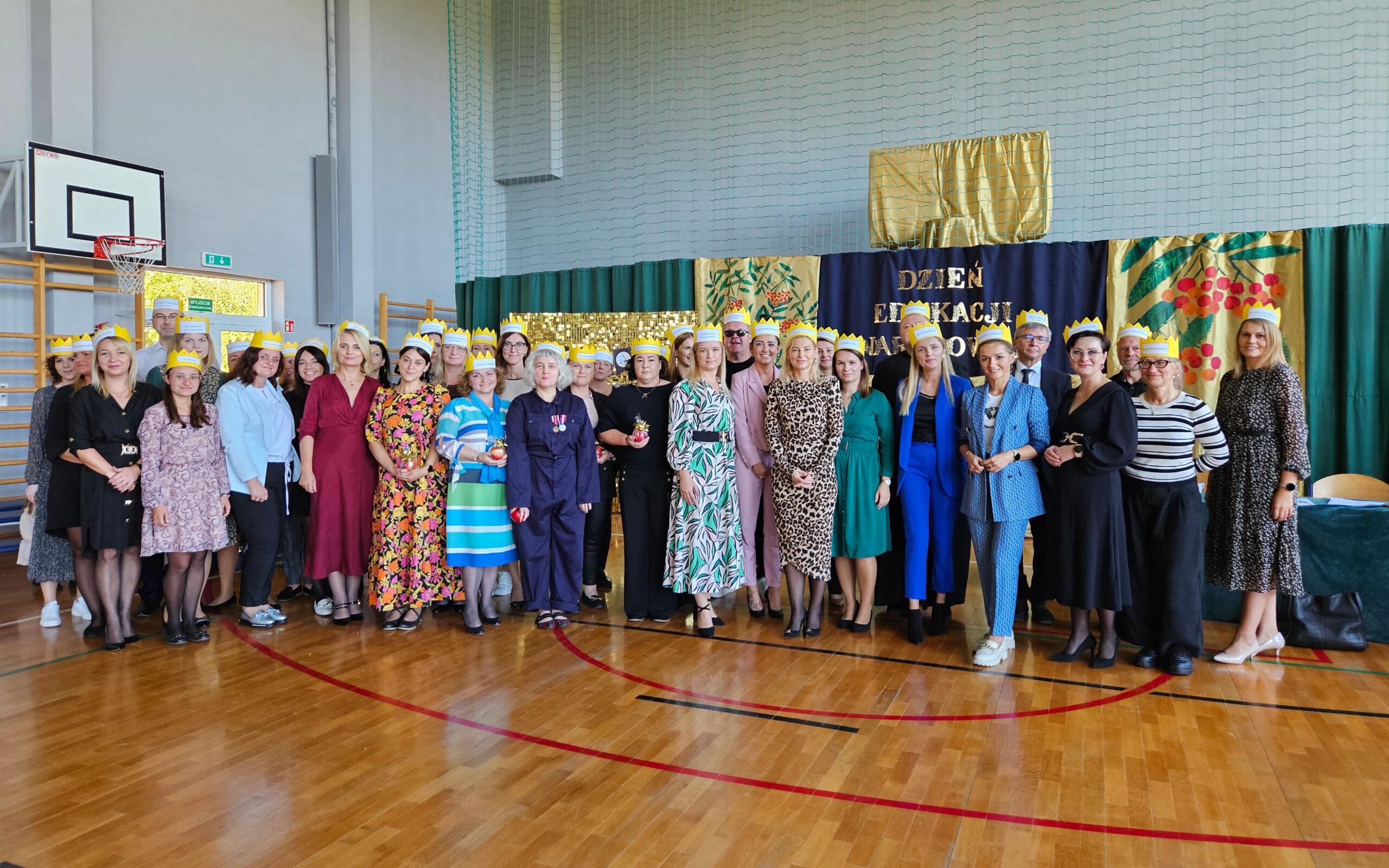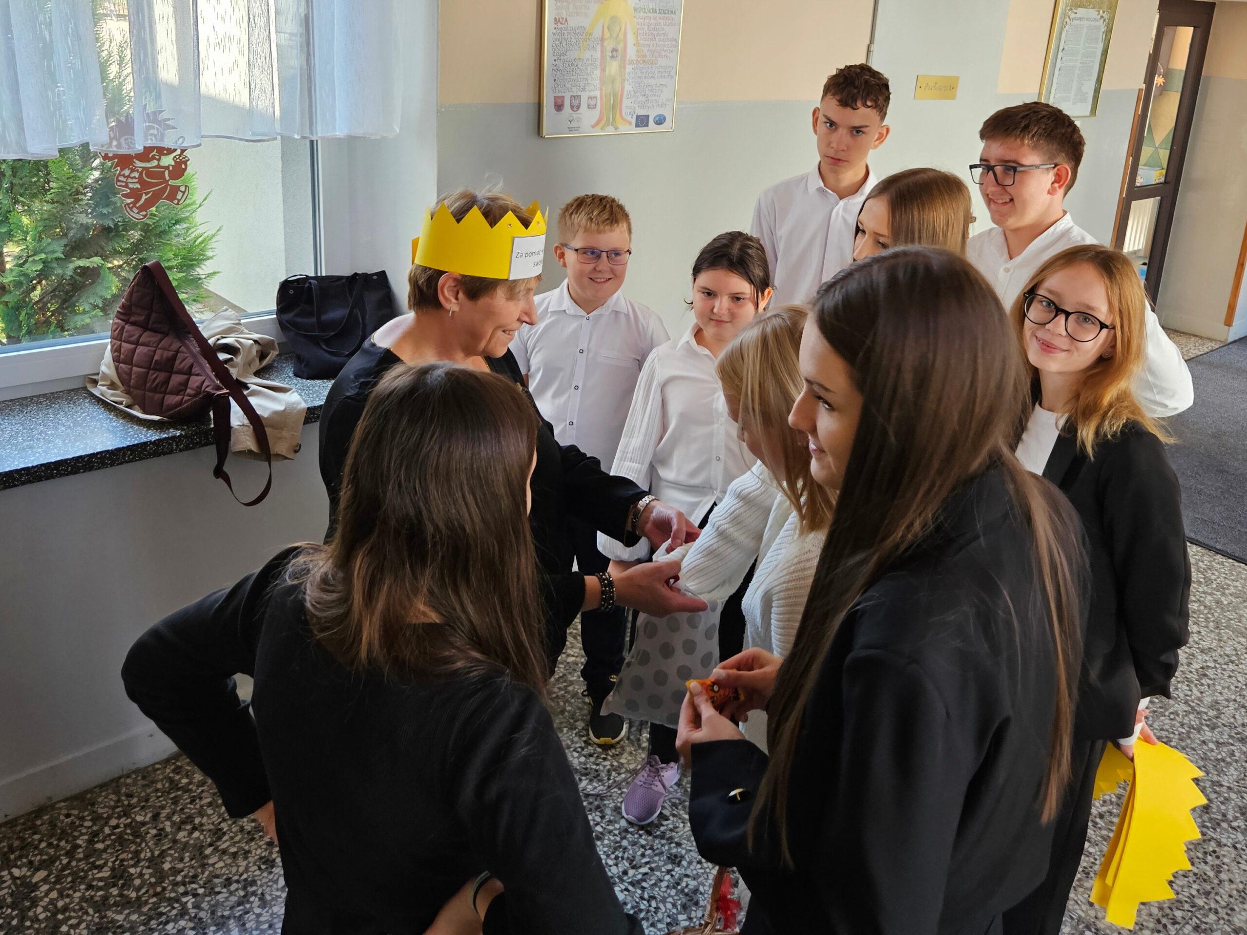 Dzień Edukacji Narodowej jest okazją do wyrażenia wdzięczności za wysiłek włożony w wychowanie i wielkie serce wkładane na rzecz pracy z dziećmi. Właśnie z tej okazji 10 października 2024 r. cała społeczność szkolna spotkała się na uroczystej akademii przygotowanej przez klasy trzecie pod kierunkiem pań: Doroty Kowalczyk, Eweliny Wakuły, Anny Pawlikowskiej, Katarzyny Orłowskiej, Aleksandry Marzec. O oprawę muzyczną zadbała pani Izabela Tracz. Uroczystość rozpoczęła się od przemówienia Pani Dyrektor Małgorzaty Trelki, która przywitała przybyłych gości, wszystkich nauczycieli oraz pracowników szkoły. Podziękowała za zaangażowanie i okazane serce oraz życzyła wielu sił i wytrwałości w wykonywaniu tego wyjątkowego zawodu. W tym dniu wręczone zostały także Nagrody Dyrektora Szkoły nauczycielom, a także pracownikom obsługi i administracji. W dalszej części uroczystości głos zabrali uczniowie. Młodzi artyści w zabawny sposób zaprezentowali obraz współczesnej szkoły i przedstawili postacie nauczycieli. „Gwoździem programu” była Gala Oskarowa, podczas której uczniowie przyznali nauczycielom oraz pracownikom szkoły Oscary. Były fanfary, złota ścianka oraz konferansjerzy. Nie zabrakło także prawdziwych gwiazd, czyli wszystkich pracowników szkoły. Laureaci otrzymali wyróżnienia w różnych kategoriach. To była niezwykle emocjonująca gala, a jej zwieńczeniem był taniec w wykonaniu uczennic z klasy 3a ze szkolnego zespołu „Na skrzydłach tańca”. Miłym akcentem były także życzenia i upominki od Samorządu Uczniowskiego.