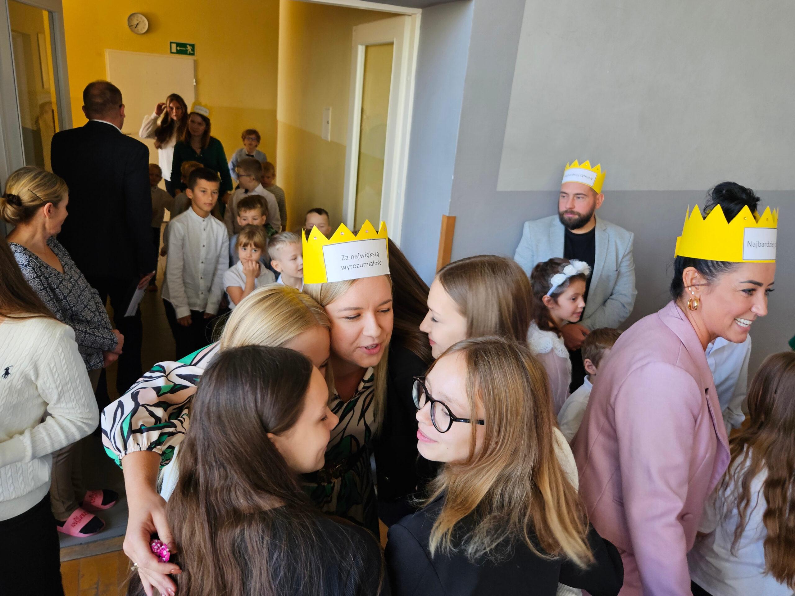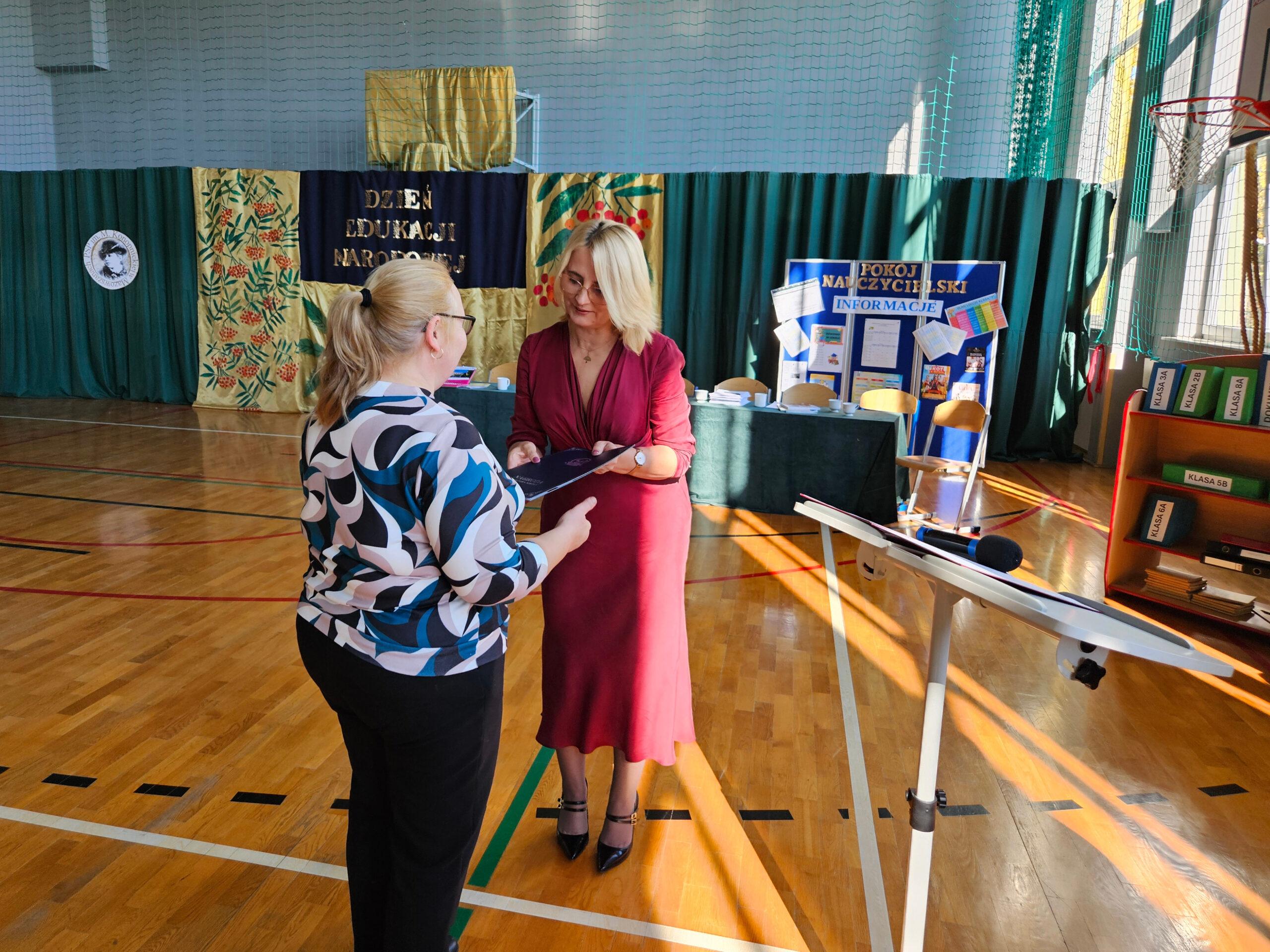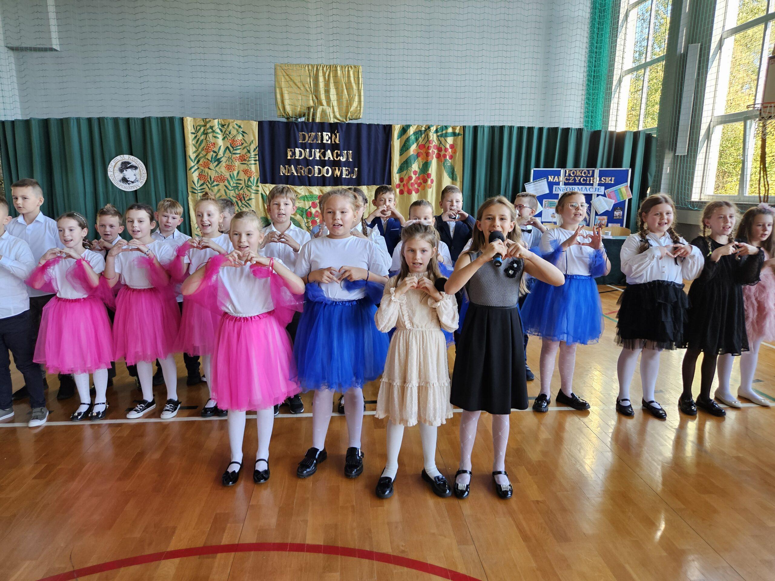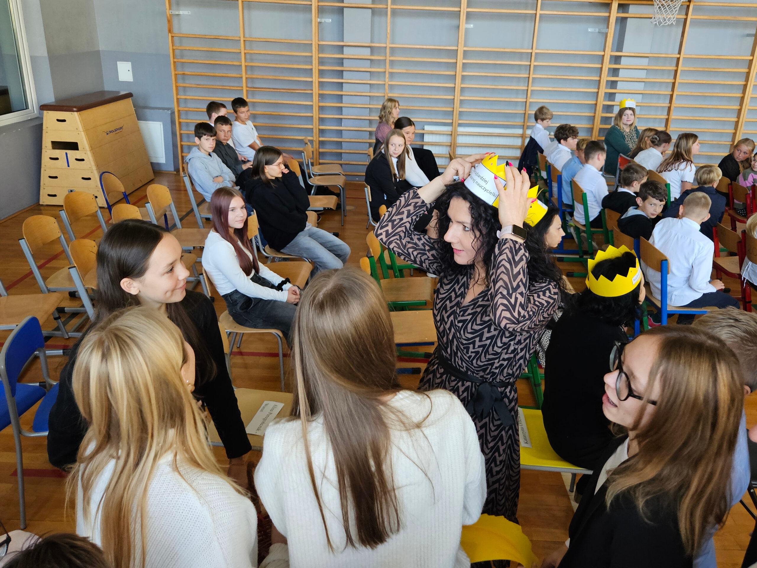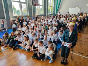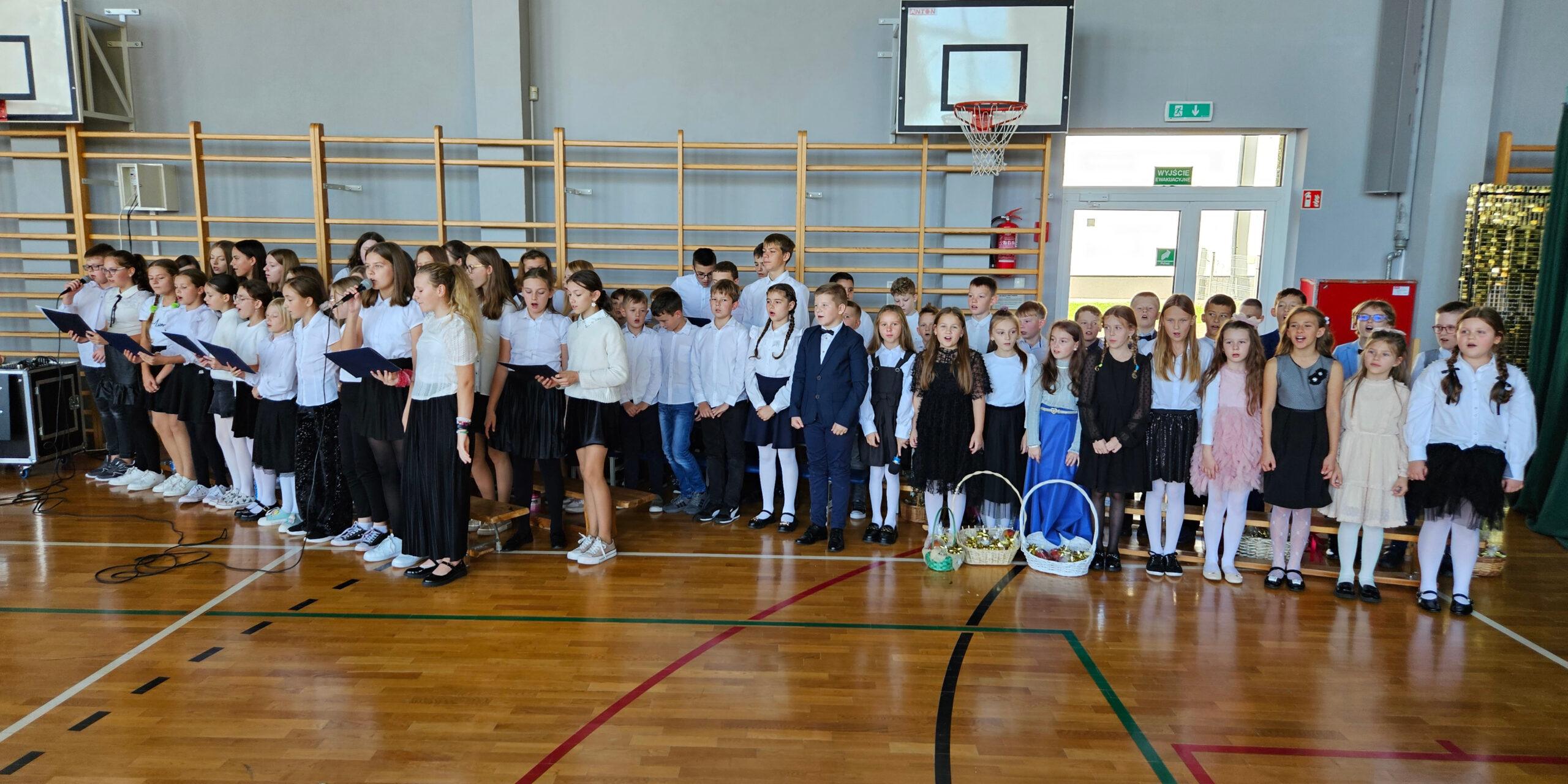 Dzień Edukacji Narodowej jest okazją do wyrażenia wdzięczności za wysiłek włożony w wychowanie i wielkie serce wkładane na rzecz pracy z dziećmi. Właśnie z tej okazji 10 października 2024 r. cała społeczność szkolna spotkała się na uroczystej akademii przygotowanej przez klasy trzecie pod kierunkiem pań: Doroty Kowalczyk, Eweliny Wakuły, Anny Pawlikowskiej, Katarzyny Orłowskiej, Aleksandry Marzec. O oprawę muzyczną zadbała pani Izabela Tracz. Uroczystość rozpoczęła się od przemówienia Pani Dyrektor Małgorzaty Trelki, która przywitała przybyłych gości, wszystkich nauczycieli oraz pracowników szkoły. Podziękowała za zaangażowanie i okazane serce oraz życzyła wielu sił i wytrwałości w wykonywaniu tego wyjątkowego zawodu. W tym dniu wręczone zostały także Nagrody Dyrektora Szkoły nauczycielom, a także pracownikom obsługi i administracji. W dalszej części uroczystości głos zabrali uczniowie. Młodzi artyści w zabawny sposób zaprezentowali obraz współczesnej szkoły i przedstawili postacie nauczycieli. „Gwoździem programu” była Gala Oskarowa, podczas której uczniowie przyznali nauczycielom oraz pracownikom szkoły Oscary. Były fanfary, złota ścianka oraz konferansjerzy. Nie zabrakło także prawdziwych gwiazd, czyli wszystkich pracowników szkoły. Laureaci otrzymali wyróżnienia w różnych kategoriach. To była niezwykle emocjonująca gala, a jej zwieńczeniem był taniec w wykonaniu uczennic z klasy 3a ze szkolnego zespołu „Na skrzydłach tańca”. Miłym akcentem były także życzenia i upominki od Samorządu Uczniowskiego.