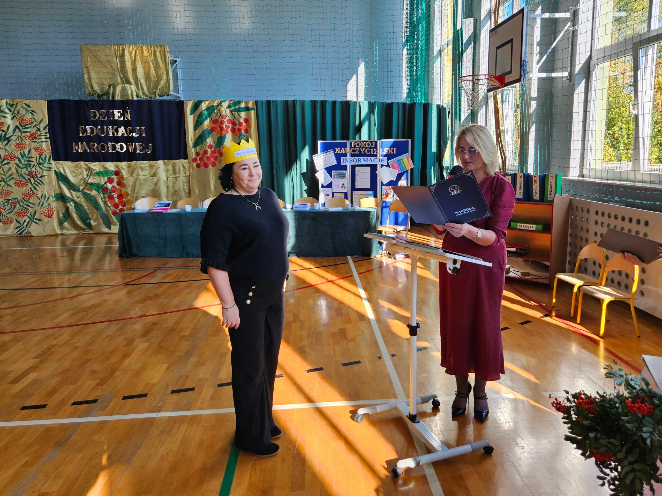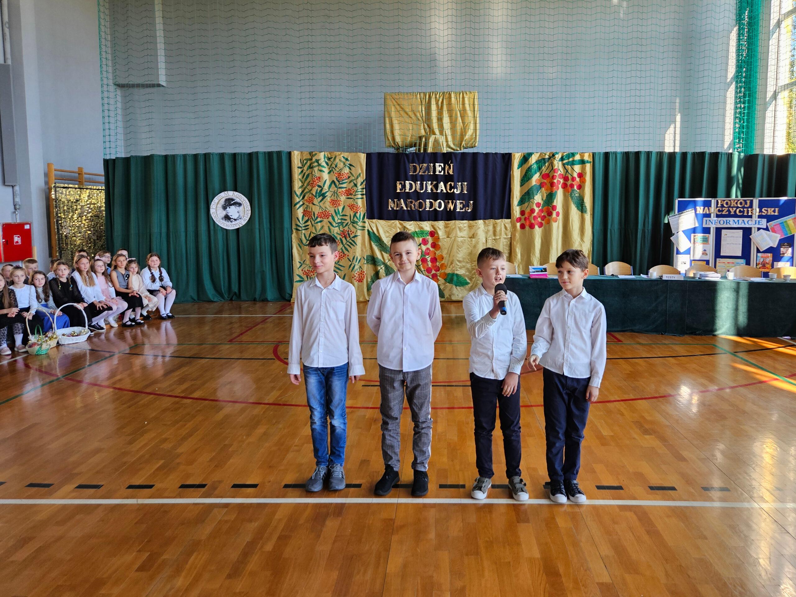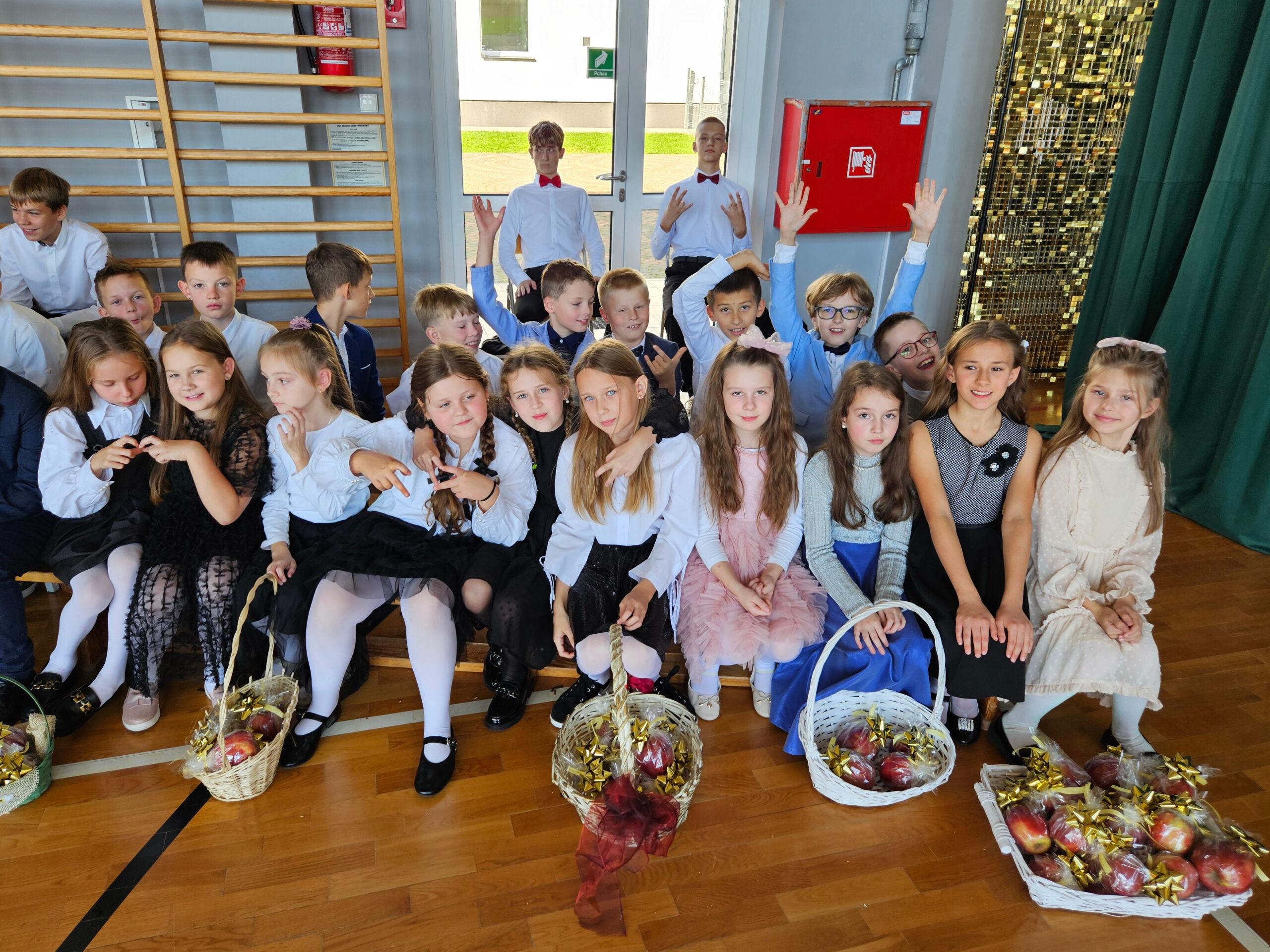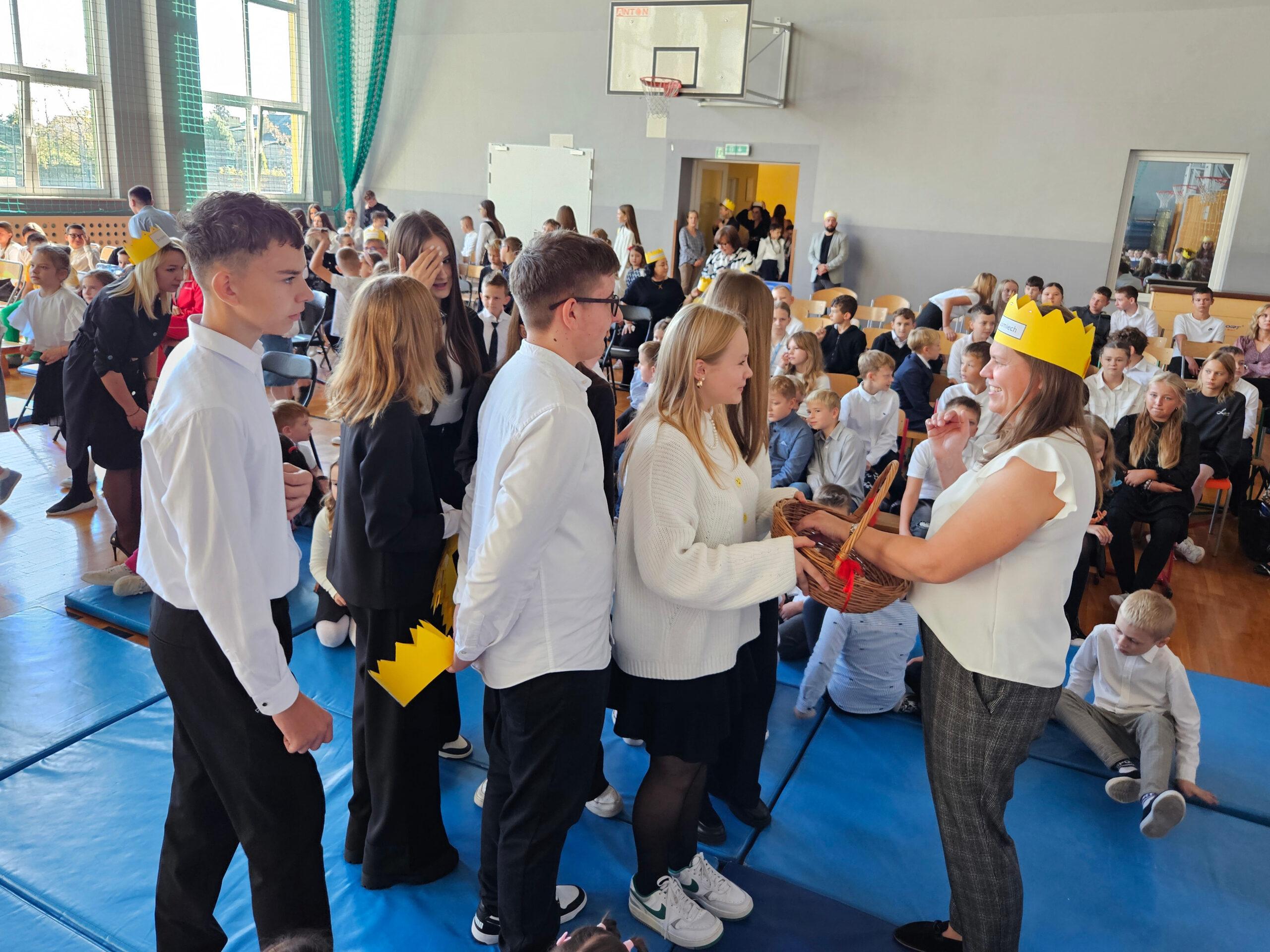 Dzień Edukacji Narodowej jest okazją do wyrażenia wdzięczności za wysiłek włożony w wychowanie i wielkie serce wkładane na rzecz pracy z dziećmi. Właśnie z tej okazji 10 października 2024 r. cała społeczność szkolna spotkała się na uroczystej akademii przygotowanej przez klasy trzecie pod kierunkiem pań: Doroty Kowalczyk, Eweliny Wakuły, Anny Pawlikowskiej, Katarzyny Orłowskiej, Aleksandry Marzec. O oprawę muzyczną zadbała pani Izabela Tracz. Uroczystość rozpoczęła się od przemówienia Pani Dyrektor Małgorzaty Trelki, która przywitała przybyłych gości, wszystkich nauczycieli oraz pracowników szkoły. Podziękowała za zaangażowanie i okazane serce oraz życzyła wielu sił i wytrwałości w wykonywaniu tego wyjątkowego zawodu. W tym dniu wręczone zostały także Nagrody Dyrektora Szkoły nauczycielom, a także pracownikom obsługi i administracji. W dalszej części uroczystości głos zabrali uczniowie. Młodzi artyści w zabawny sposób zaprezentowali obraz współczesnej szkoły i przedstawili postacie nauczycieli. „Gwoździem programu” była Gala Oskarowa, podczas której uczniowie przyznali nauczycielom oraz pracownikom szkoły Oscary. Były fanfary, złota ścianka oraz konferansjerzy. Nie zabrakło także prawdziwych gwiazd, czyli wszystkich pracowników szkoły. Laureaci otrzymali wyróżnienia w różnych kategoriach. To była niezwykle emocjonująca gala, a jej zwieńczeniem był taniec w wykonaniu uczennic z klasy 3a ze szkolnego zespołu „Na skrzydłach tańca”. Miłym akcentem były także życzenia i upominki od Samorządu Uczniowskiego.
