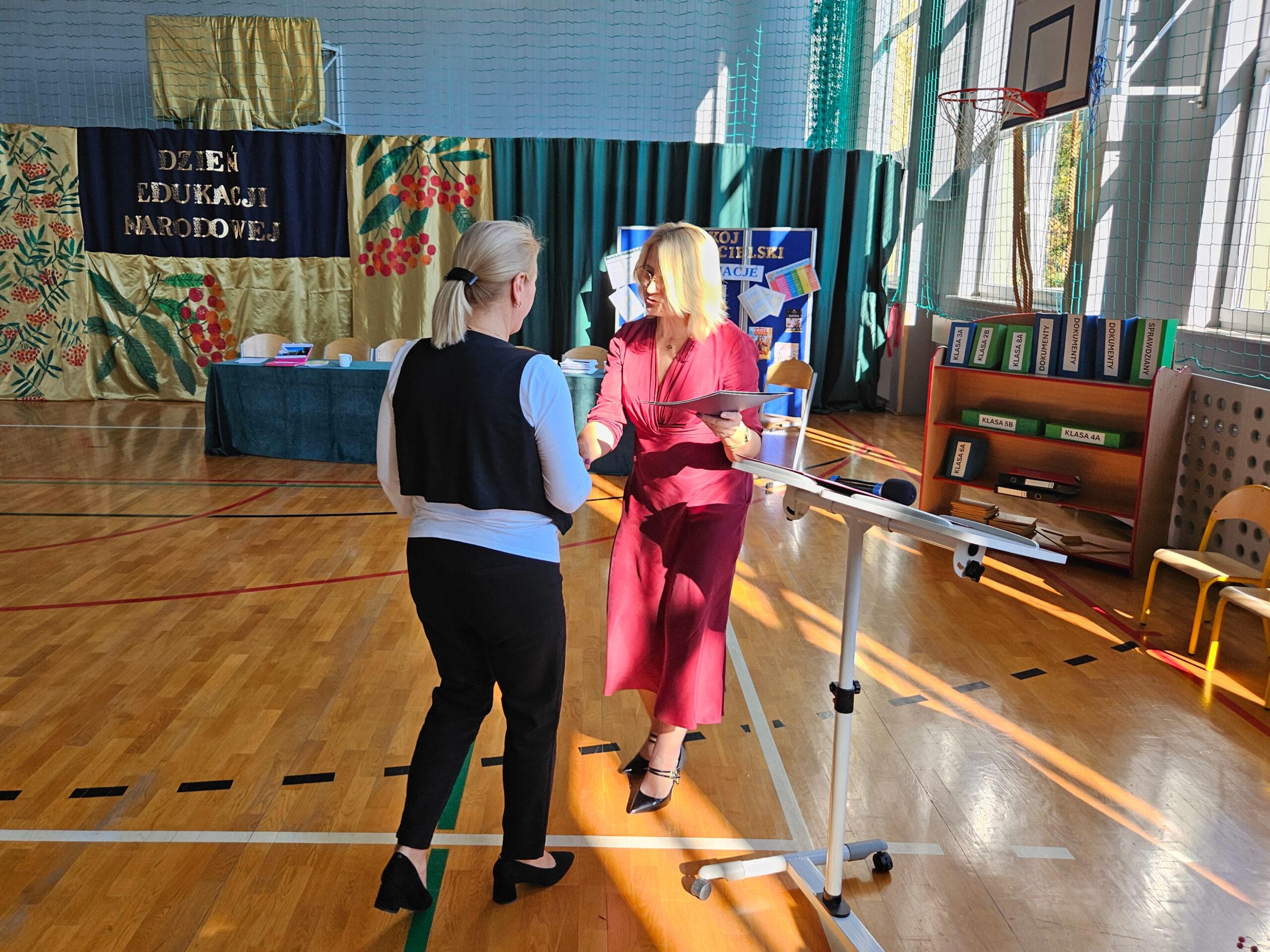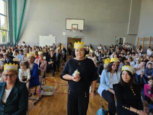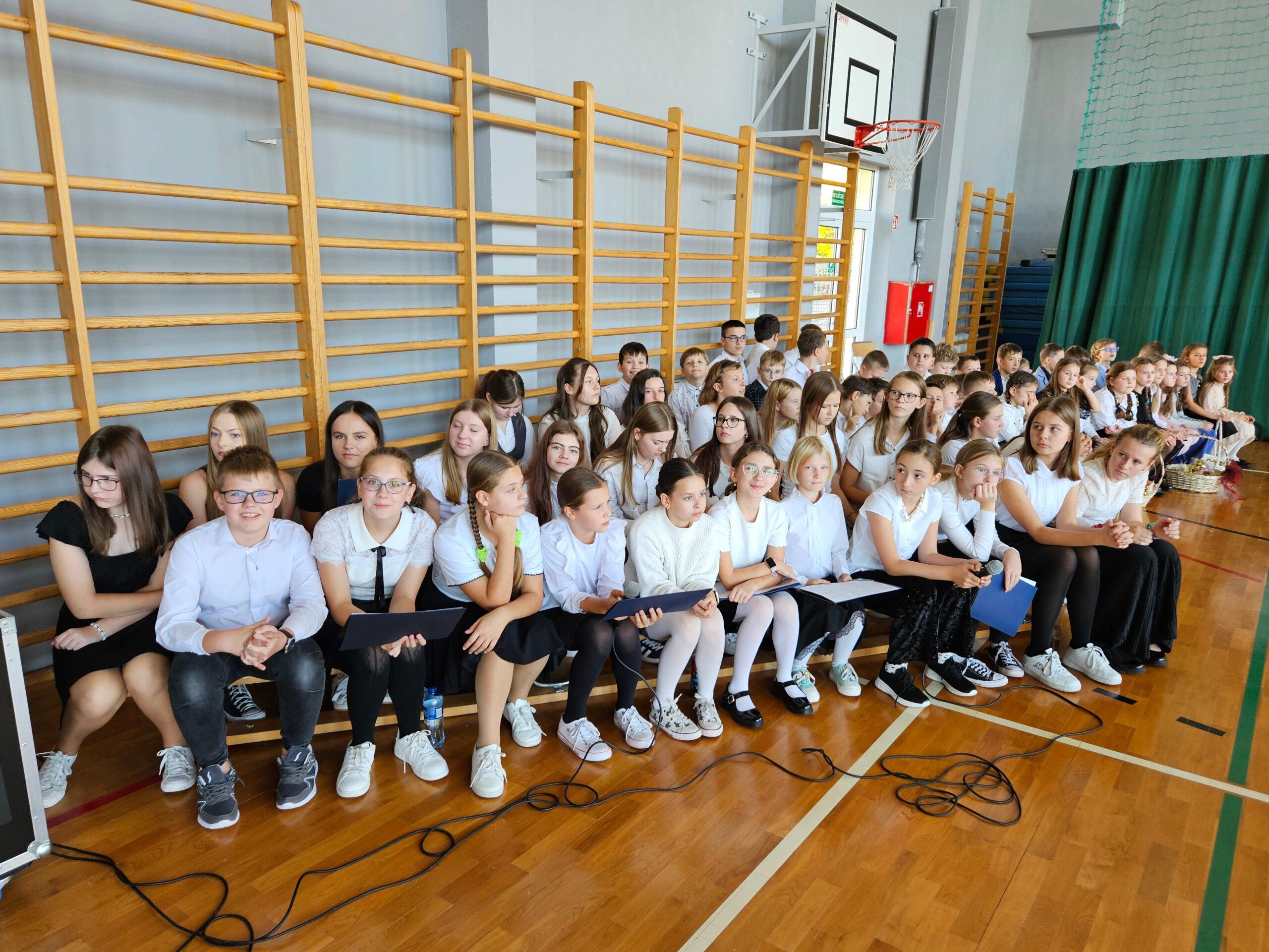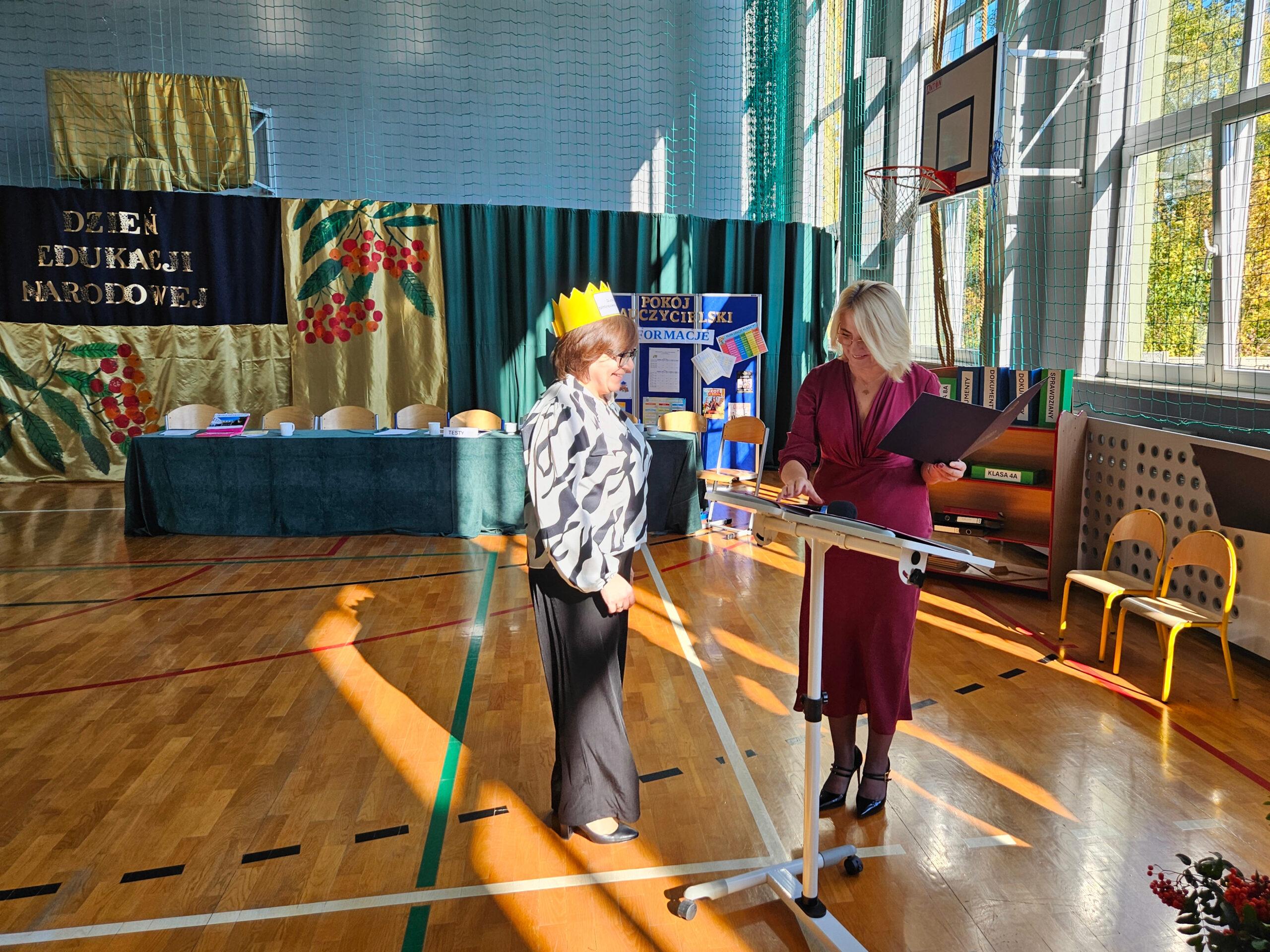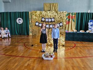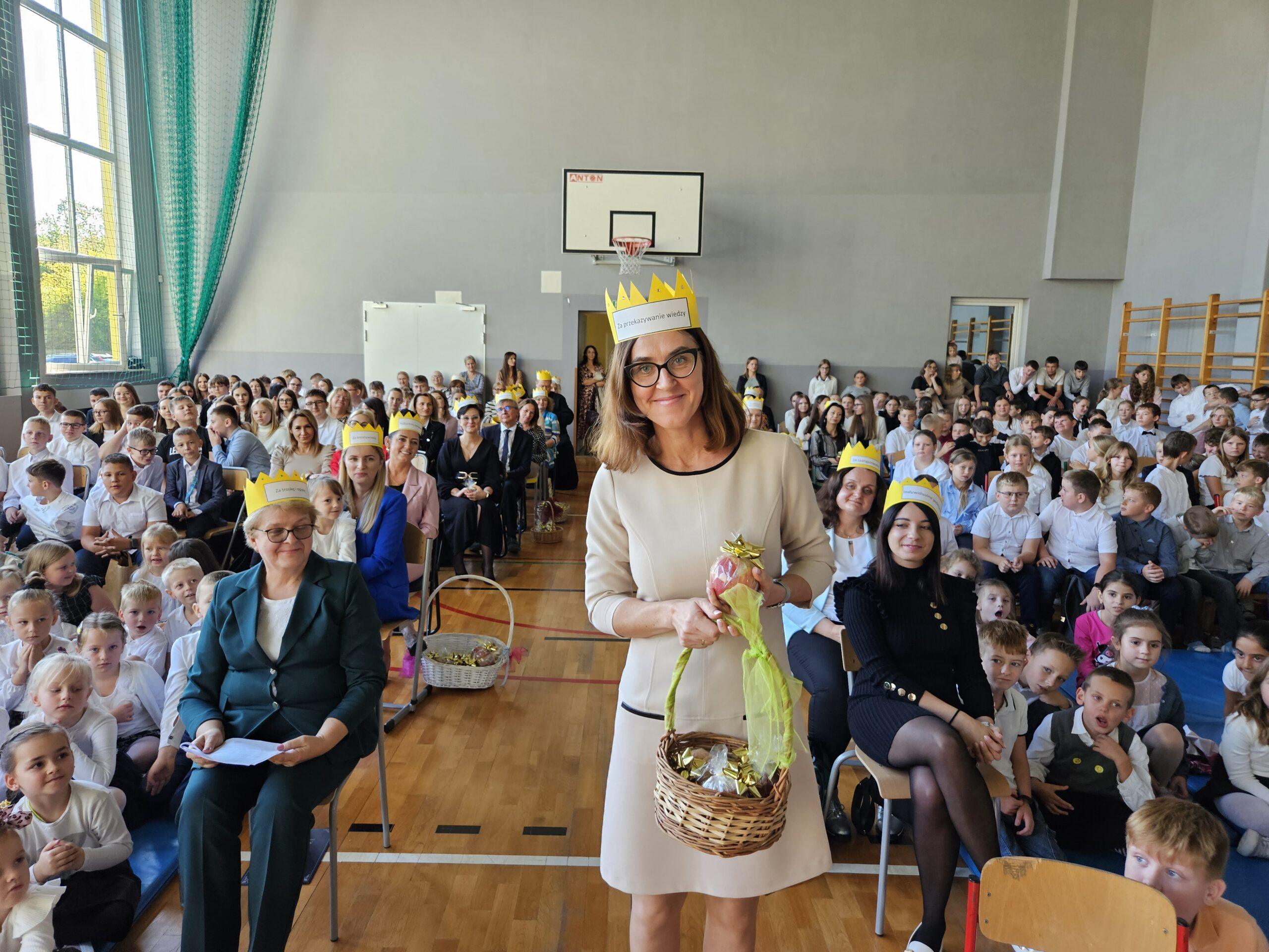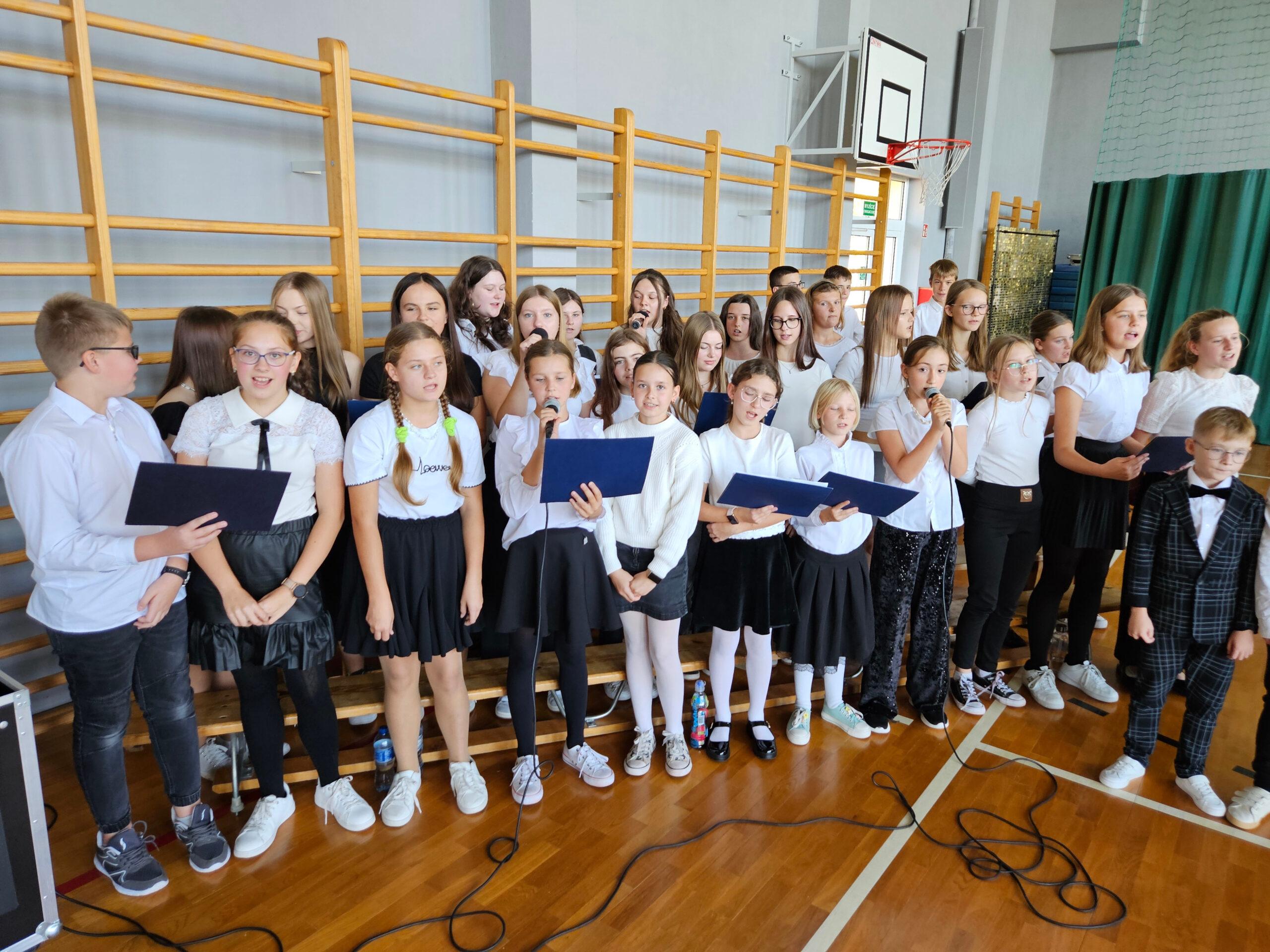 Dzień Edukacji Narodowej jest okazją do wyrażenia wdzięczności za wysiłek włożony w wychowanie i wielkie serce wkładane na rzecz pracy z dziećmi. Właśnie z tej okazji 10 października 2024 r. cała społeczność szkolna spotkała się na uroczystej akademii przygotowanej przez klasy trzecie pod kierunkiem pań: Doroty Kowalczyk, Eweliny Wakuły, Anny Pawlikowskiej, Katarzyny Orłowskiej, Aleksandry Marzec. O oprawę muzyczną zadbała pani Izabela Tracz. Uroczystość rozpoczęła się od przemówienia Pani Dyrektor Małgorzaty Trelki, która przywitała przybyłych gości, wszystkich nauczycieli oraz pracowników szkoły. Podziękowała za zaangażowanie i okazane serce oraz życzyła wielu sił i wytrwałości w wykonywaniu tego wyjątkowego zawodu. W tym dniu wręczone zostały także Nagrody Dyrektora Szkoły nauczycielom, a także pracownikom obsługi i administracji. W dalszej części uroczystości głos zabrali uczniowie. Młodzi artyści w zabawny sposób zaprezentowali obraz współczesnej szkoły i przedstawili postacie nauczycieli. „Gwoździem programu” była Gala Oskarowa, podczas której uczniowie przyznali nauczycielom oraz pracownikom szkoły Oscary. Były fanfary, złota ścianka oraz konferansjerzy. Nie zabrakło także prawdziwych gwiazd, czyli wszystkich pracowników szkoły. Laureaci otrzymali wyróżnienia w różnych kategoriach. To była niezwykle emocjonująca gala, a jej zwieńczeniem był taniec w wykonaniu uczennic z klasy 3a ze szkolnego zespołu „Na skrzydłach tańca”. Miłym akcentem były także życzenia i upominki od Samorządu Uczniowskiego.