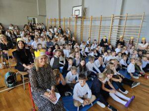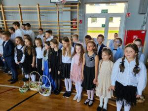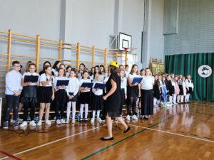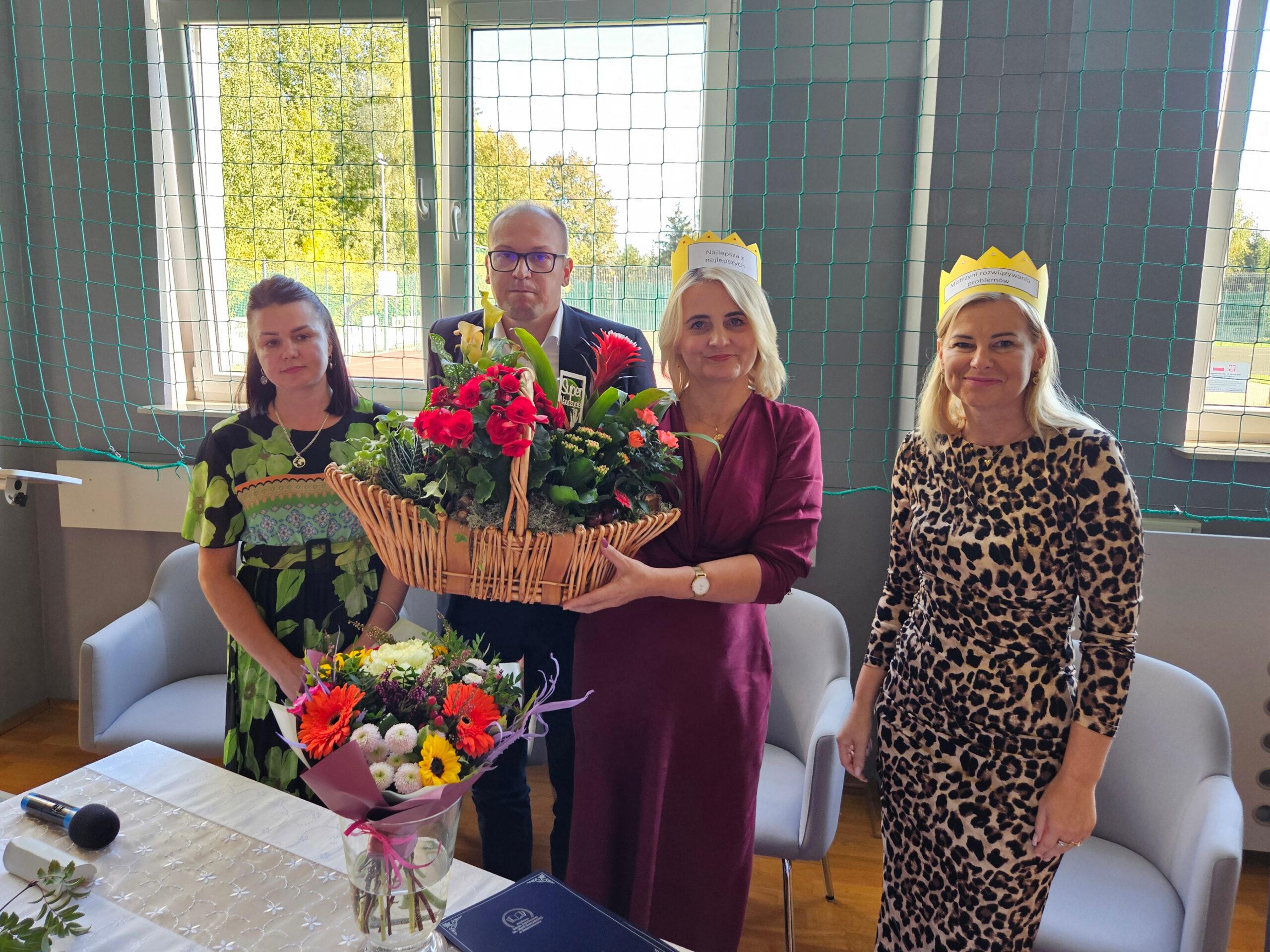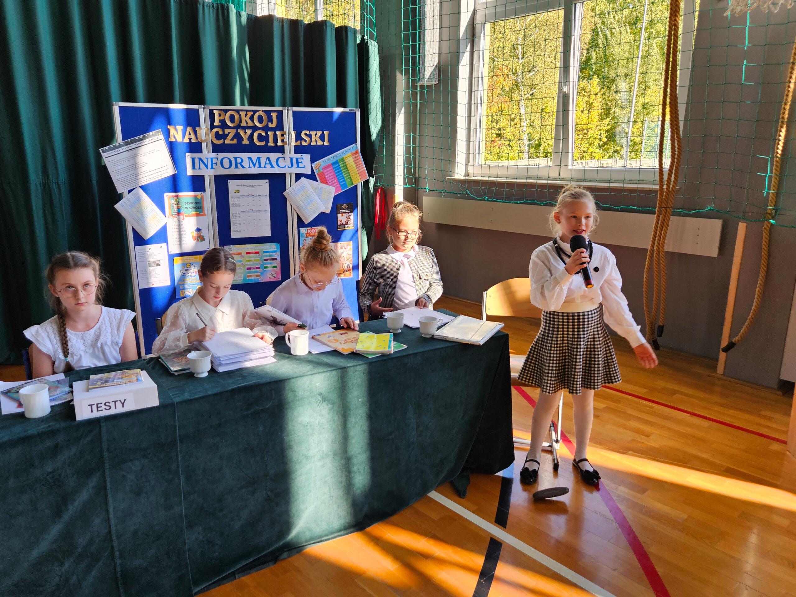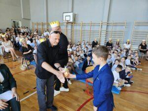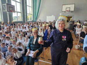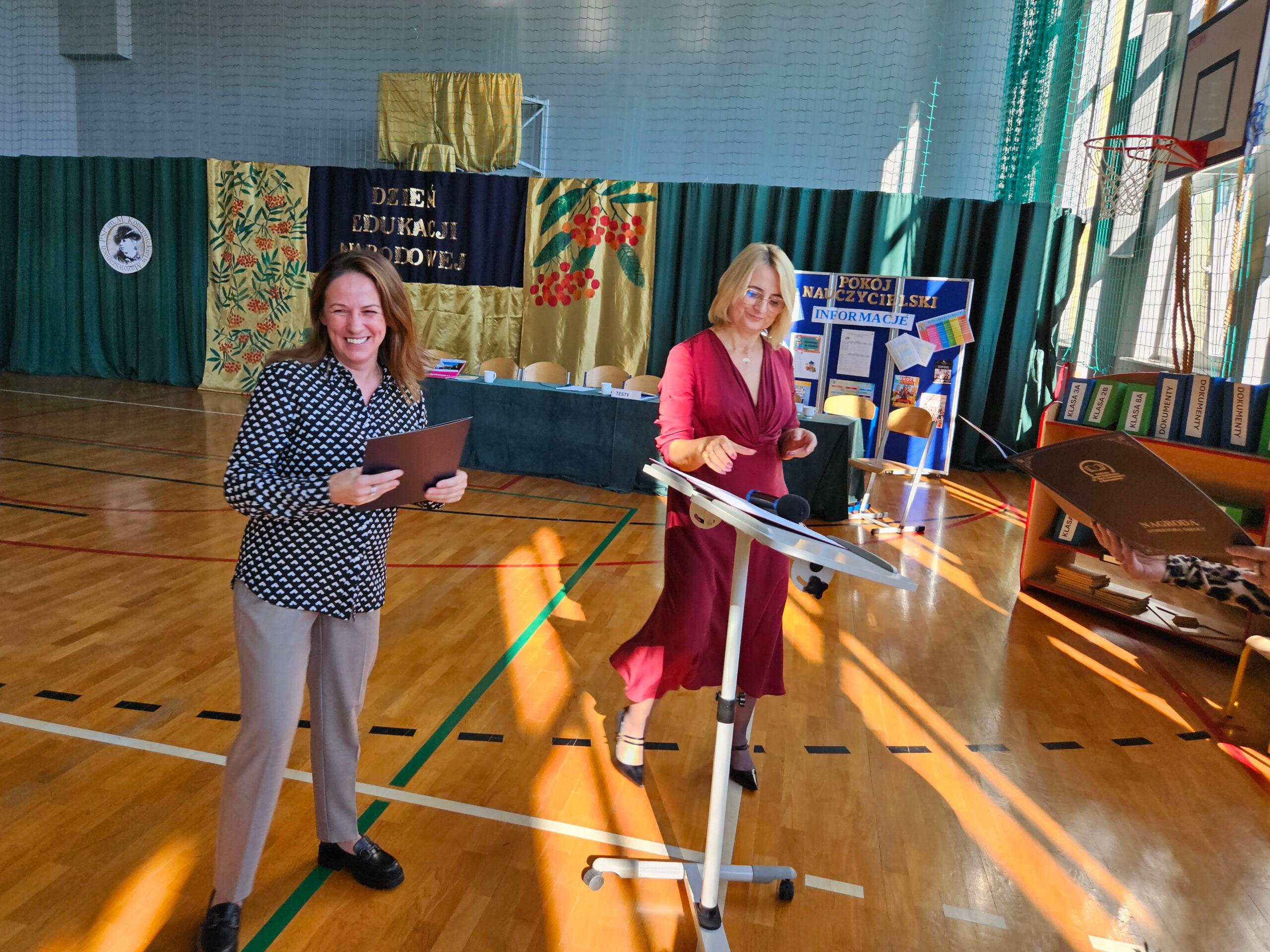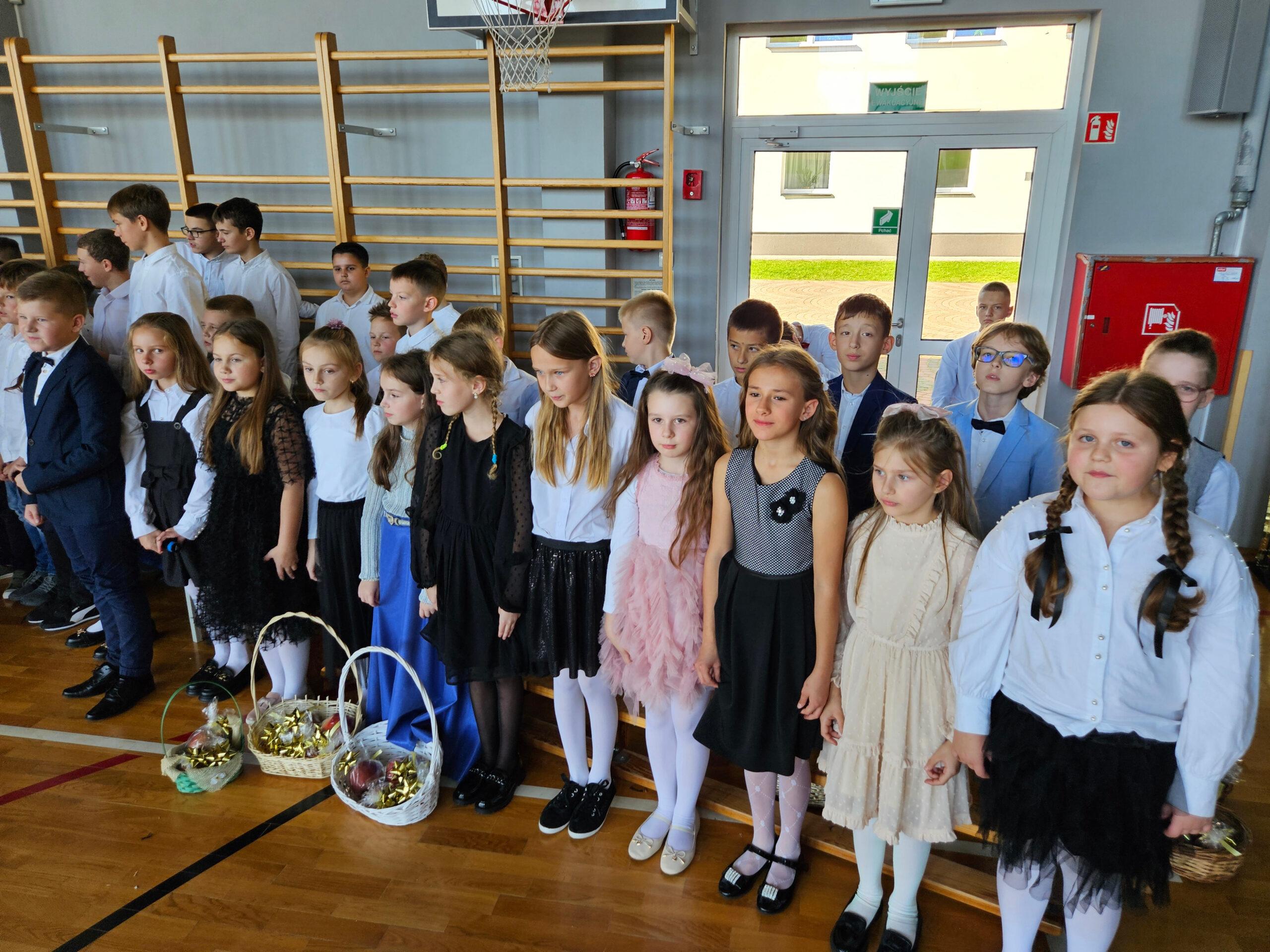 Dzień Edukacji Narodowej jest okazją do wyrażenia wdzięczności za wysiłek włożony w wychowanie i wielkie serce wkładane na rzecz pracy z dziećmi. Właśnie z tej okazji 10 października 2024 r. cała społeczność szkolna spotkała się na uroczystej akademii przygotowanej przez klasy trzecie pod kierunkiem pań: Doroty Kowalczyk, Eweliny Wakuły, Anny Pawlikowskiej, Katarzyny Orłowskiej, Aleksandry Marzec. O oprawę muzyczną zadbała pani Izabela Tracz. Uroczystość rozpoczęła się od przemówienia Pani Dyrektor Małgorzaty Trelki, która przywitała przybyłych gości, wszystkich nauczycieli oraz pracowników szkoły. Podziękowała za zaangażowanie i okazane serce oraz życzyła wielu sił i wytrwałości w wykonywaniu tego wyjątkowego zawodu. W tym dniu wręczone zostały także Nagrody Dyrektora Szkoły nauczycielom, a także pracownikom obsługi i administracji. W dalszej części uroczystości głos zabrali uczniowie. Młodzi artyści w zabawny sposób zaprezentowali obraz współczesnej szkoły i przedstawili postacie nauczycieli. „Gwoździem programu” była Gala Oskarowa, podczas której uczniowie przyznali nauczycielom oraz pracownikom szkoły Oscary. Były fanfary, złota ścianka oraz konferansjerzy. Nie zabrakło także prawdziwych gwiazd, czyli wszystkich pracowników szkoły. Laureaci otrzymali wyróżnienia w różnych kategoriach. To była niezwykle emocjonująca gala, a jej zwieńczeniem był taniec w wykonaniu uczennic z klasy 3a ze szkolnego zespołu „Na skrzydłach tańca”. Miłym akcentem były także życzenia i upominki od Samorządu Uczniowskiego.