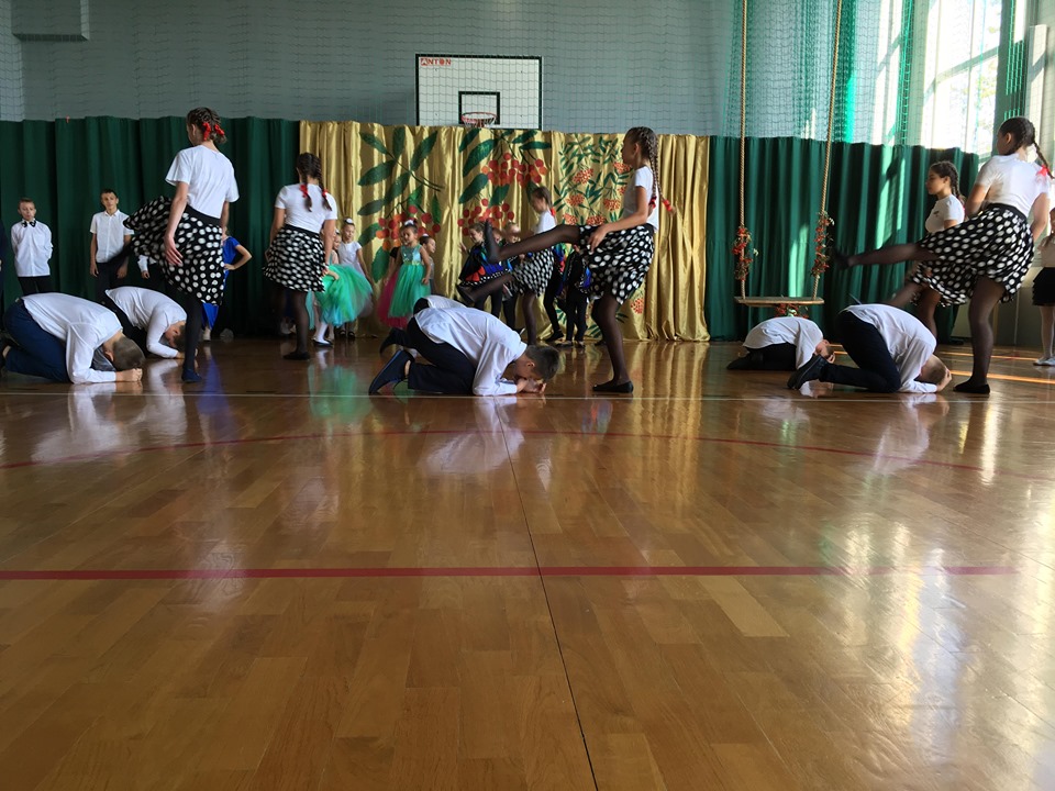 Po części oficjalnej odbył się występ artystyczny uczniów klas: 2b, 3a, 3c, 7b, 7a i 8a. Uczniowie zaprosili całą społeczność szkolną, byłych i obecnych pracowników naszej szkoły na wyjątkowy koncert życzeń. Wyjątkowy z dwóch powodów: po pierwsze stanowił on formę podziękowania za trud, serce, nauczanie i wychowanie, a po drugie pozwolił zgromadzonym na sali gimnastycznej podziwiać talenty wokalne, taneczne i muzyczne występujących dzieci i młodzieży. Było nastrojowo i przebojowo, a to za sprawą pięknej muzyki i układów tanecznych w wykonaniu szkolnego zespołu tanecznego „Gracja”, który prowadzi pani Paulina Jastrzębska. Całość przedsięwzięcia odbyła się w przepięknej, jesiennej scenerii przygotowanej przez panią Ewę Banaszczyk. Miłym akcentem były także życzenia i upominki od Samorządu Uczniowskiego i Przewodniczącej Rady Rodziców- Pani Wioletty Haręzy.