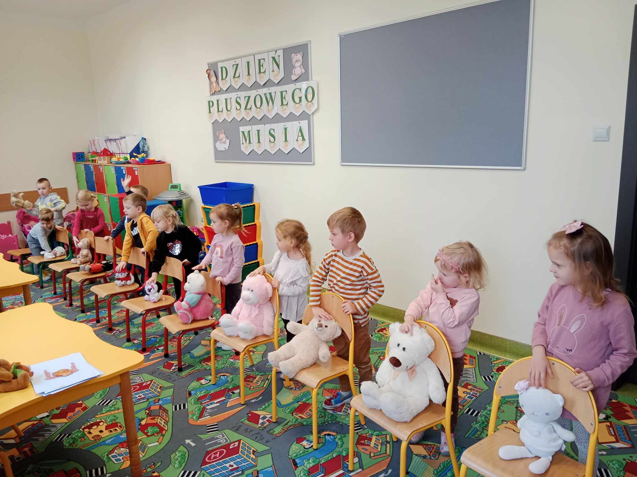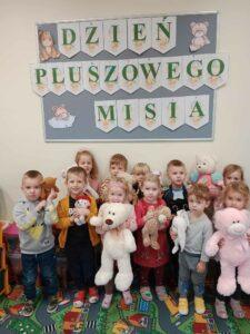 24 listopada w grupie Krasnoludki i oddziałach 0A i 0B uroczyście obchodzono Dzień Pluszowego Misia podczas, którego każde z dzieci przyszło do przedszkola ze swoim ulubionym pluszakiem. Można było zobaczyć misie małe, średnie, duże, brązowe, różowe, białe itp. Wszystkie były śliczne i wyjątkowe. Podczas Dnia Pluszowego Misia dzieci brały udział w zajęciach związanych z pluszowymi misiami, m.in.: taniec z misiem, zabawy ruchowe z misiem, dzieci wykonywały różne prace plastyczne oraz miały okazję skosztować słodkości w kształcie misia. W tym wesołym dniu czekało na nie wiele atrakcji.
