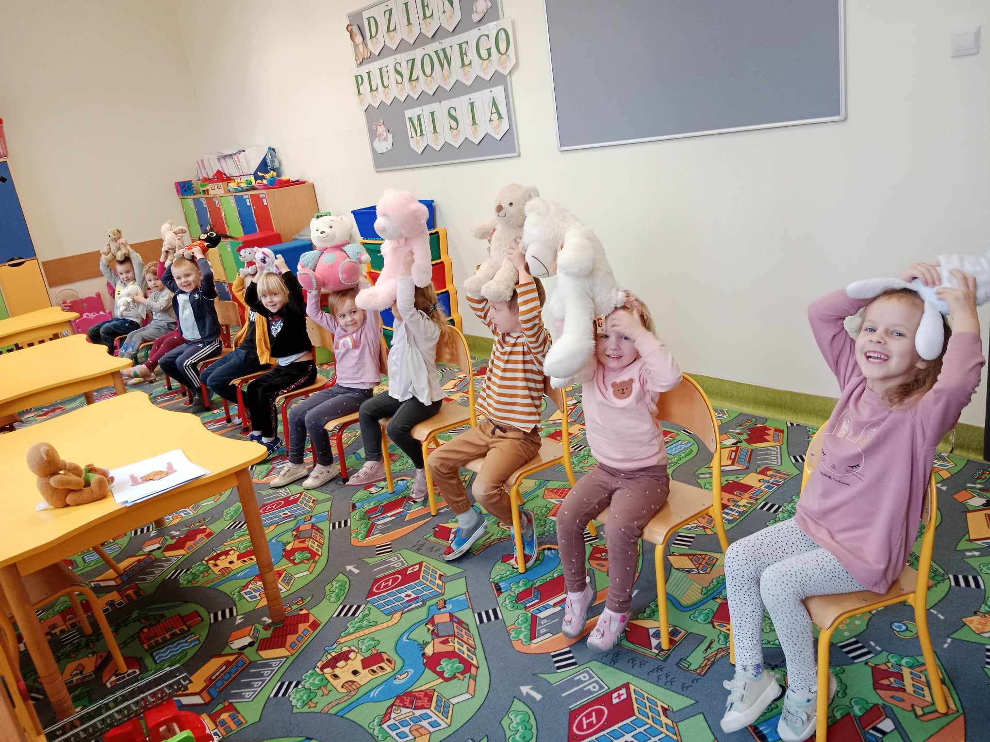 Przedszkolaki poznały również różne bajki o misiach, a także historię powstania maskotki. Dzieci chętnie uczestniczyły we wszystkich zajęciach i z wielką radością opowiadały o swoich ukochanych przytulankach. Dzień Pluszowego Misia dostarczył przedszkolakom wiele uśmiechu oraz radości. Dzieci były szczęśliwie, bo mogły spędzić tyle czasu ze swoimi pluszowymi ulubieńcami i dowiedzieć się wielu ciekawych informacji.