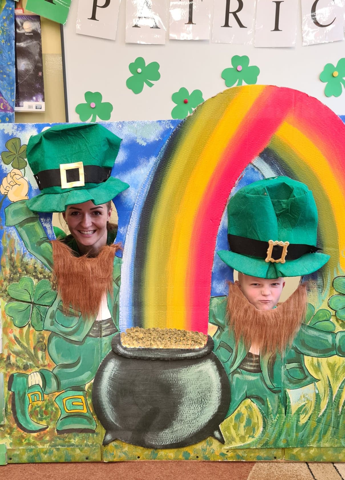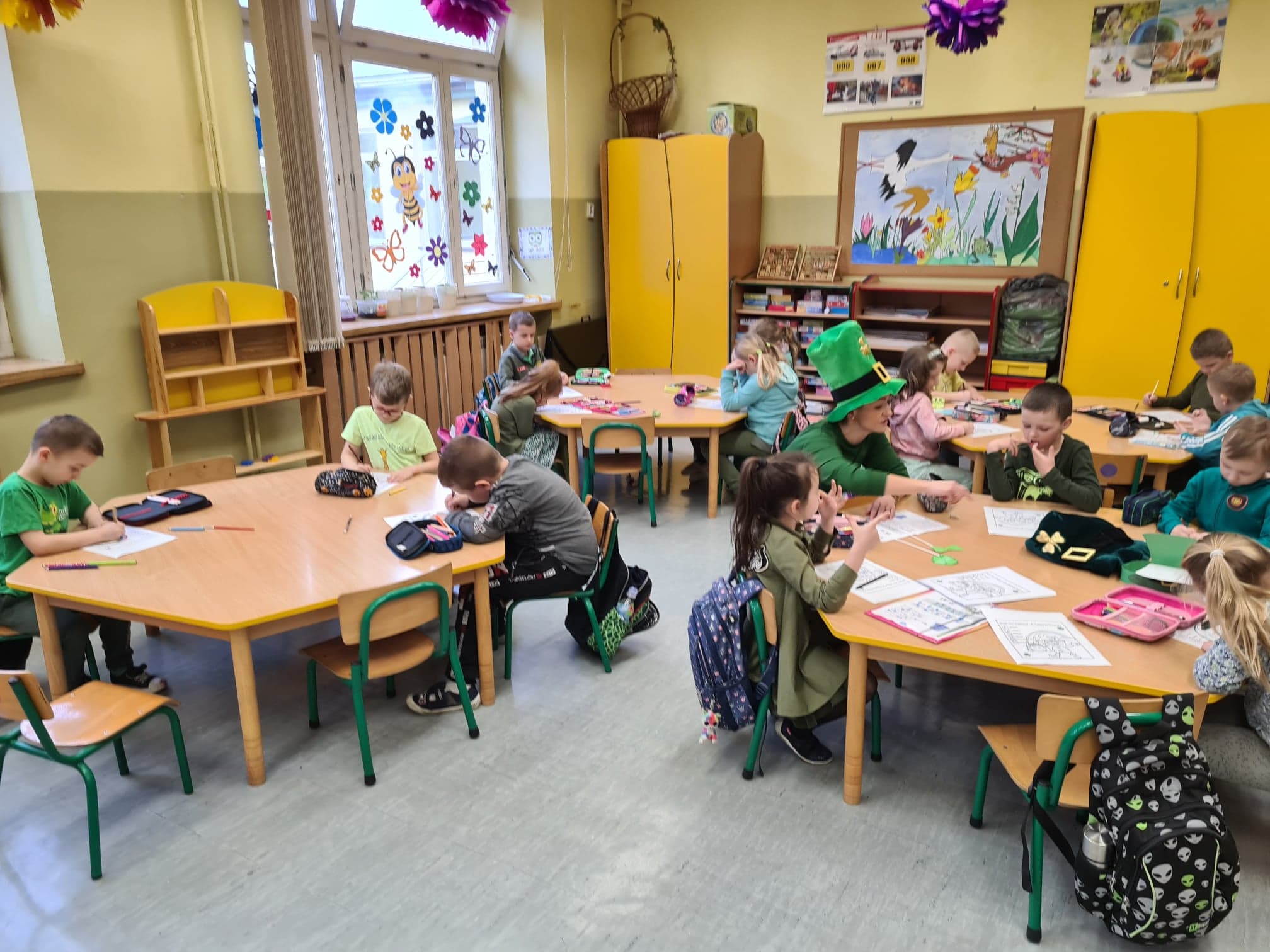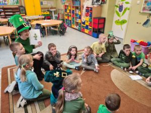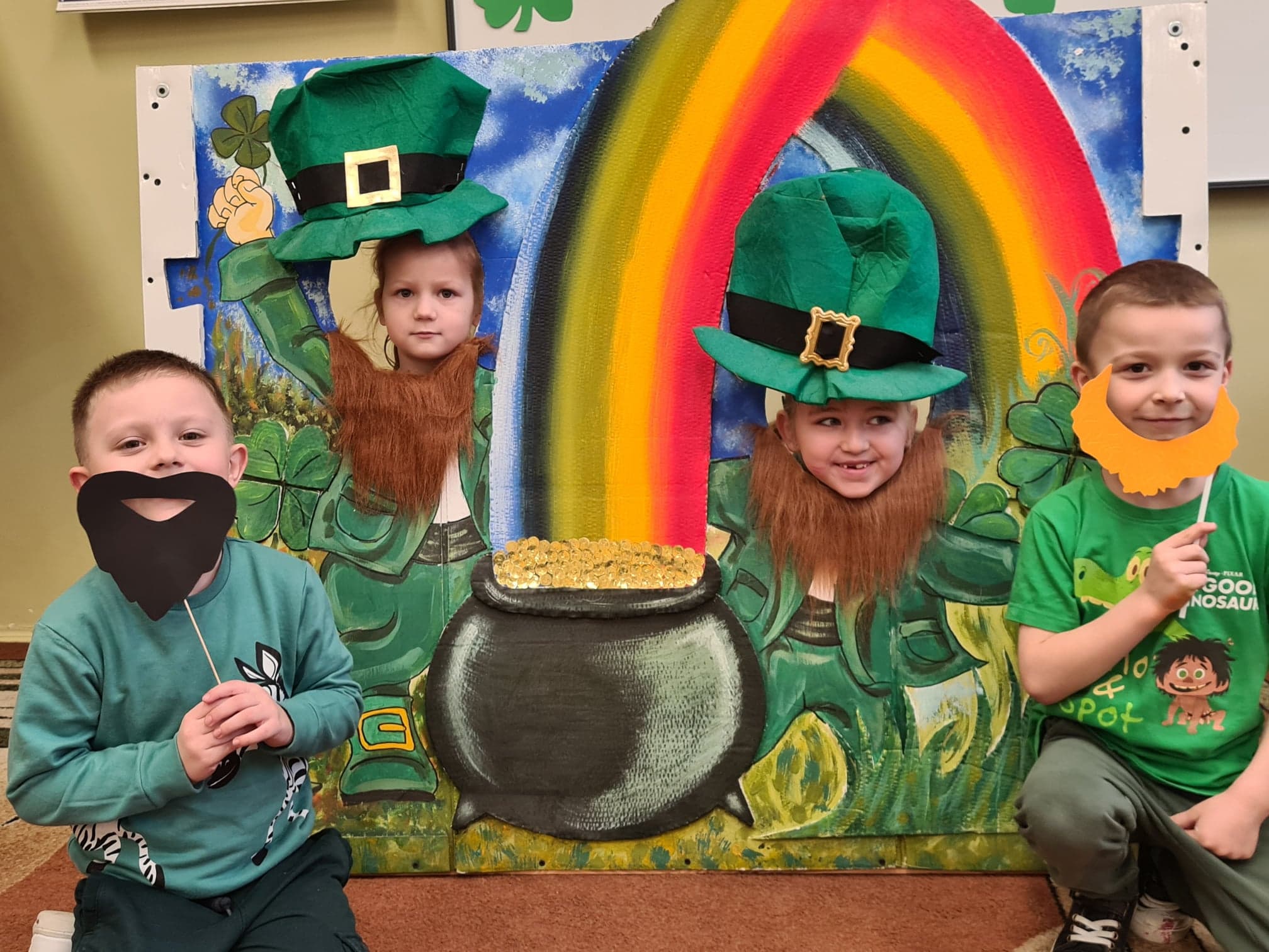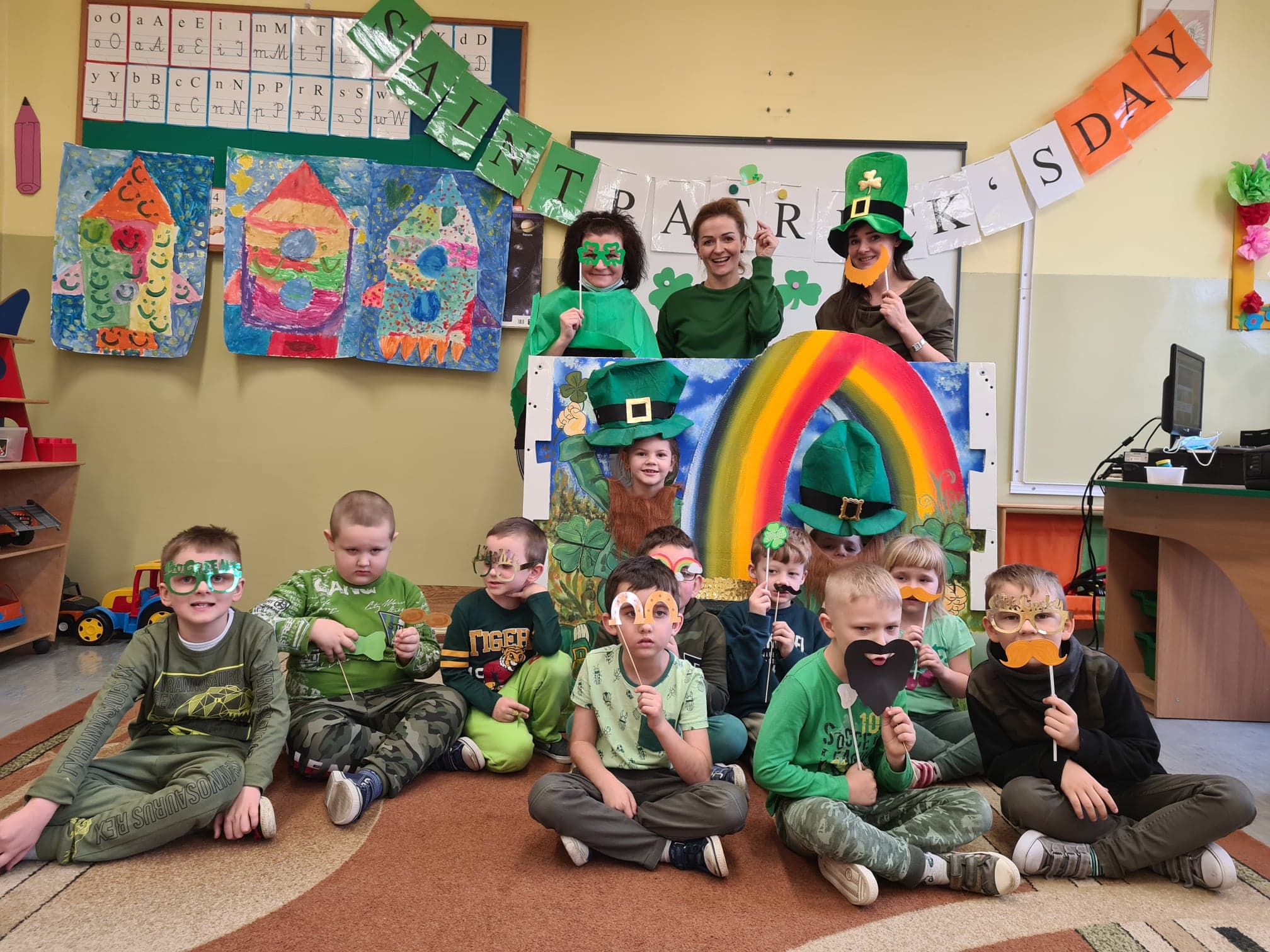 Dzień św. Patryka to jedno z najweselszych świąt obchodzone dziś na całym świecie. Pomimo pandemii nie odpuściliśmy i w tym roku również dołączyliśmy do „zielonego świętowania.” Dla uczniów naszej szkoły jest to nie tylko dobra zabawa ale przede wszystkim doskonała okazja do zaznajomienia się z elementami kultury anglosaskiej. Solidaryzując się z mieszkańcami szmaragdowej wyspy założyliśmy w tym dniu zielone stroje oraz kapelusze Leprechauna, przyozdobiliśmy sale trójlistnymi koniczynami. W trakcie lekcji j. angielskiego dzieci tańczyły taniec Leprechauna, pozowały do zdjęć w foto budce, poznały historię św. Patryka i złośliwego skrzata, obejrzały filmik w j. angielskim poświęcony Irlandii. Najodważniejsi zdecydowali się wziąć udział w tanecznym wyzwaniu i zatańczyć Irish Jig zaś dziewczynki z koła wokalnego, pod opieką p. Tracz, przygotowały piosenkę Lepreachauna w wersji wokalnej i instrumentalnej. Dziękujemy wszystkim za zaangażowanie.
