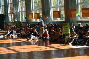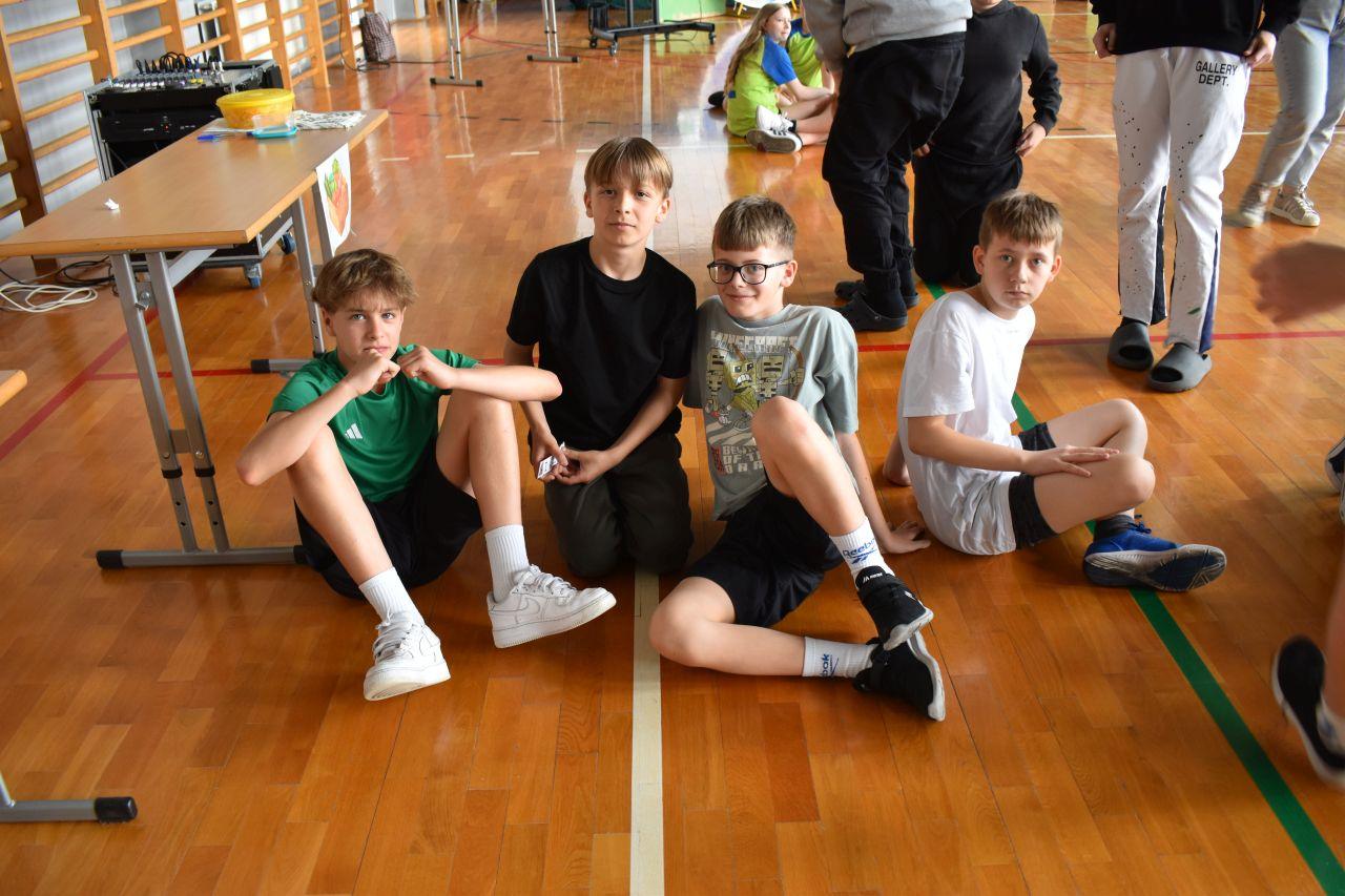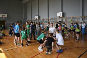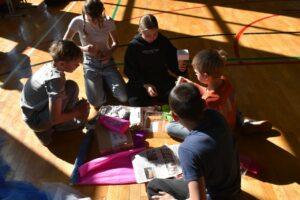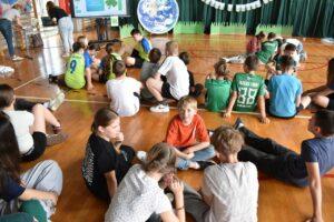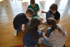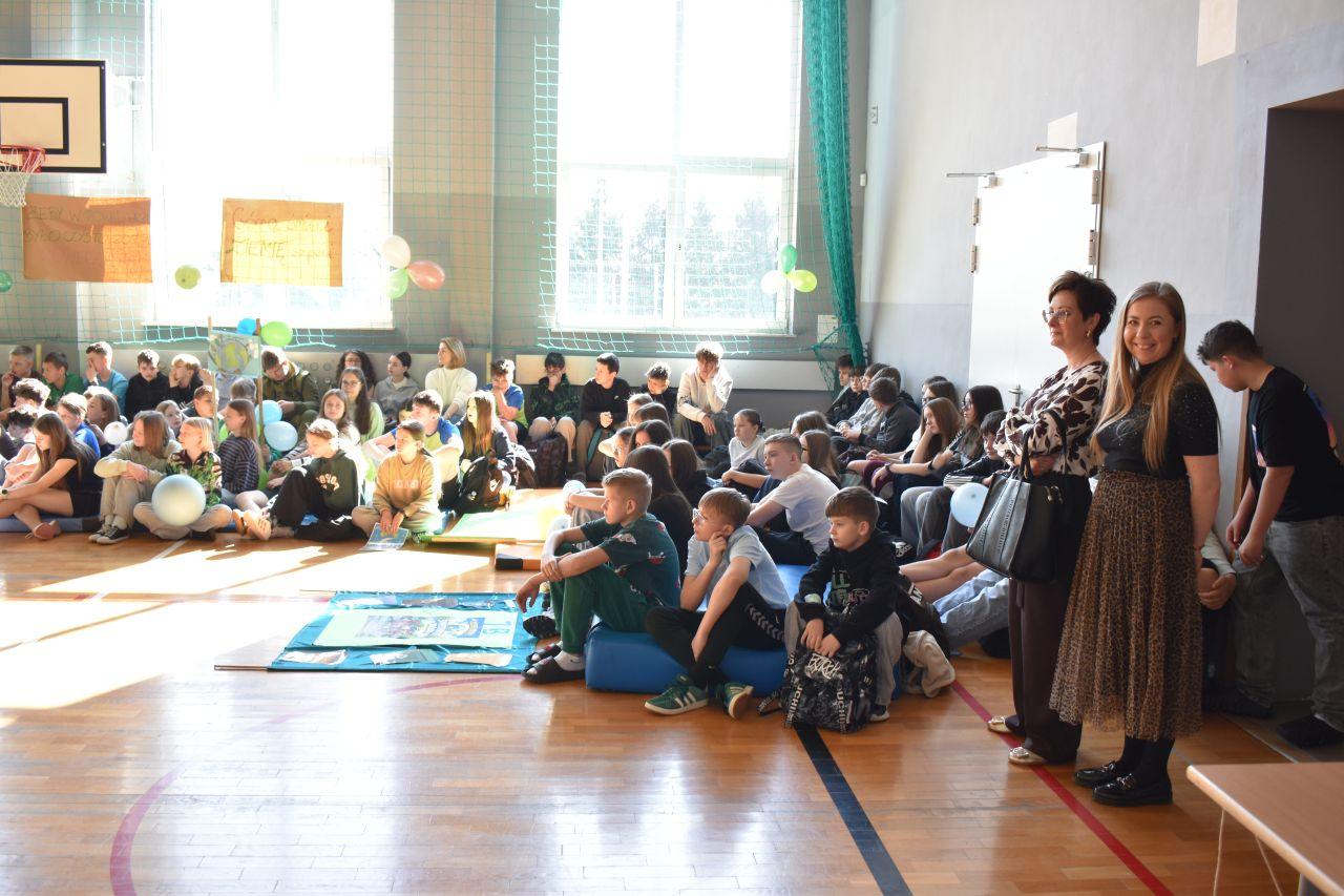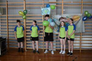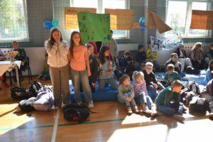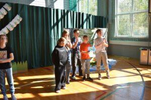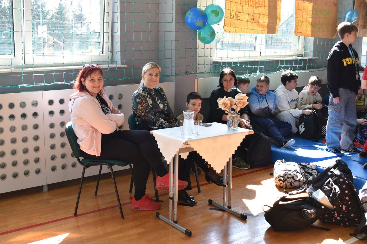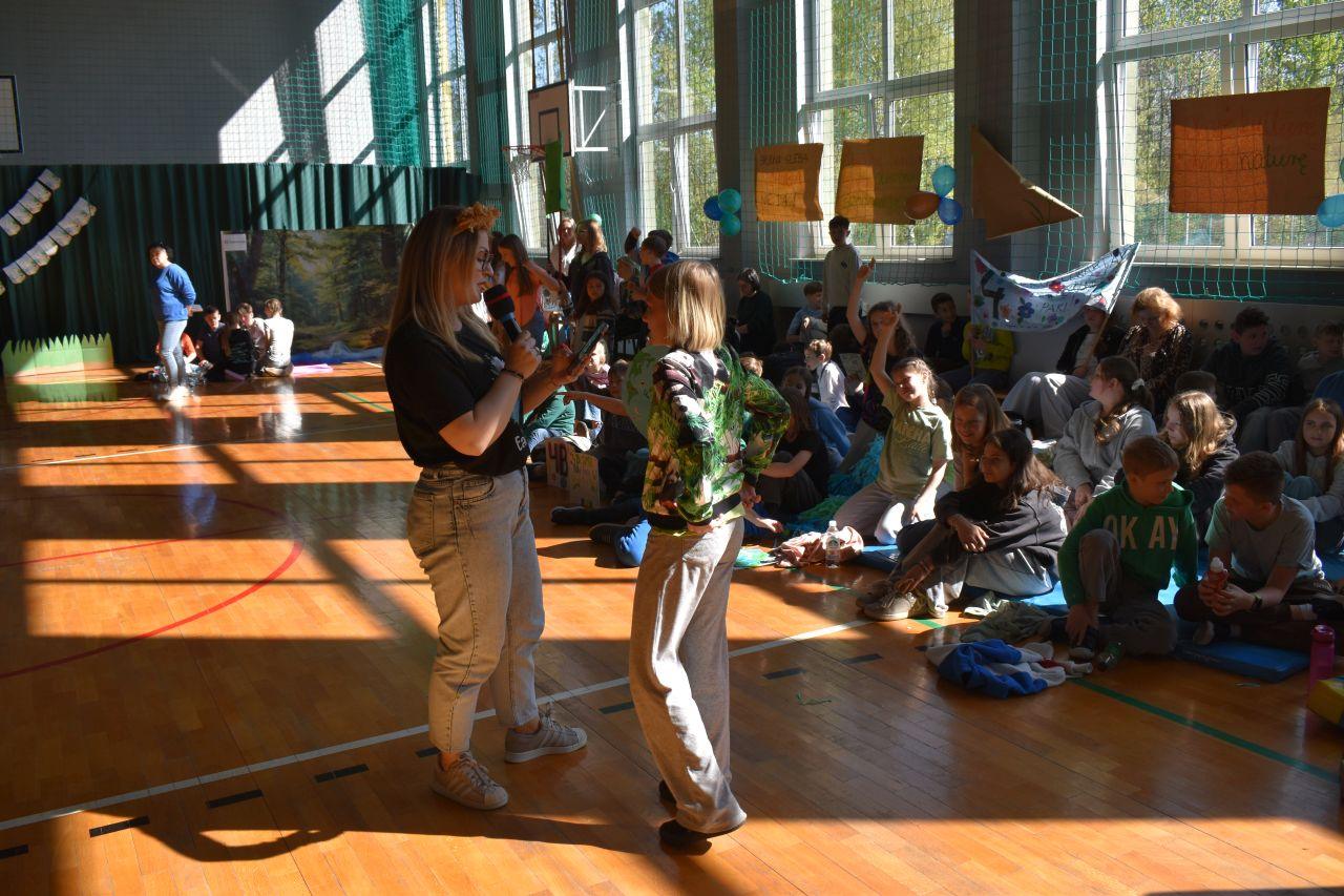 W czasie, gdy w sali gimnastycznej starsi uczniowie zmagali się z ekologicznymi konkurencjami, na górnym korytarzu klasy 1-3 miały okazję odwiedzić eko-stoiska, przygotowane specjalnie dla nich. Młodsi uczniowie także potwierdzili, że dbanie o planetę nie jest im obce. Doskonale radzili sobie z zadaniami, które ochoczo prezentowali im wolontariusze.