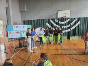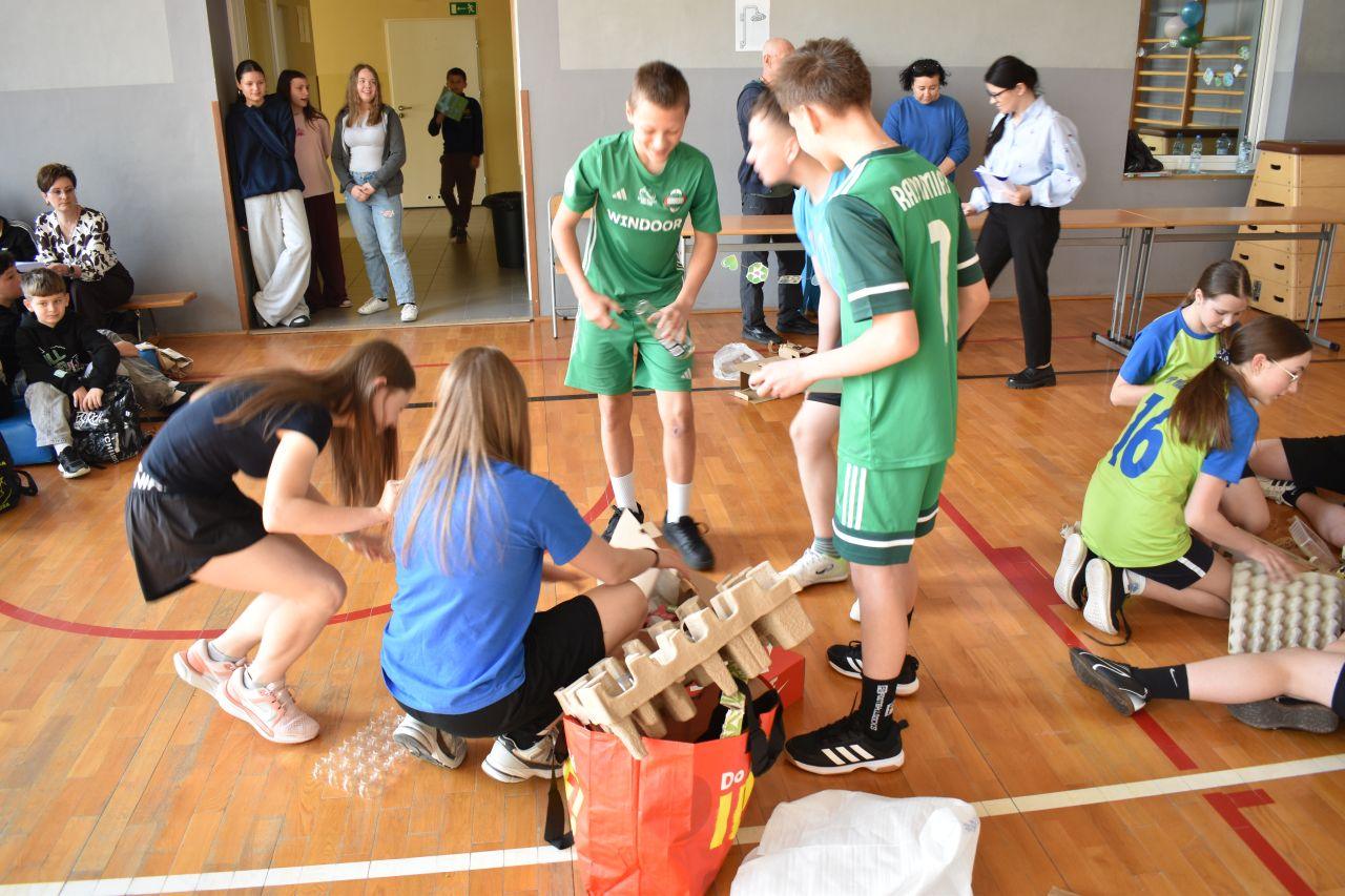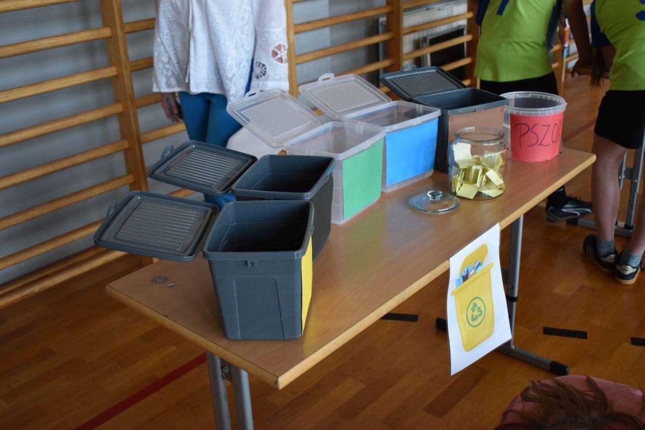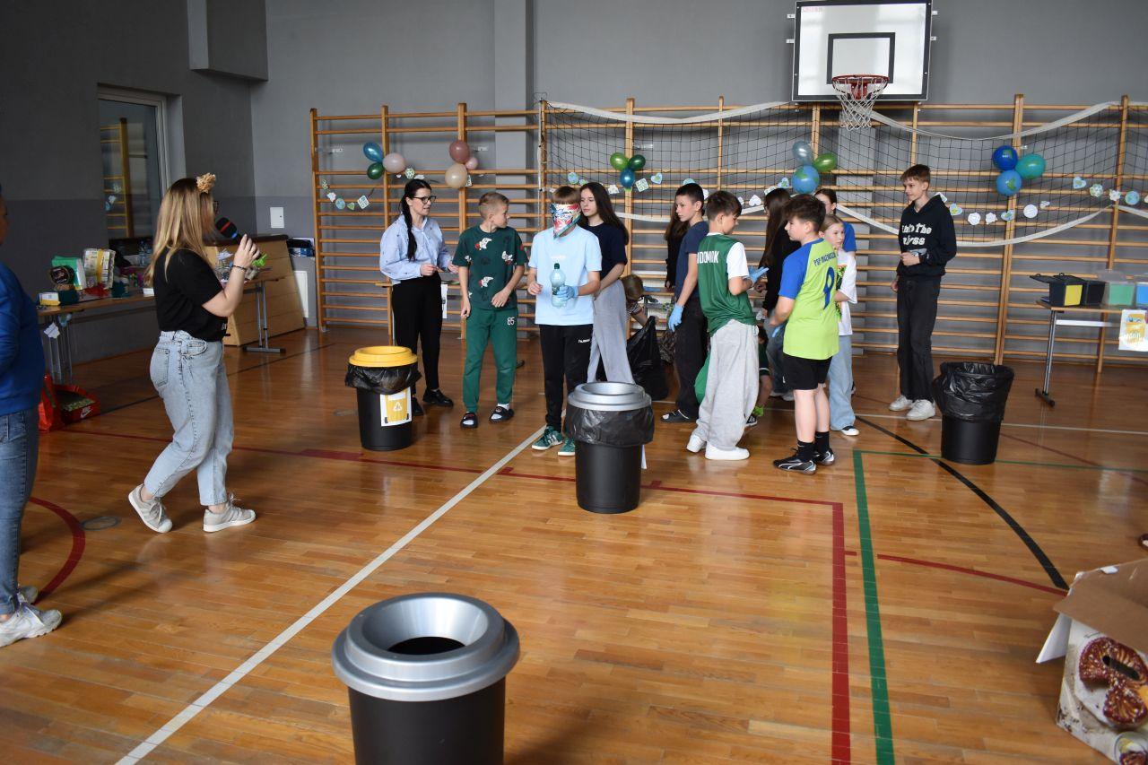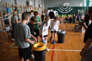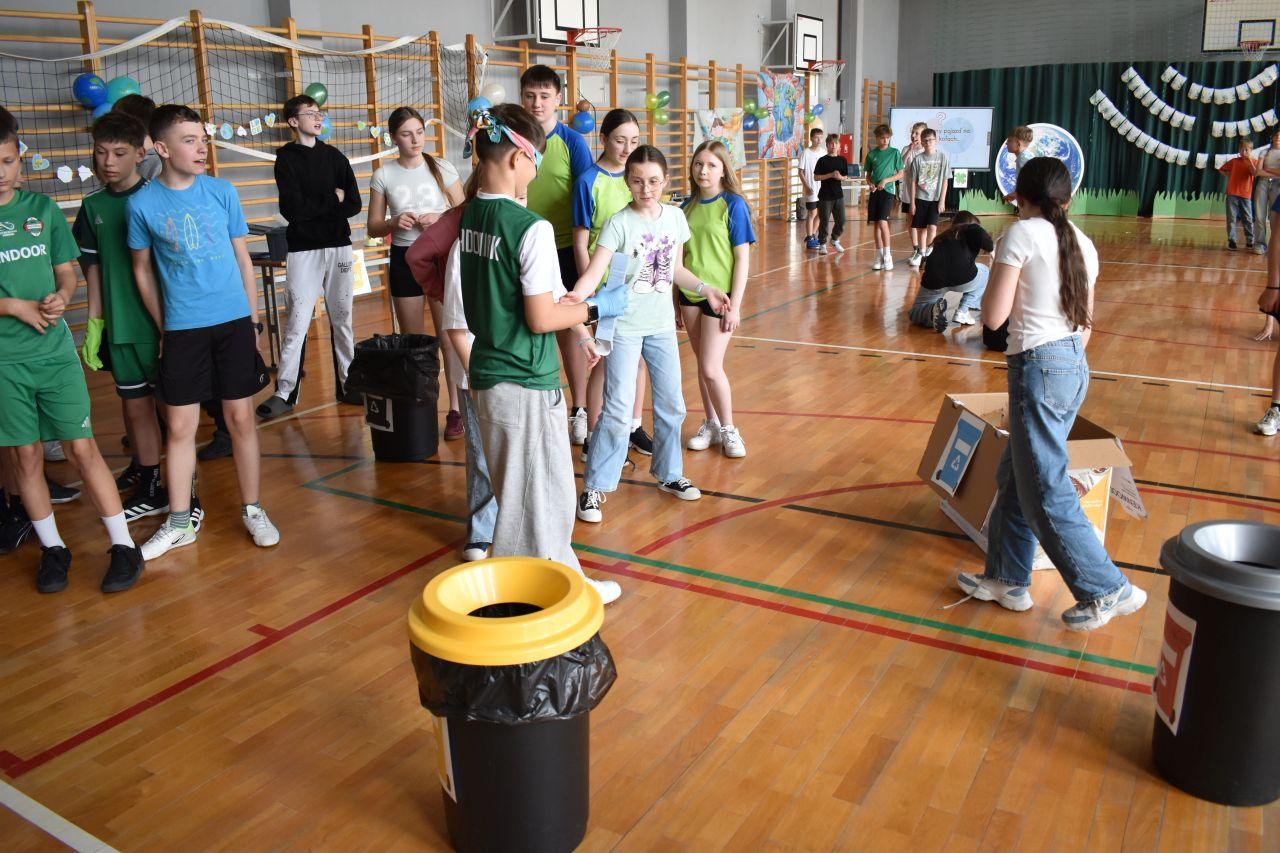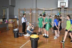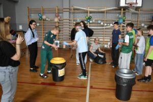Segregacją odpadów – zadaniem było bezbłędne przypisanie odpadów do odpowiednich kolorów pojemników, łowienie odpadów wędką z rzeki i wrzucenie do odpowiedniego kosza, a także „segregacja na ślepo”, w której uczniowie z zasłoniętymi oczami musieli trafić do odpowiedniego pojemnika.