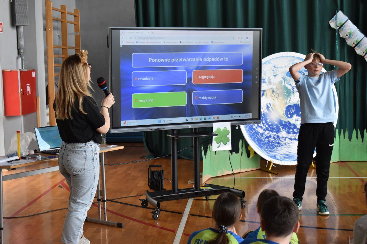 Quizem wiedzy „Eko-milionerzy” – pytania dotyczyły np. czasu rozkładu odpadów, odnawialnych źródeł energii oraz dat związanych z obchodami Dnia Ziemi na świecie.