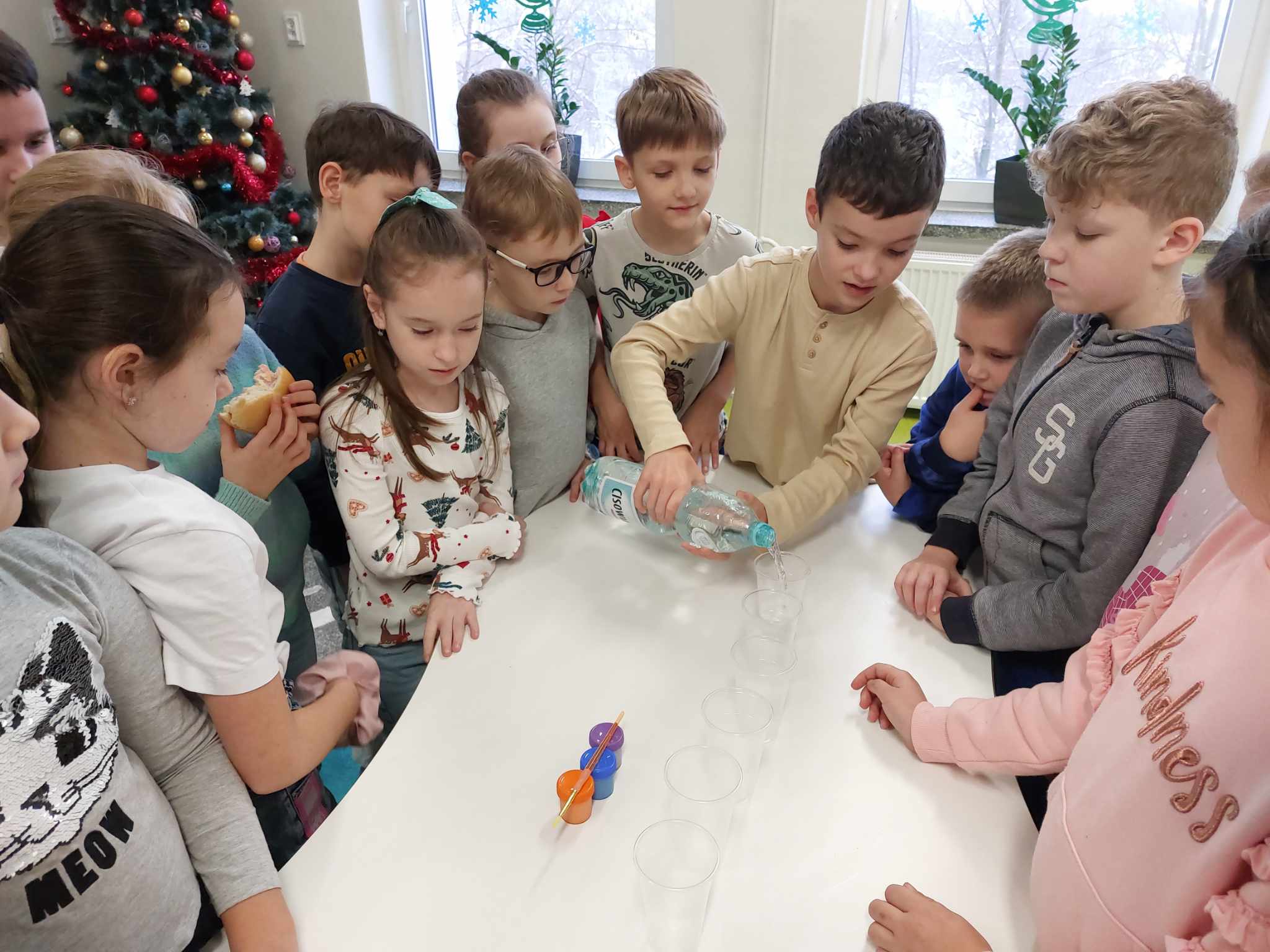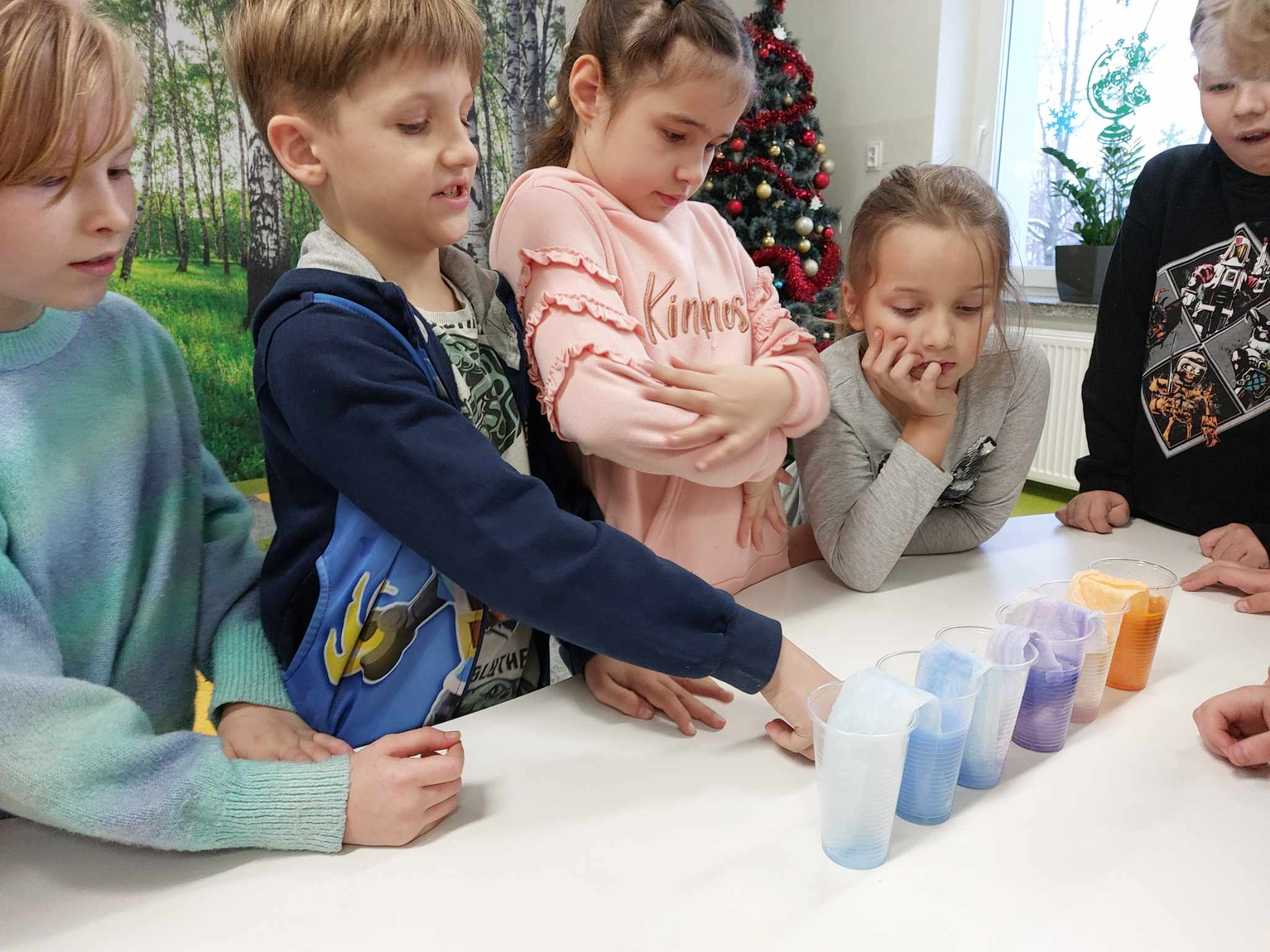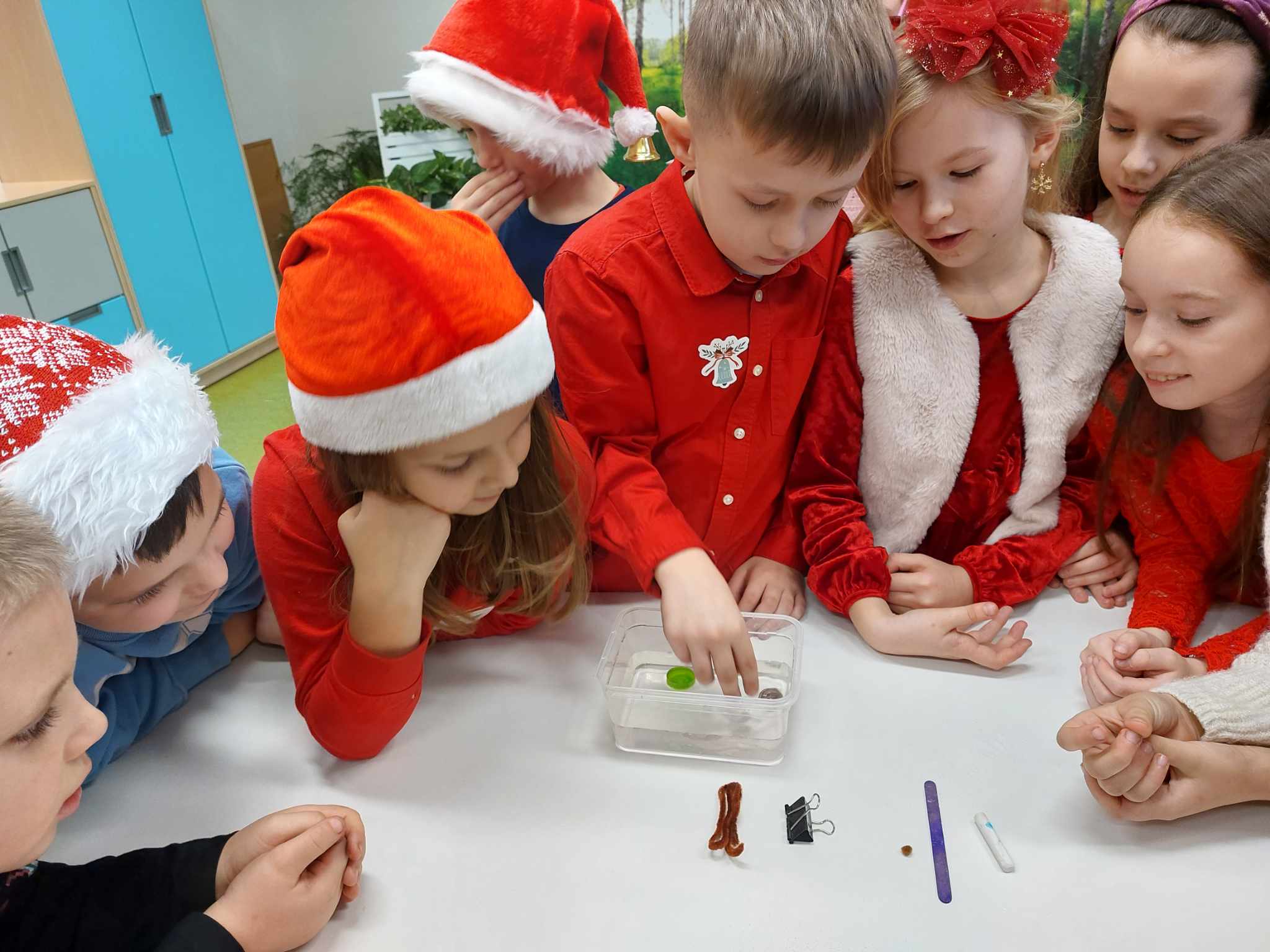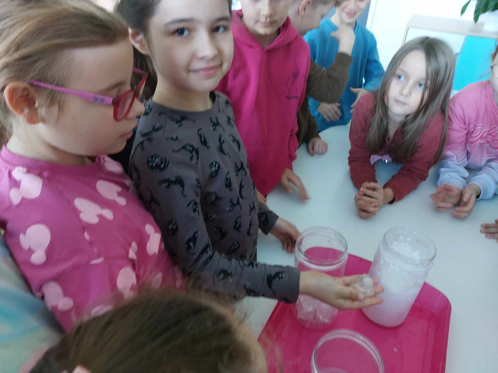 Właściwości wody to ekscytujący temat. Woda jest najbardziej rozpowszechnionym, najbardziej znanym i jednocześnie najbardziej zagadkowym płynem na Ziemi. W ramach innowacji pedagogicznej „Z przyrodą za pan brat” uczniowie z klasy 2A przeprowadzali doświadczenia z wykorzystaniem wody. Celem zajęć było zwrócenie uwagi na: ilość wody na świecie, dlaczego ważne jest, aby szanować wodę, a także, w jaki sposób możemy ją oszczędzać. Zajęcia rozpoczęły od obejrzenia i omówienia prezentacji, następnie uczniowie przeprowadzili kilka eksperymentów z wodą, dzięki którym dowiedzieli się, jakie właściwości ma woda, co w niej pływa, co tonie, co się rozpuszcza a co nie, jak zachowuje się wędrująca woda oraz papierowe gwiazdki ułożone na wodzie. Uczniowie mieli okazję przekonać się, że woda to niezwykły materiał do eksperymentów!