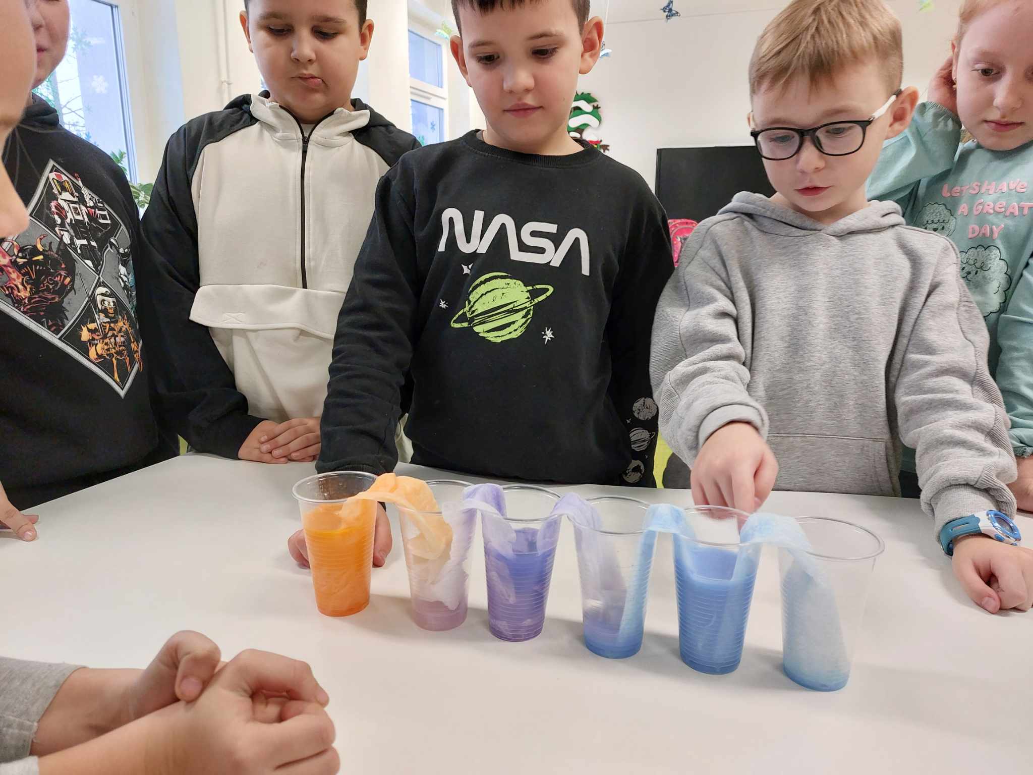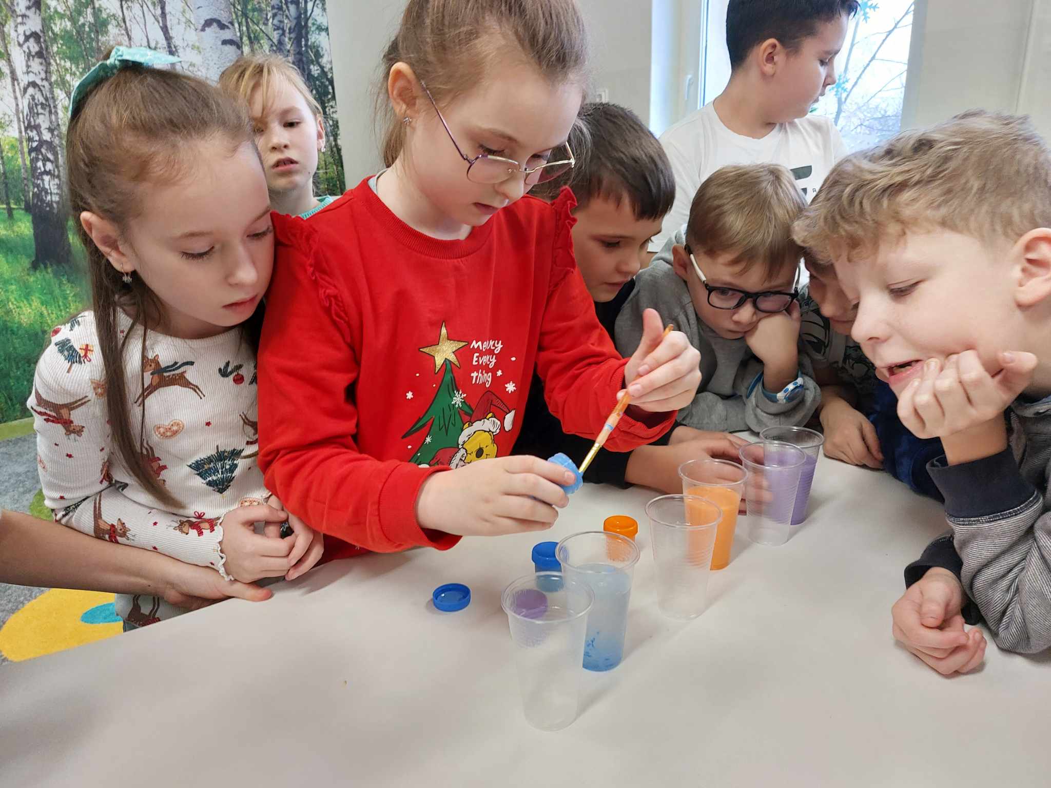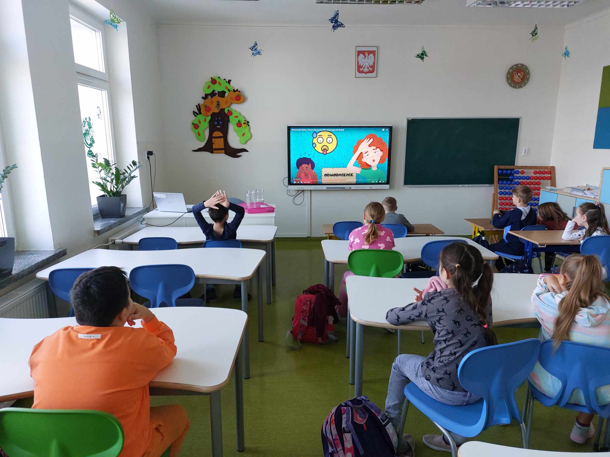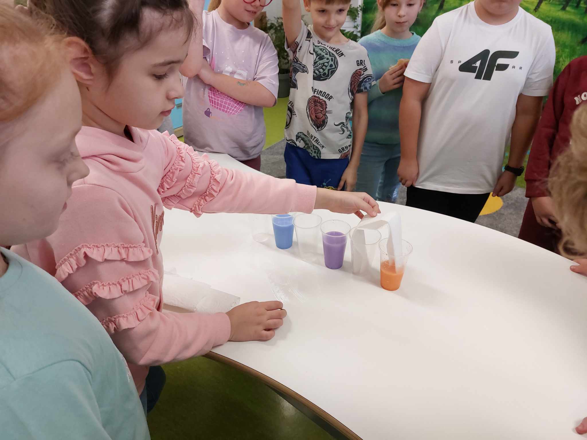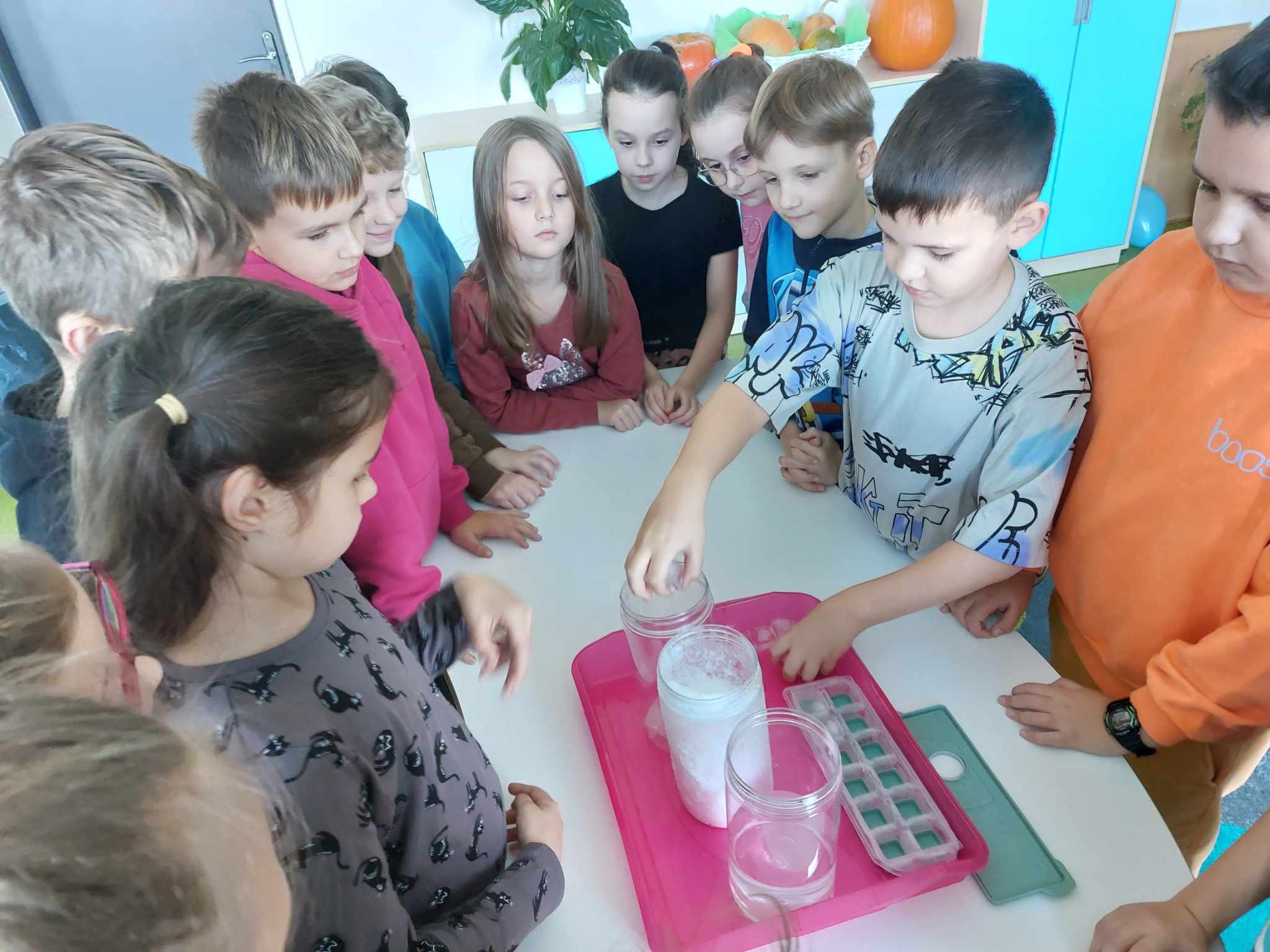 Właściwości wody to ekscytujący temat. Woda jest najbardziej rozpowszechnionym, najbardziej znanym i jednocześnie najbardziej zagadkowym płynem na Ziemi. W ramach innowacji pedagogicznej „Z przyrodą za pan brat” uczniowie z klasy 2A przeprowadzali doświadczenia z wykorzystaniem wody. Celem zajęć było zwrócenie uwagi na: ilość wody na świecie, dlaczego ważne jest, aby szanować wodę, a także, w jaki sposób możemy ją oszczędzać. Zajęcia rozpoczęły od obejrzenia i omówienia prezentacji, następnie uczniowie przeprowadzili kilka eksperymentów z wodą, dzięki którym dowiedzieli się, jakie właściwości ma woda, co w niej pływa, co tonie, co się rozpuszcza a co nie, jak zachowuje się wędrująca woda oraz papierowe gwiazdki ułożone na wodzie. Uczniowie mieli okazję przekonać się, że woda to niezwykły materiał do eksperymentów!