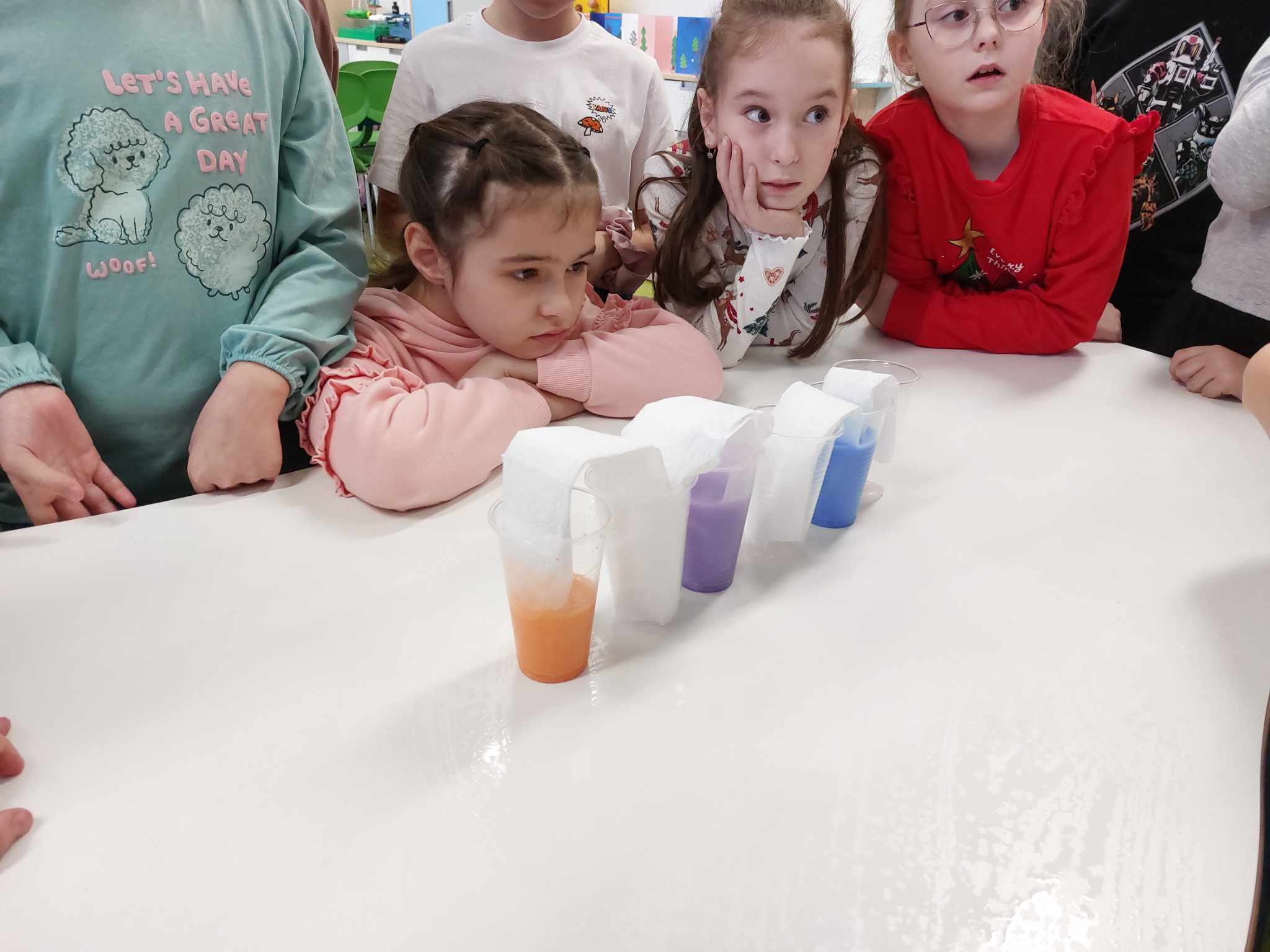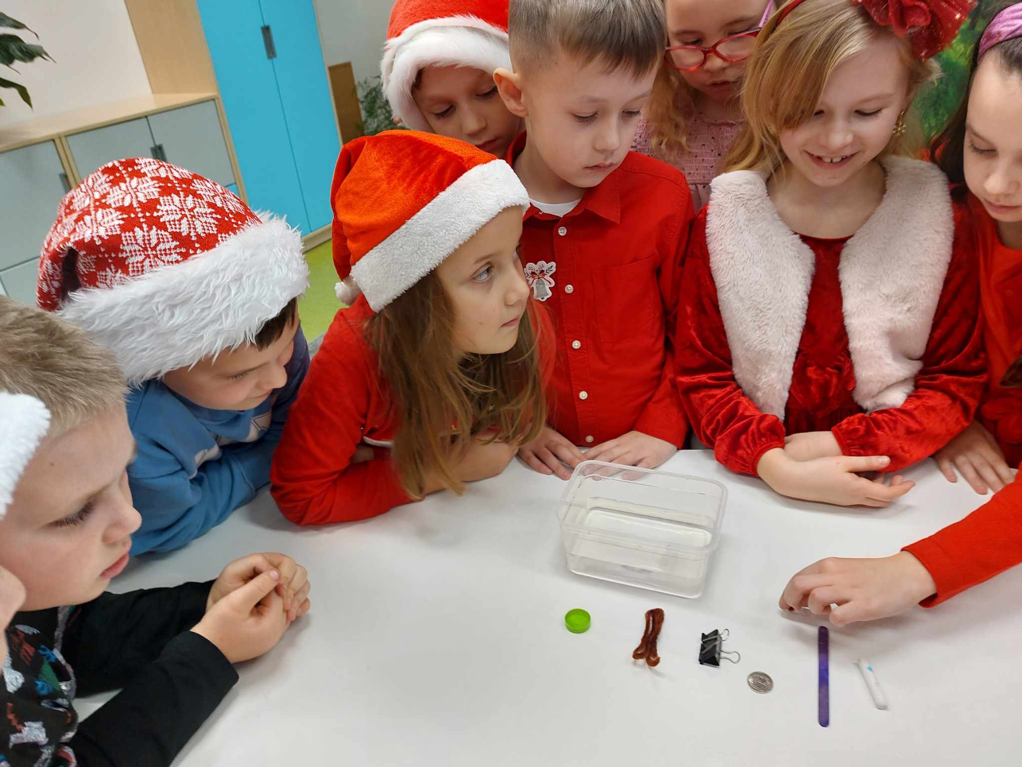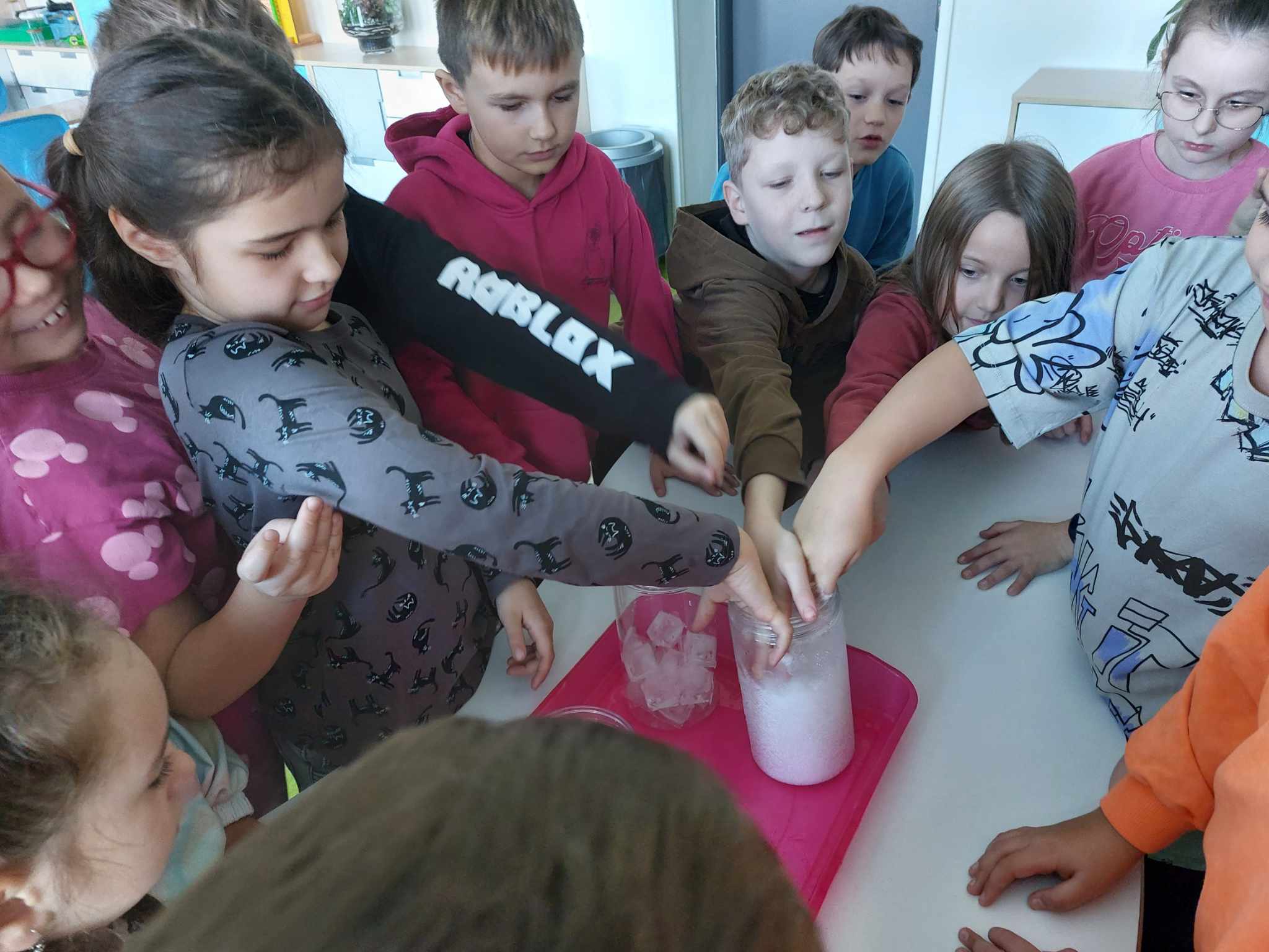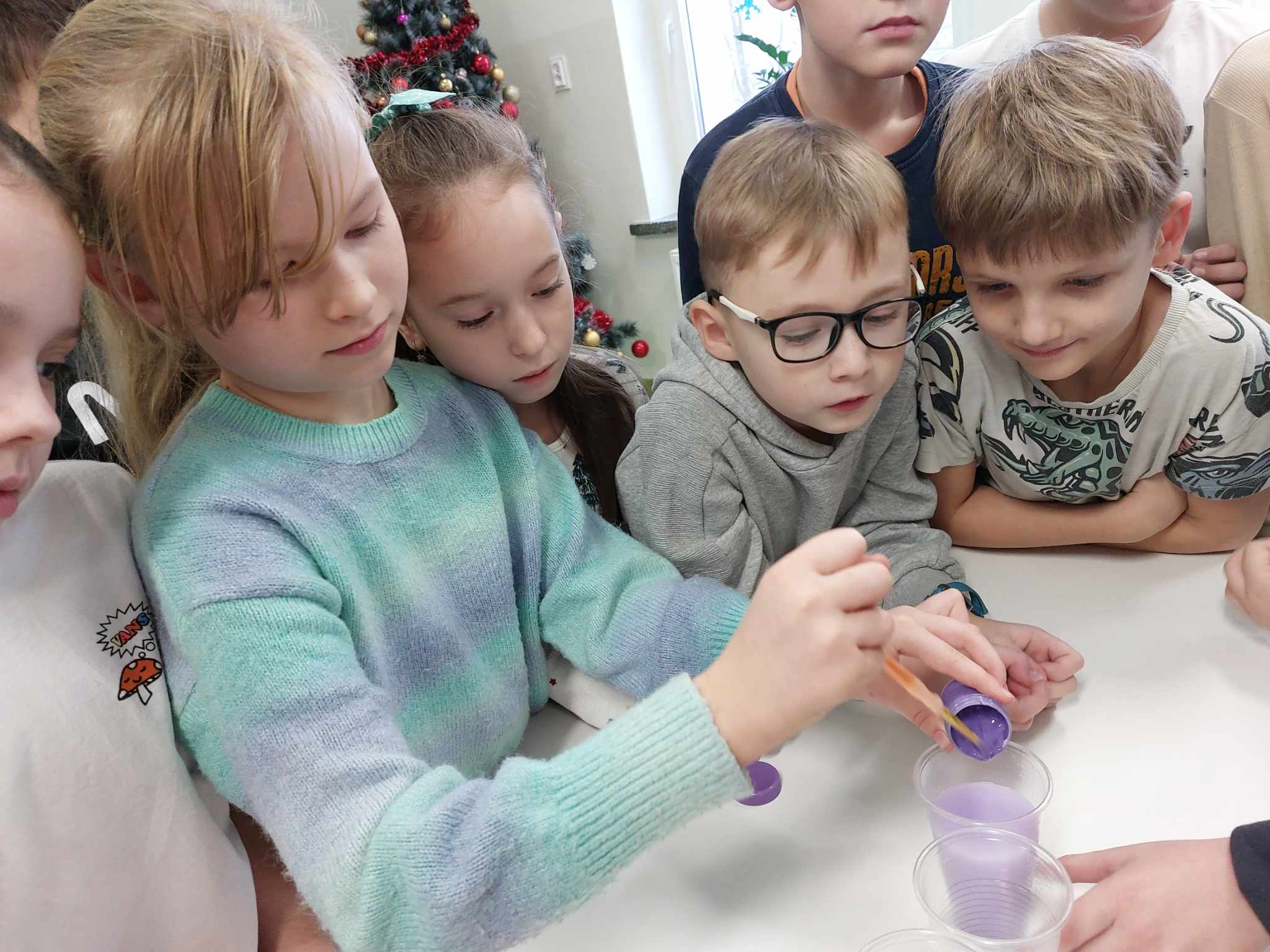 Właściwości wody to ekscytujący temat. Woda jest najbardziej rozpowszechnionym, najbardziej znanym i jednocześnie najbardziej zagadkowym płynem na Ziemi. W ramach innowacji pedagogicznej „Z przyrodą za pan brat” uczniowie z klasy 2A przeprowadzali doświadczenia z wykorzystaniem wody. Celem zajęć było zwrócenie uwagi na: ilość wody na świecie, dlaczego ważne jest, aby szanować wodę, a także, w jaki sposób możemy ją oszczędzać. Zajęcia rozpoczęły od obejrzenia i omówienia prezentacji, następnie uczniowie przeprowadzili kilka eksperymentów z wodą, dzięki którym dowiedzieli się, jakie właściwości ma woda, co w niej pływa, co tonie, co się rozpuszcza a co nie, jak zachowuje się wędrująca woda oraz papierowe gwiazdki ułożone na wodzie. Uczniowie mieli okazję przekonać się, że woda to niezwykły materiał do eksperymentów!