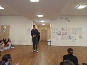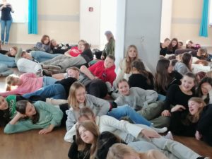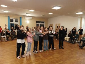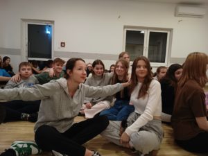 NIE BYŁO CZASU NA NUDĘ, cały dzień był dobrze zaplanowany i miło przez nas spędzony – ciekawe zajęcia, pokazy i występy z każdym dniem dawały nam więcej pewności siebie. W trakcie trwania zajęć BAWILIŚMY SIE ŚWIETNIE! Dużo tańczyliśmy – od samego rana na rozgrzewkę, a wieczorami dla zabawy; śpiewaliśmy, a dla tego, kto nie przyszedł na czas, czekała niespodzianka – mianowicie tzw. ”BRUTAL KARA”, która polegała na zatańczeniu śmiesznego tańca lub zaśpiewaniu jakieś piosenki przed wszystkimi. Pod wieczór mieliśmy zadania grupowe tzw. “Night Show”, gdzie wystawialiśmy różne przedstawienia, które miały na celu pobudzić nasze zmysły i kreatywność. Każda z grup miała swojego lidera, który przyznawał role oraz wymyślał scenariusz.