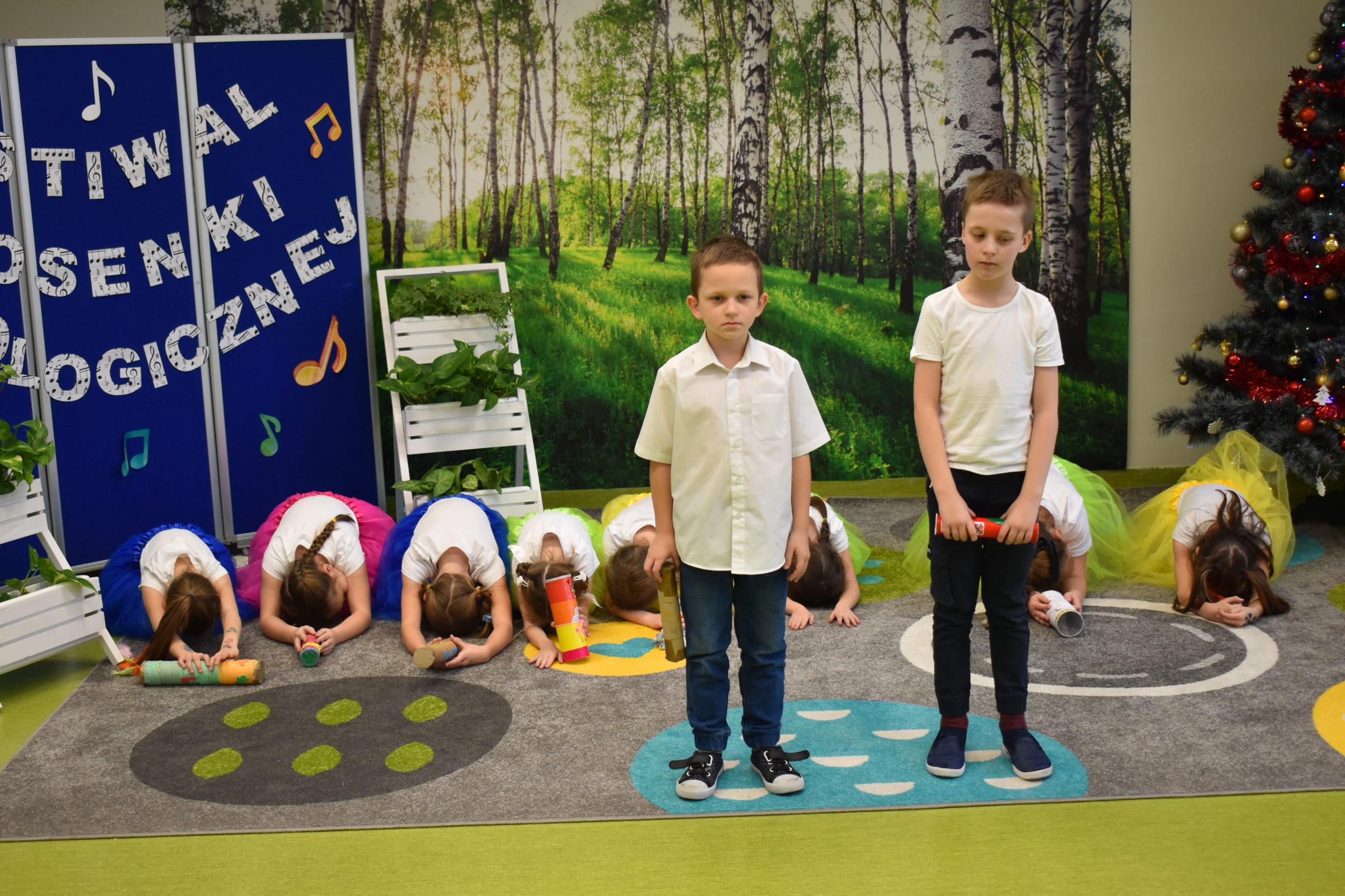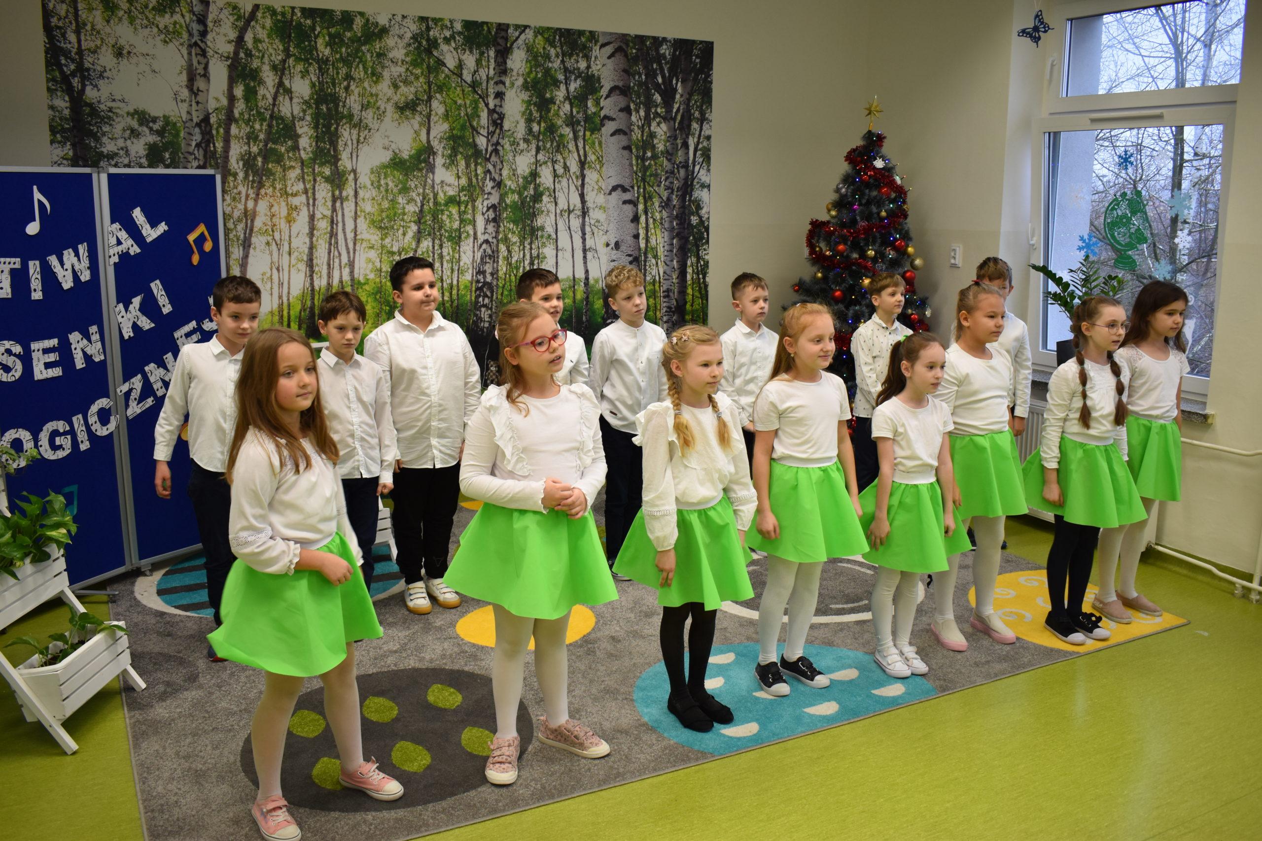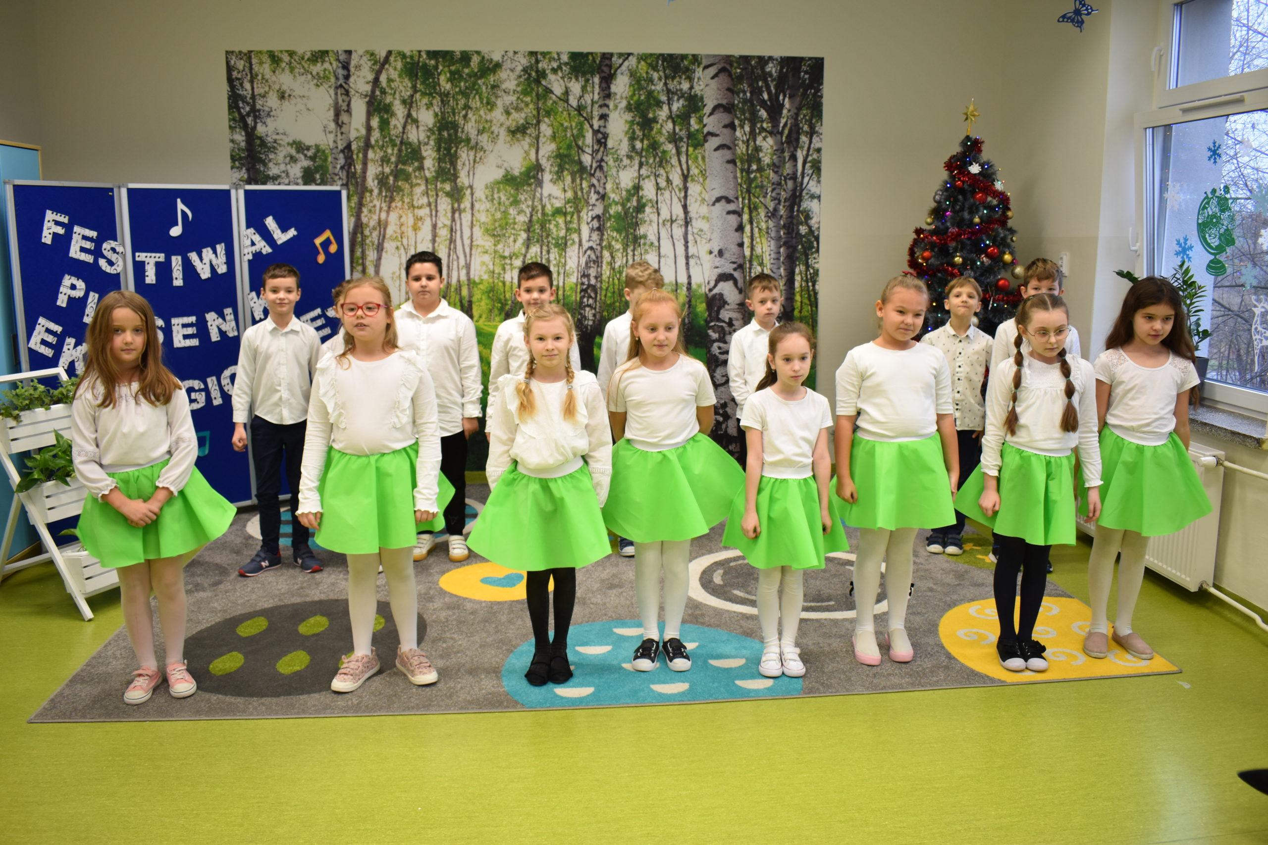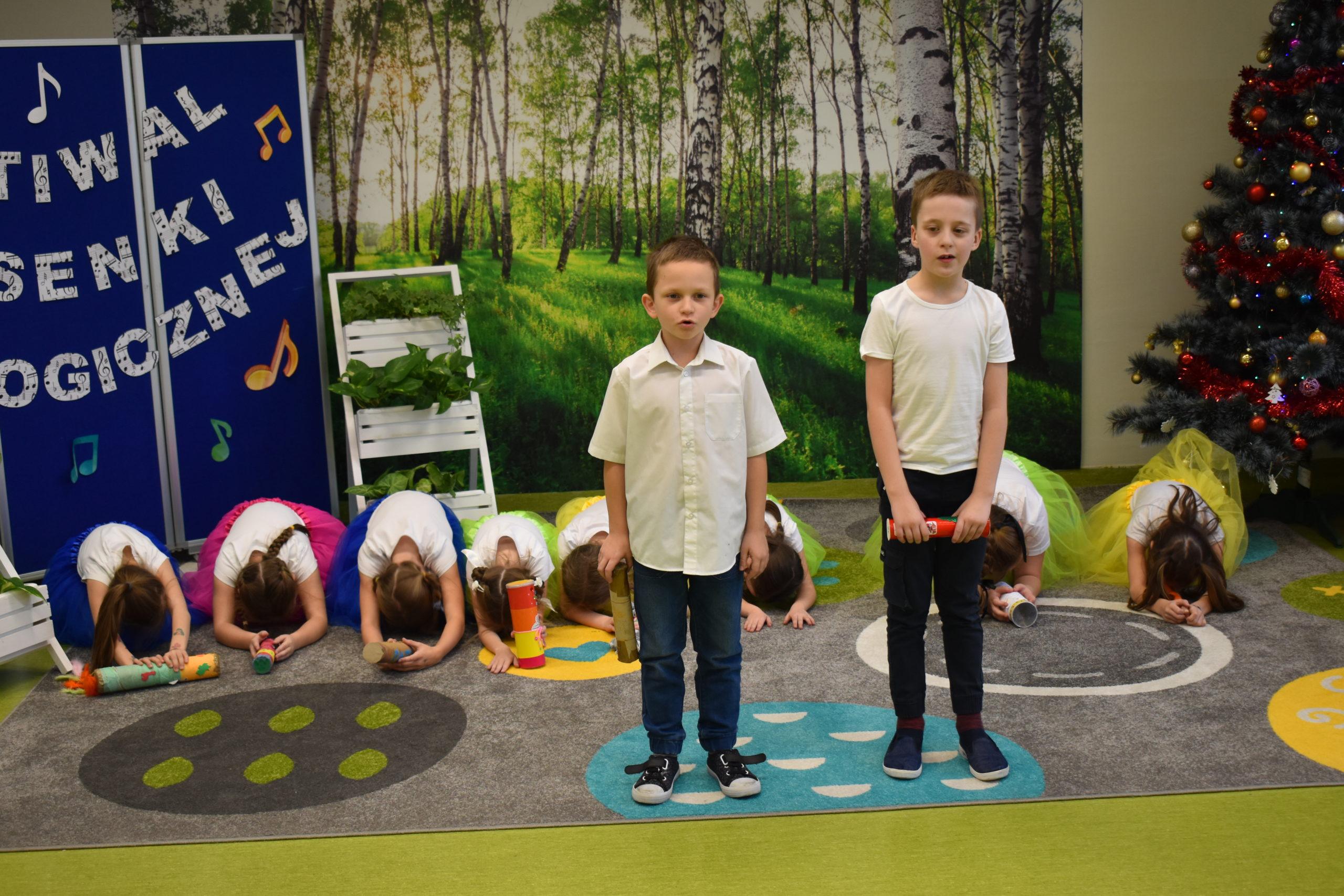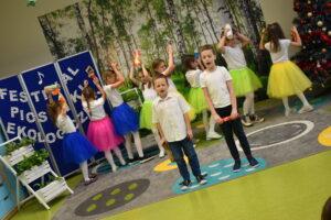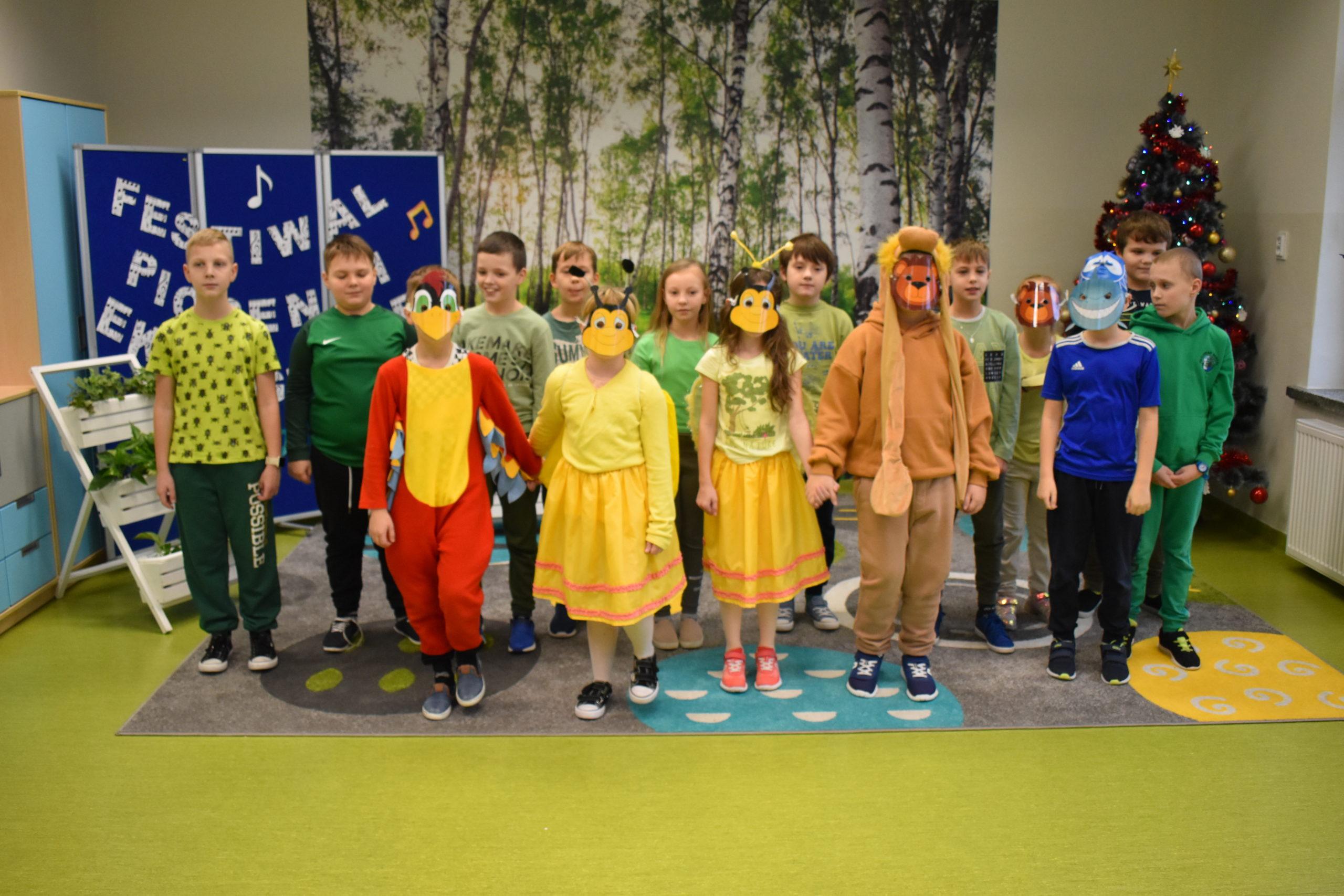 14 grudnia 2023r. w naszej szkole odbył się Festiwal Piosenki Ekologicznej. Głównym celem festiwalu było budzenie świadomości ochrony przyrody wśród dzieci oraz prezentowanie ich zdolności wokalno – muzycznych. W festiwalu wzięli udział uczniowie z klas I – IV, których głównym zadaniem było zaprezentowanie jednej piosenki o tematyce ekologicznej. Wśród utworów można było usłyszeć takie piosenki jak: ,,Eko tu, eko tam”, ,,Z naturą na Ty”, ,,Zielony dom”, ,,Ekorock”, ,,Moja planeta”, ,,Mam zasady na odpady”, ,,Nasza planeta”, ,,Świat w naszych rękach”. Z przedstawionego repertuaru piosenek wybrzmiewały słowa – apele nawołujące do zaprzestania niszczenia naturalnego środowiska, do ochrony roślin, zwierząt, wody i powietrza tak, aby przyszłe pokolenia mogły cieszyć się otaczającą nas przyrodą. Uczniowie wystąpili w pięknych, kolorowych strojach, nawiązujących do tematyki piosenki oraz przy akompaniamencie instrumentów przygotowanych z ekologicznych materiałów. Na zakończenie festiwalu pani Dyrektor wraz z panią Wicedyrektor podziękowały organizatorom oraz wszystkim uczestnikom za piękne występy i wręczyły drobne upominki.