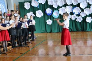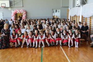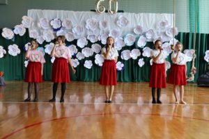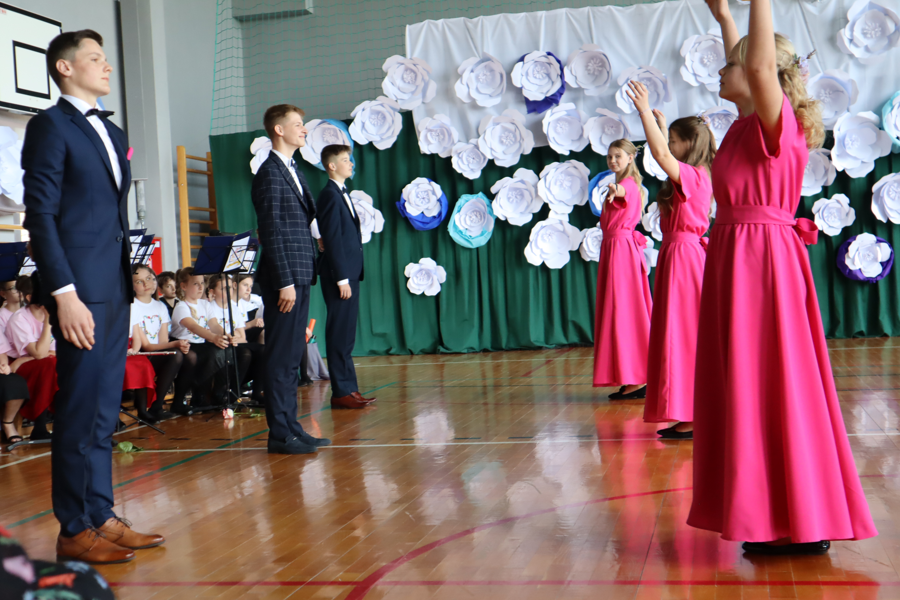 Święto szkoły to bez wątpienia czas wspomnień, refleksji i radości z powrotu do lat młodości oraz subiektywnego przeżywania przeszłości. Za sprawą pięknych recytacji, wzruszających piosenek oraz starannie przygotowanych układów tanecznych, zaproszeni goście przenieśli się do „mazowszańskiego ogrodu wspomnień”- ogrodu, który przez wiele lat z dużym zaangażowaniem, ale i ogromną radością tworzyły pokolenia dyrektorów, nauczycieli, pracowników i uczniów. Swoje umiejętności taneczne prezentowali najmłodsi uczniowie naszej szkoły, które zatańczyły krakowiaka do utworu „Lipka”, a także starsi uczniowie, którzy brawurowo wykonali Gramophon Waltz. Podczas gali swoje talenty prezentował także świetnie przygotowany chór szkolny, który wykonał takie utwory jak: „Stare drzewa”, „Lubię wracać tam gdzie byłem już”, „Chcę być Kopciuszkiem” czy „Pytasz mnie”. Oprócz dzieci w uroczystości wystąpiły także nauczycielki naszej szkoły, które stworzyły zespół wokalny Crazy Teachers i z dużą radością zaśpiewały „Kwiat jednej nocy”. Uczniowie brawurowo przedstawili nostalgiczną podróż po czasach szkolnych, w której z sentymentem i dobrymi wspomnieniami powróciliśmy do murów swoich szkół, klas i przyjaciół ze szkolnych ławek. Cudownie przygotowana kwiatowa dekoracja uzupełniła nastrój przedstawienia, tak ciepło i z uśmiechem przyjętego przez widzów. Jednym słowem- inscenizacja wszystkich porwała w sentymentalną podróż do czasów, które niestety już nie powrócą. Pozostały jedynie wspomnienia.