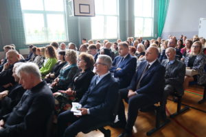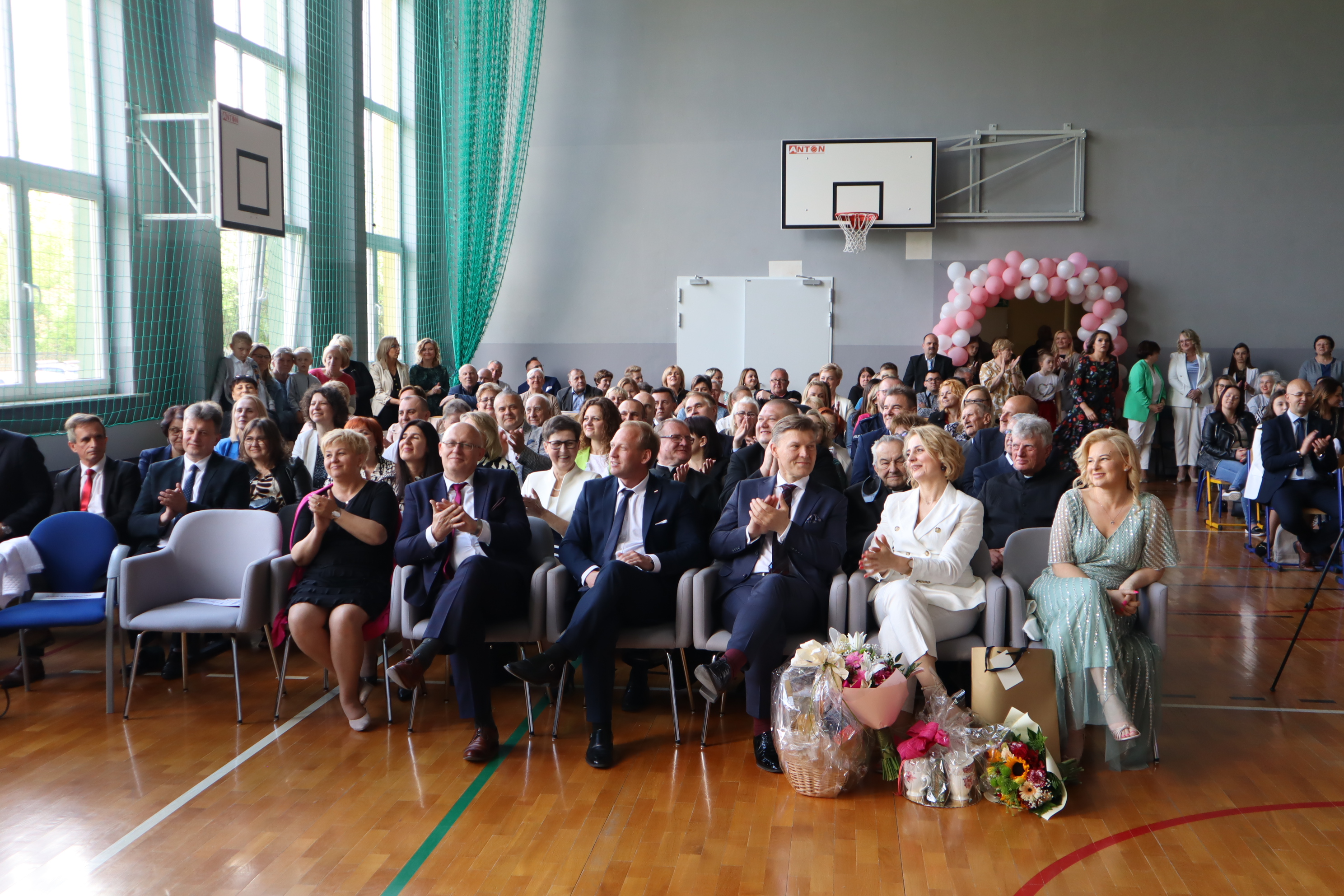 Na widowni nie zabrakło nikogo, kto w jakikolwiek sposób nie zetknął się ze szkołą w ciągu sześćdziesięciu lat jej istnienia. Nie zabrakło przede wszystkim jej absolwentów, obecnych uczniów i rodziców, aktualnych i byłych nauczycieli oraz pracowników, lecz również wielu przyjaciół szkoły. Wśród przybyłych gości, którzy mieli dla naszej Jubilatki wiele dobrych życzeń i jak na urodziny przystało, prezenty znaleźli się: ks. bp. Piotr Turzyński, Pan Waldemar Trelka- Starosta Powiatu Radomskiego, Pan Adrian Barański- Dyrektor Delegatury Mazowieckiego Kuratorium Oświaty w Radomiu, Pan Dariusz Bulski- Wójt Gminy Kowala, Pani Anna Baszczewska- Przewodnicząca Rady Rodziców, a także dyrektorzy szkół i przedszkoli oraz jednostek organizacyjnych z terenu gminy Kowala.