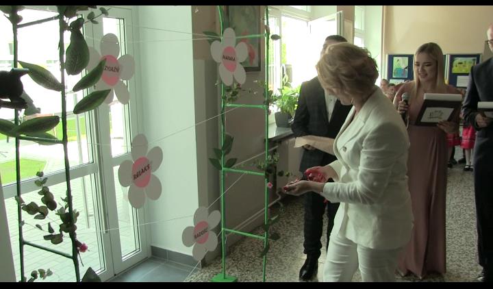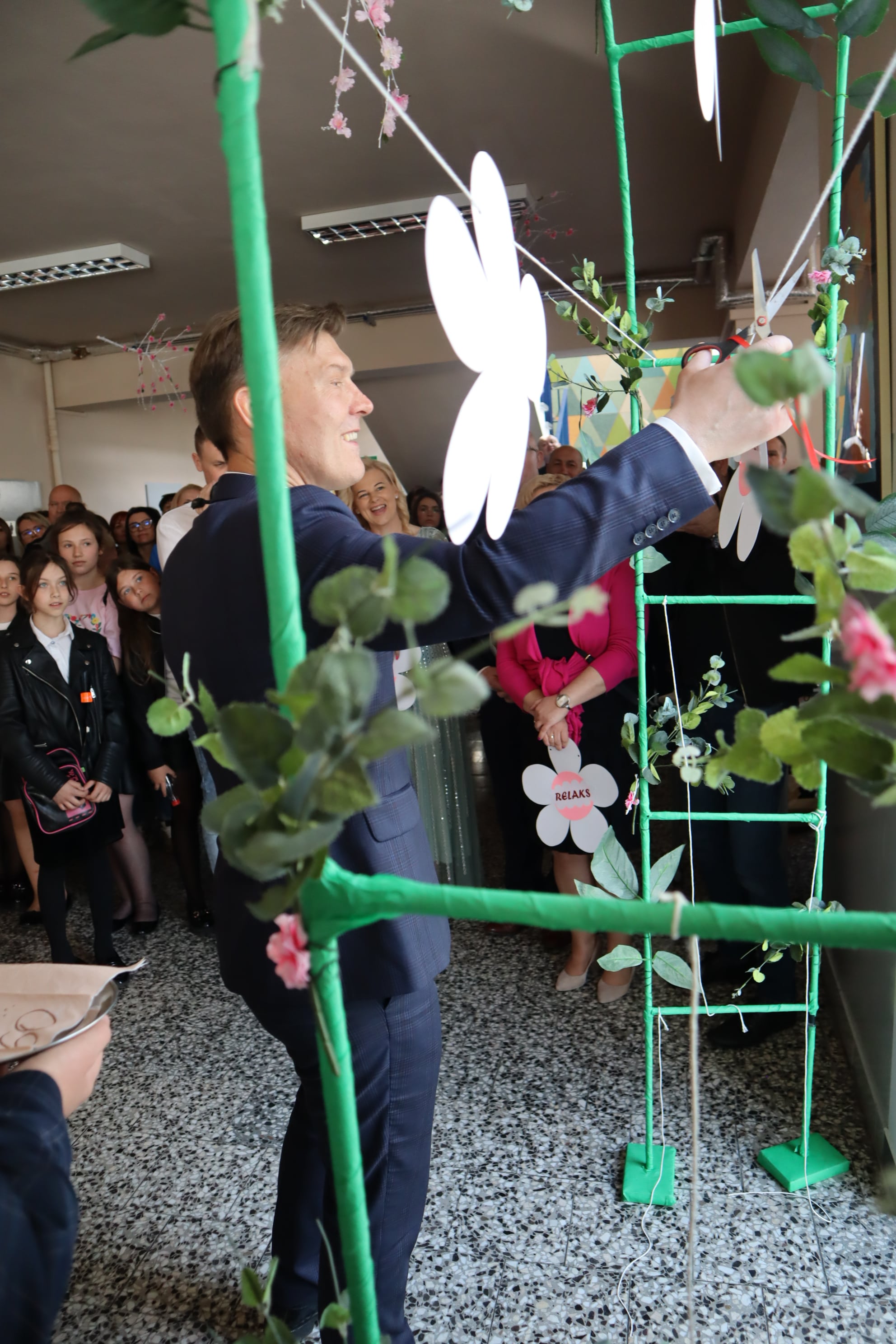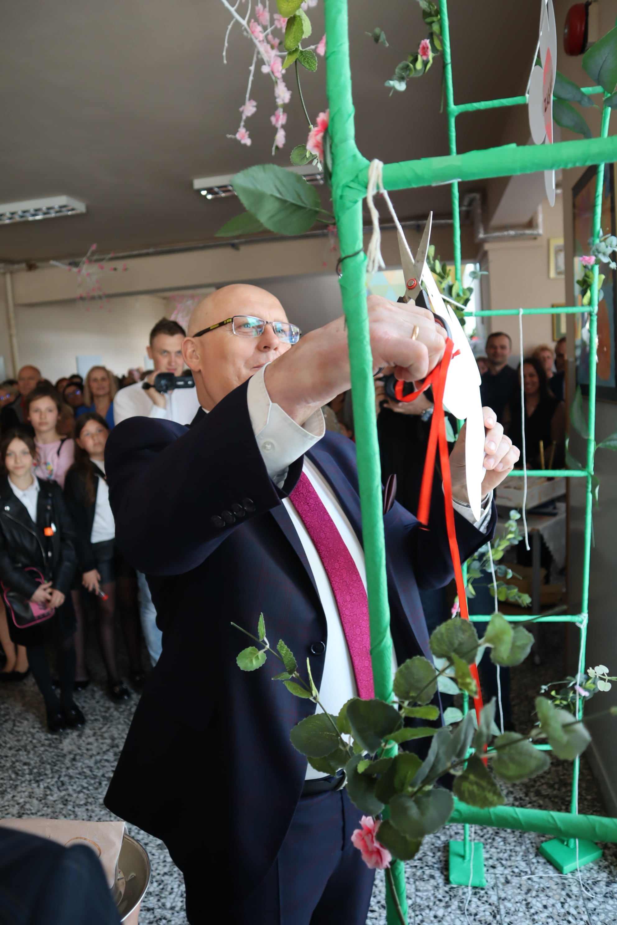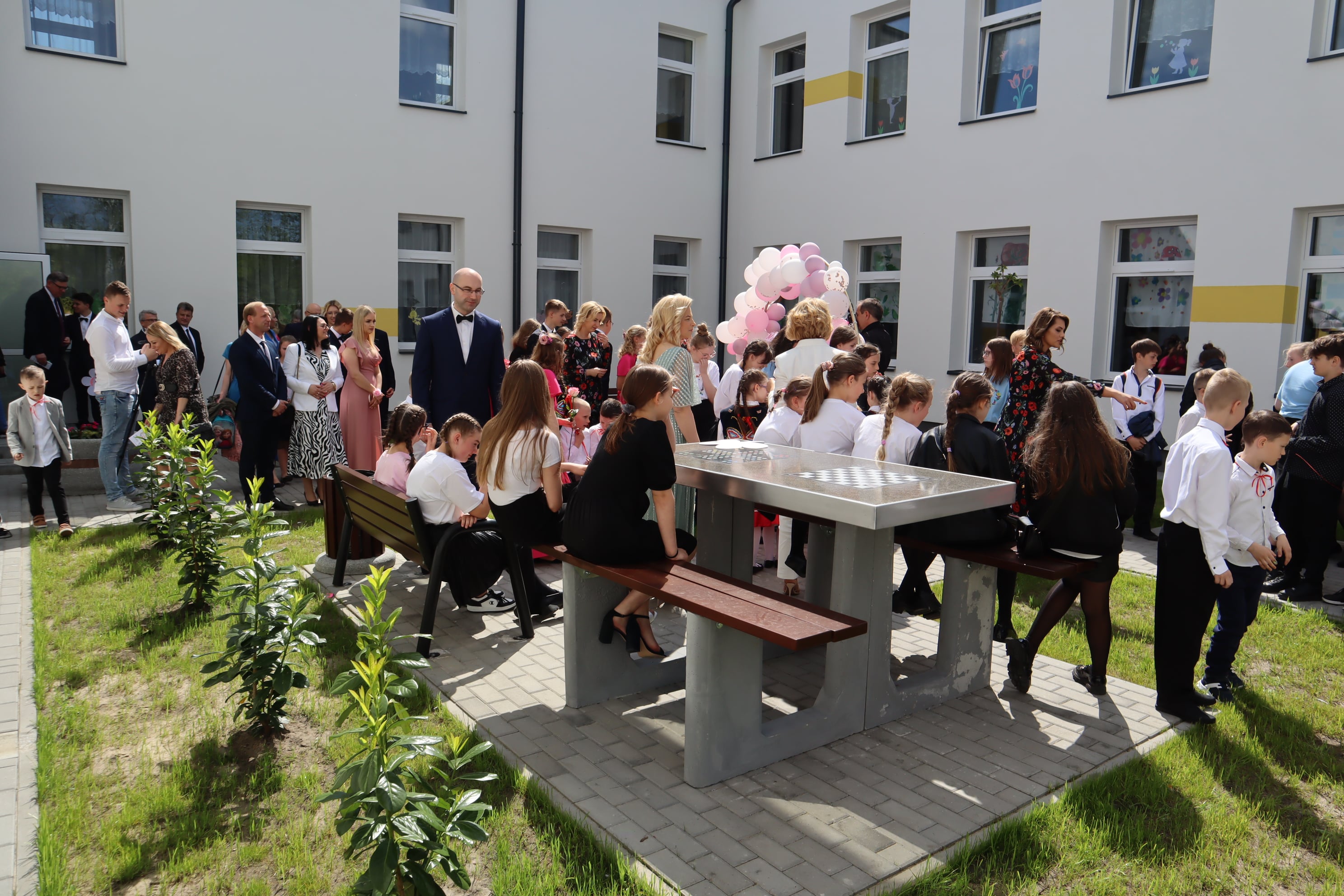 Kolejny punkt obchodów miał bardziej kameralny i mniej oficjalny wymiar. Po uroczystej gali wszyscy goście zostali zaproszeni na otwarcie szkolnego patio „Mazowszański Zakątek”. Niedawno powstały ogród to miejsce, w którym będzie można prowadzić warsztaty i zajęcia edukacyjne dla uczniów, a także aktywnie spędzać czas podczas przerw lekcyjnych. W dniu jubileuszu dokonano symbolicznego otwarcia szkolnego patio, przecinając wstęgi, na których znajdowały się słowa klucze, kojarzące się z tym miejscem, a więc nauka, radość, zabawa, przyjaźń, natura, relaks. W tym dniu nie mogło także zabraknąć jubileuszowego tortu.