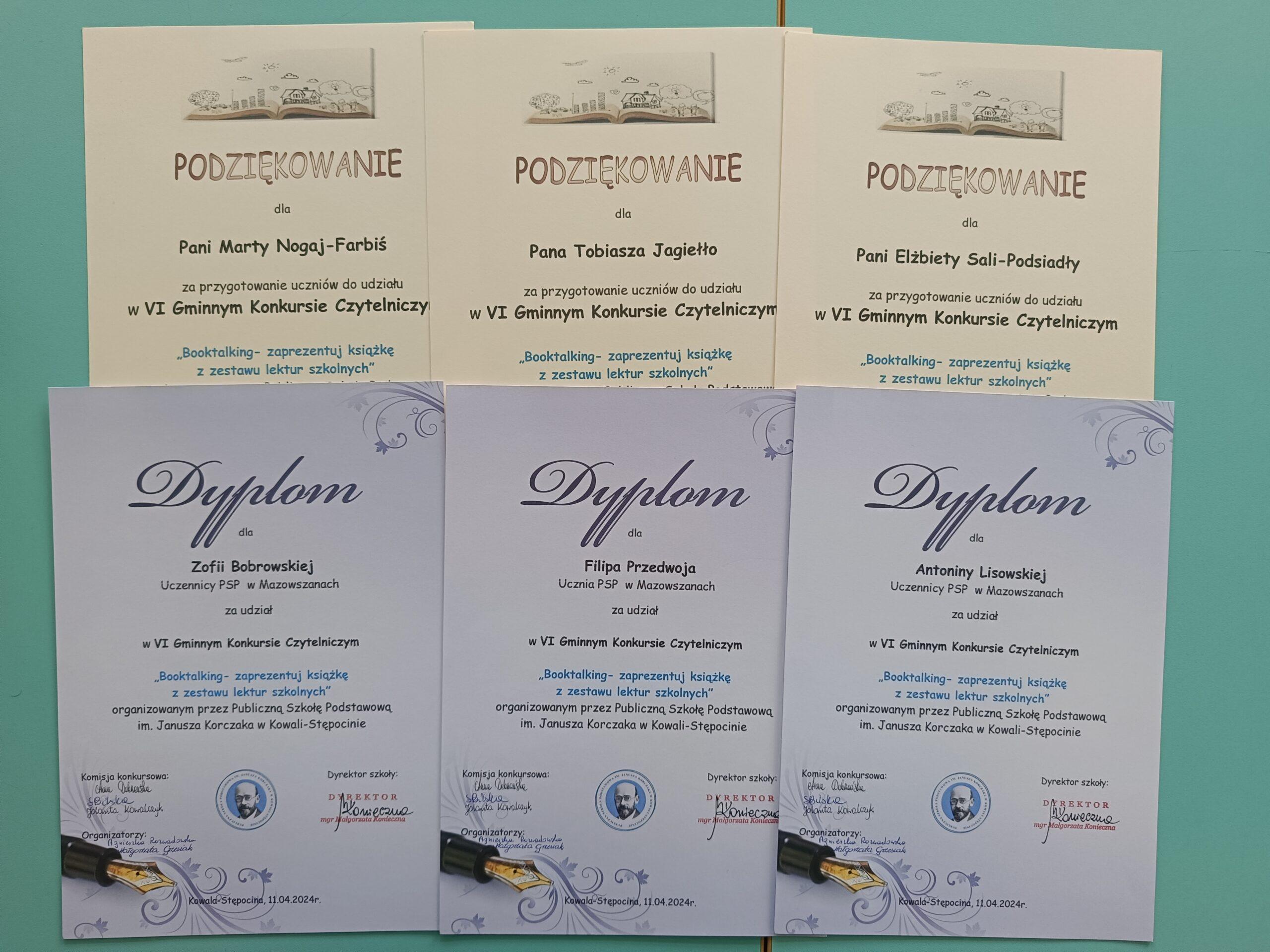 Dziękujemy pozostałym uczniom, którzy wzięli udział w konkursie za ich zaangażowanie i chęć do czytania: Antonina Lisowska, Zofia Bobrowska, Dominik Mital, Franciszek Ziółkowski, Zuzanna Szot, Amelia Spyt.